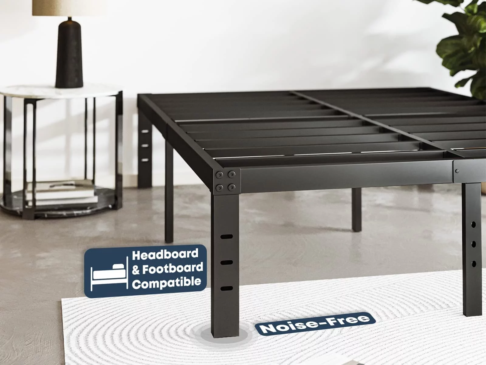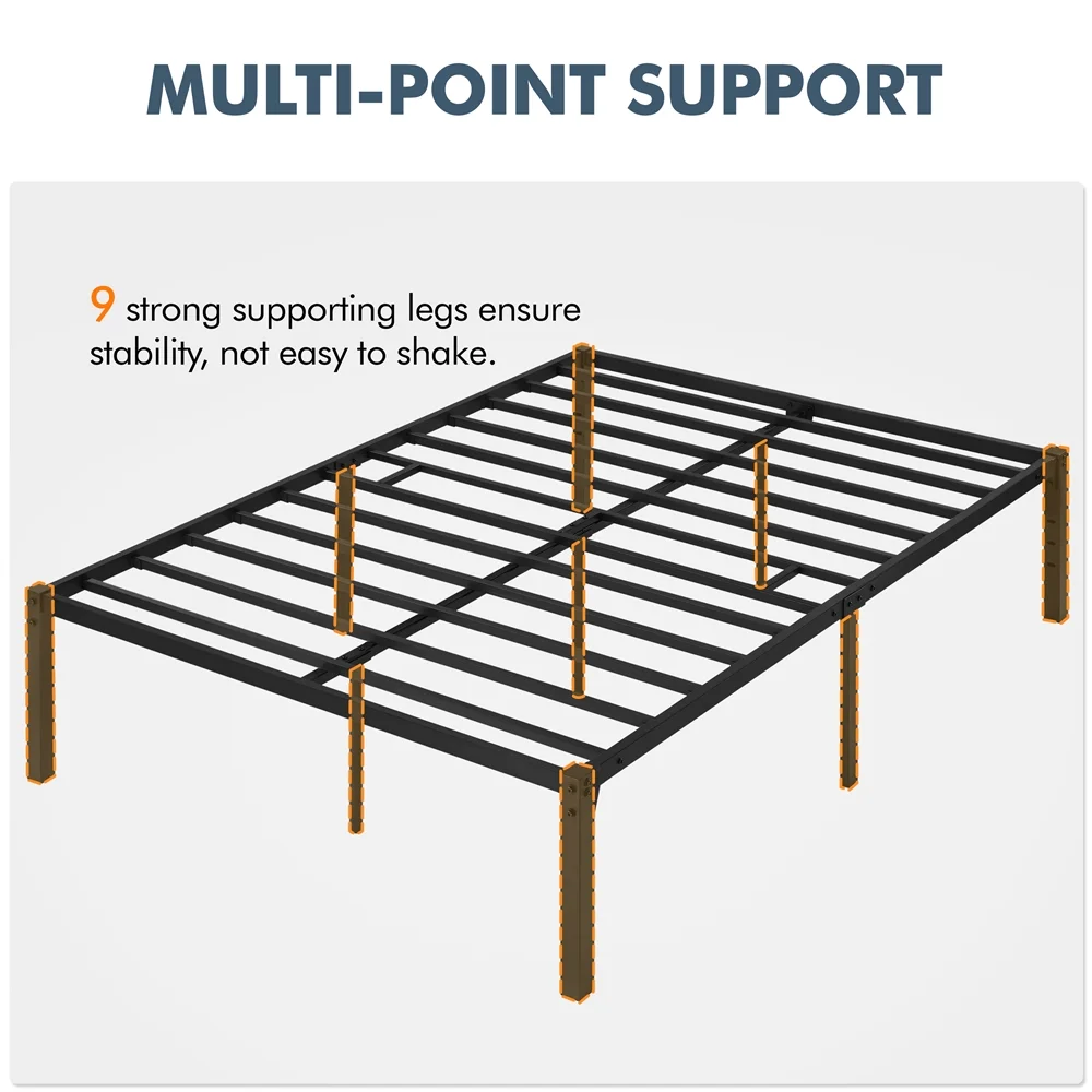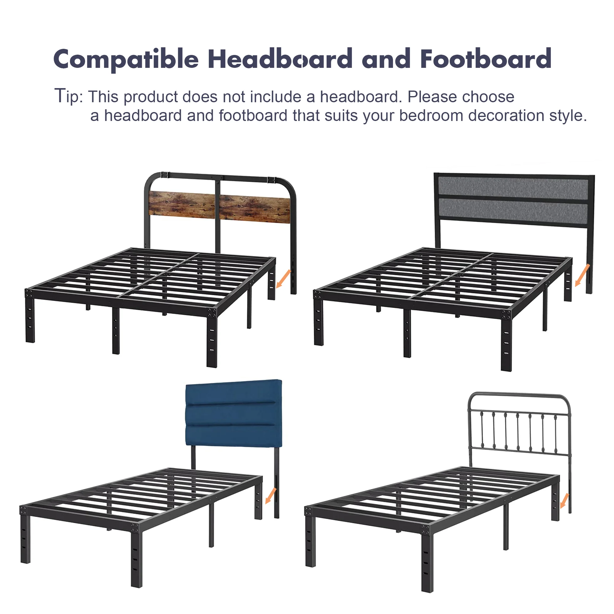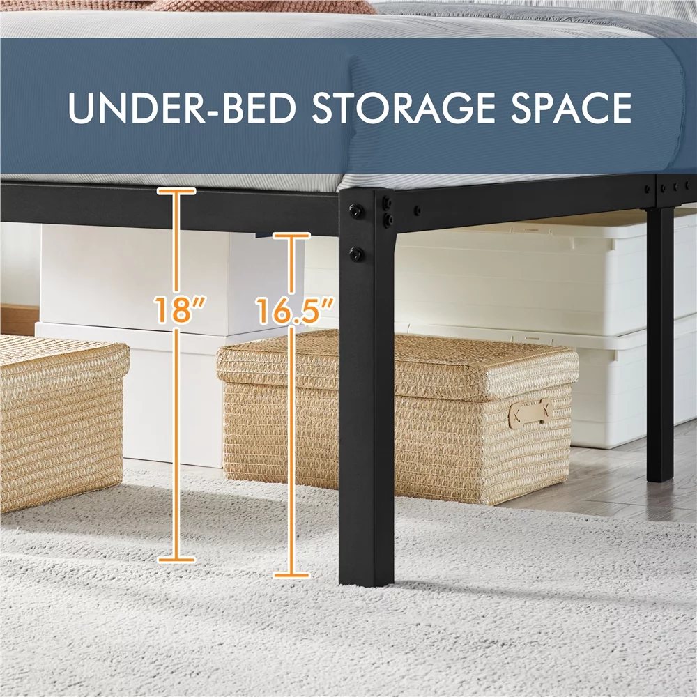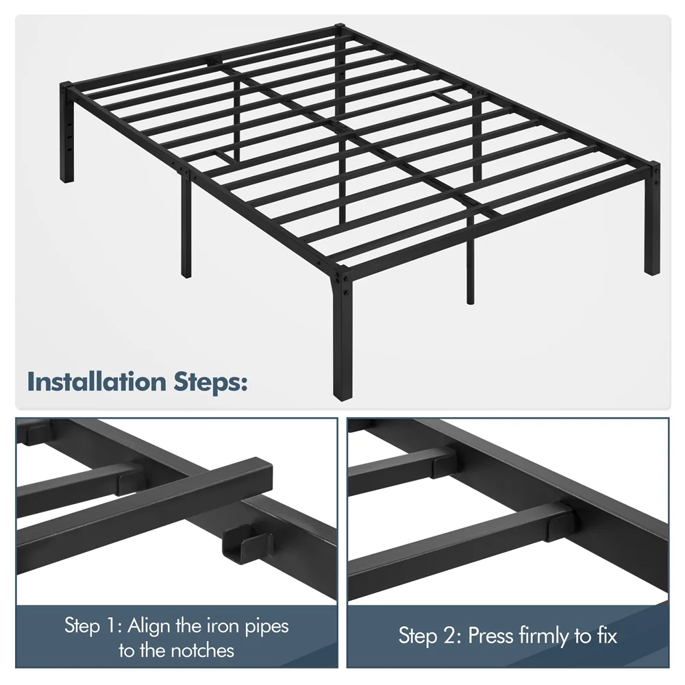 SmileMart 16.5 Inch Metal Queen Size Platform Bed Frame with Steel Slat Support, Black