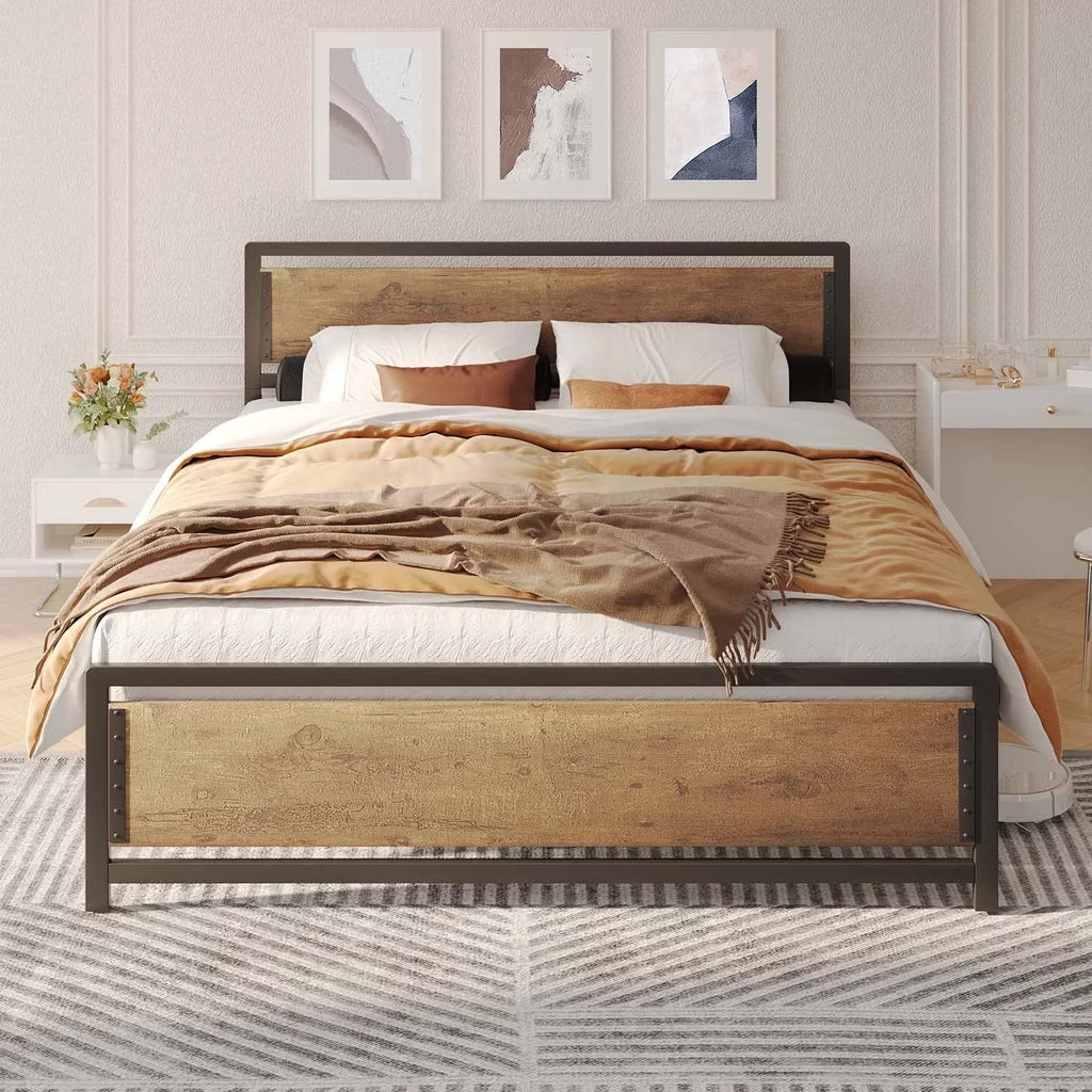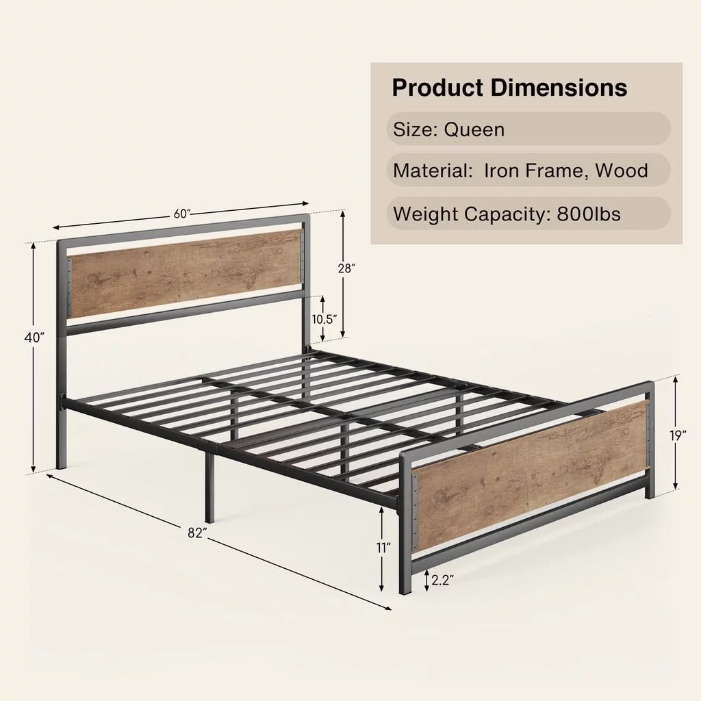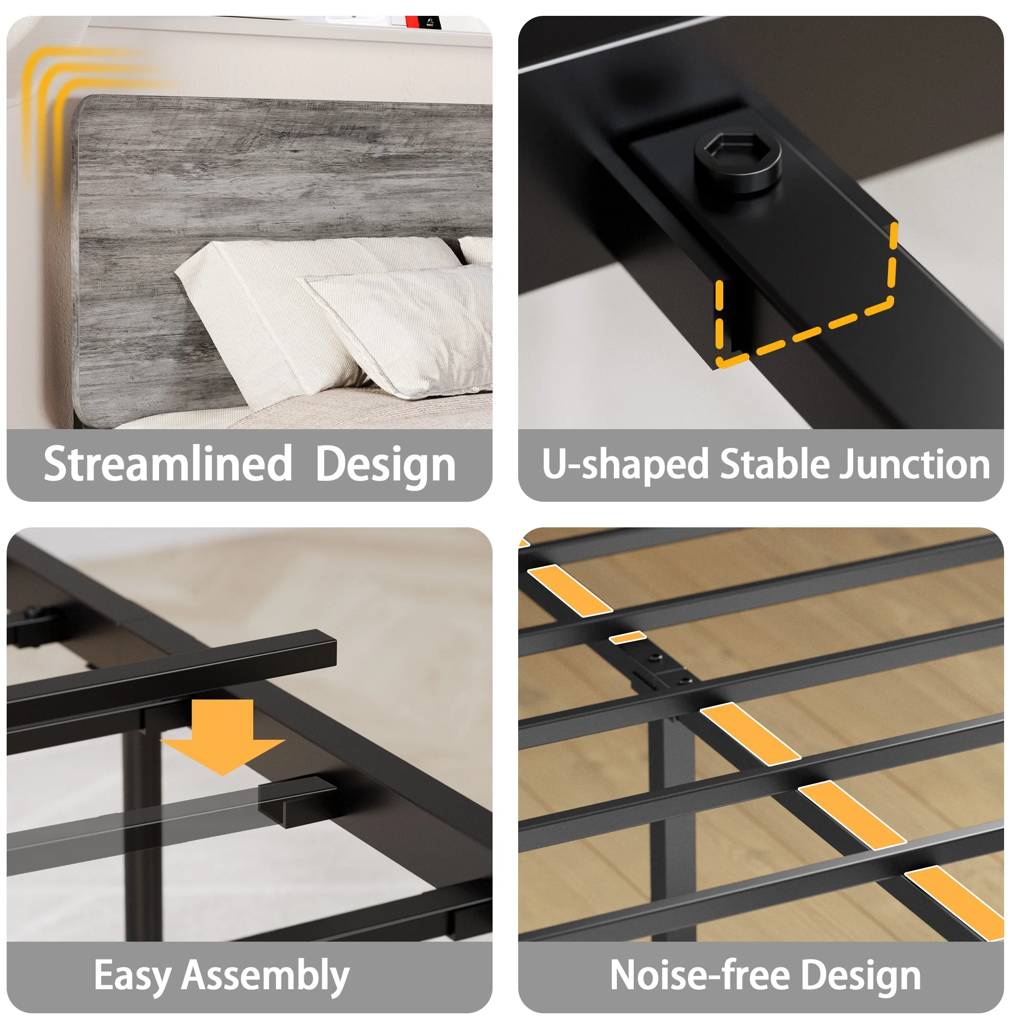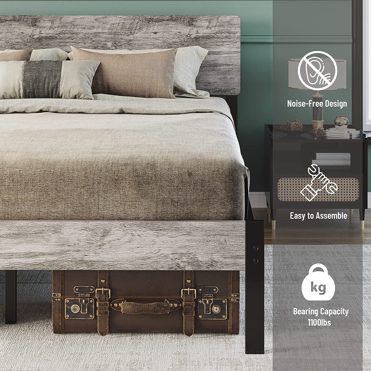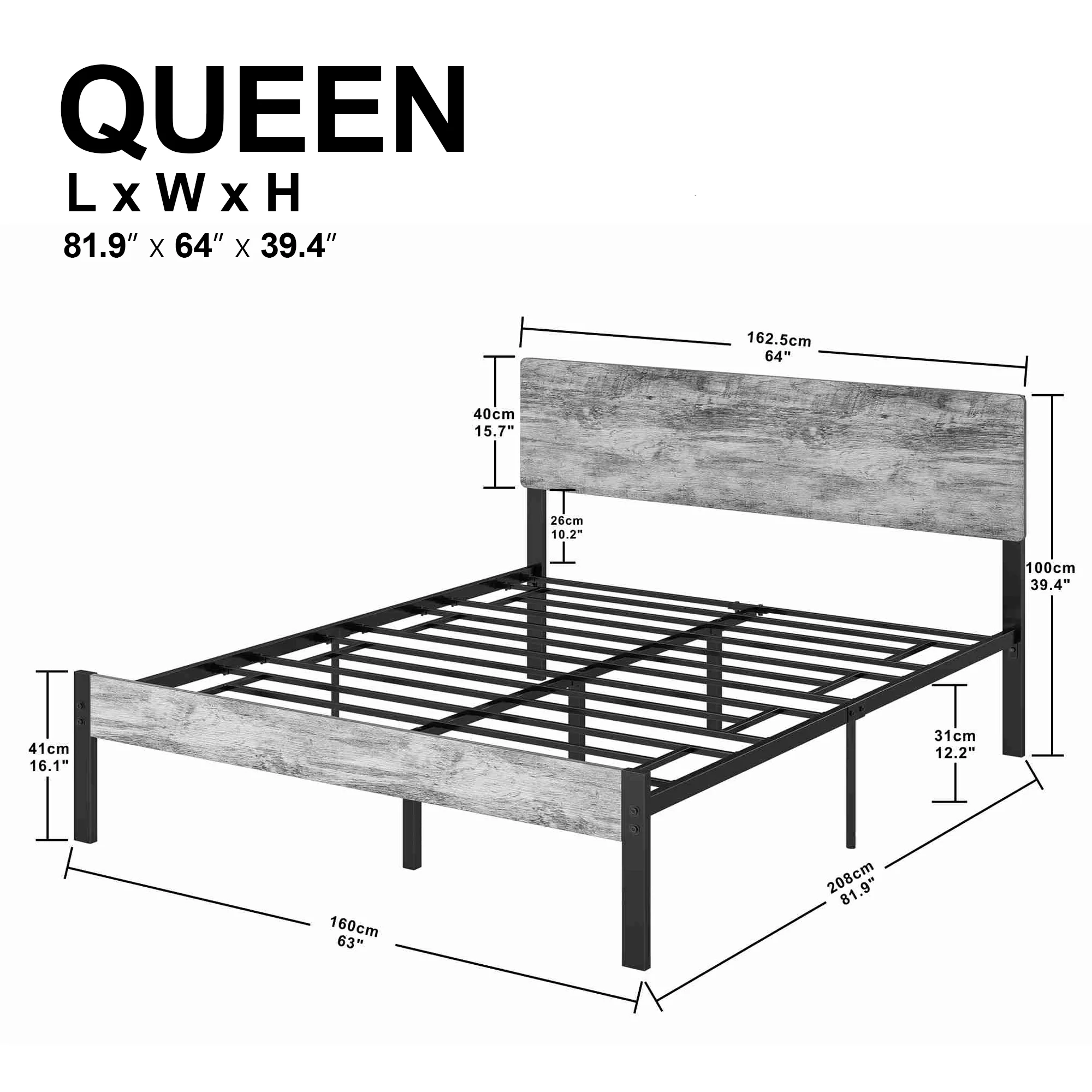 Aiho Queen Metal Platform Bed Frame with Wooden Headboard and 11'' Under-Bed Storage, Easy Assembly- Retro
