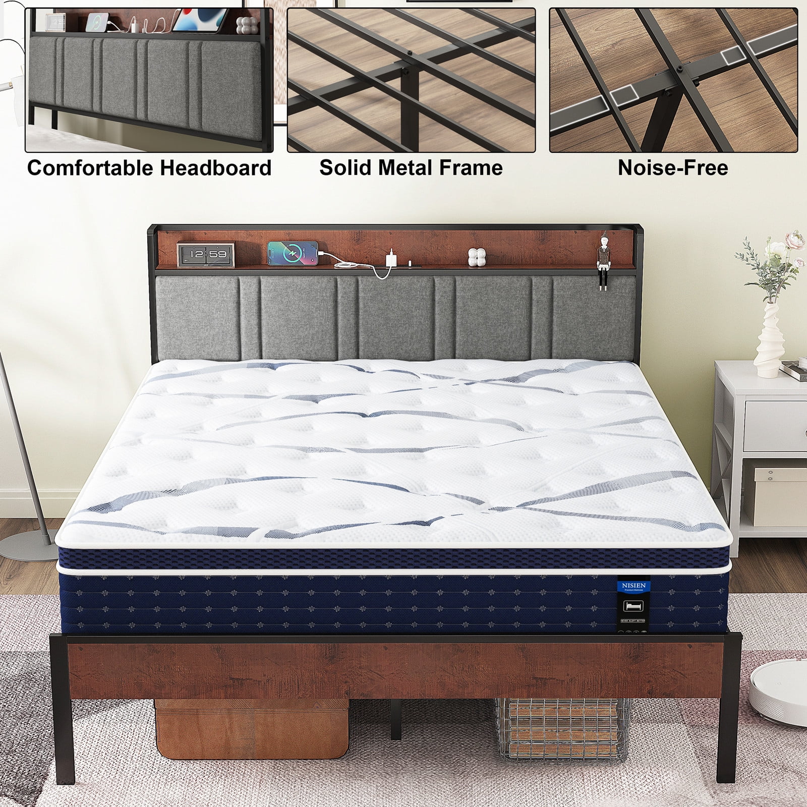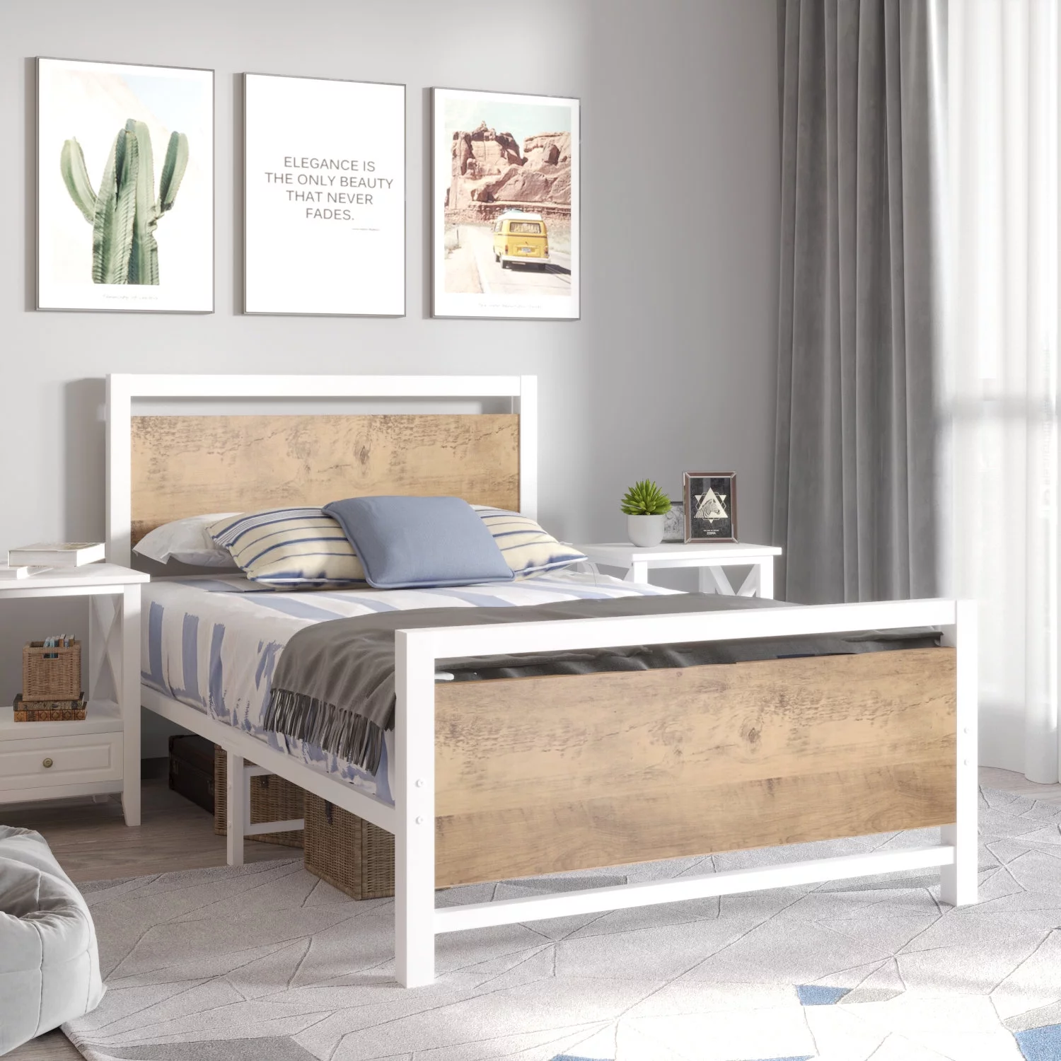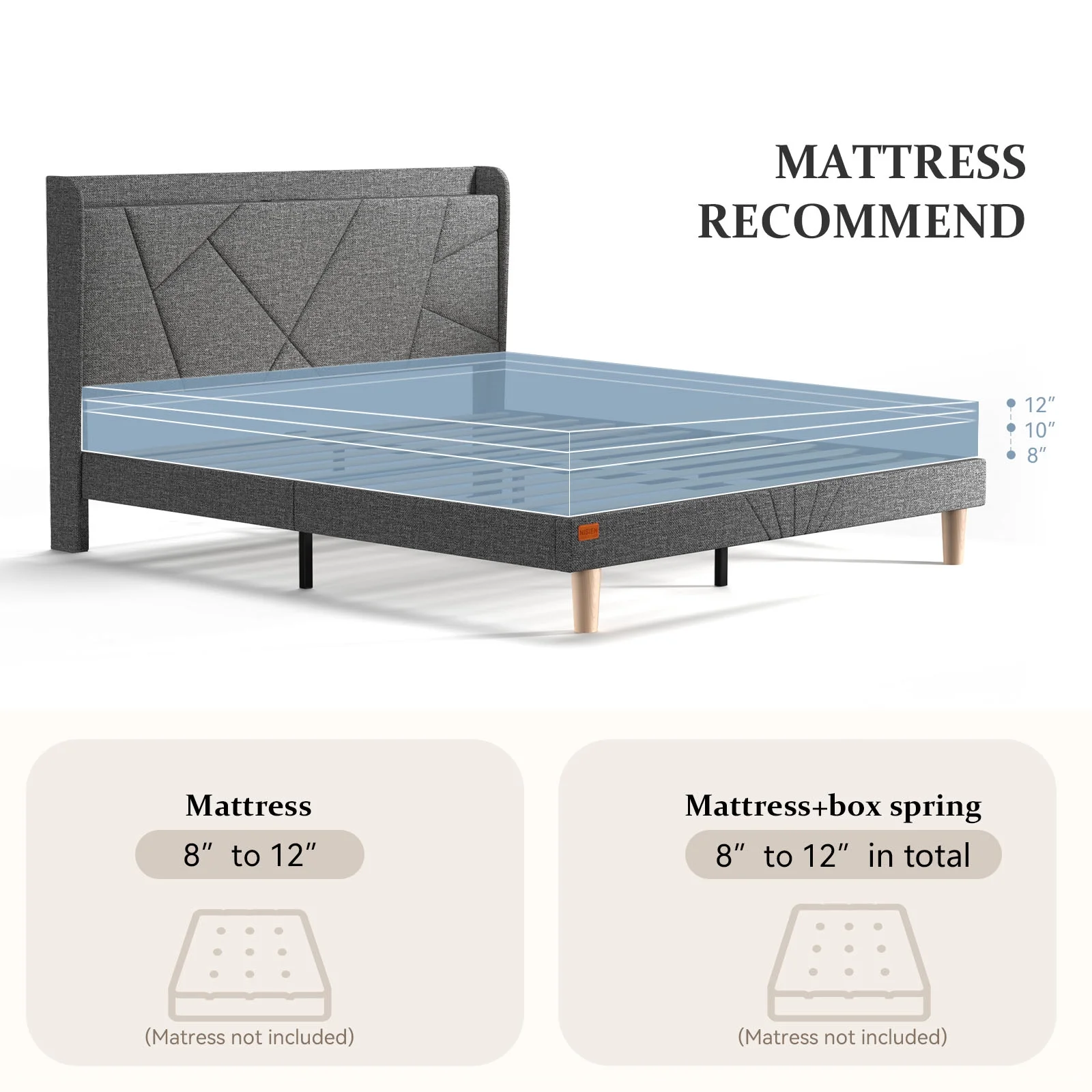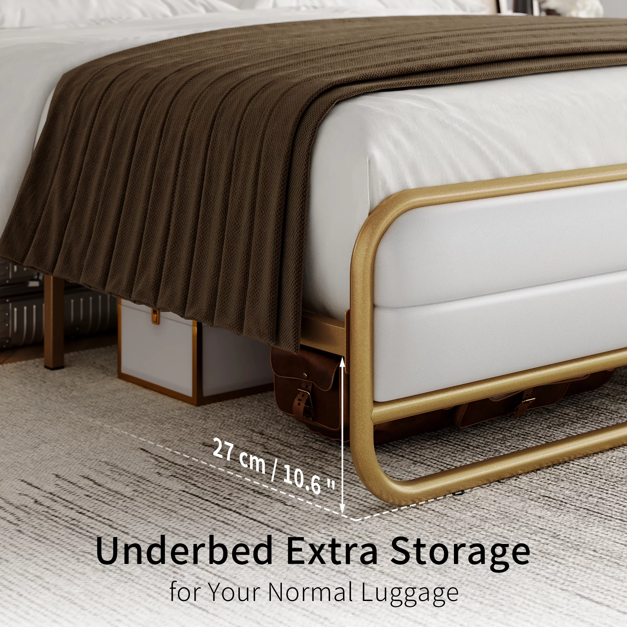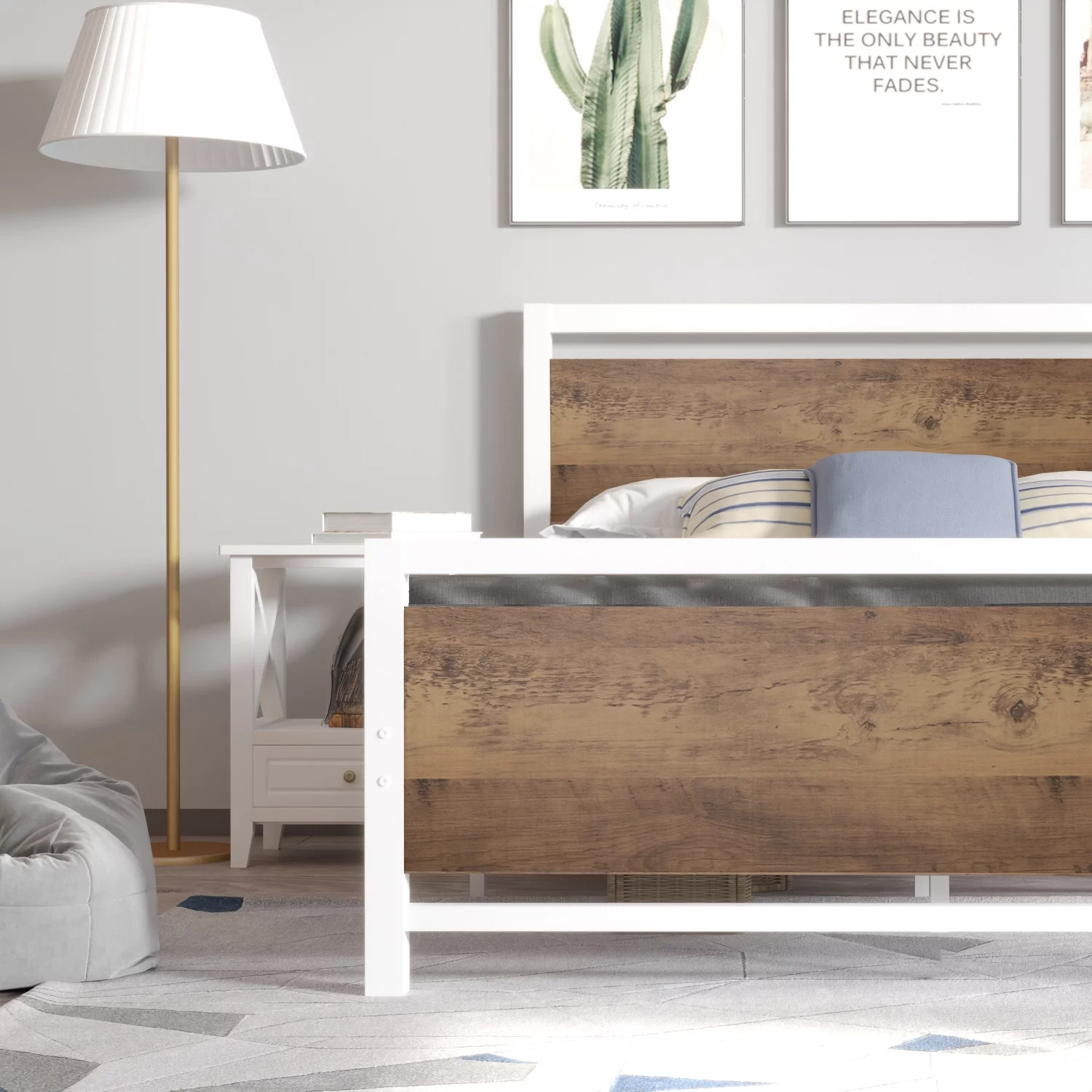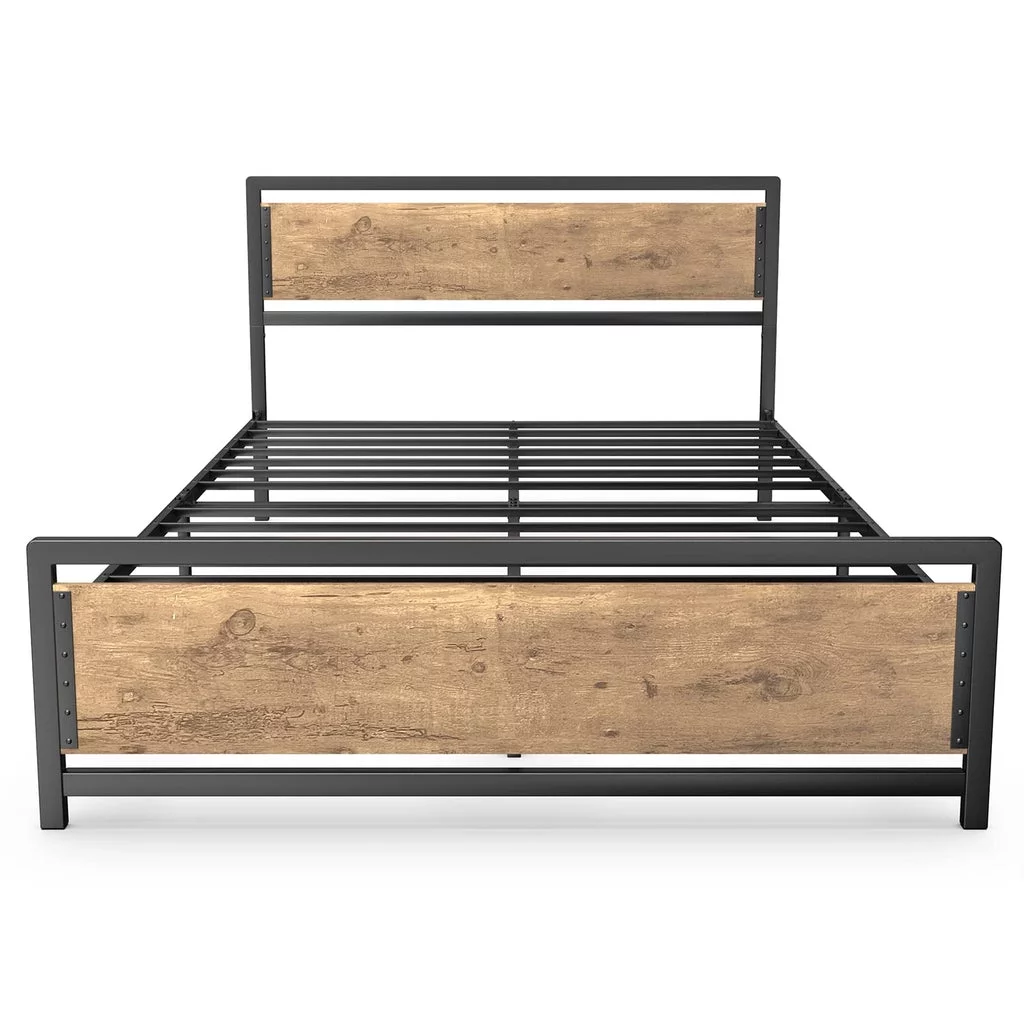Aiho Queen Metal Platform Bed Frame with Wooden Headboard and 11'' Under-Bed Storage, Easy Assembly- Retro