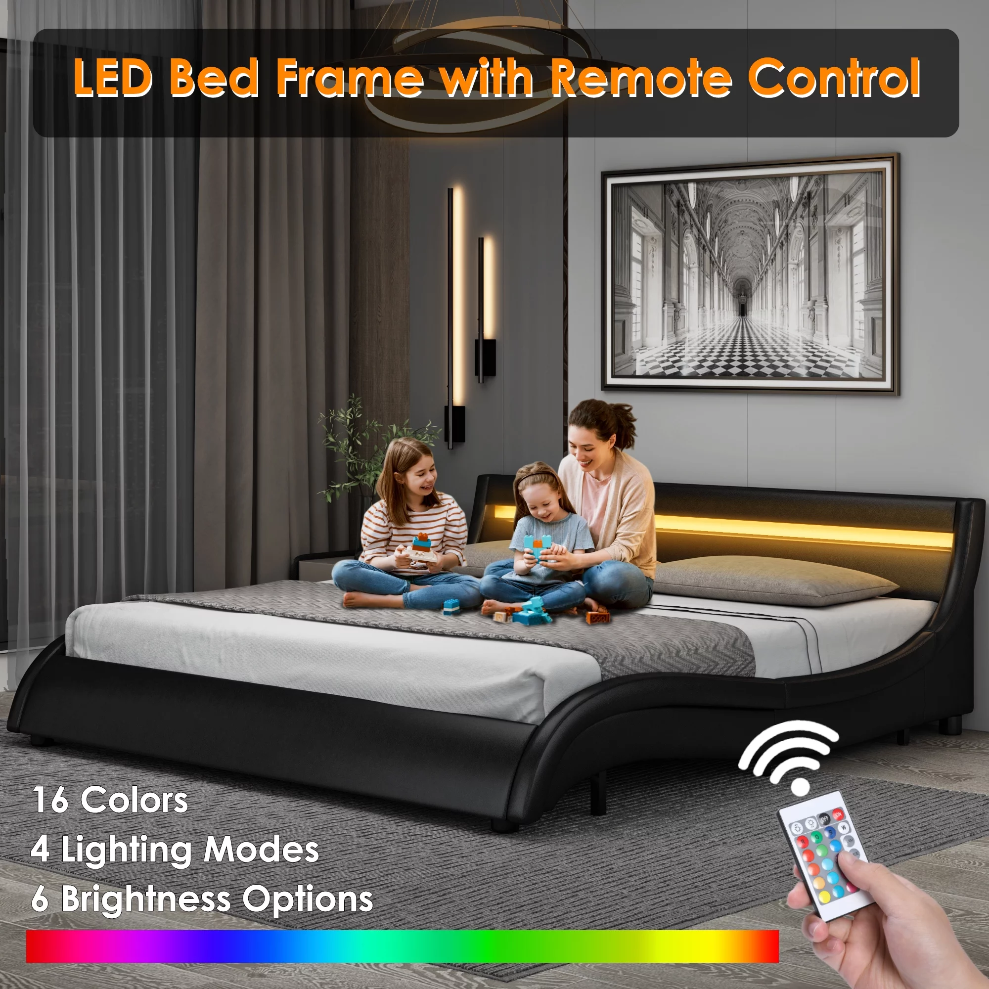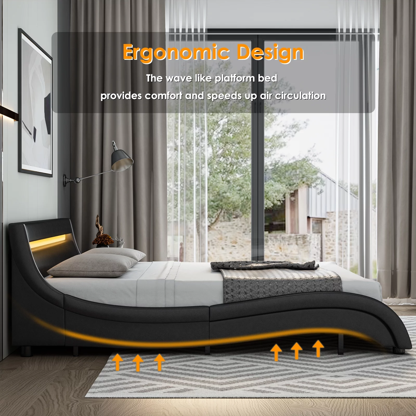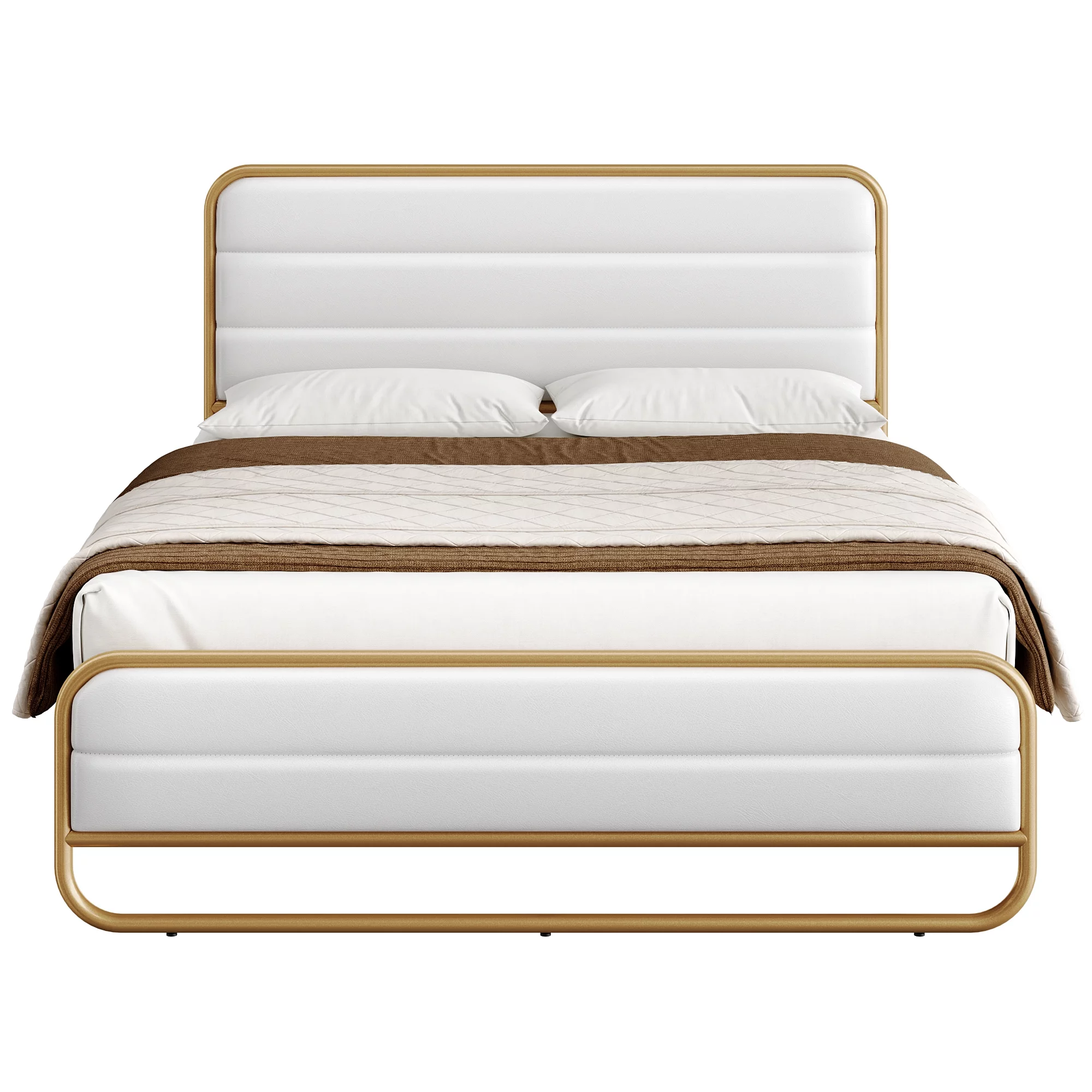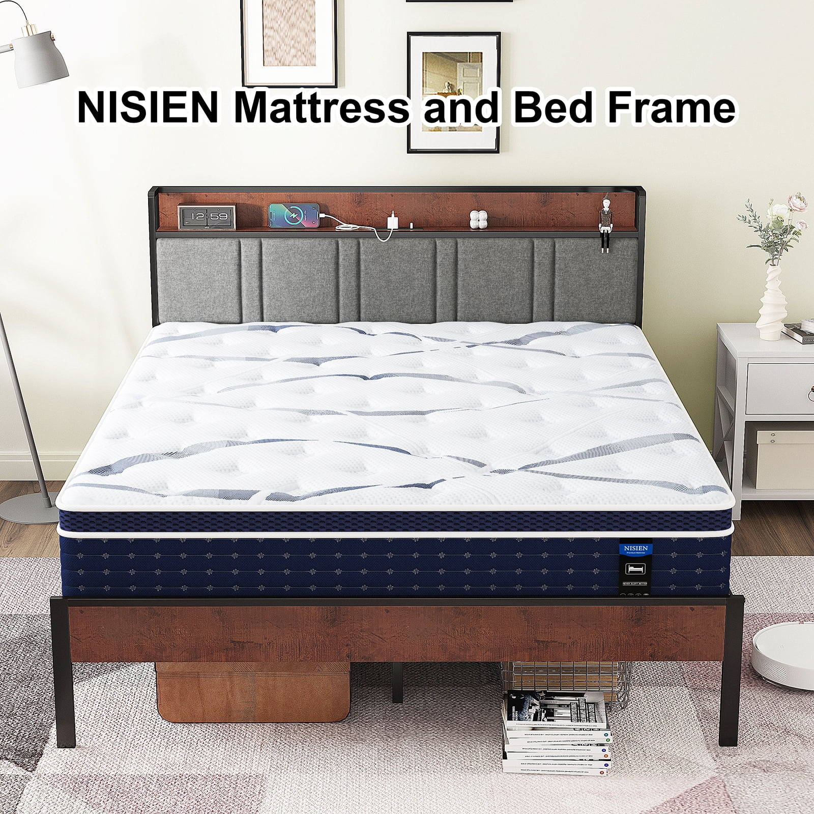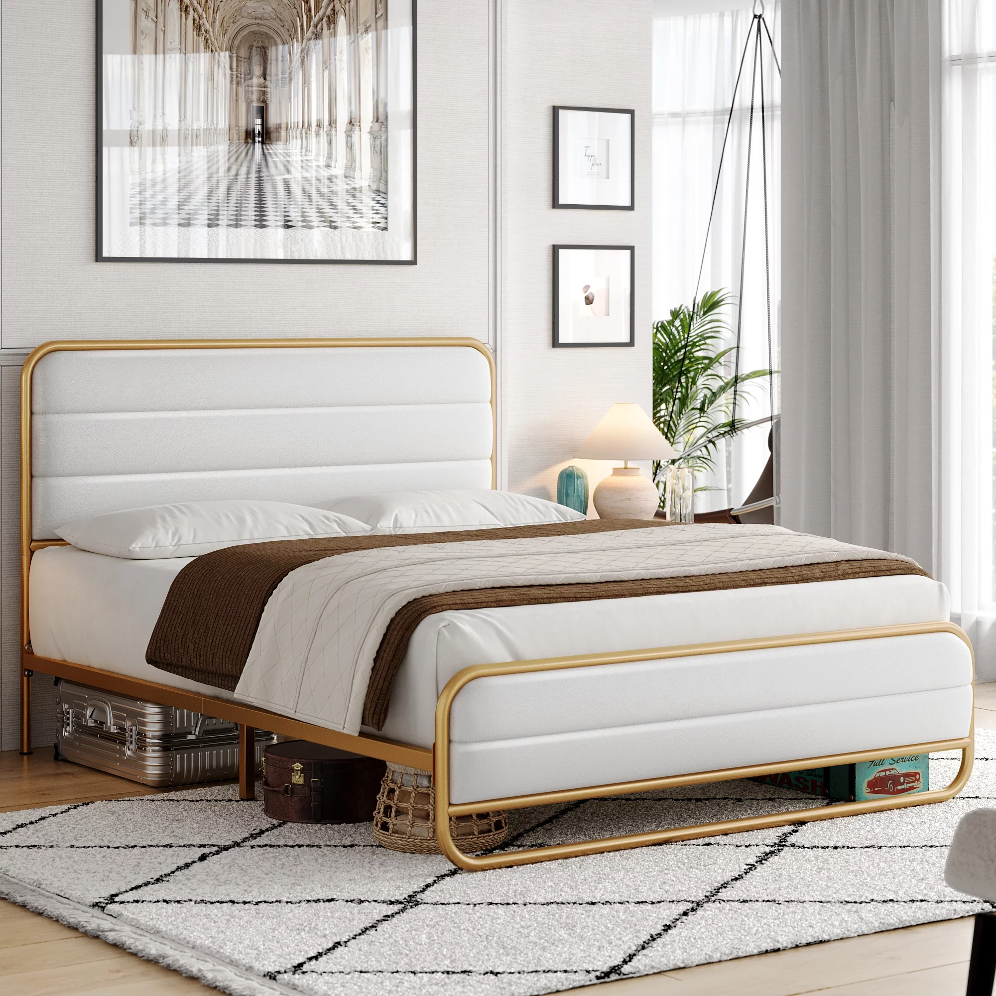Aiho Queen Metal Platform Bed Frame with Wooden Headboard and 11'' Under-Bed Storage, Easy Assembly- Retro