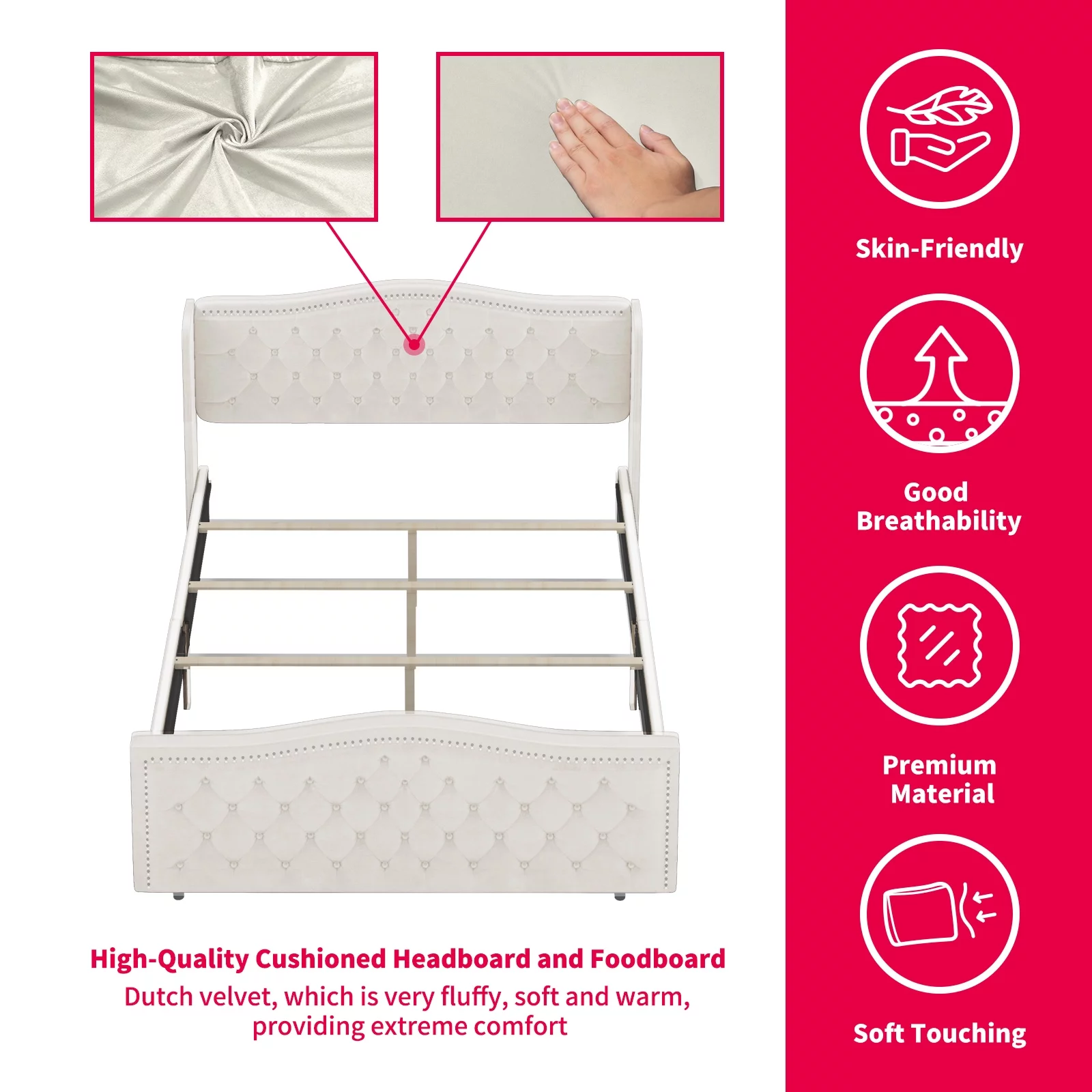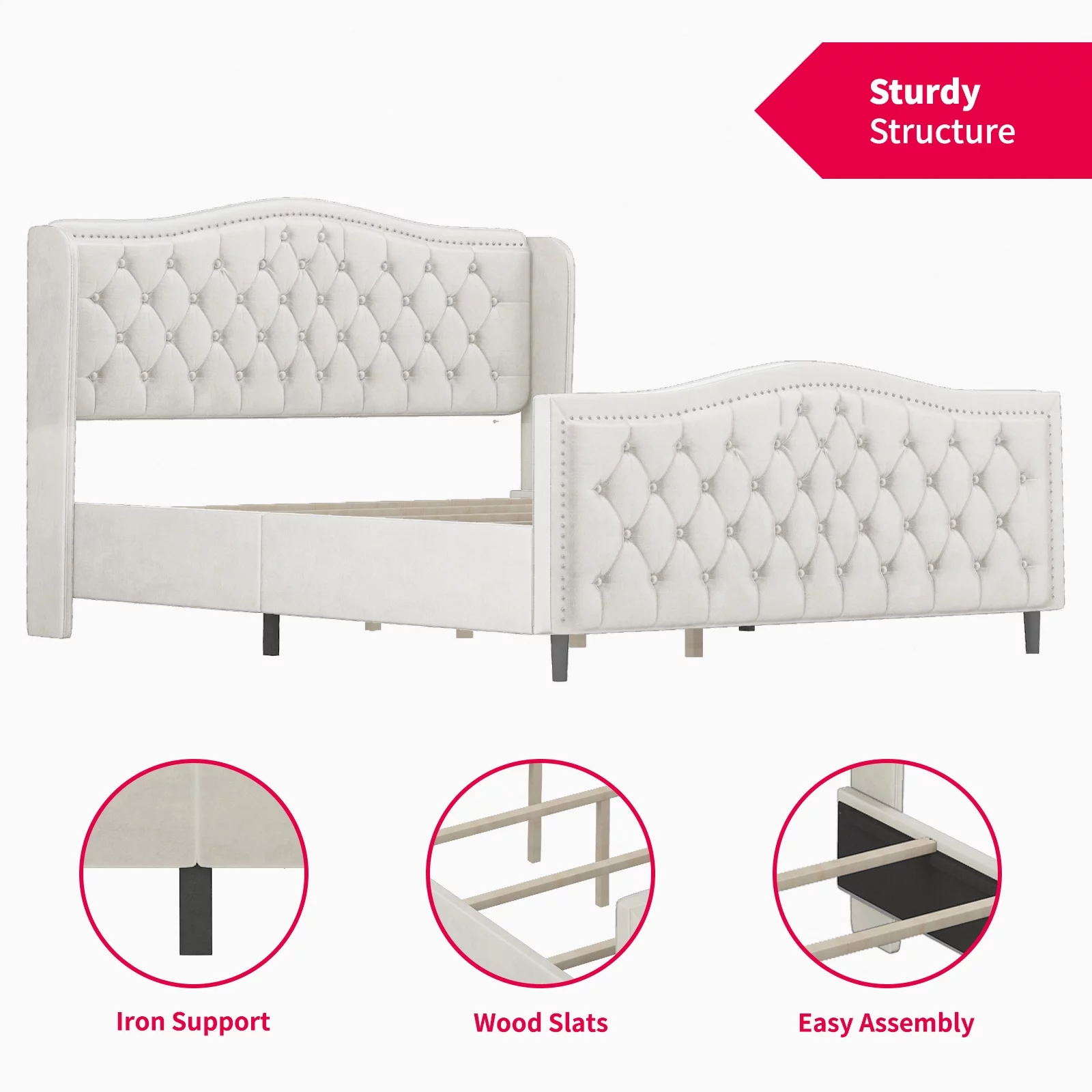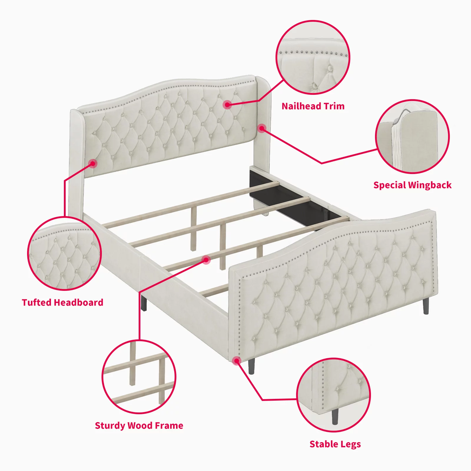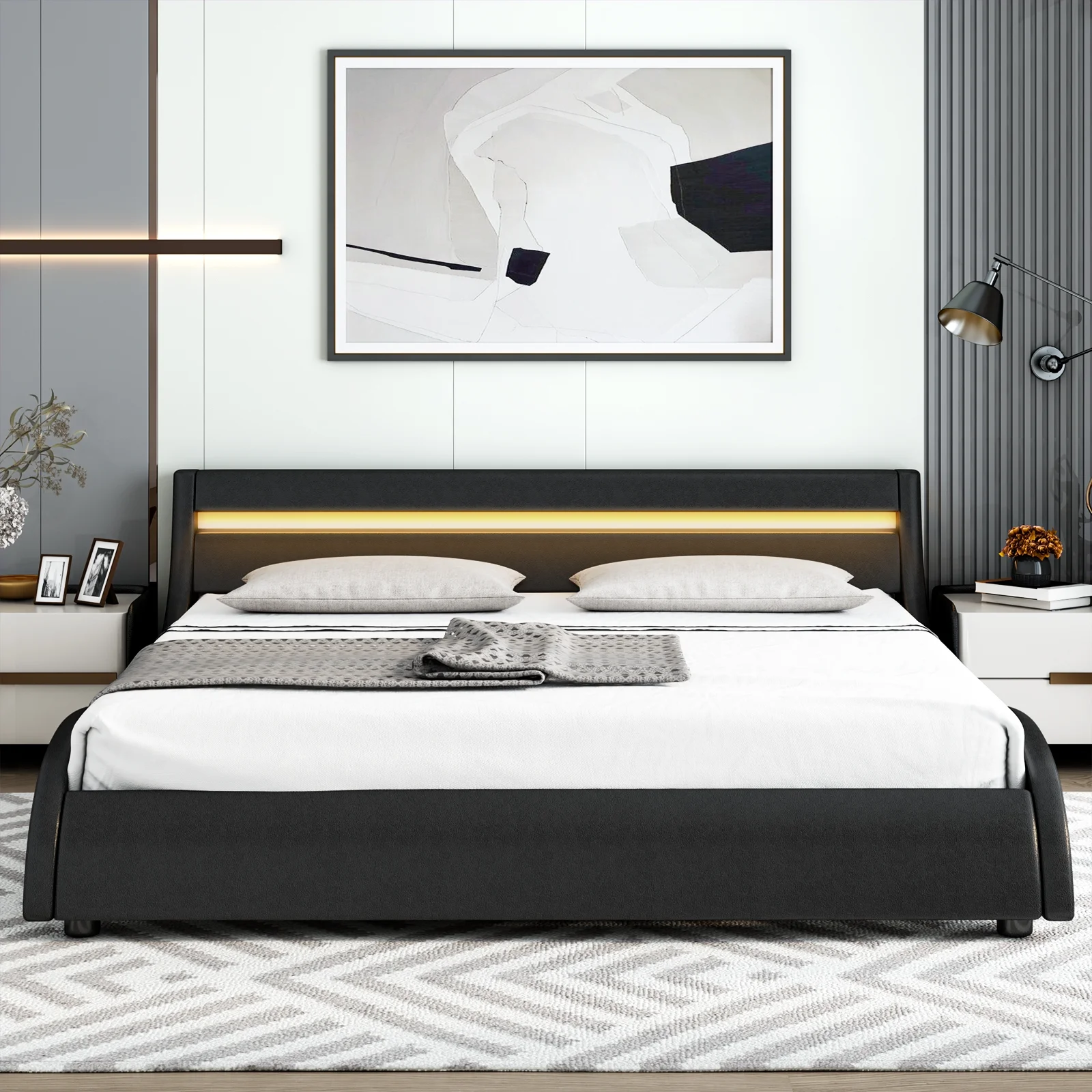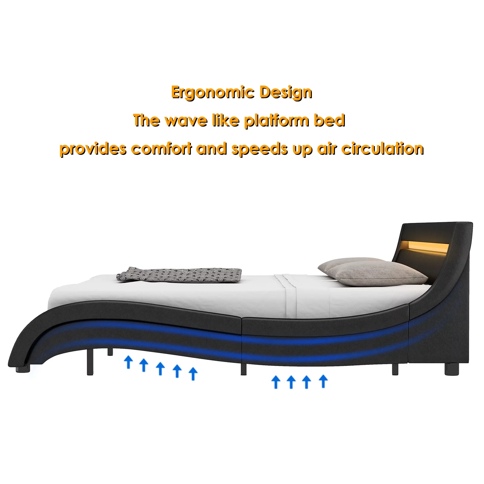Aiho Queen Metal Platform Bed Frame with Wooden Headboard and 11'' Under-Bed Storage, Easy Assembly- Retro