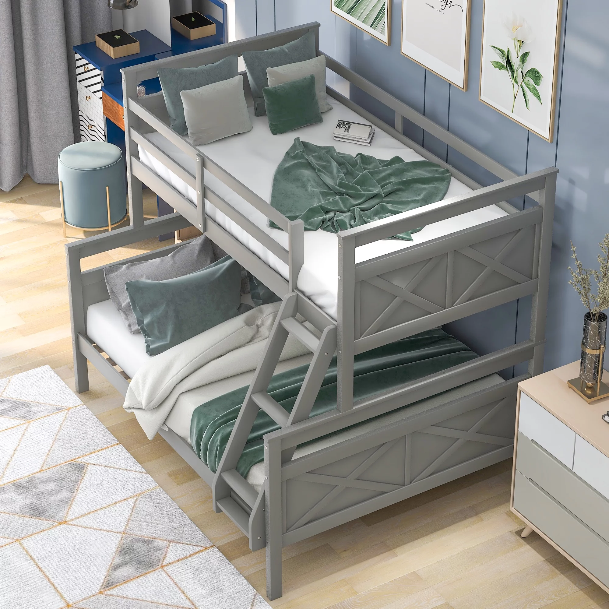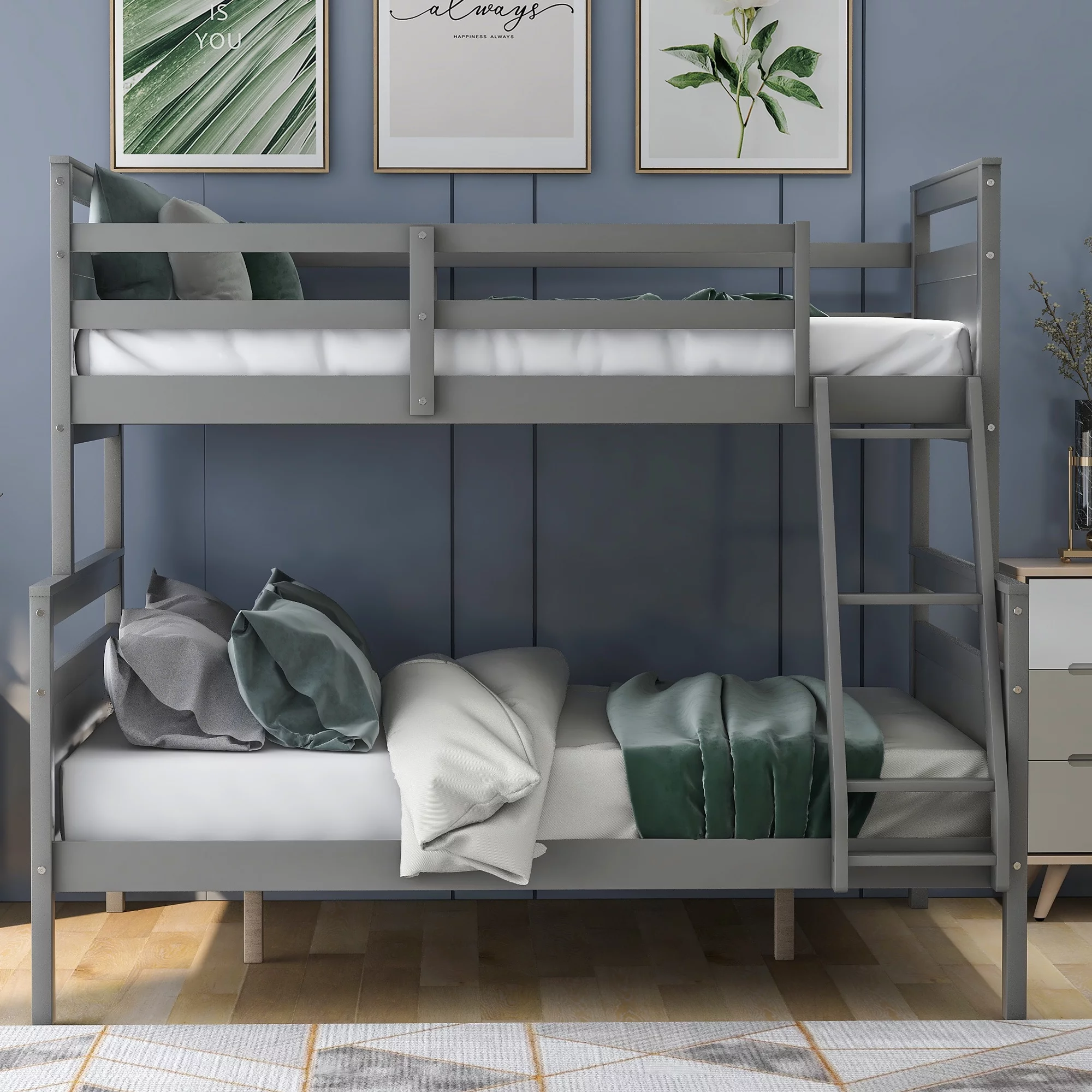 Euroco Twin over Full Wood Bunk Bed with Ladder for Kid's Room, Solid Bunk Bed for Kids Teens Adults, Gray
