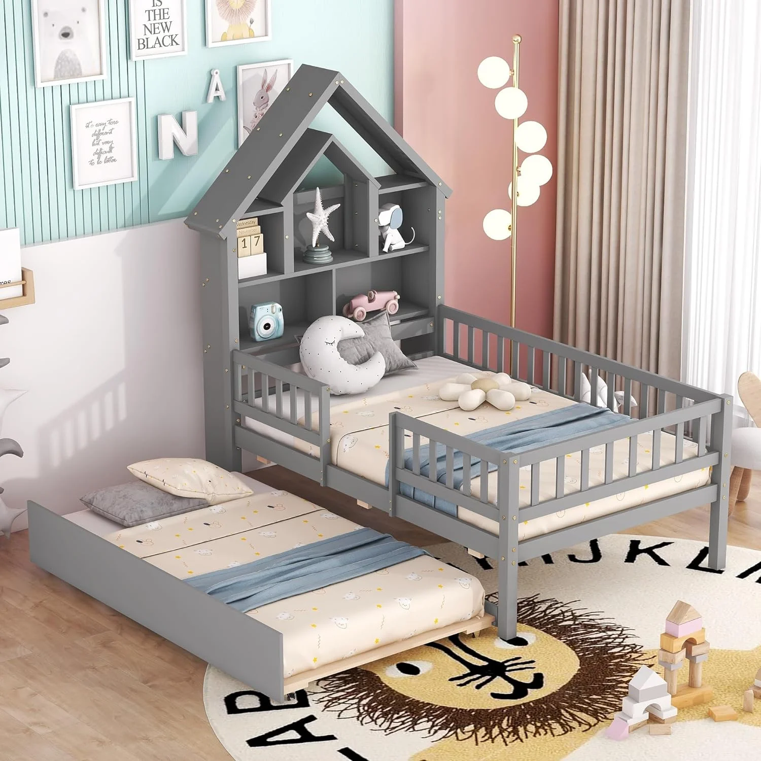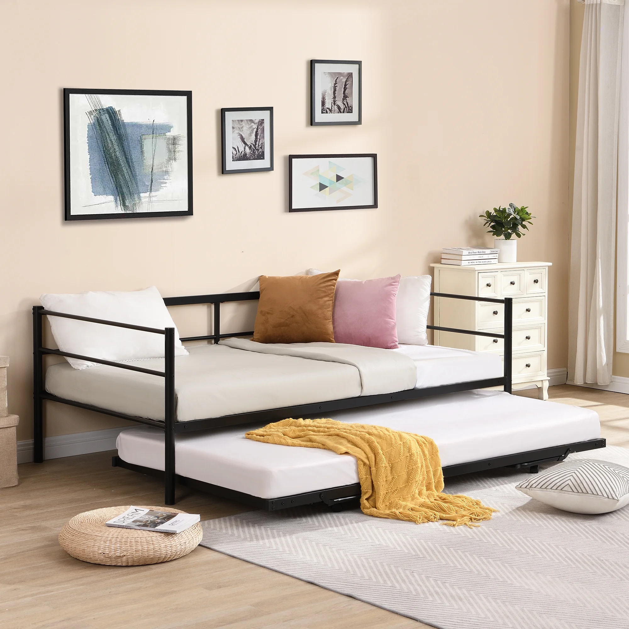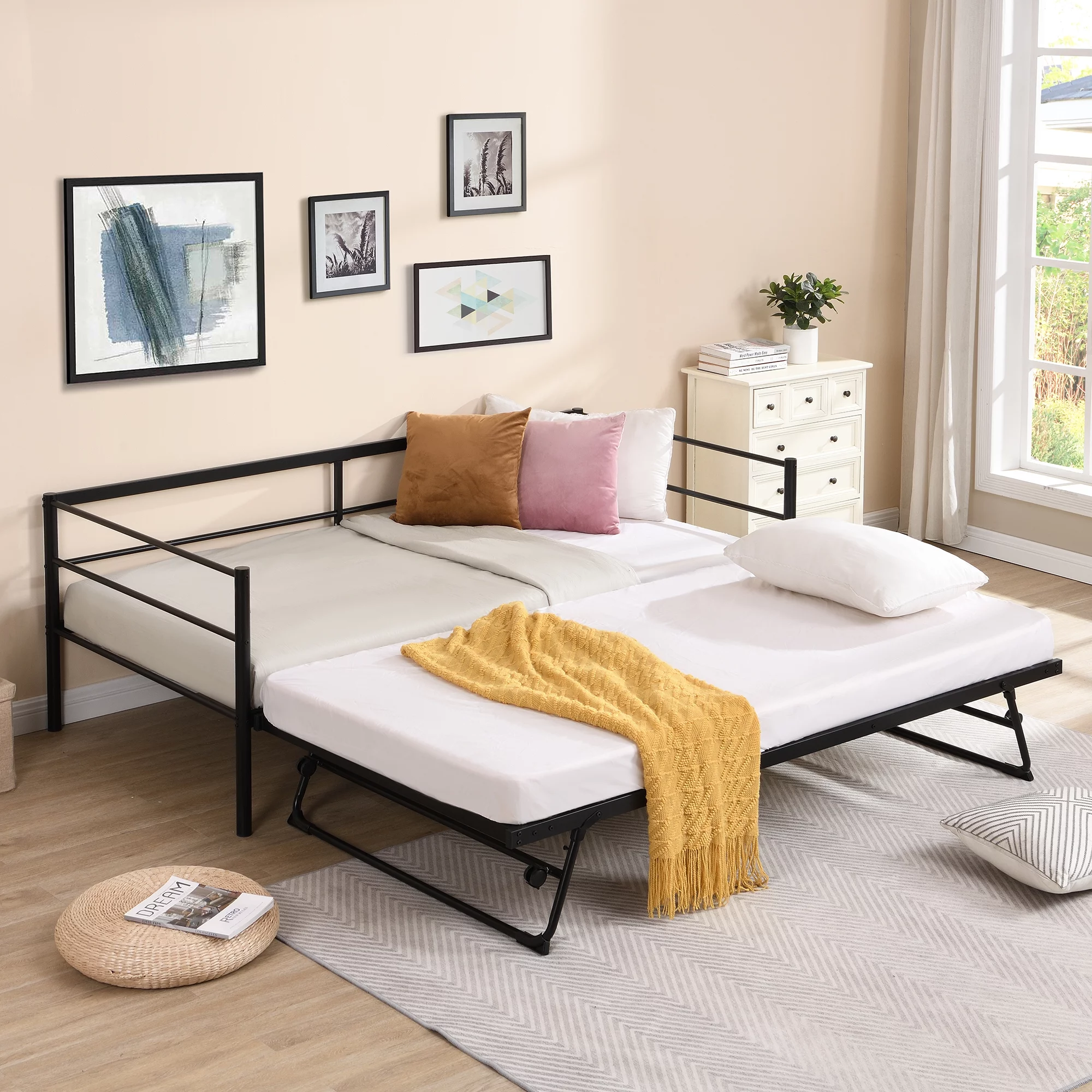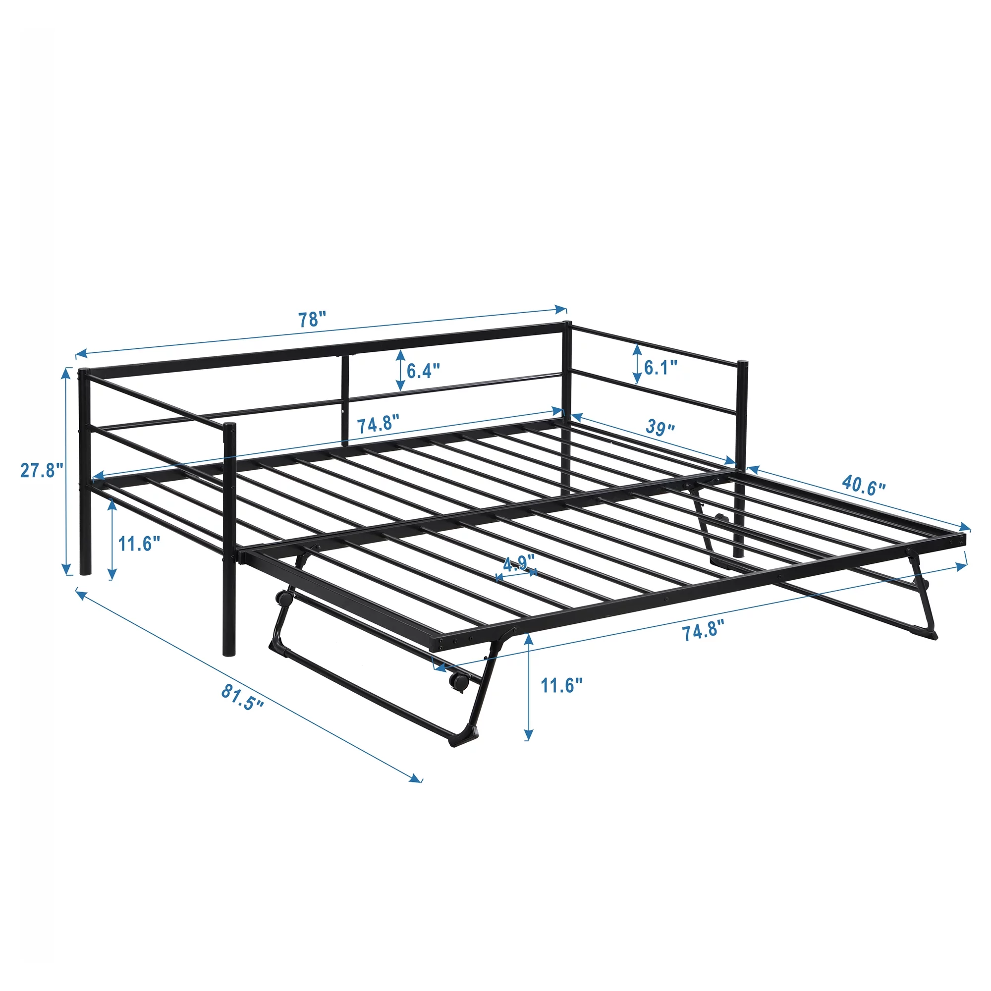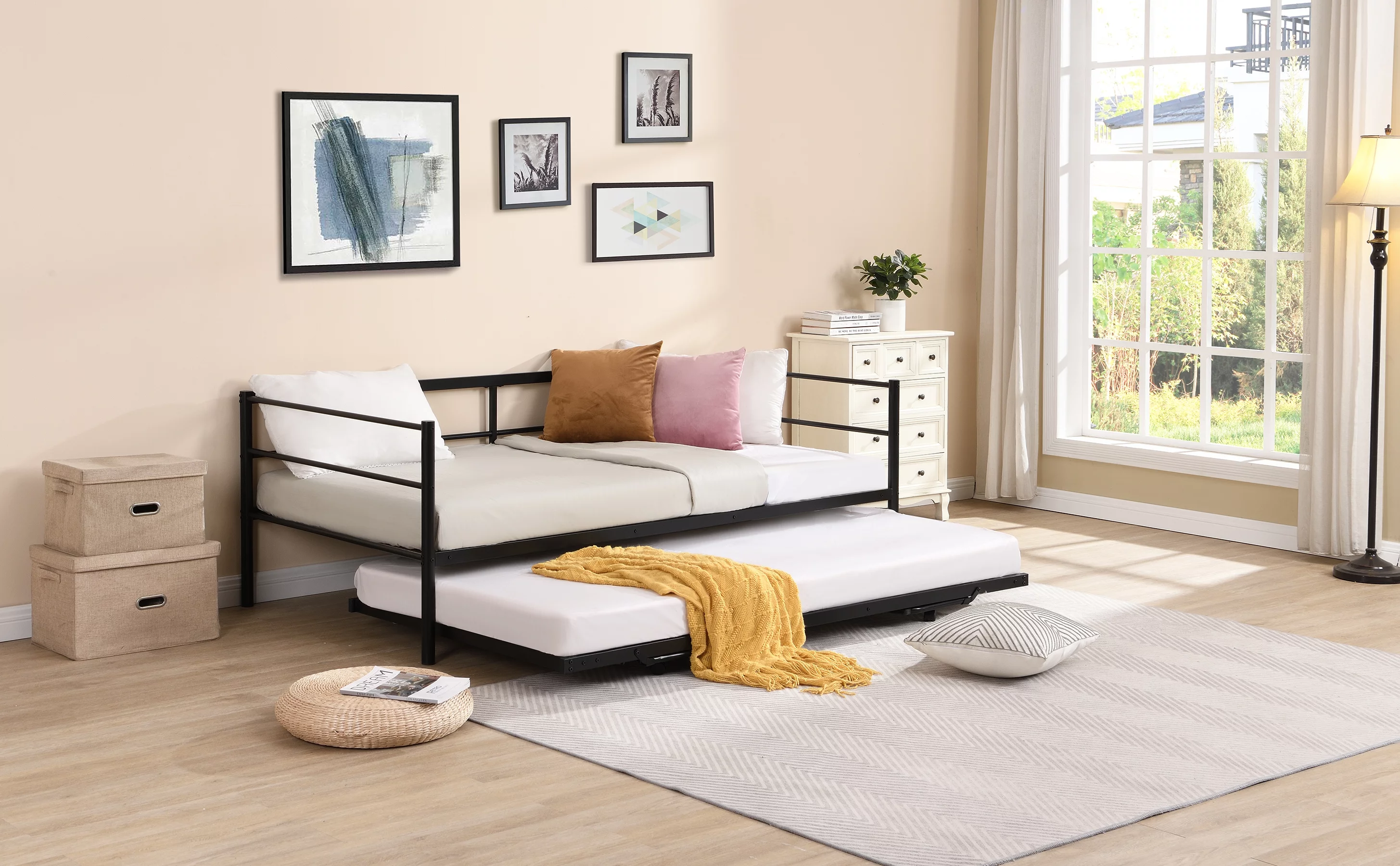 EUROCO Twin Size Upholstery DayBed with Convertible Trundle and USB Charging Station, Gray