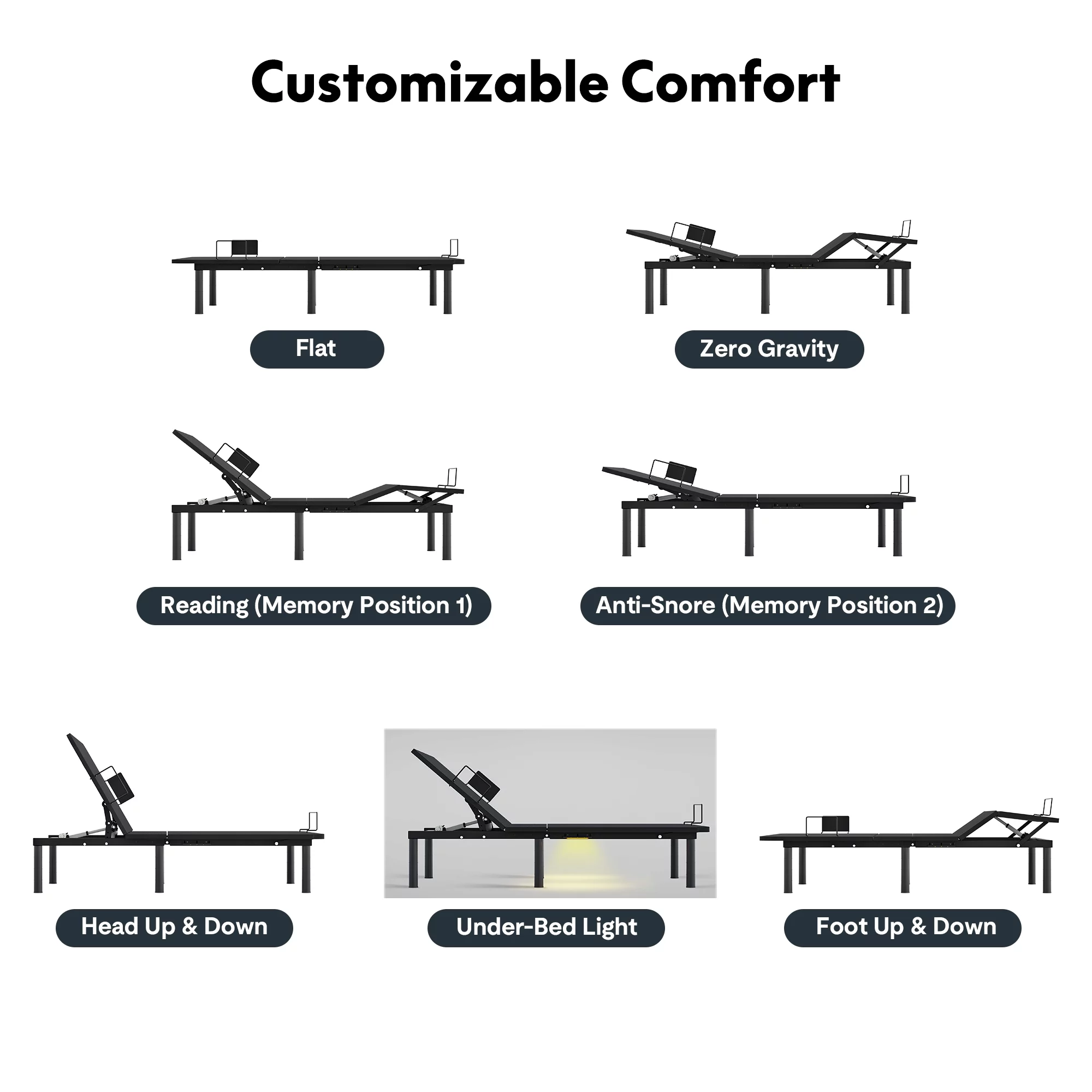 FLEXISPOT Zero Clearance Queen Adjustable Bed Frame Base with Wireless Remote,Zero Gravity, Mattress Holder, Anti-Snore