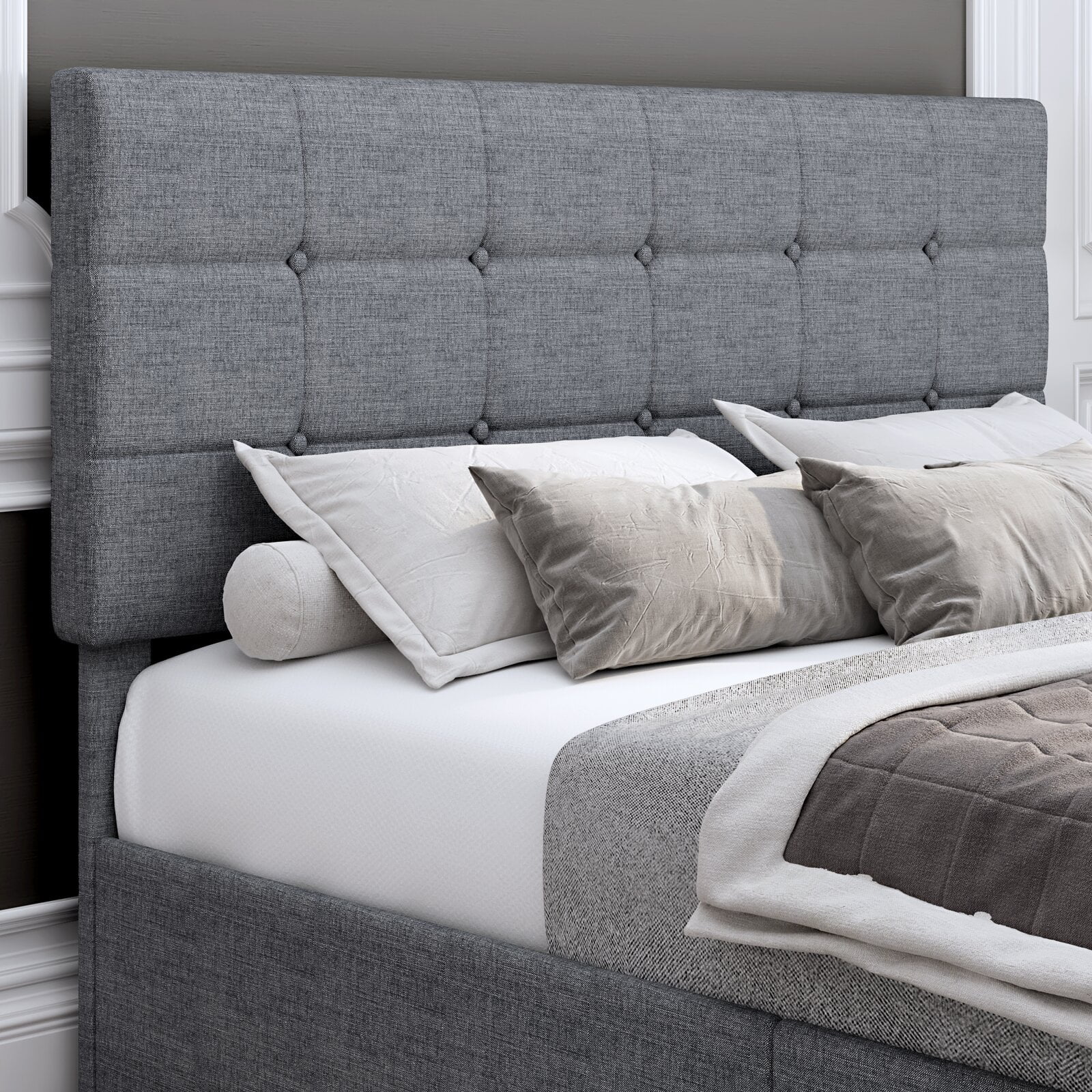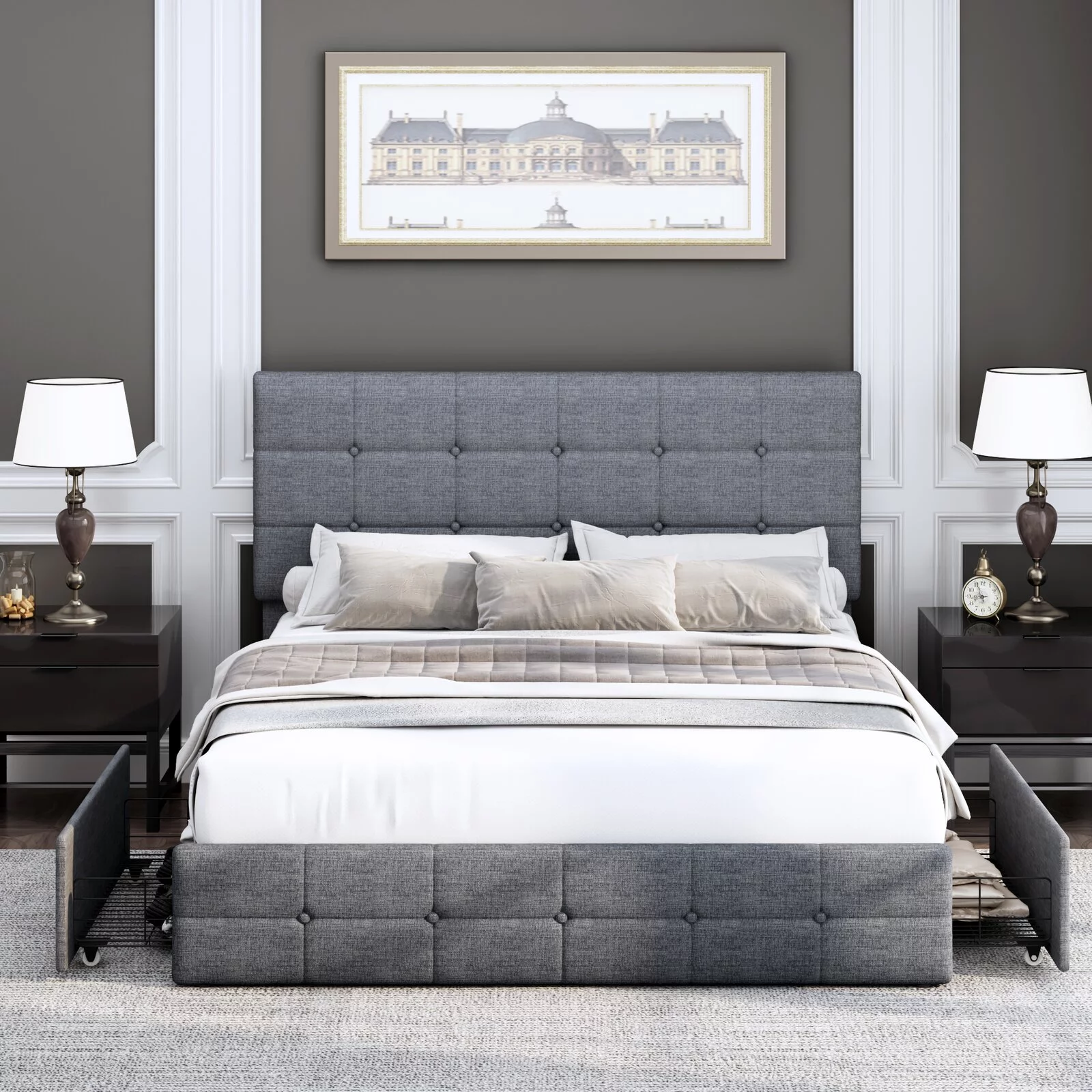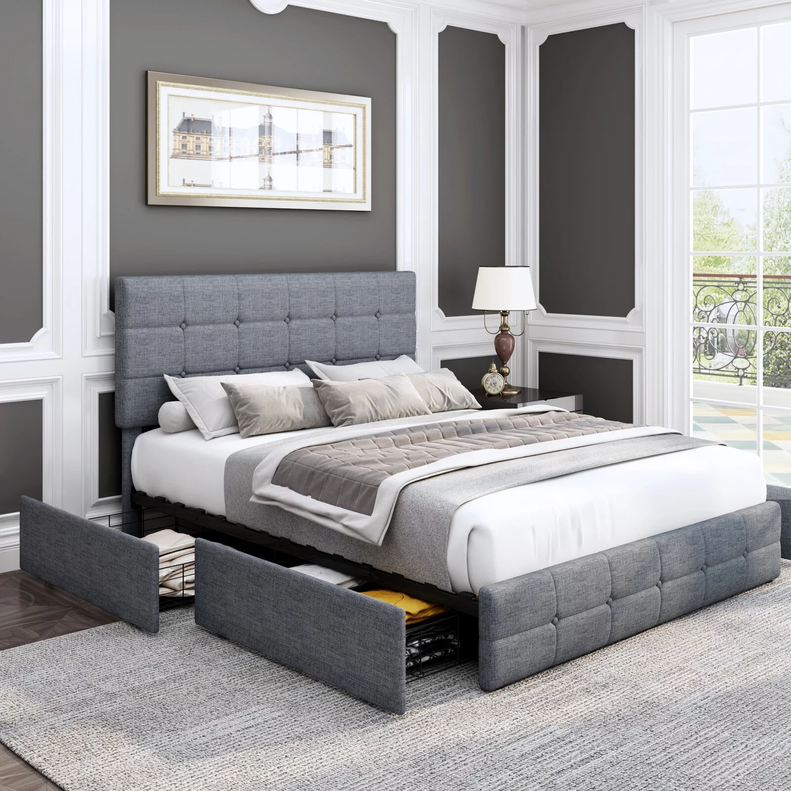 Lofka Queen Bed Frame with Adjustable Headboard and 4 Storage Drawers, 880lbs No Box Spring Dark Gray
