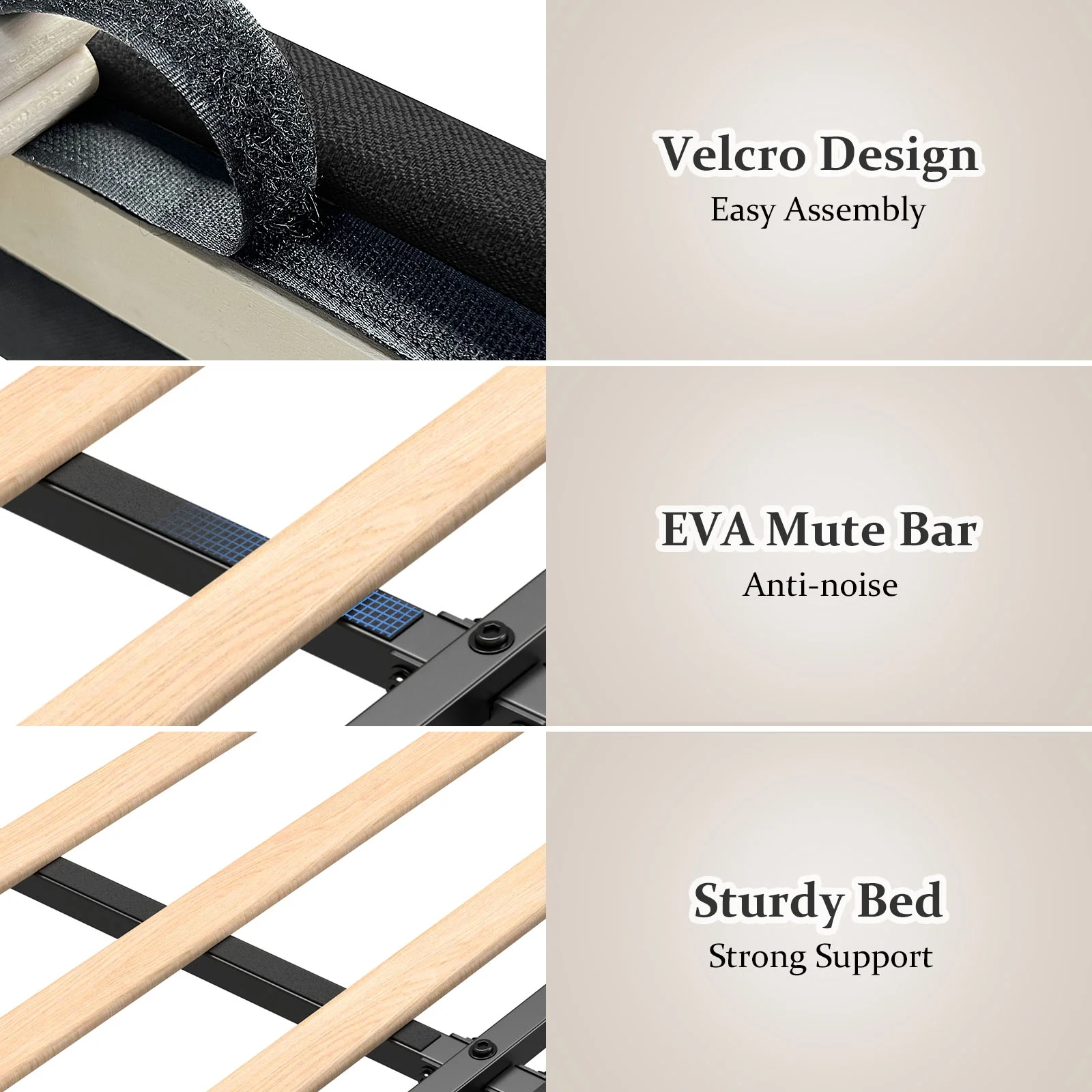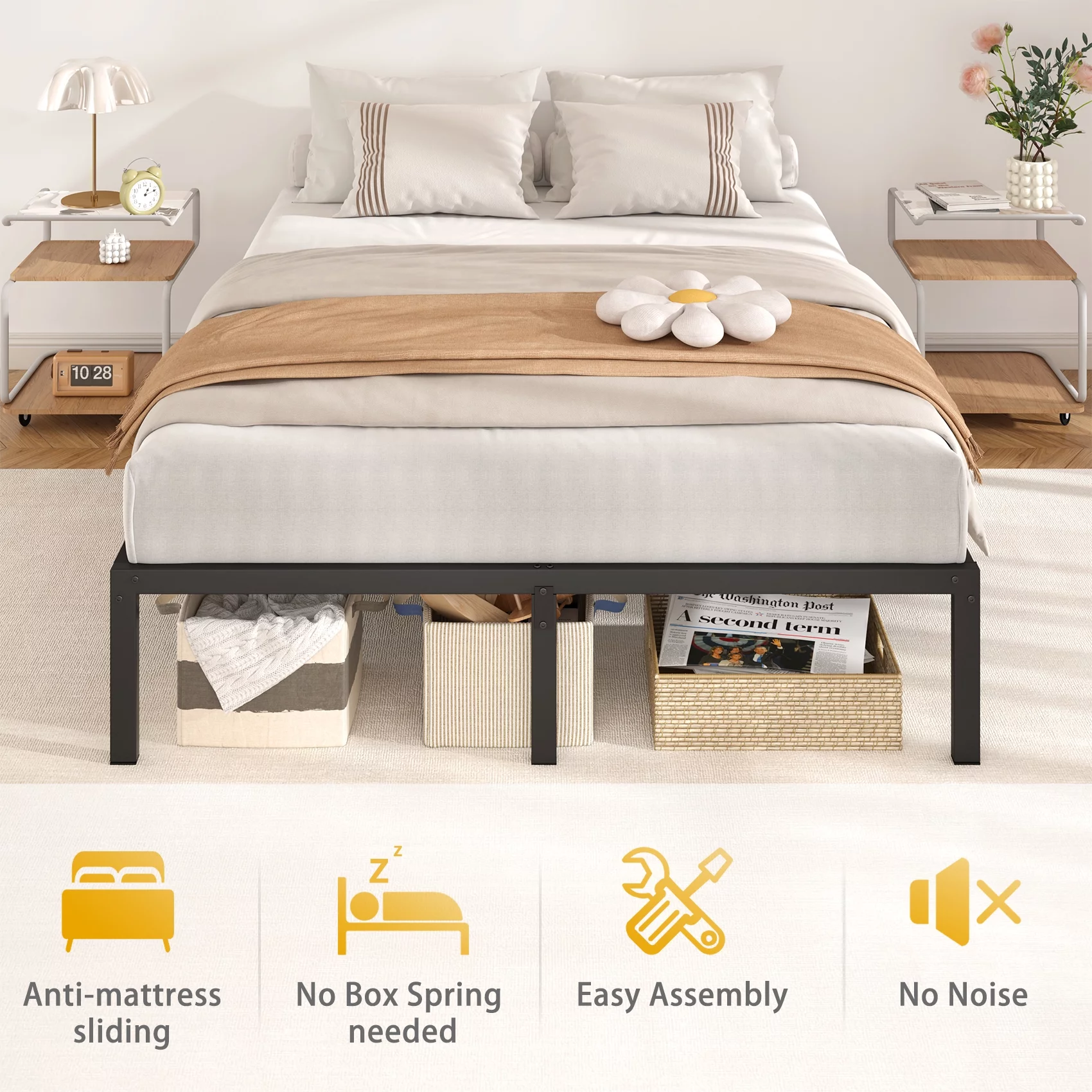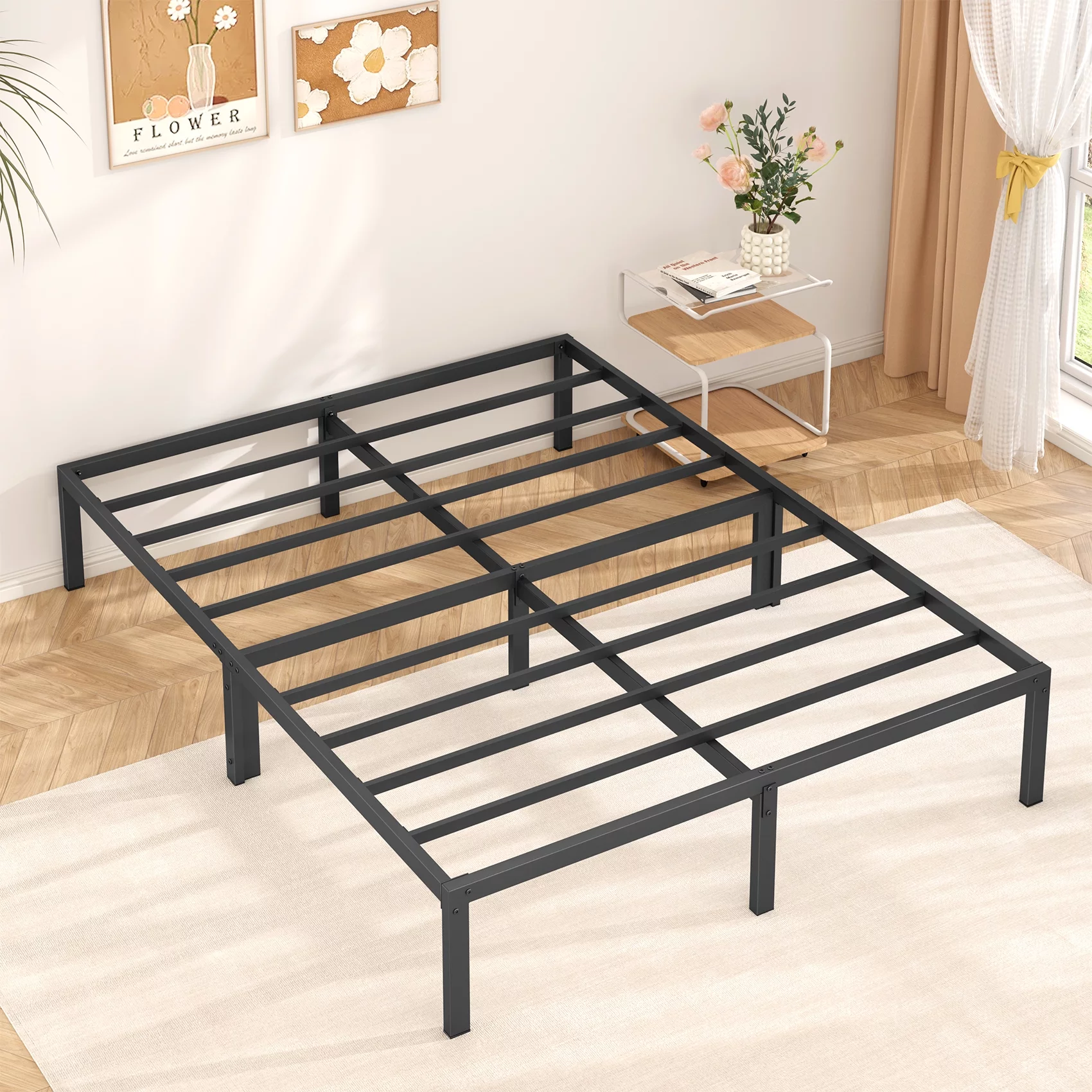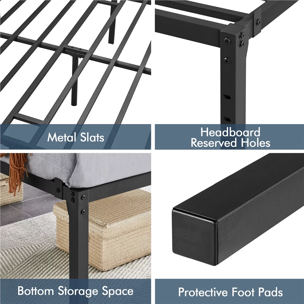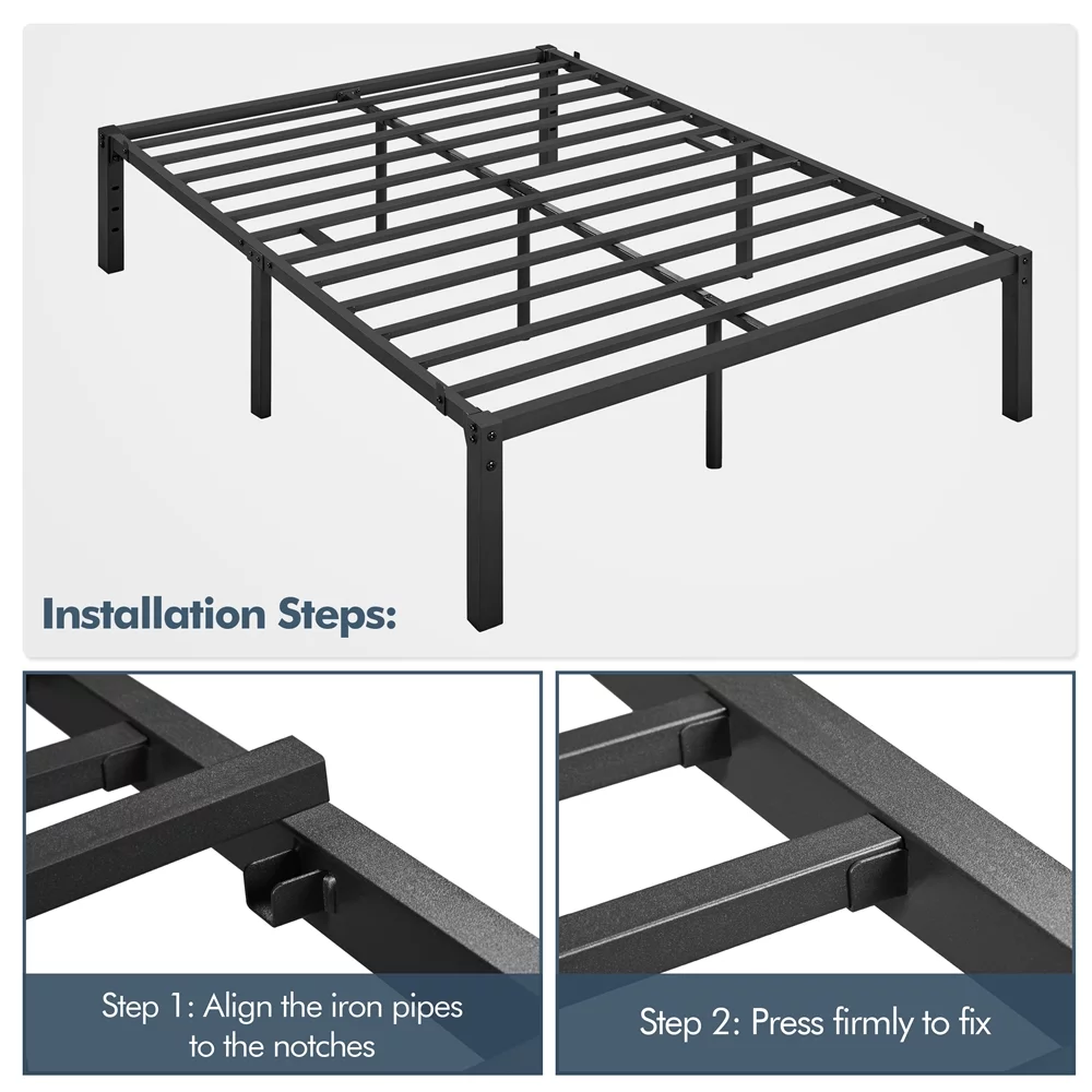 QFTIME 14" Queen Metal Bed Frame with Steel Slats, Heavy Duty Mattress Foundation