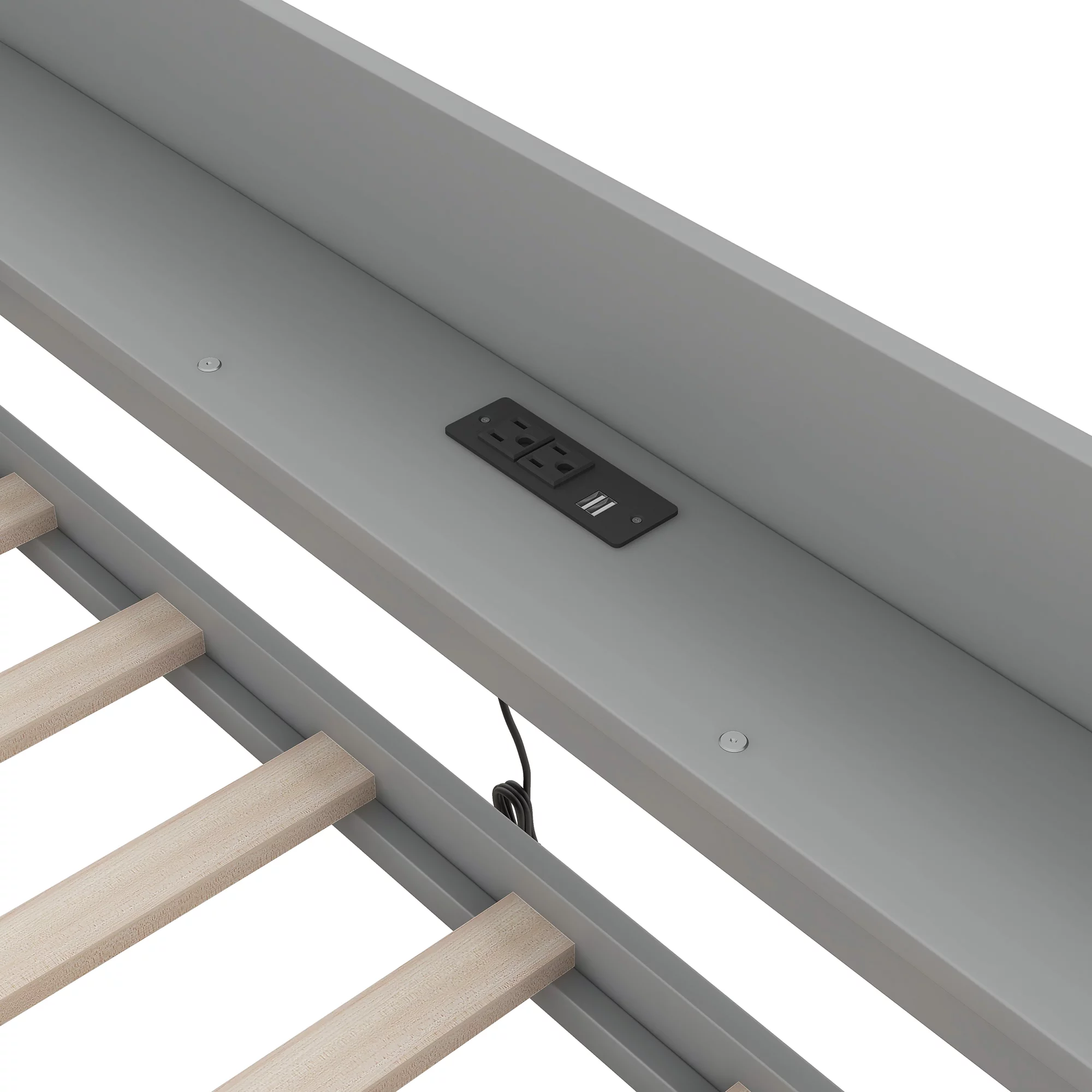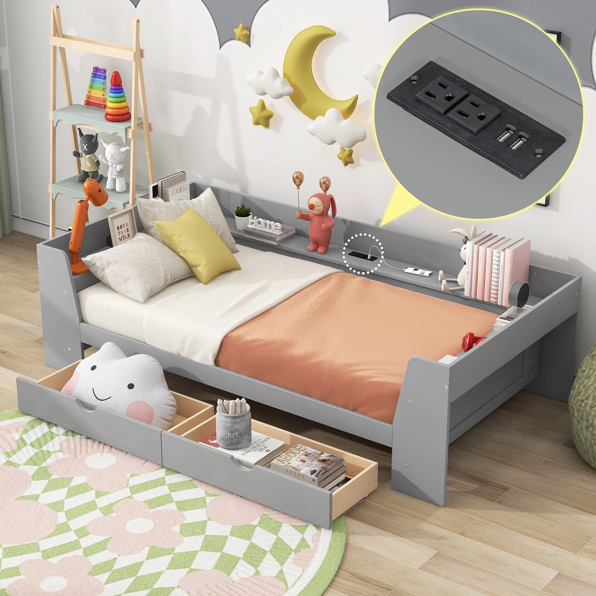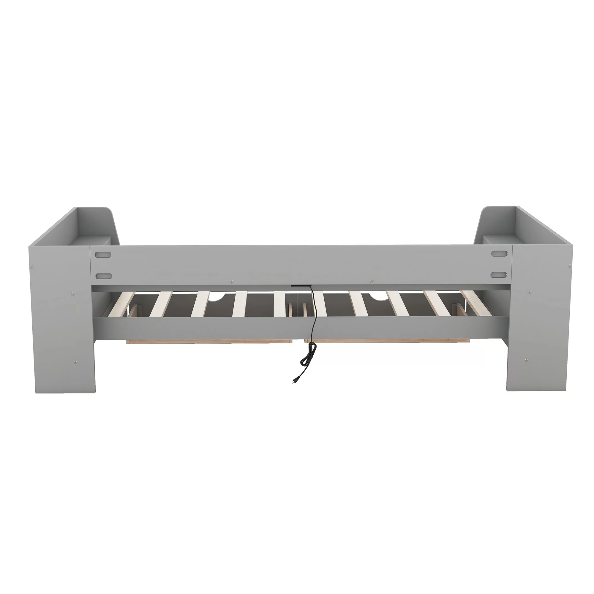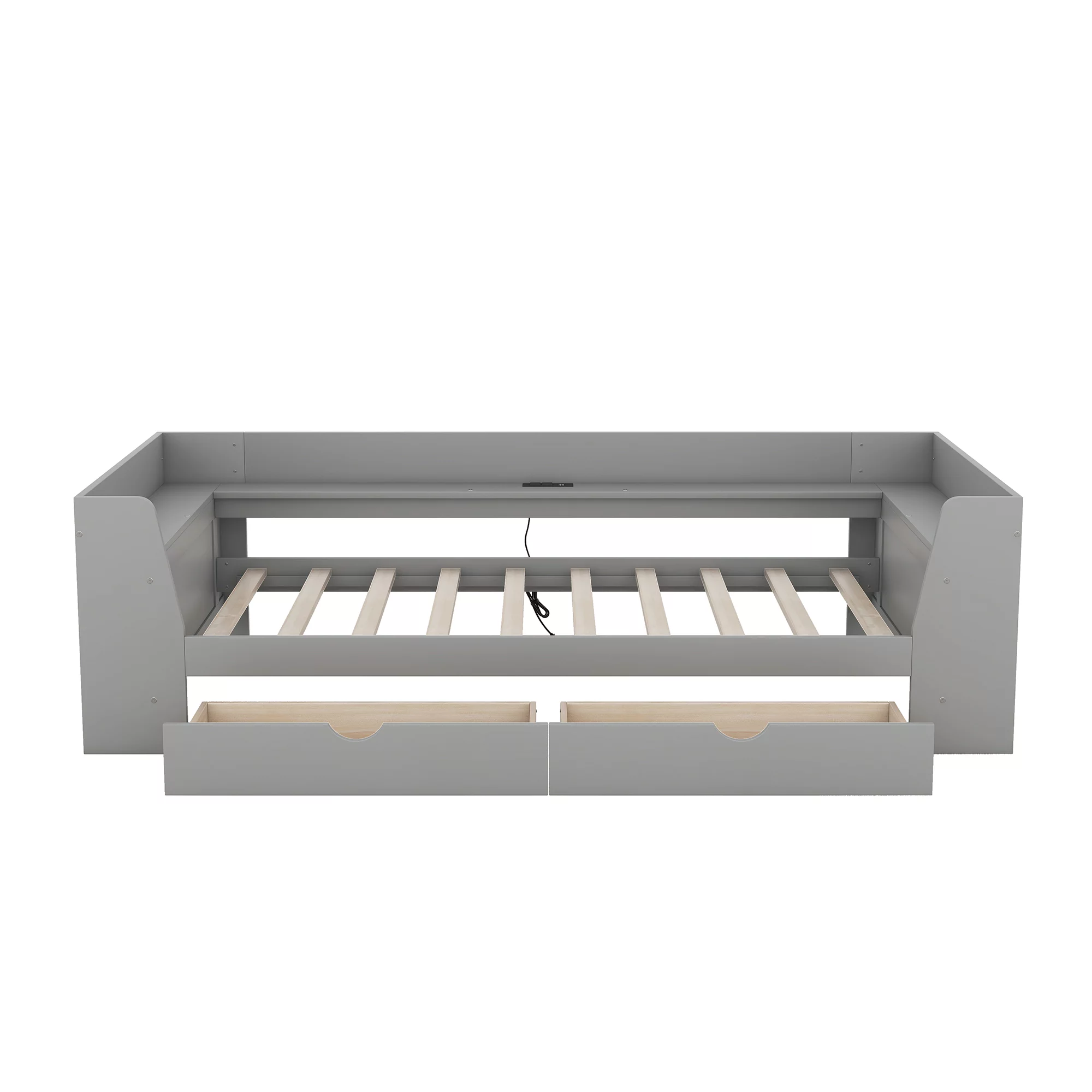 Euroco Twin Size Daybed with Shelf, Drawers and Charging Station, Gray