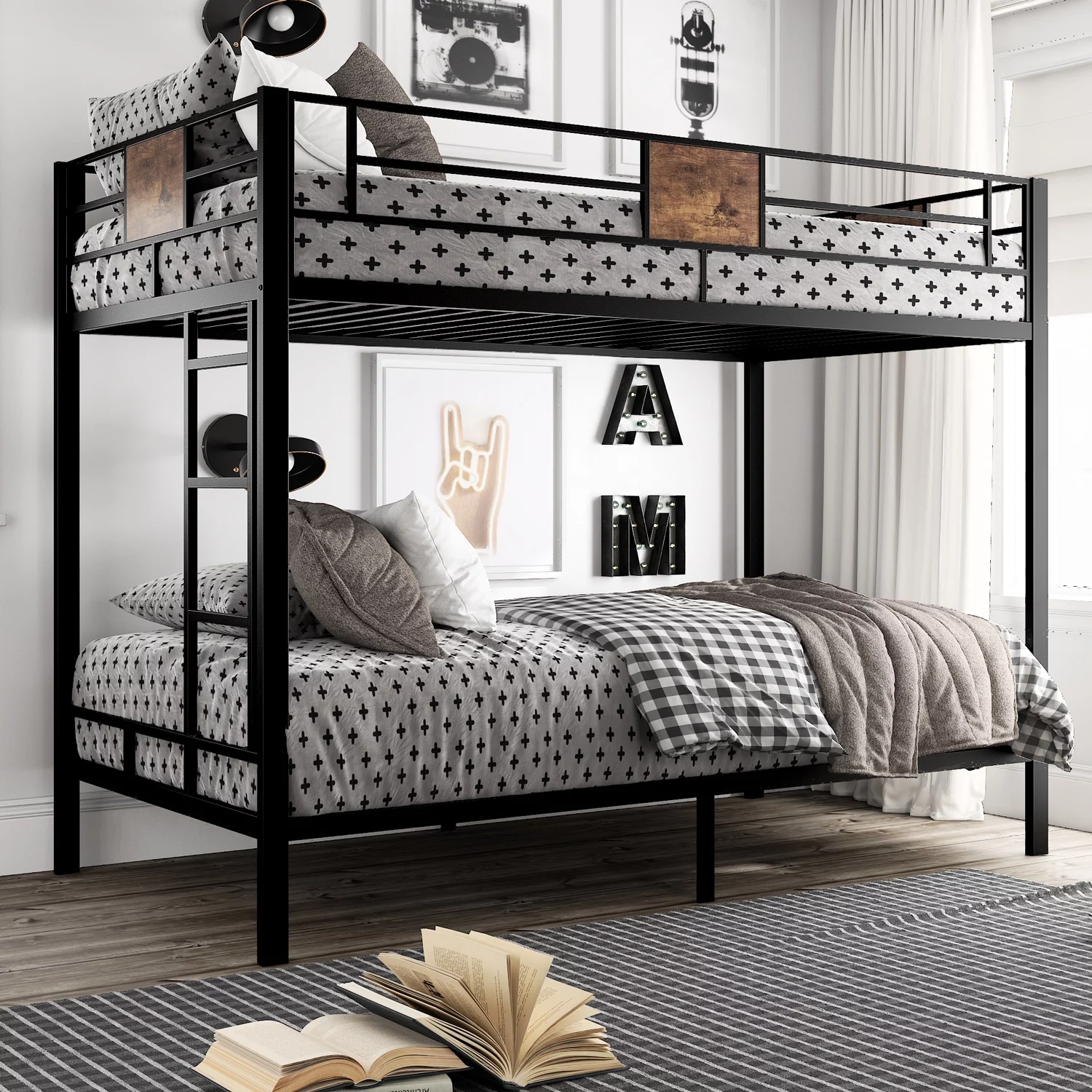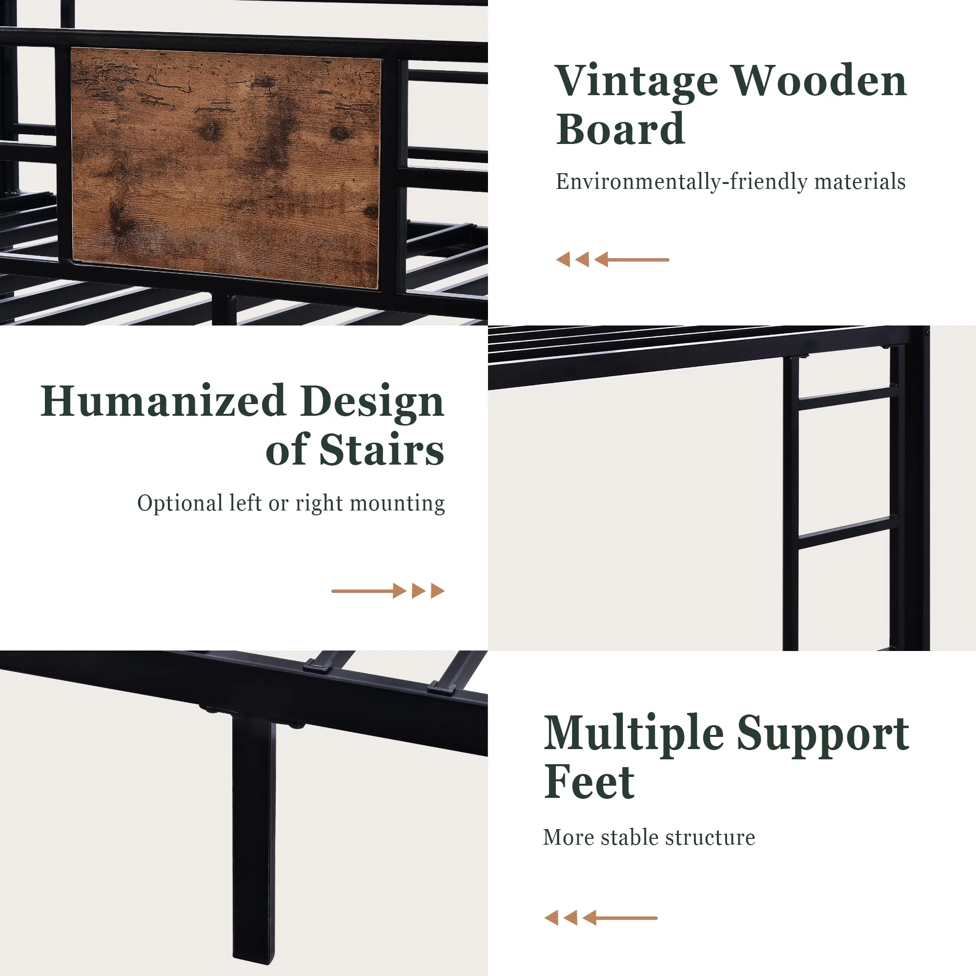 Sha Cerlin Black Twin over Full Size Metal Bunk Bed with Removable Durable Stairs