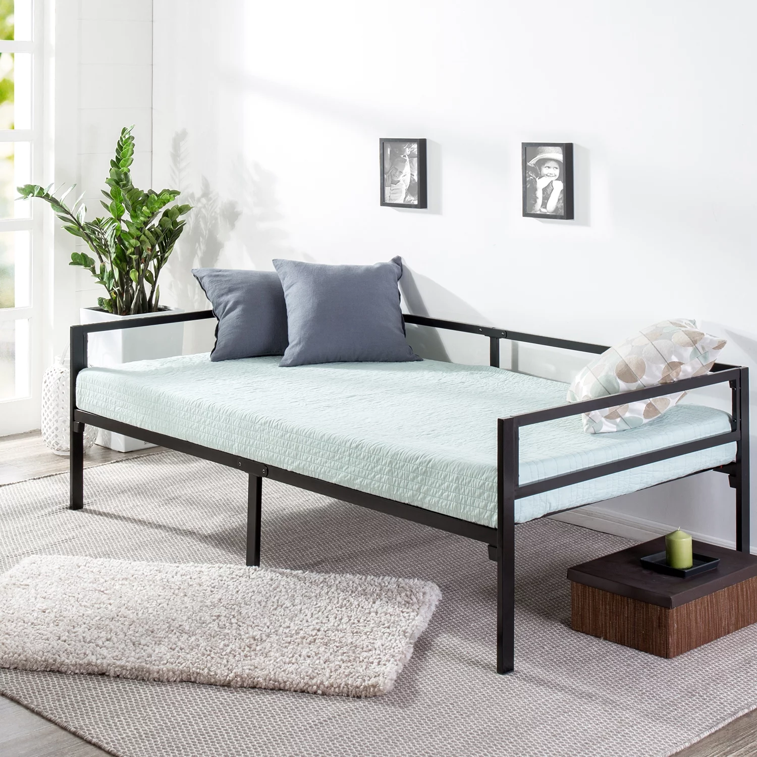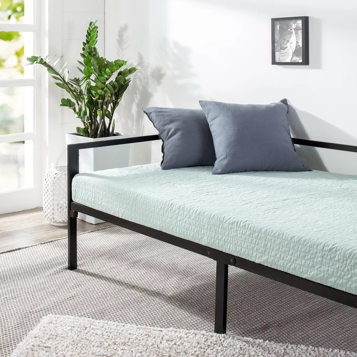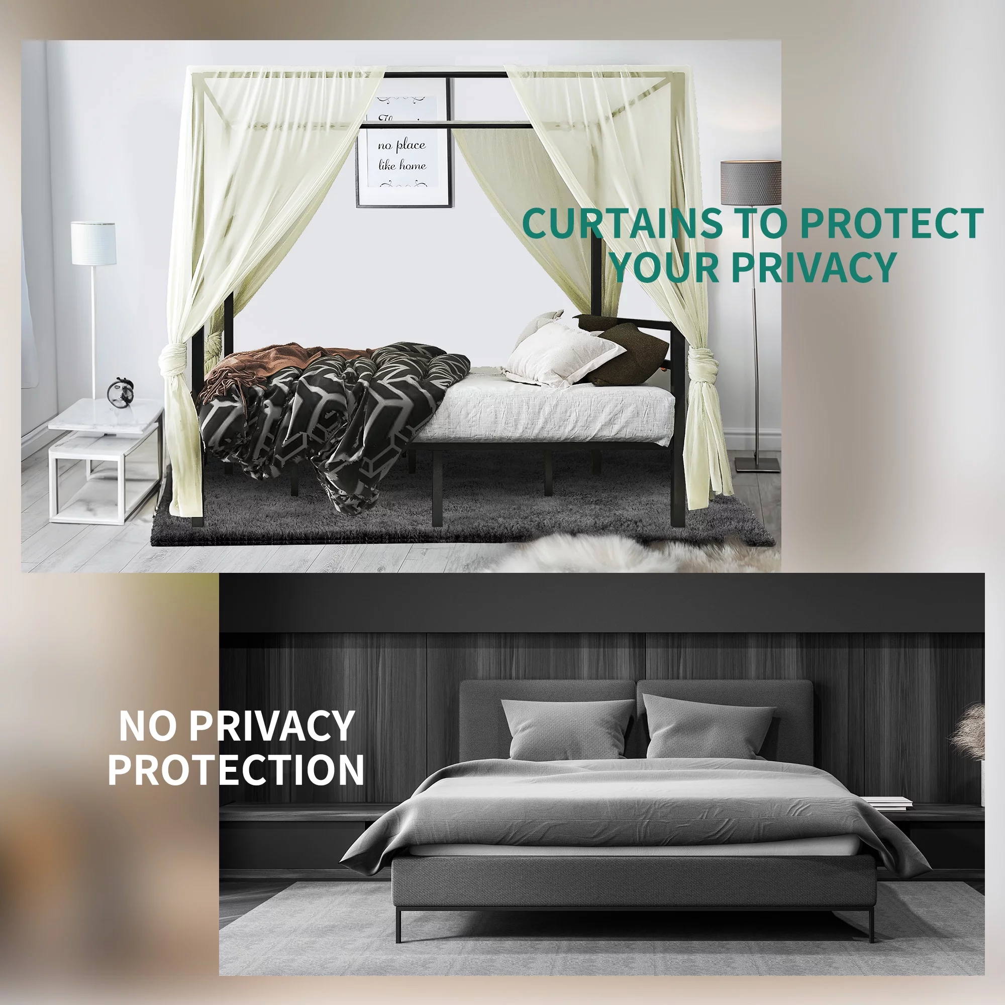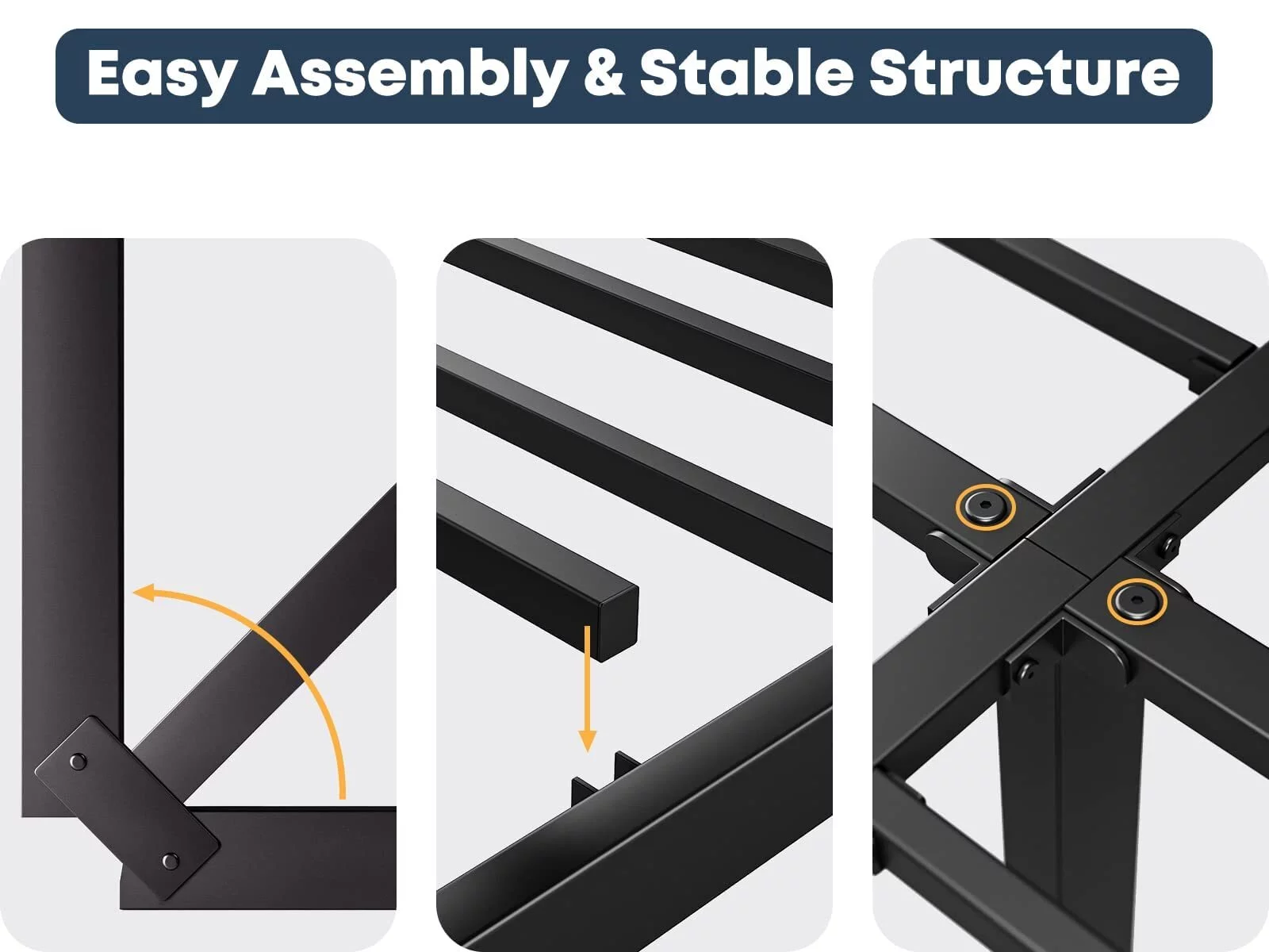 Alden Design Metal Platform Queen Bed Frame with Steel Slat Support for Home, Black