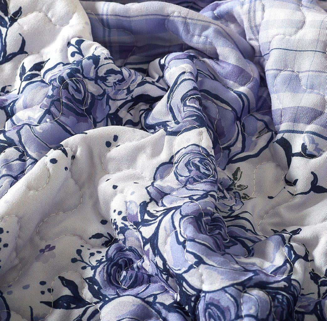 Virah Bella - Garden Walk in Bluebell - Lightweight Reversible 3-Piece Lodge Quilt Set with Decorative Pillow Shams.