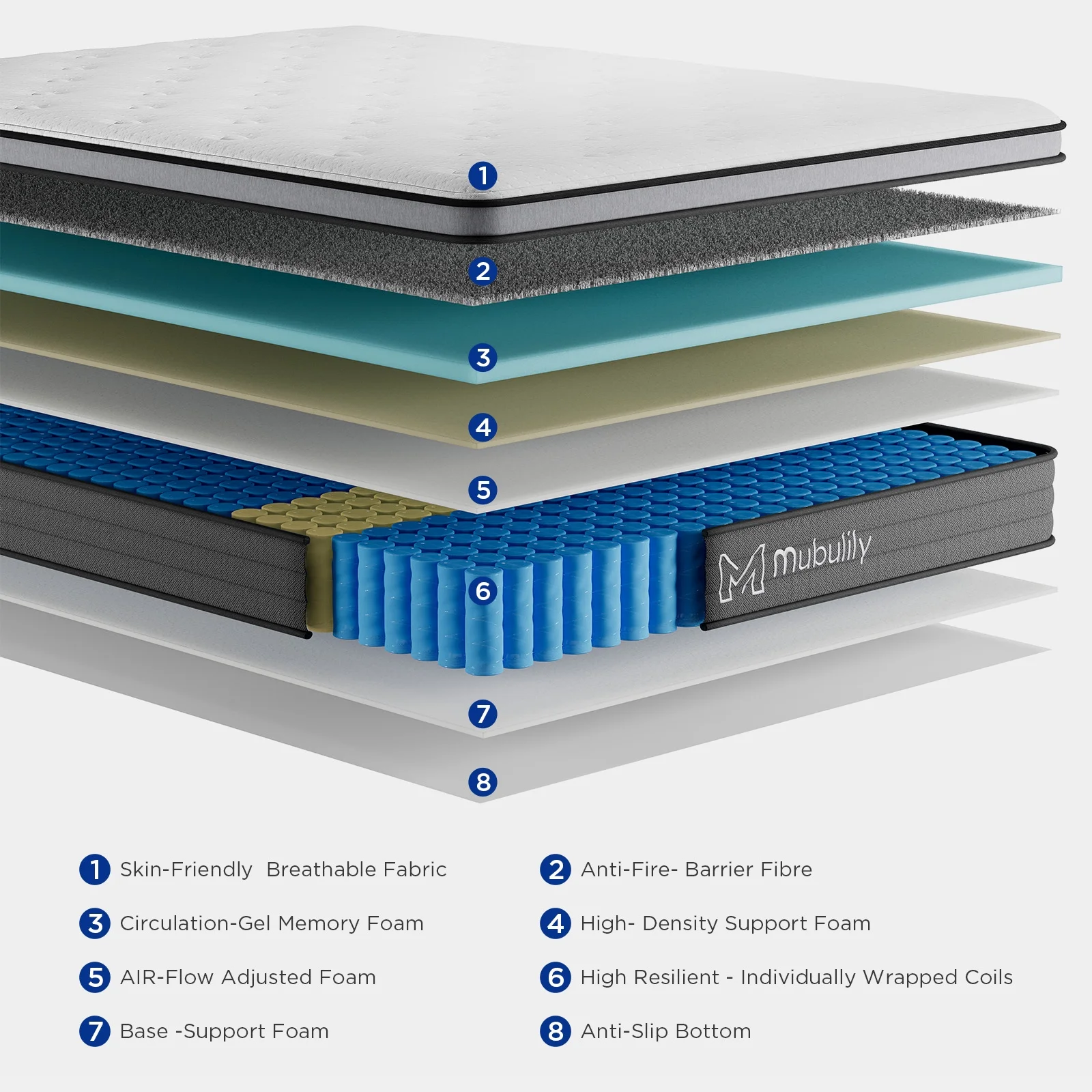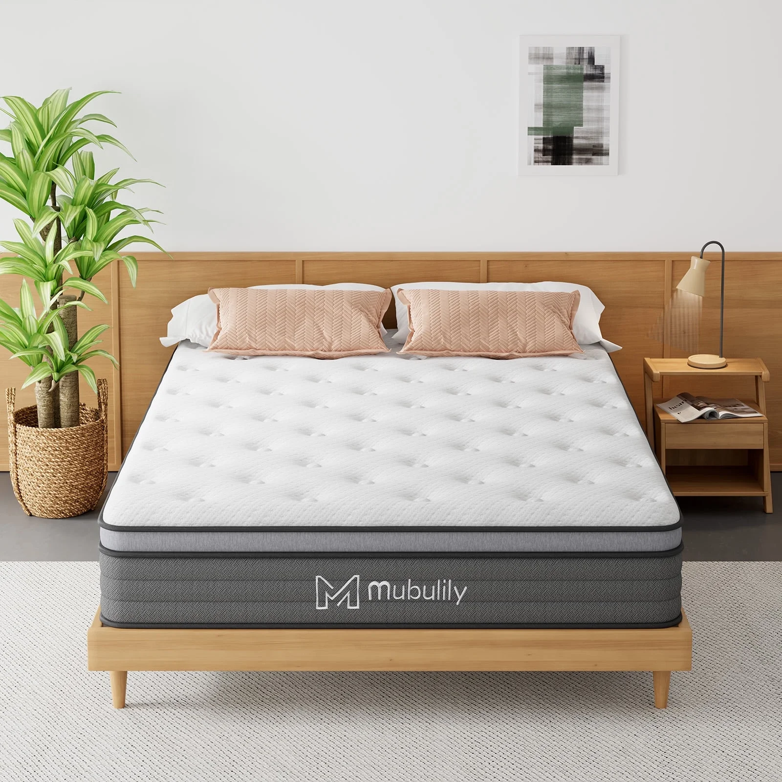 Mubulily Queen Mattress, 10 Inch Hybrid Mattress in a Box with Gel Memory Foam, Medium Firm Support, CertiPUR-US