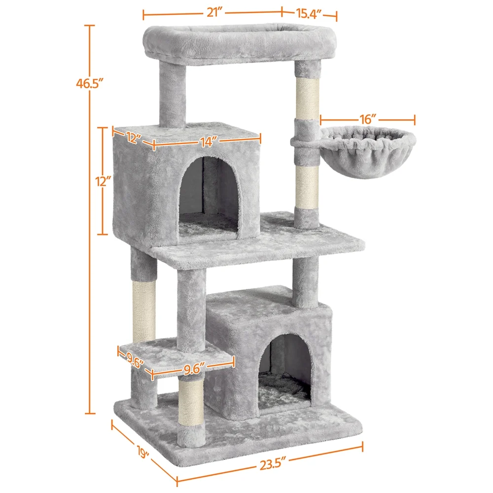 Yaheetech 46.5'' Multilevel Cat Tree Condos Cat Scratching Posts Plush with Top Perch Basket for Cats, Light Gray
