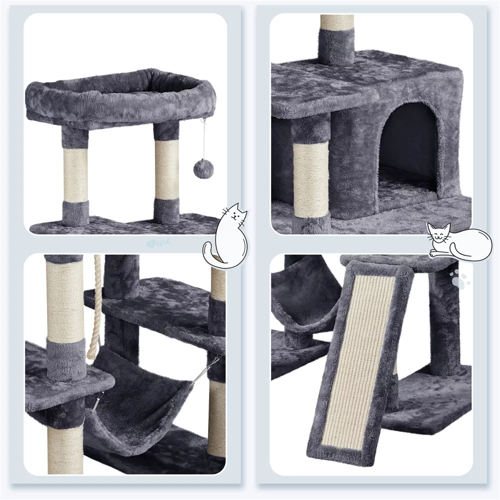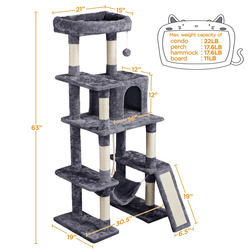 SmileMart 63" H Cat Tree Tower with Hammock and Scratching Posts, Dark Gray