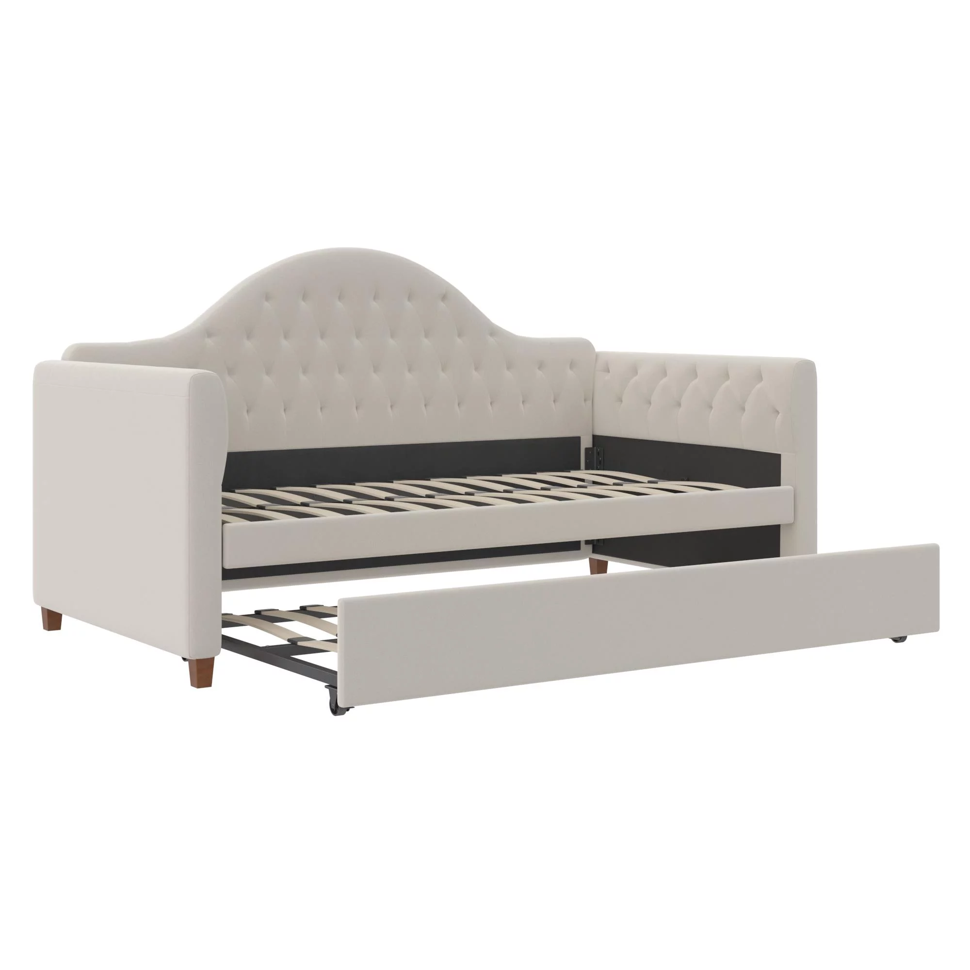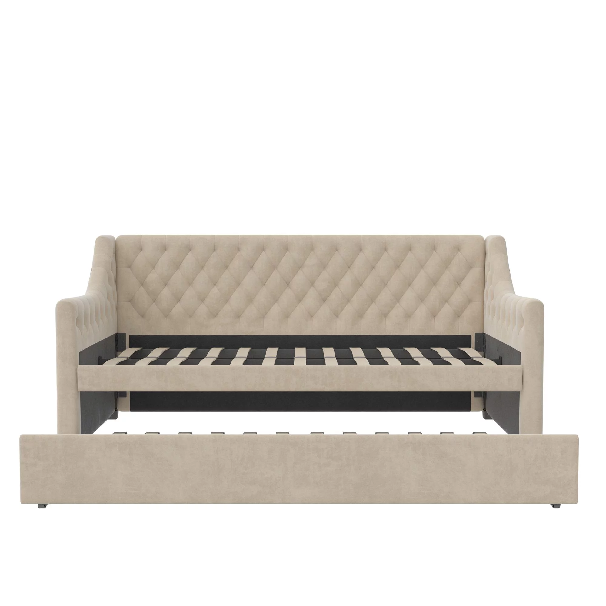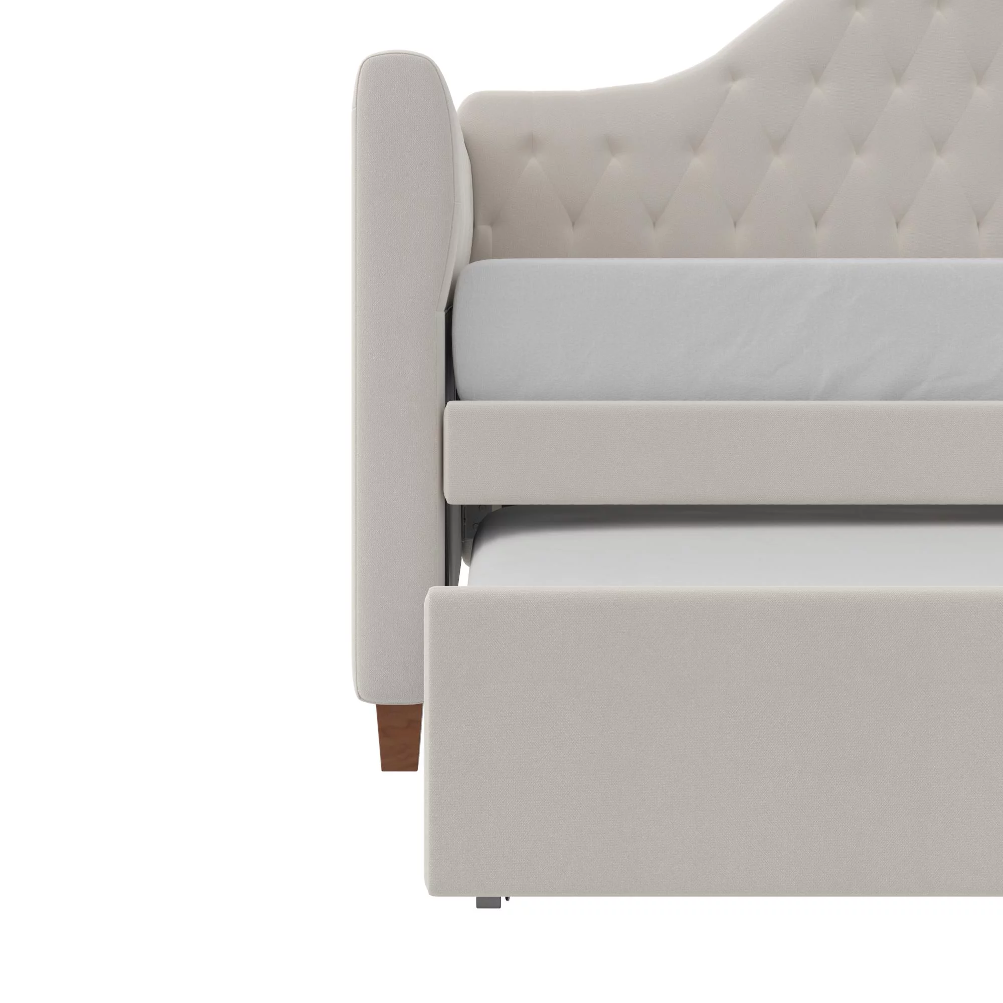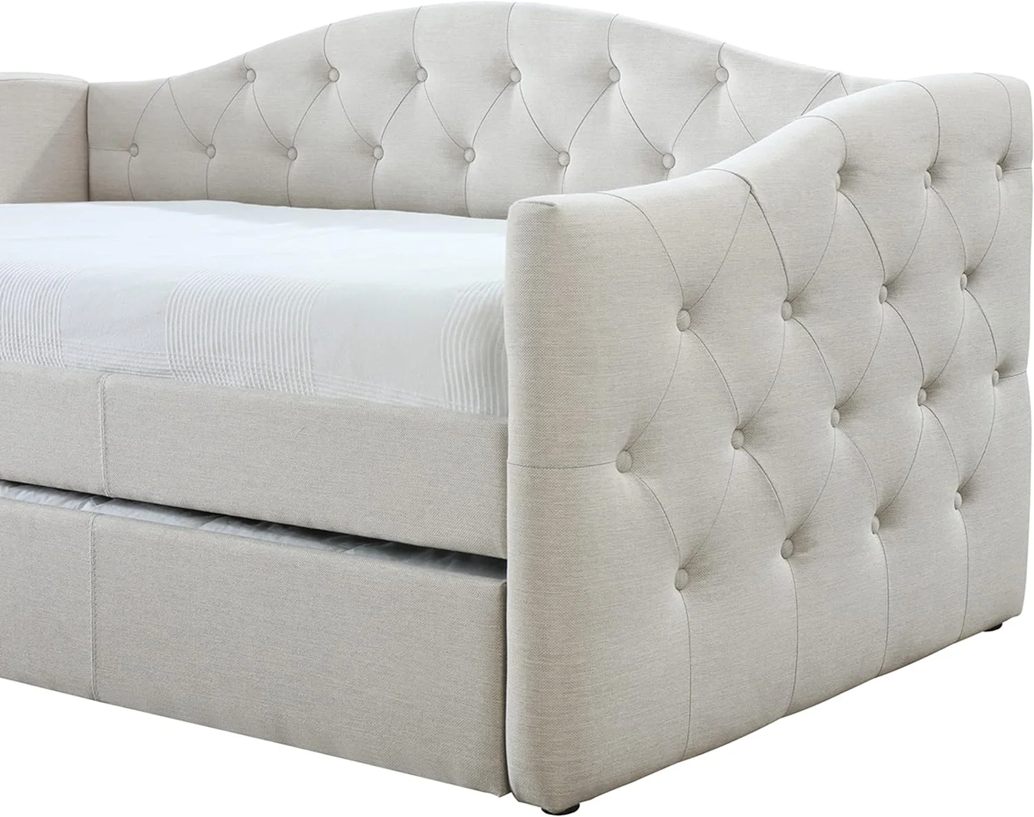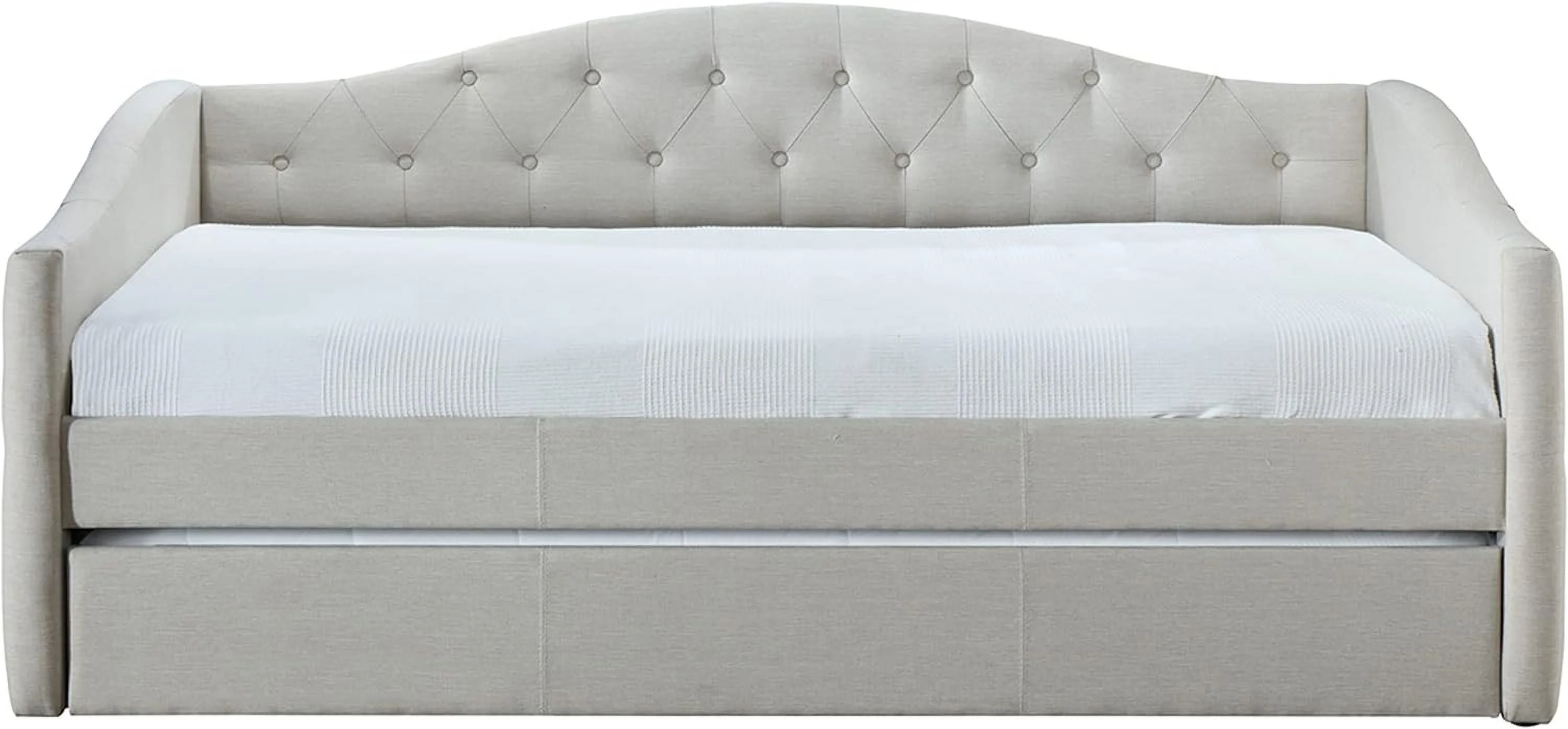 DG Casa Sarnia Diamond Tufted Twin Daybed - Upholstered Trundle Bed with Wooden Slats - Beige Fabric