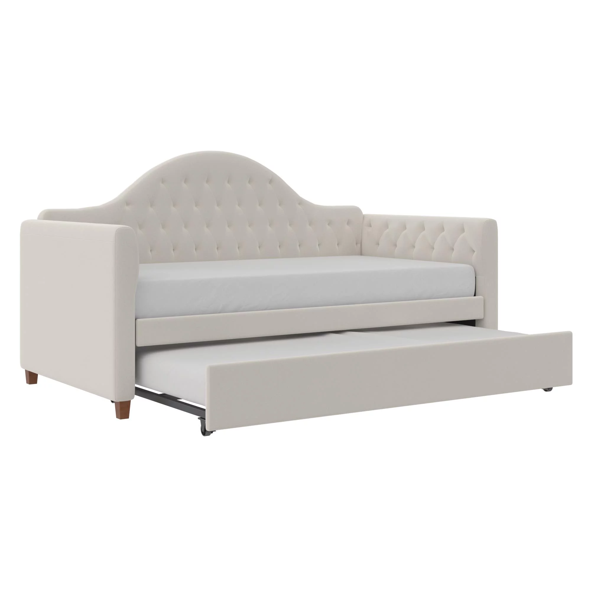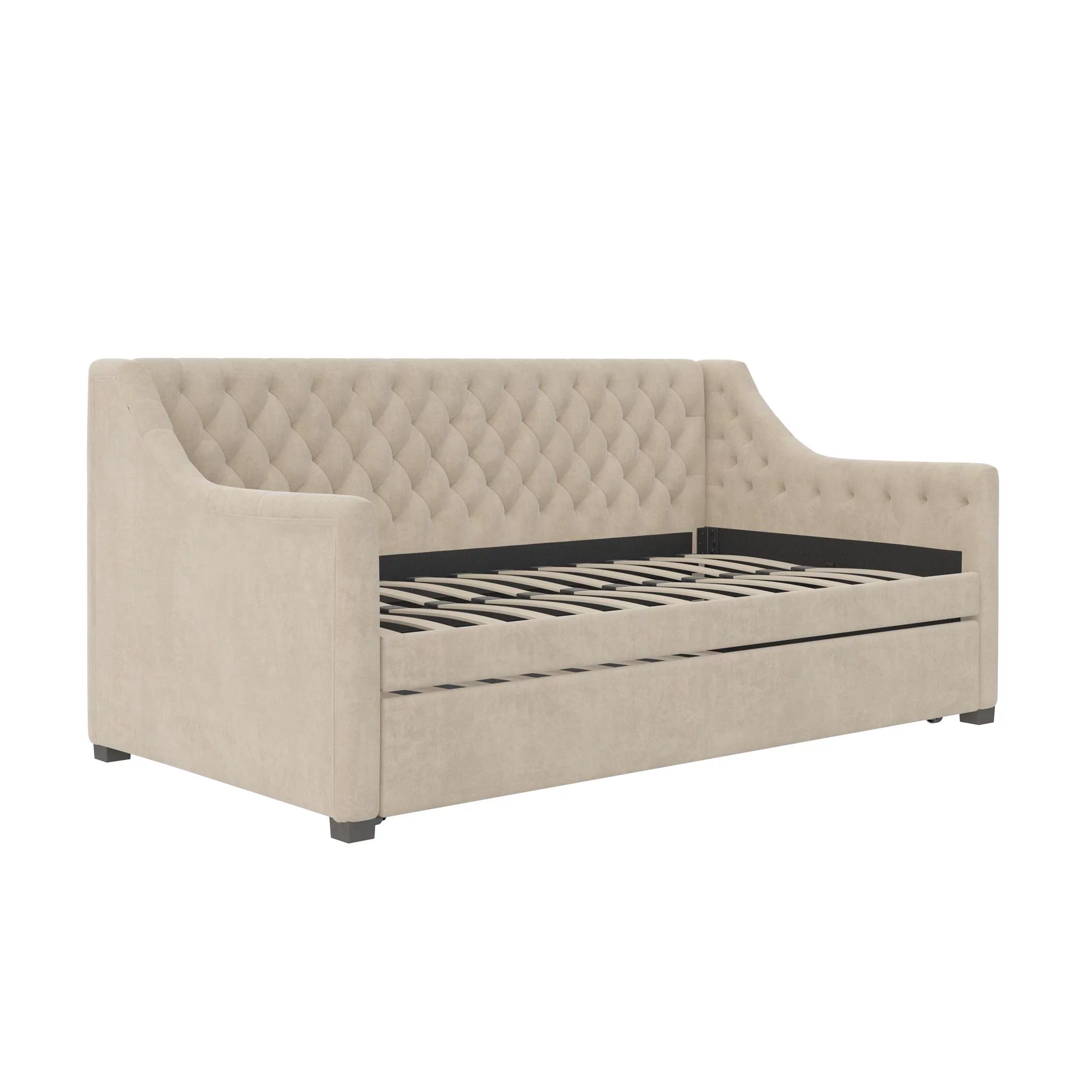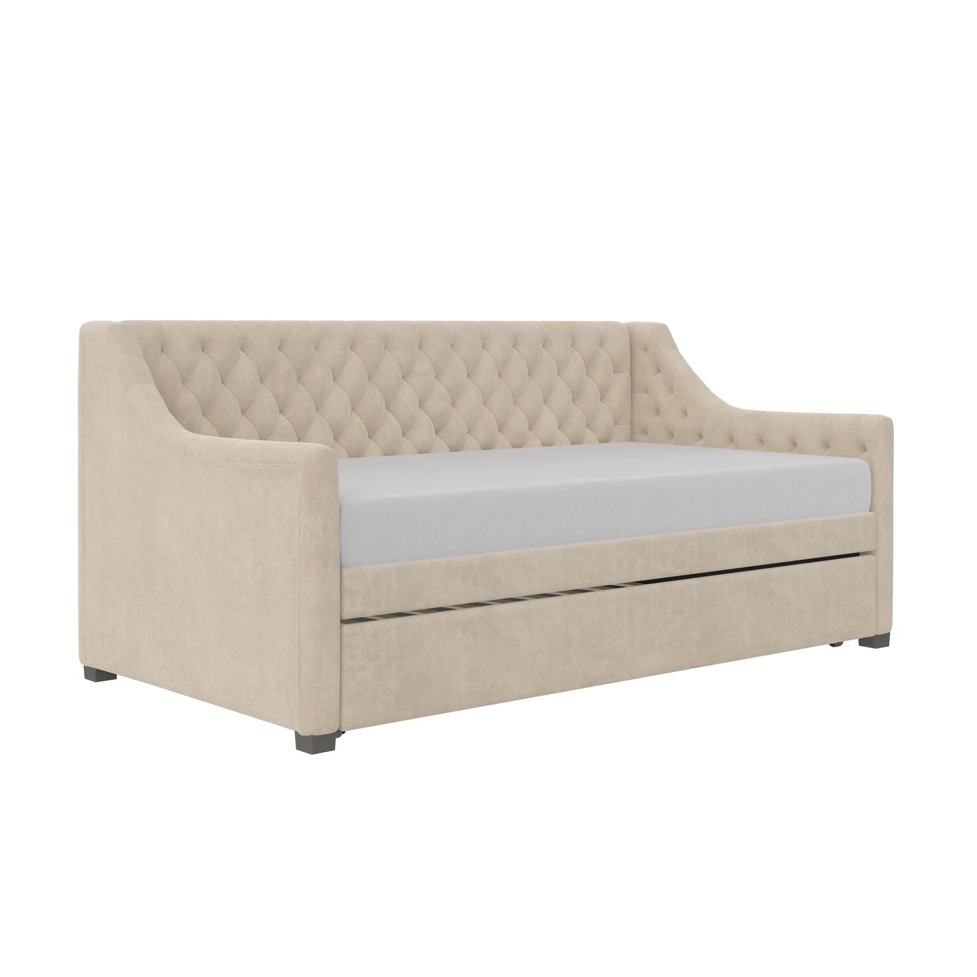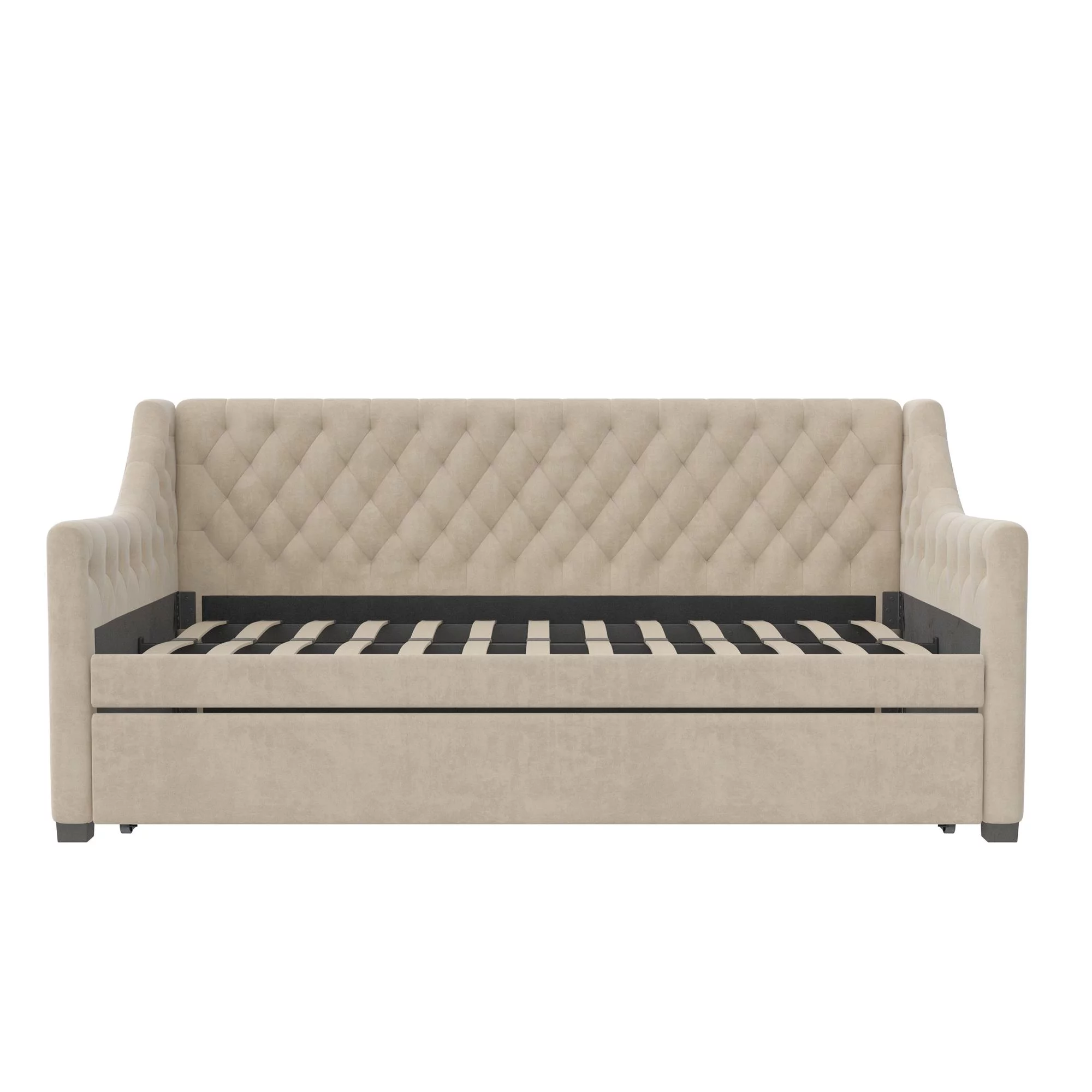 DG Casa Sarnia Diamond Tufted Twin Daybed - Upholstered Trundle Bed with Wooden Slats - Beige Fabric