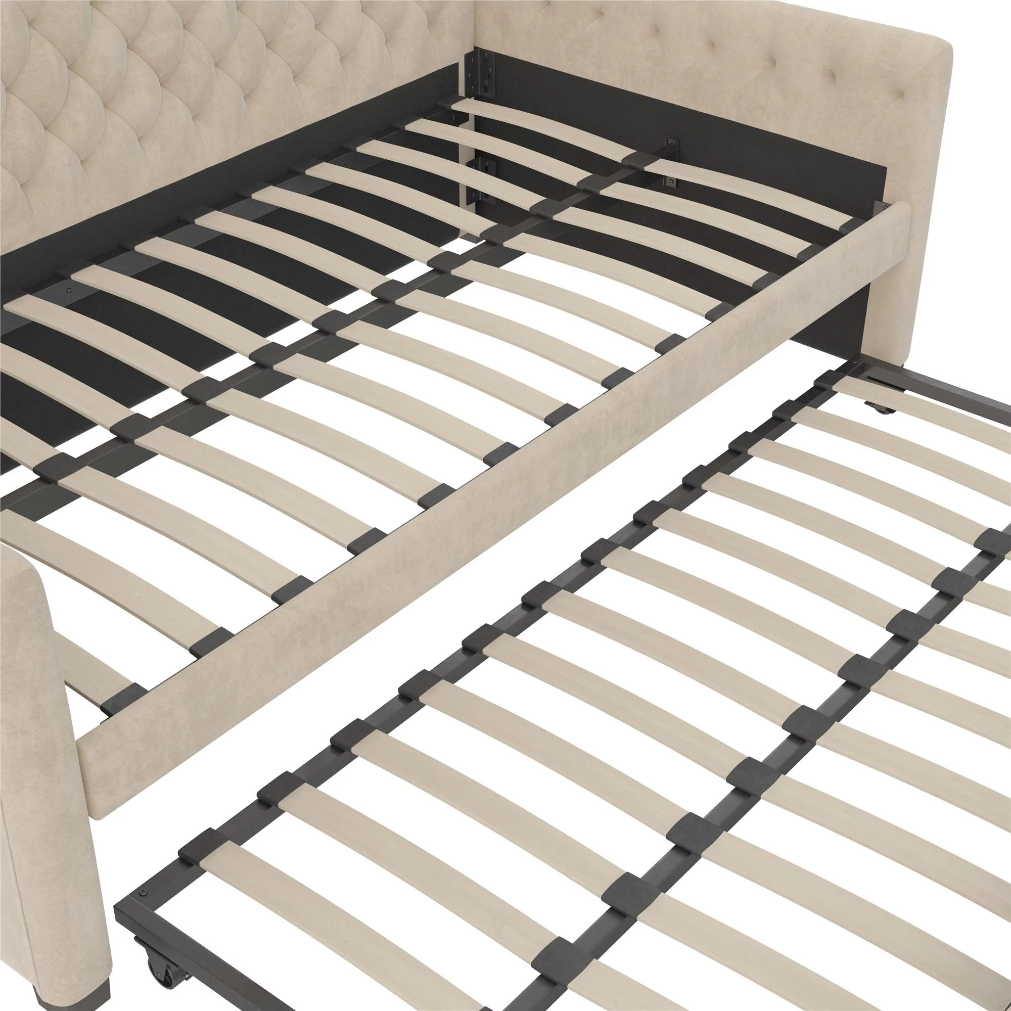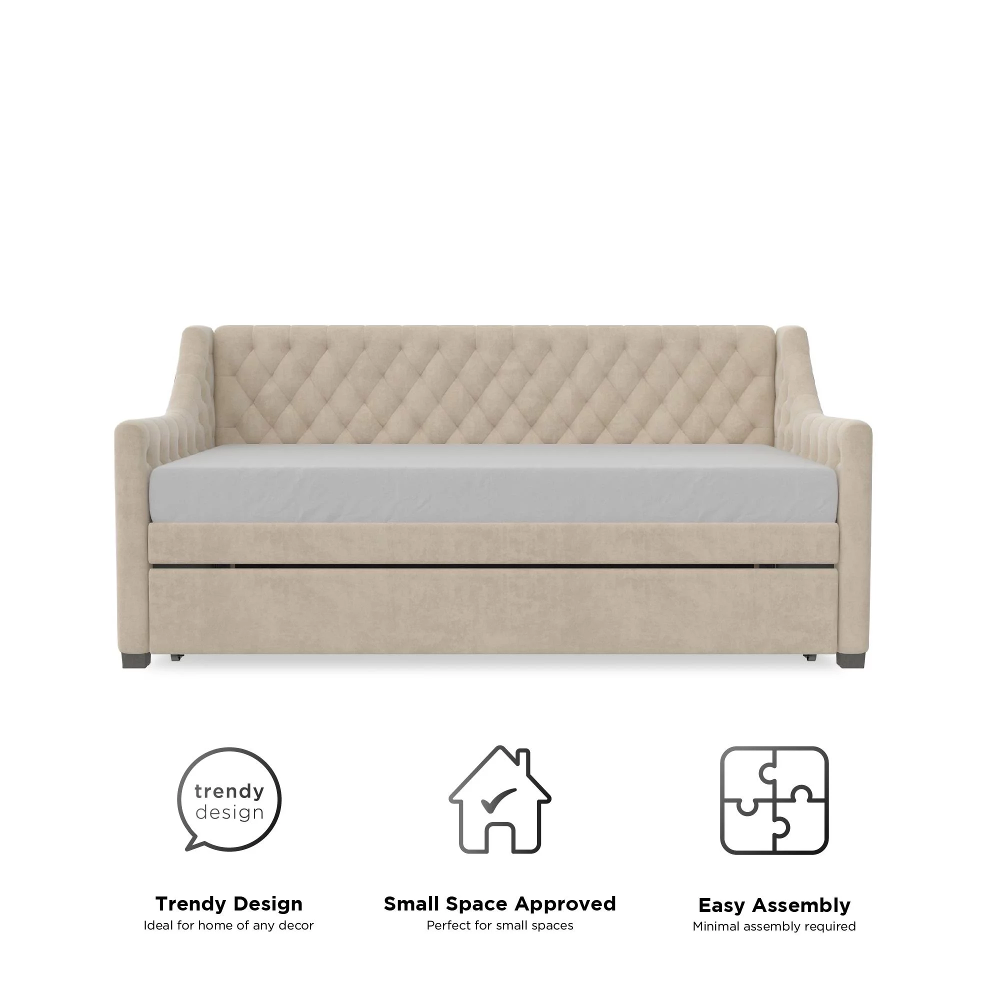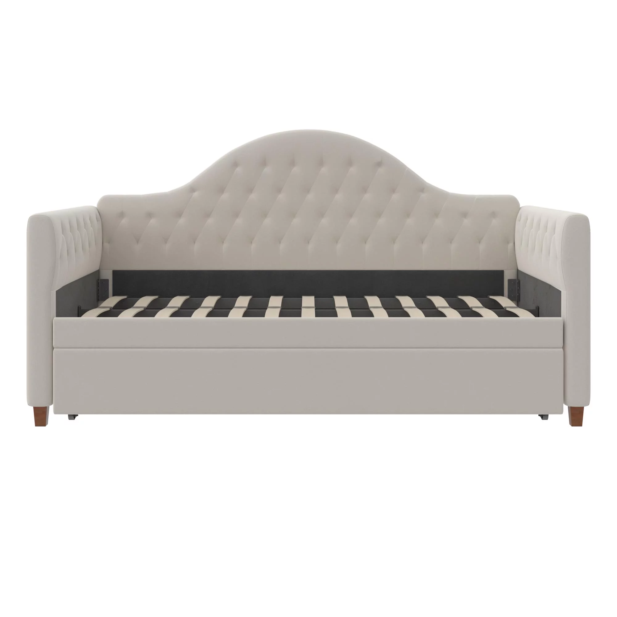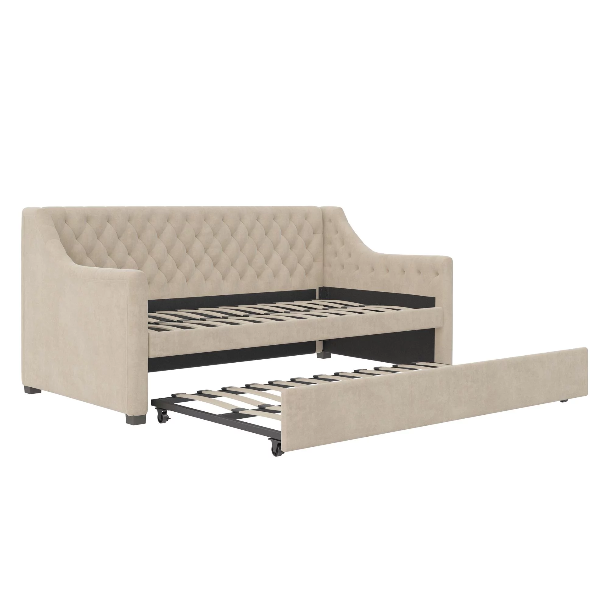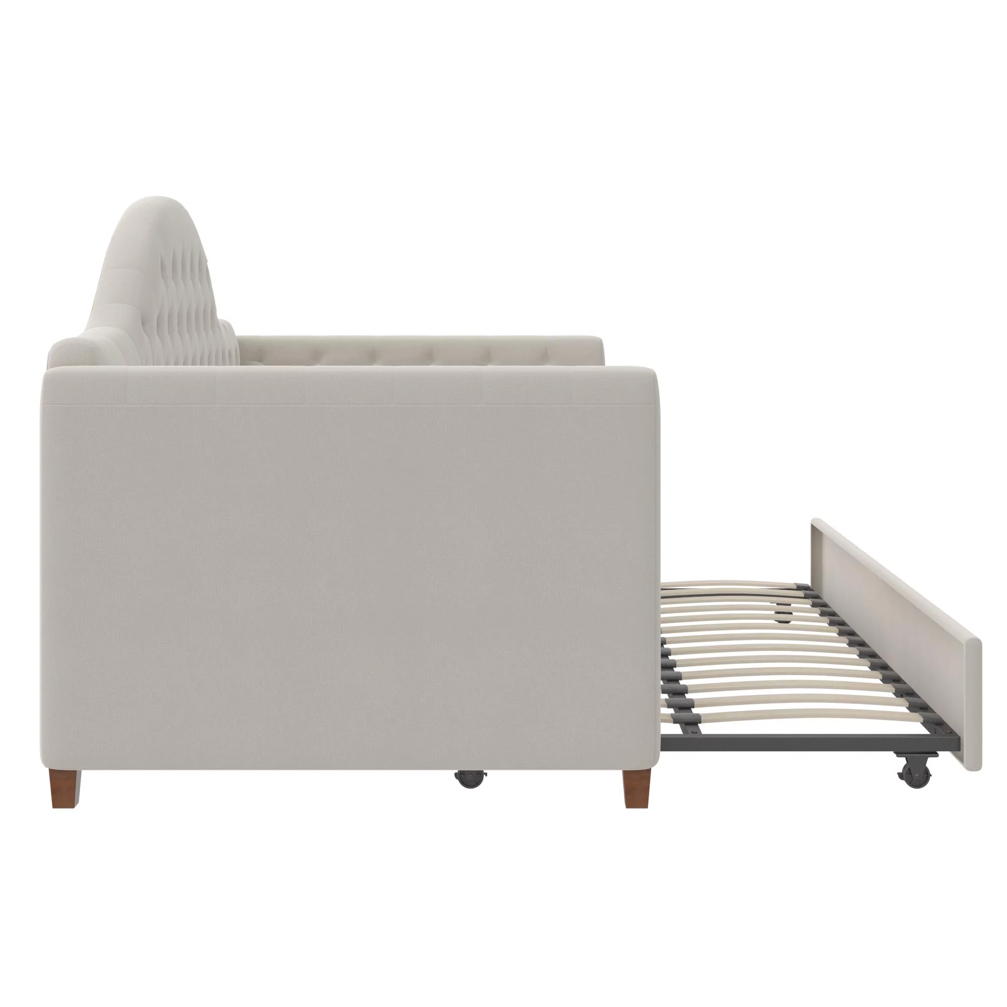 DG Casa Sarnia Diamond Tufted Twin Daybed - Upholstered Trundle Bed with Wooden Slats - Beige Fabric