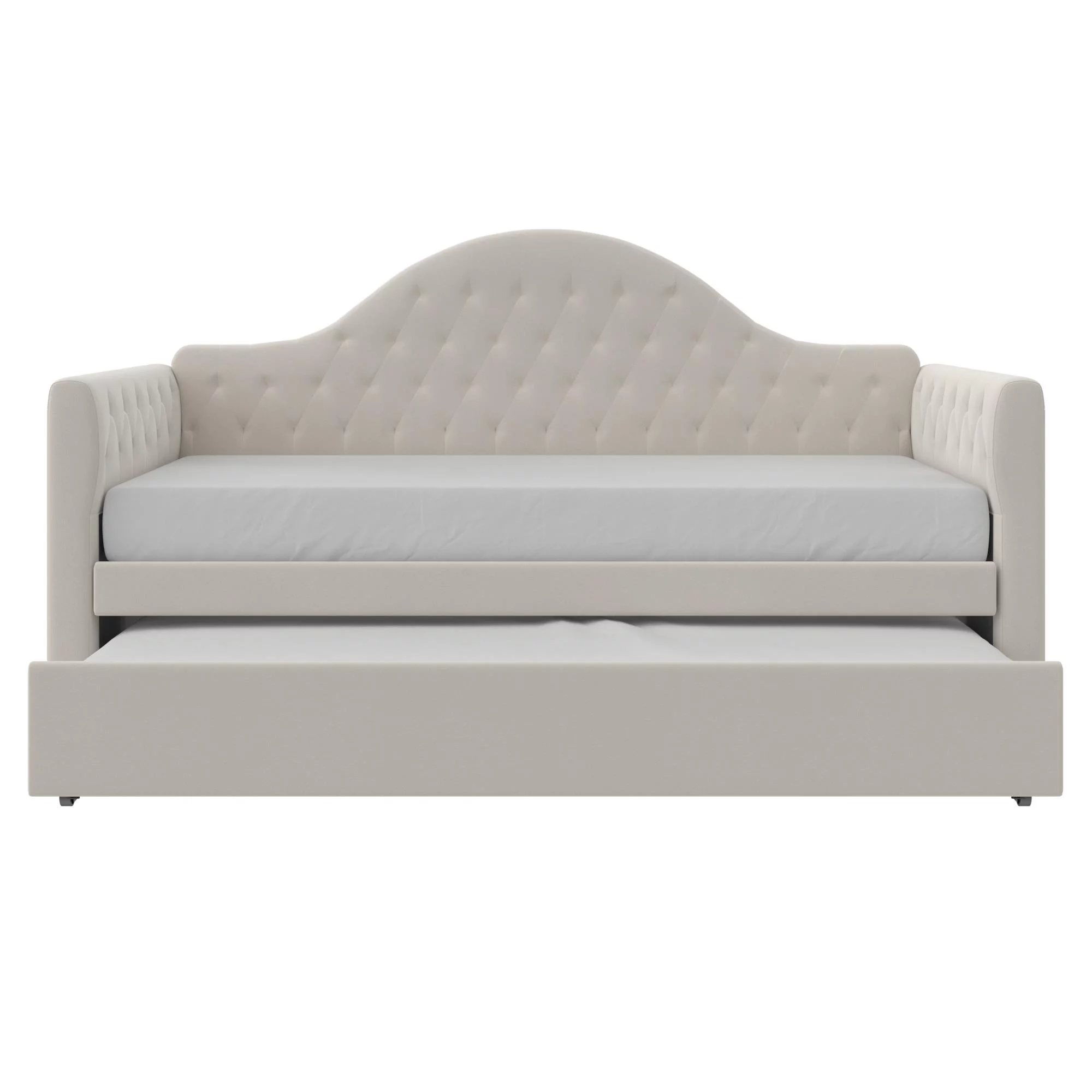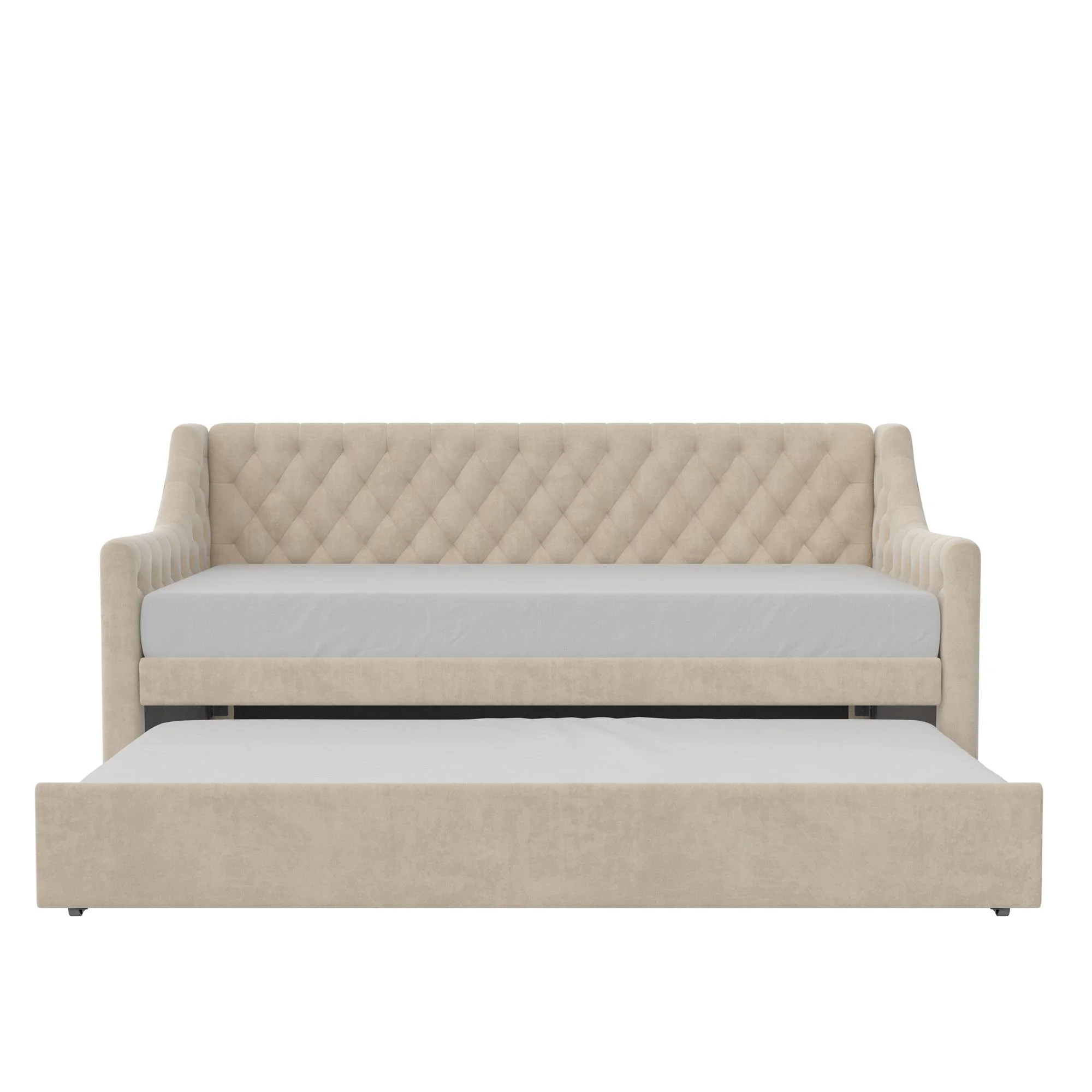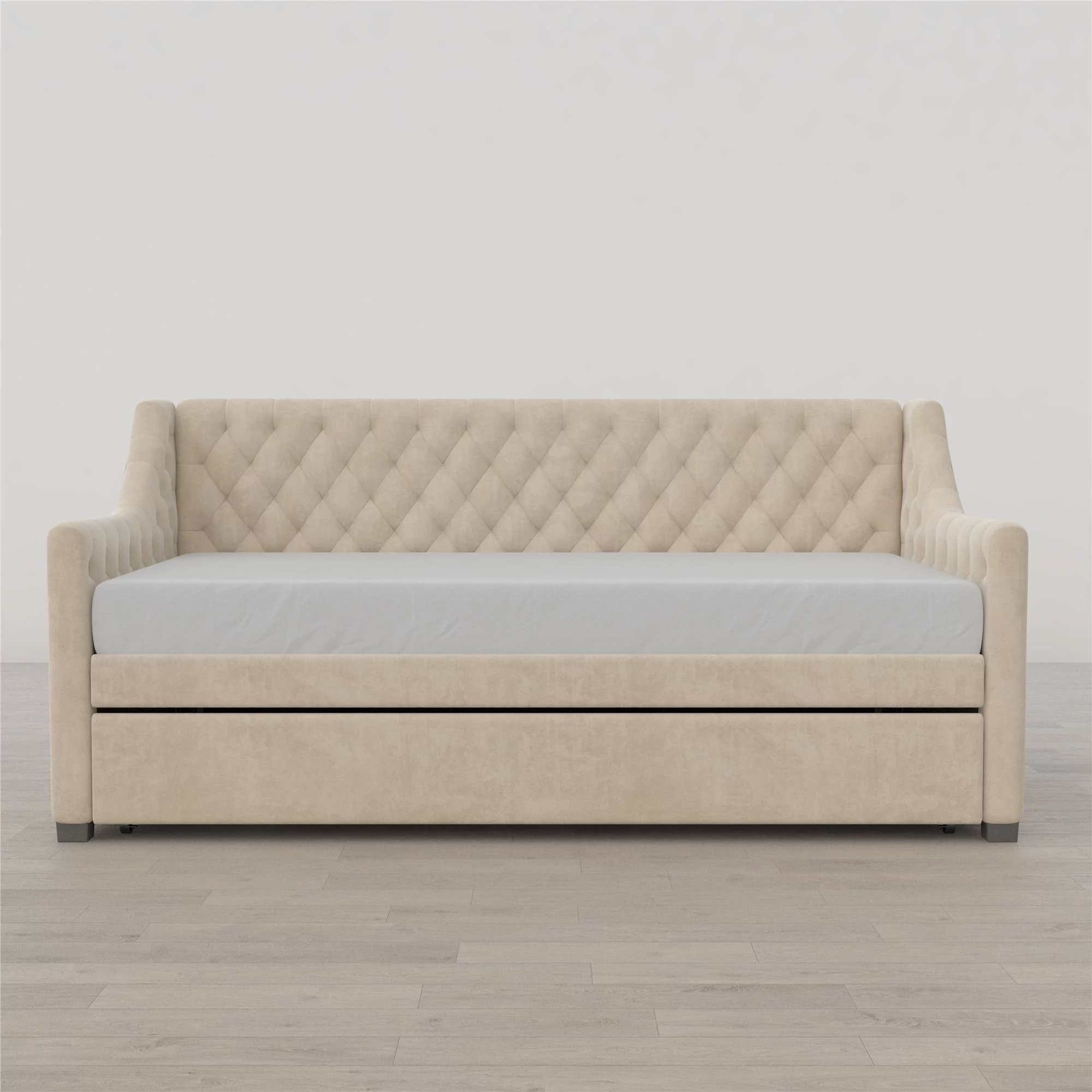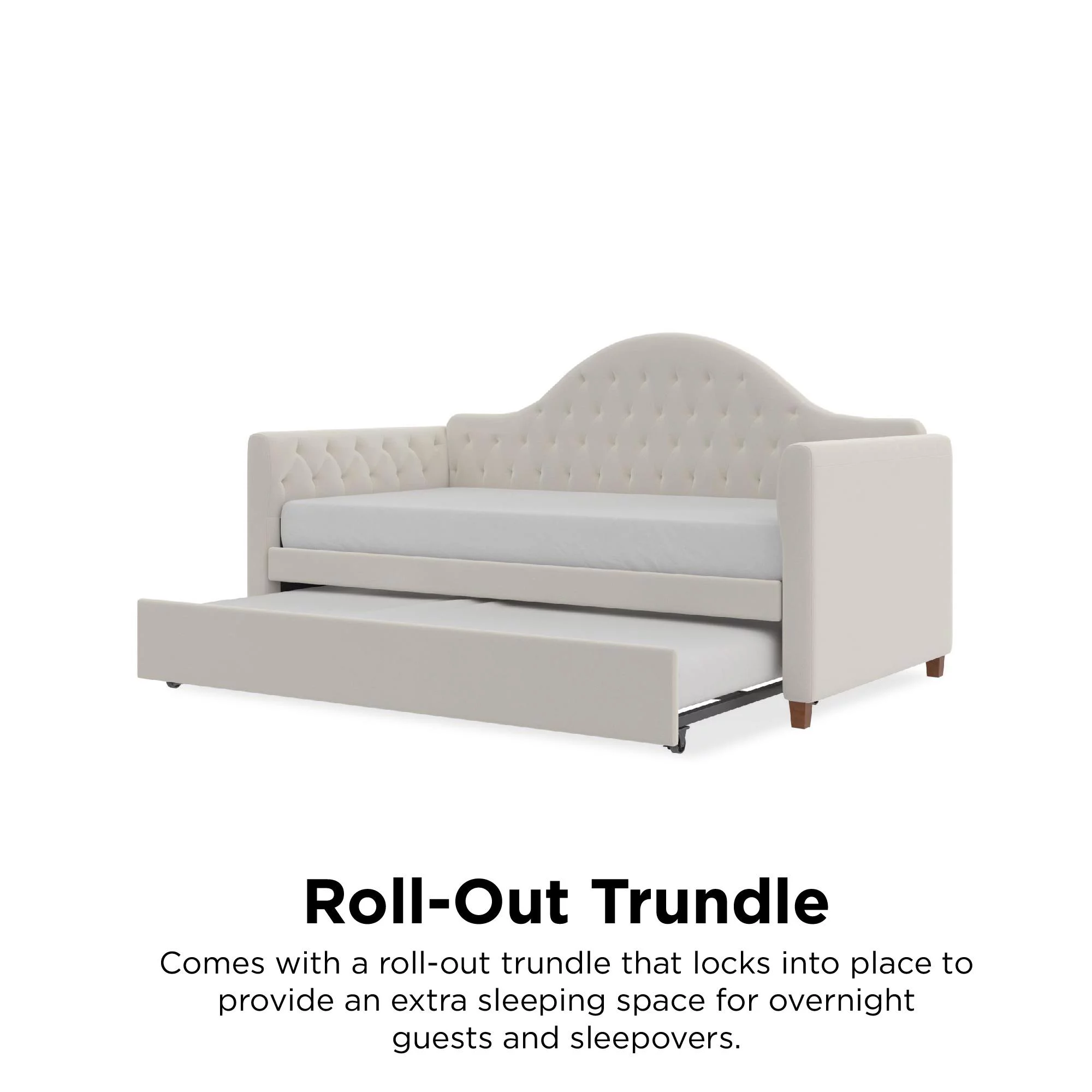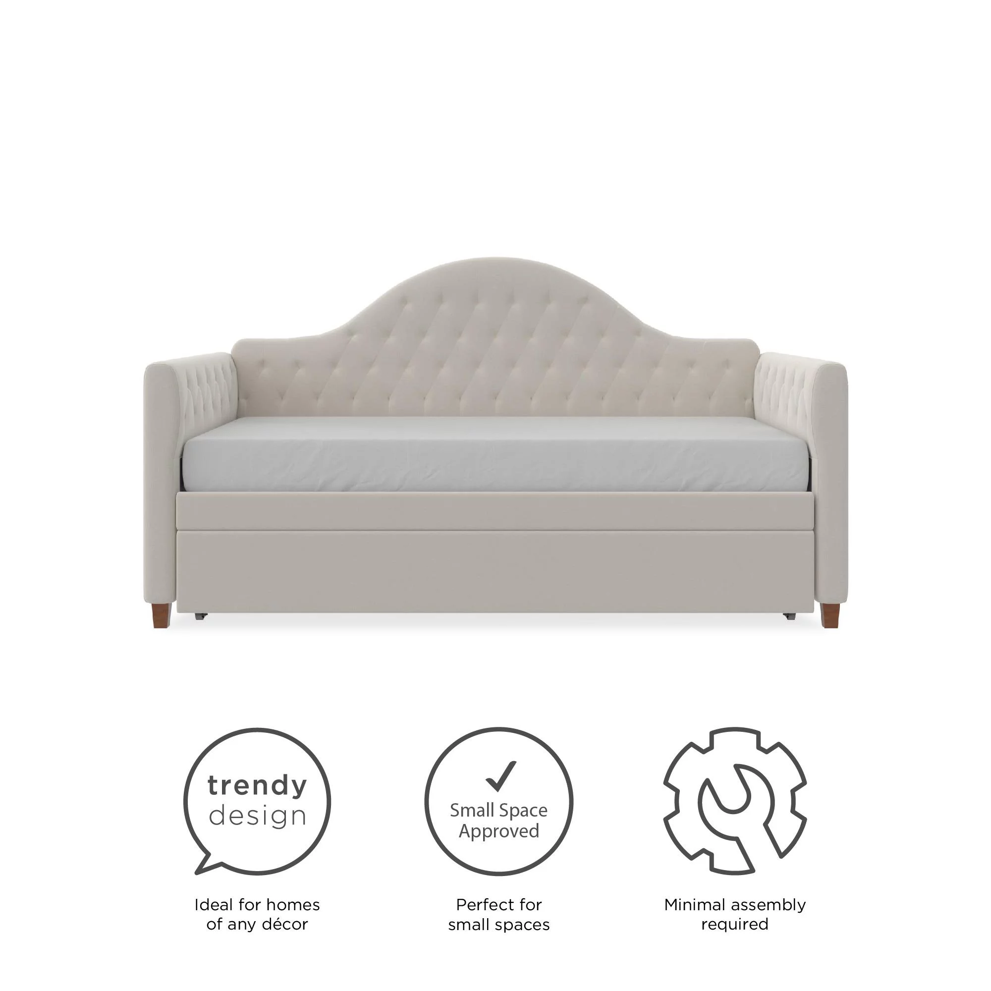 DG Casa Sarnia Diamond Tufted Twin Daybed - Upholstered Trundle Bed with Wooden Slats - Beige Fabric