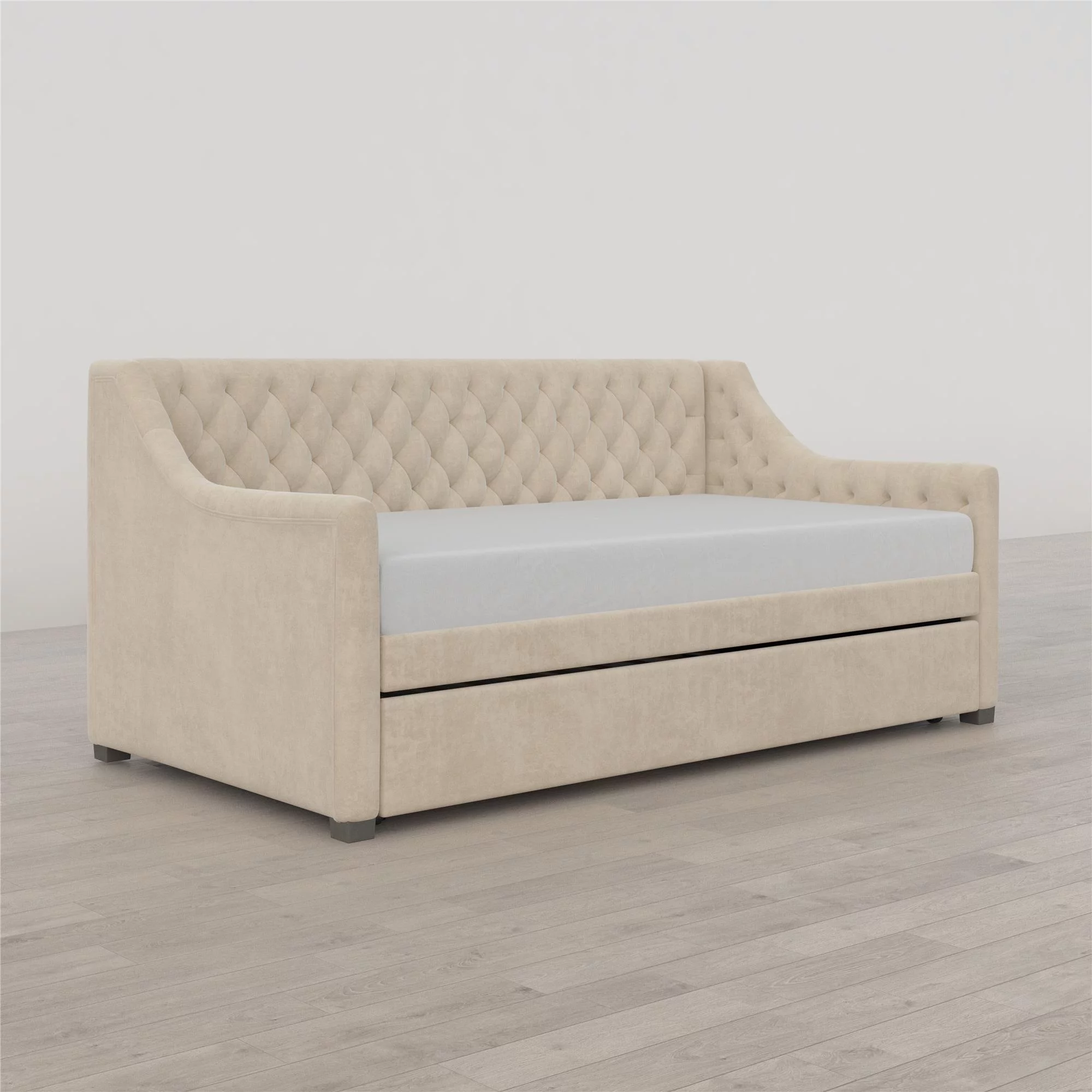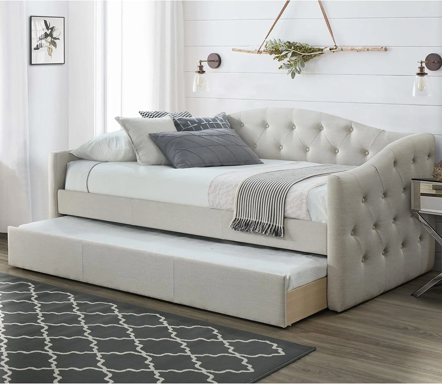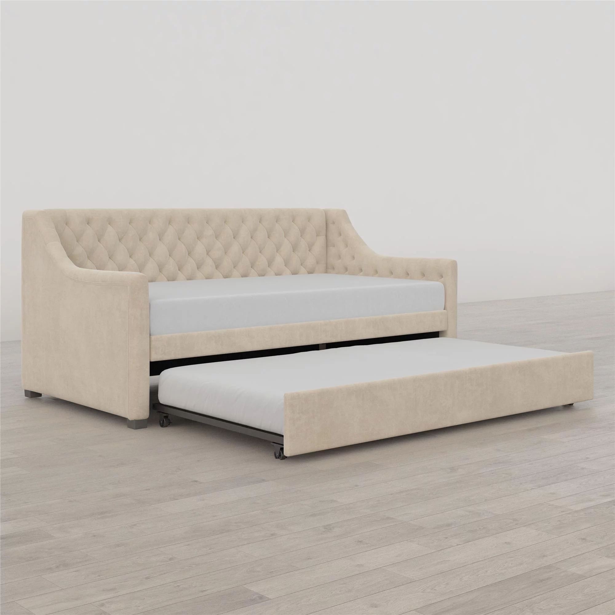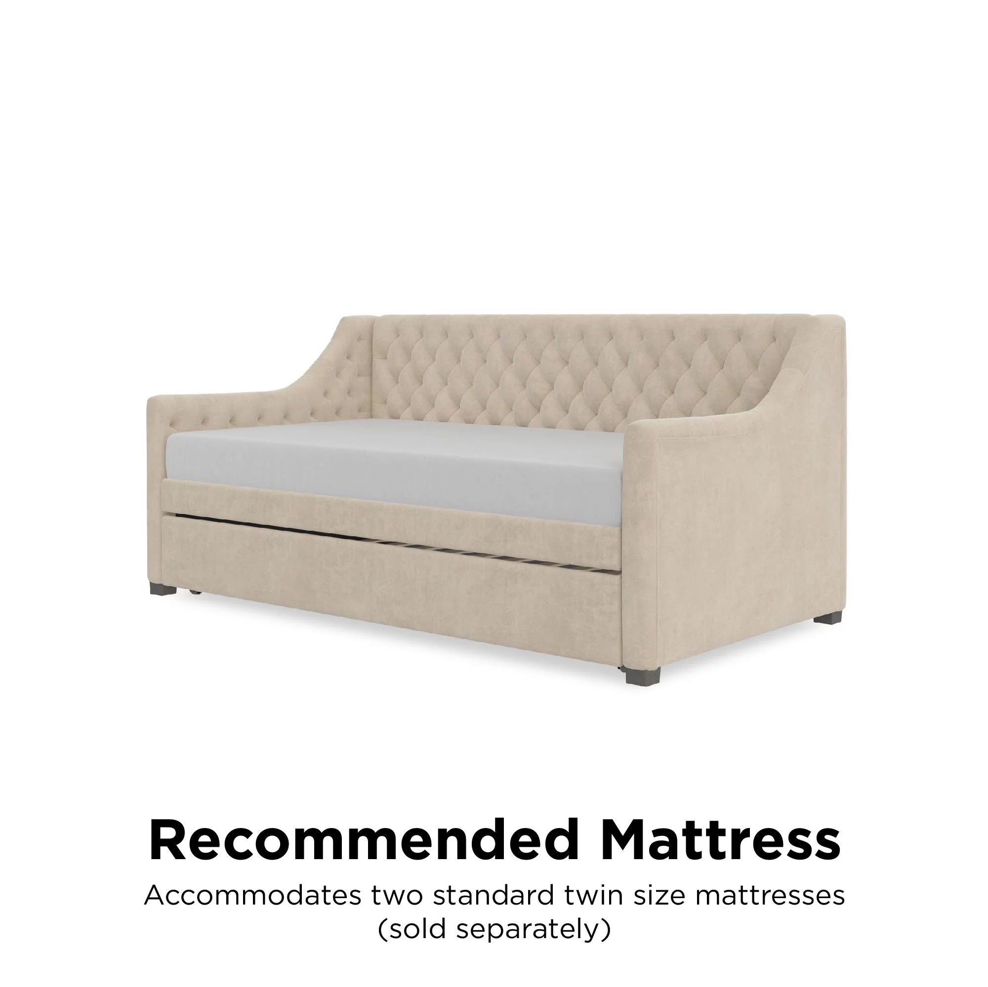 DG Casa Sarnia Diamond Tufted Twin Daybed - Upholstered Trundle Bed with Wooden Slats - Beige Fabric
