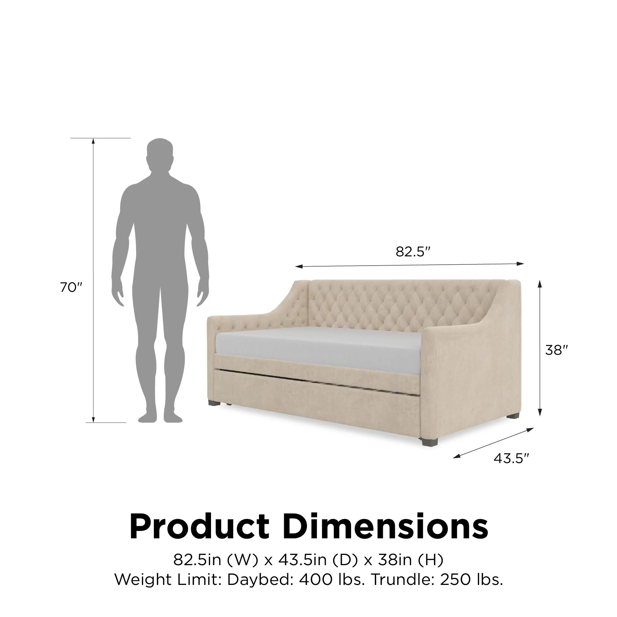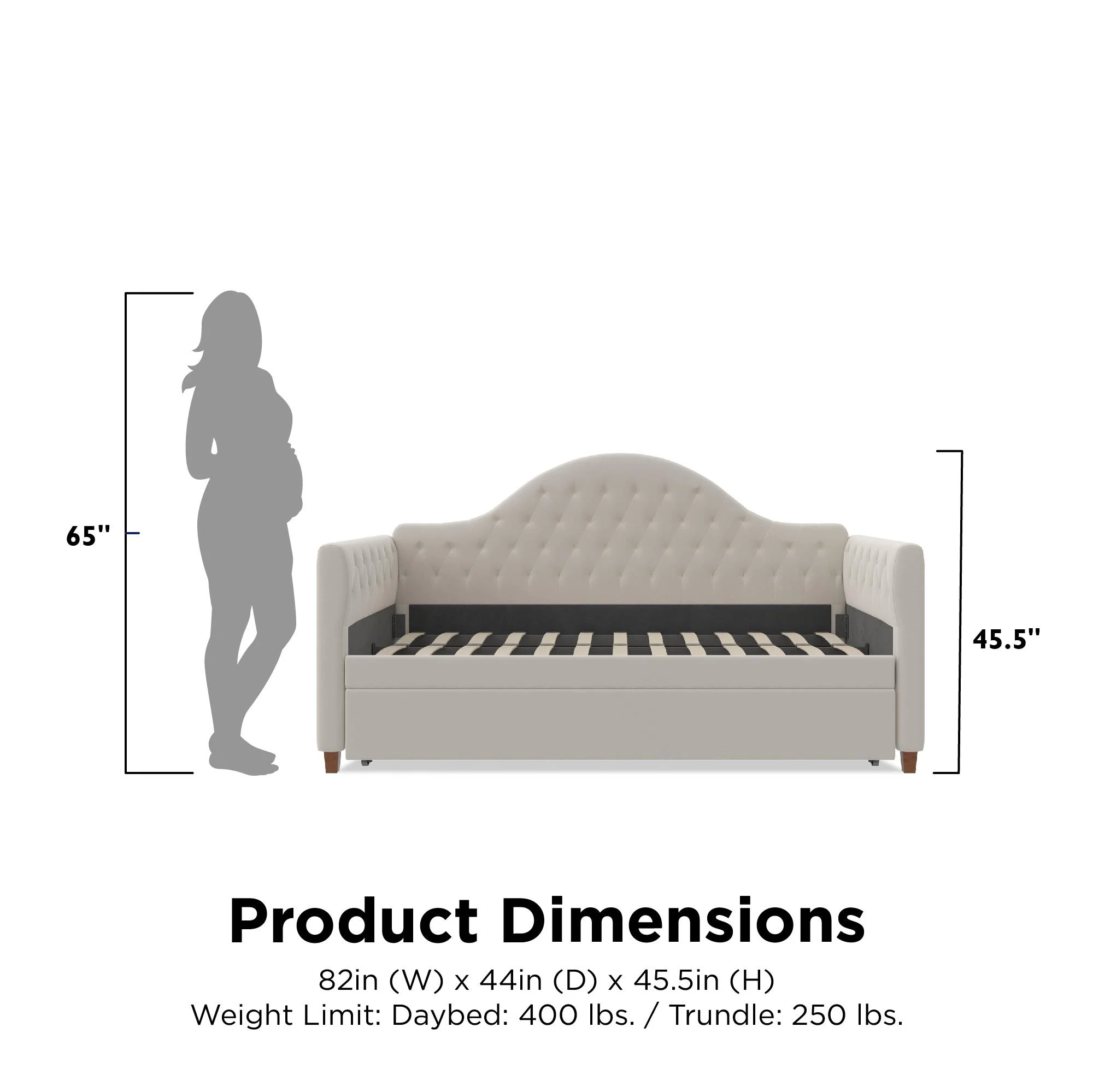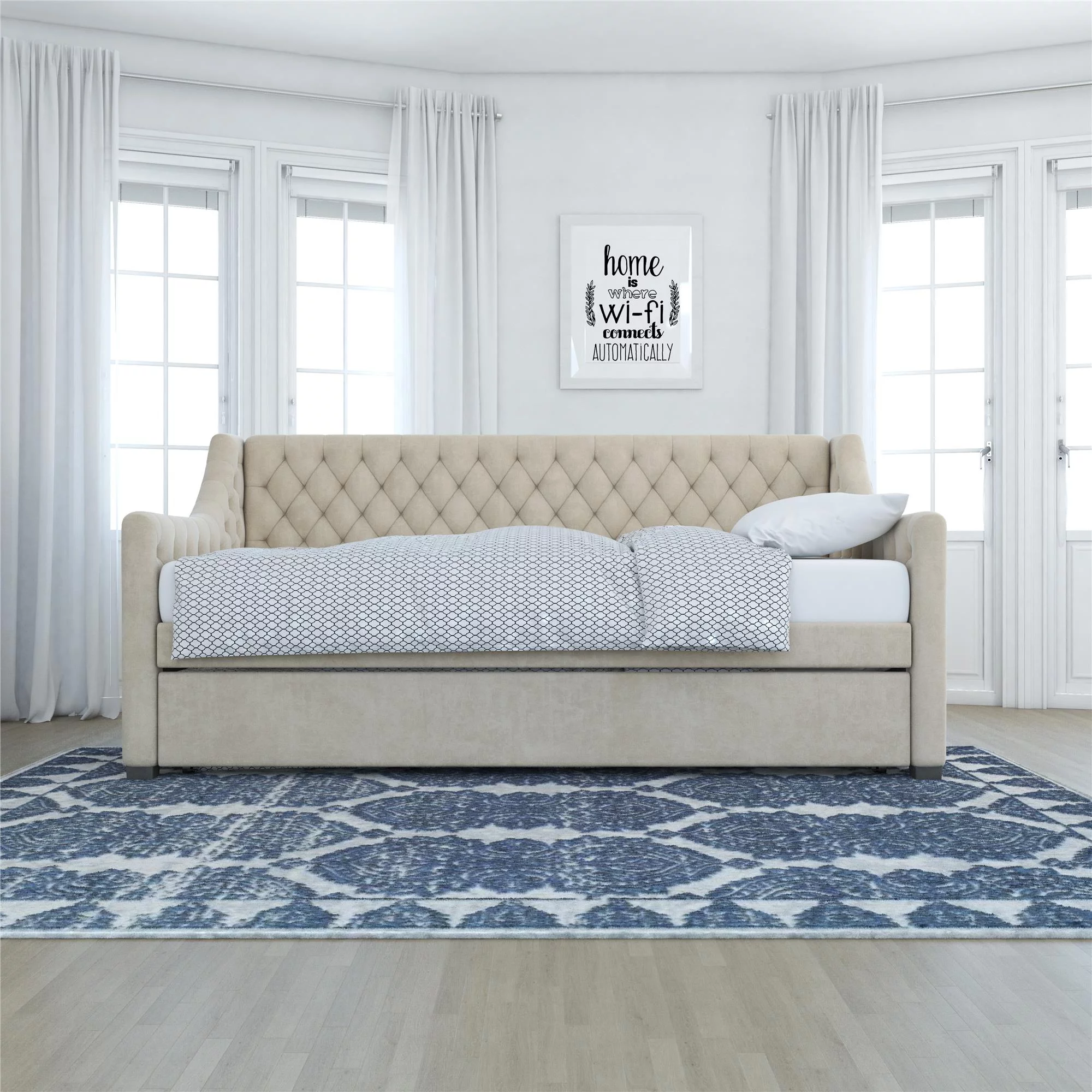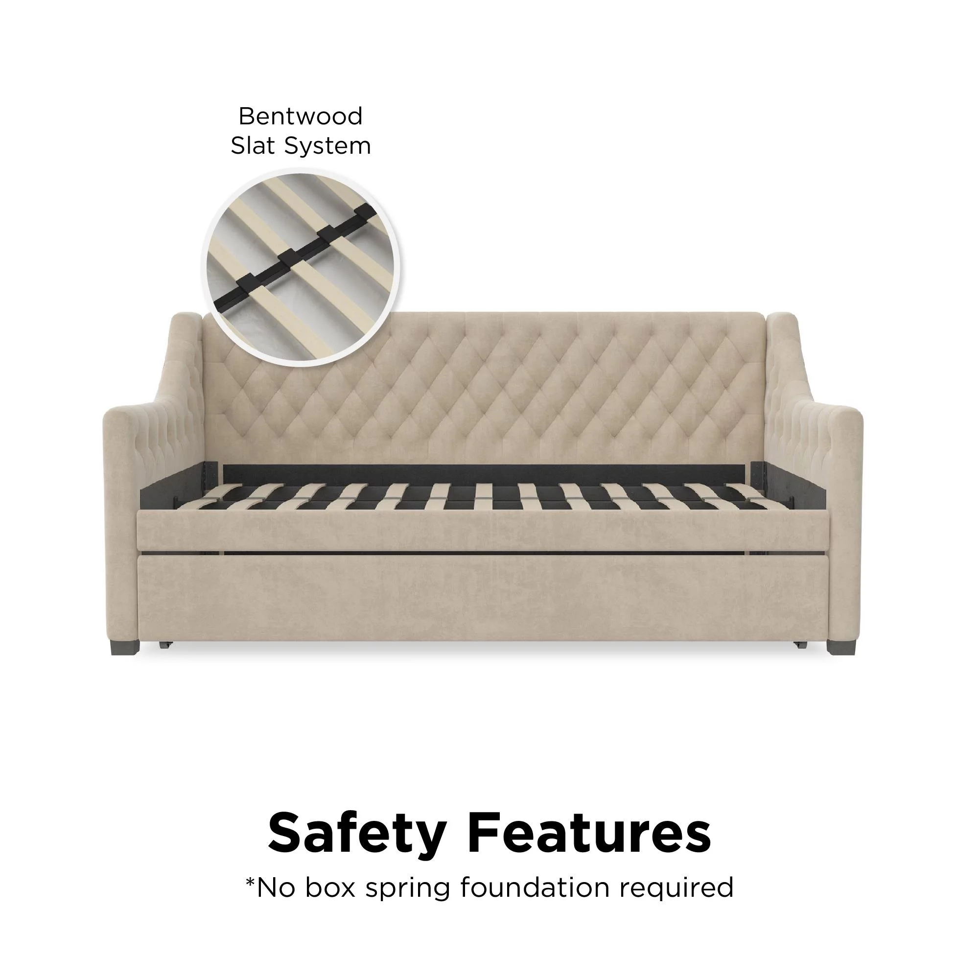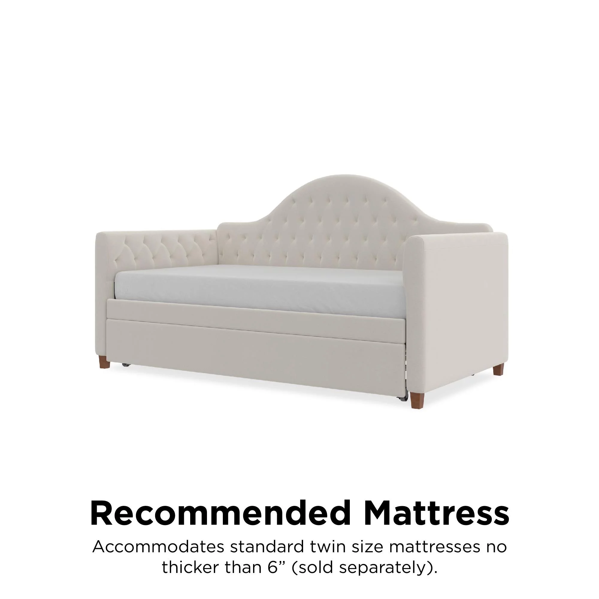 DG Casa Sarnia Diamond Tufted Twin Daybed - Upholstered Trundle Bed with Wooden Slats - Beige Fabric
