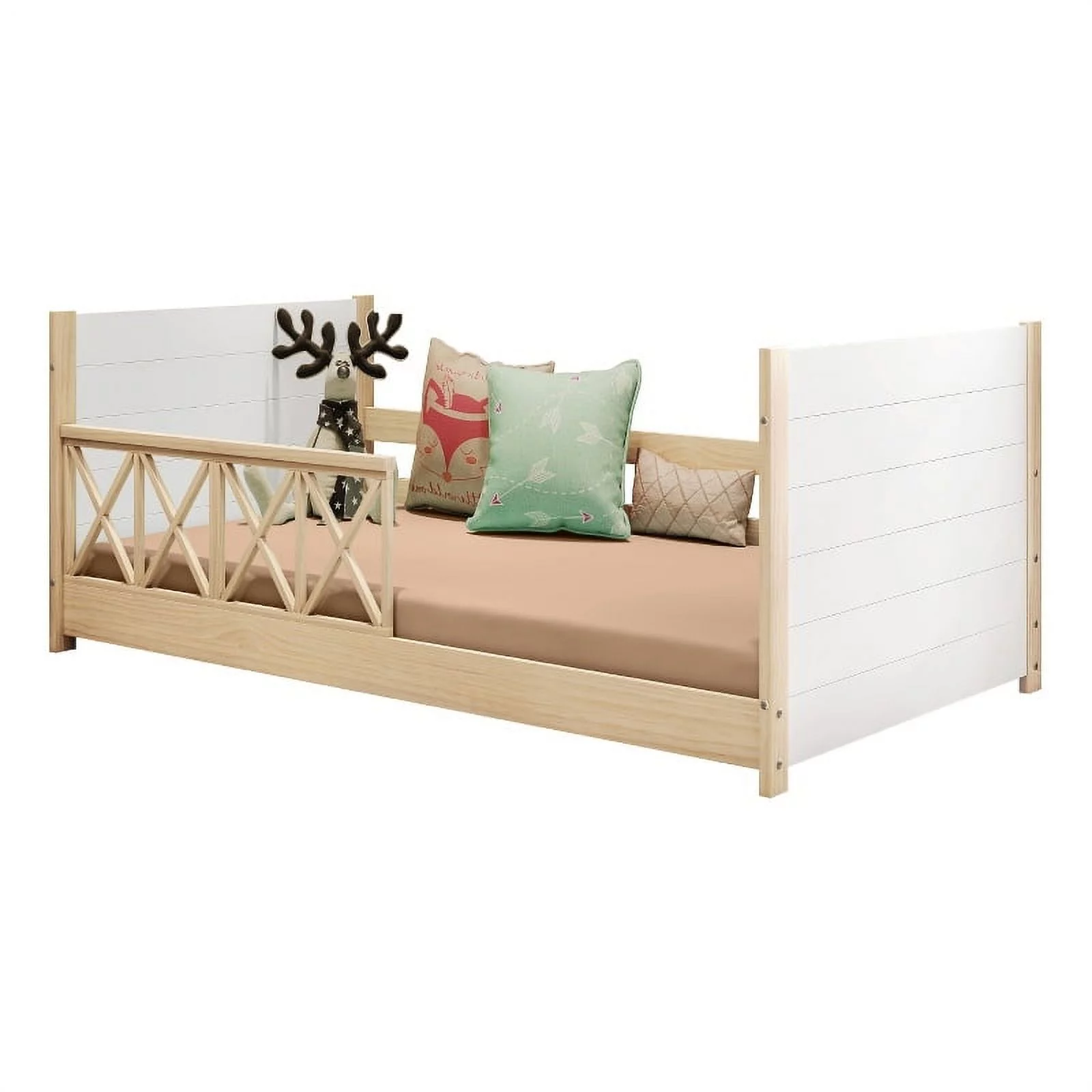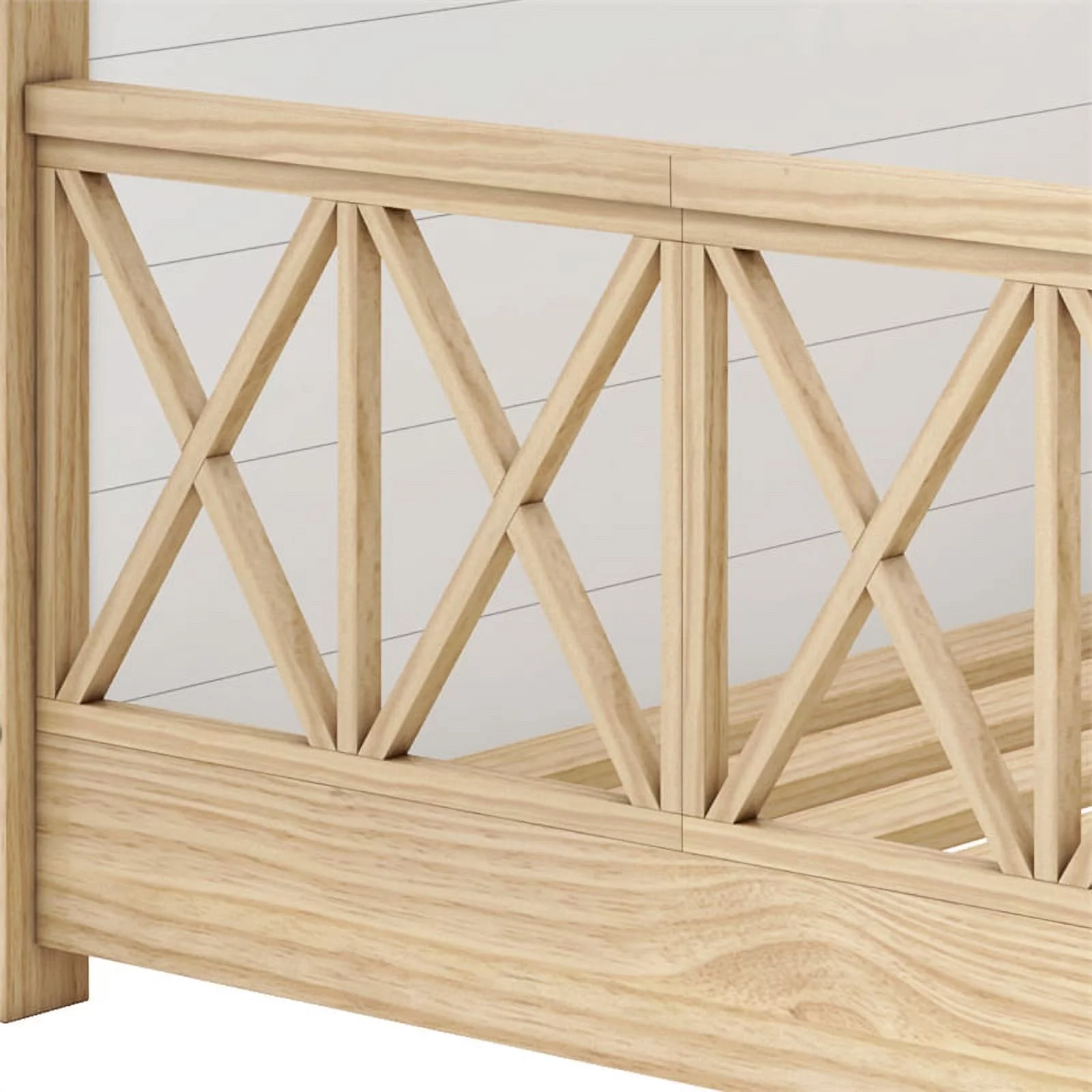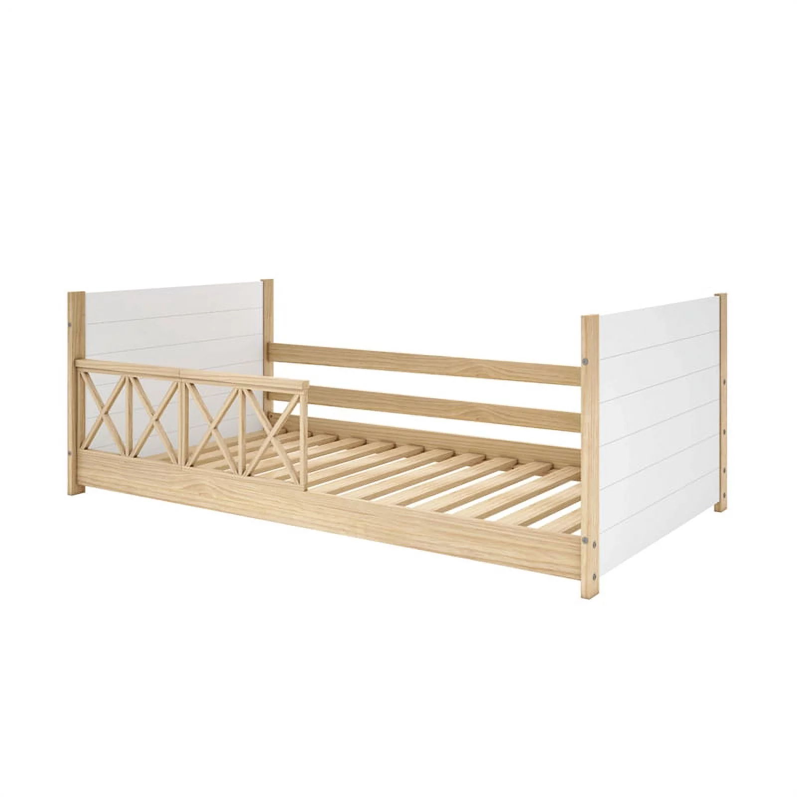 Pemberly Row Modern Solid Wood Twin Daybed with Double Guardrails in White/Oak