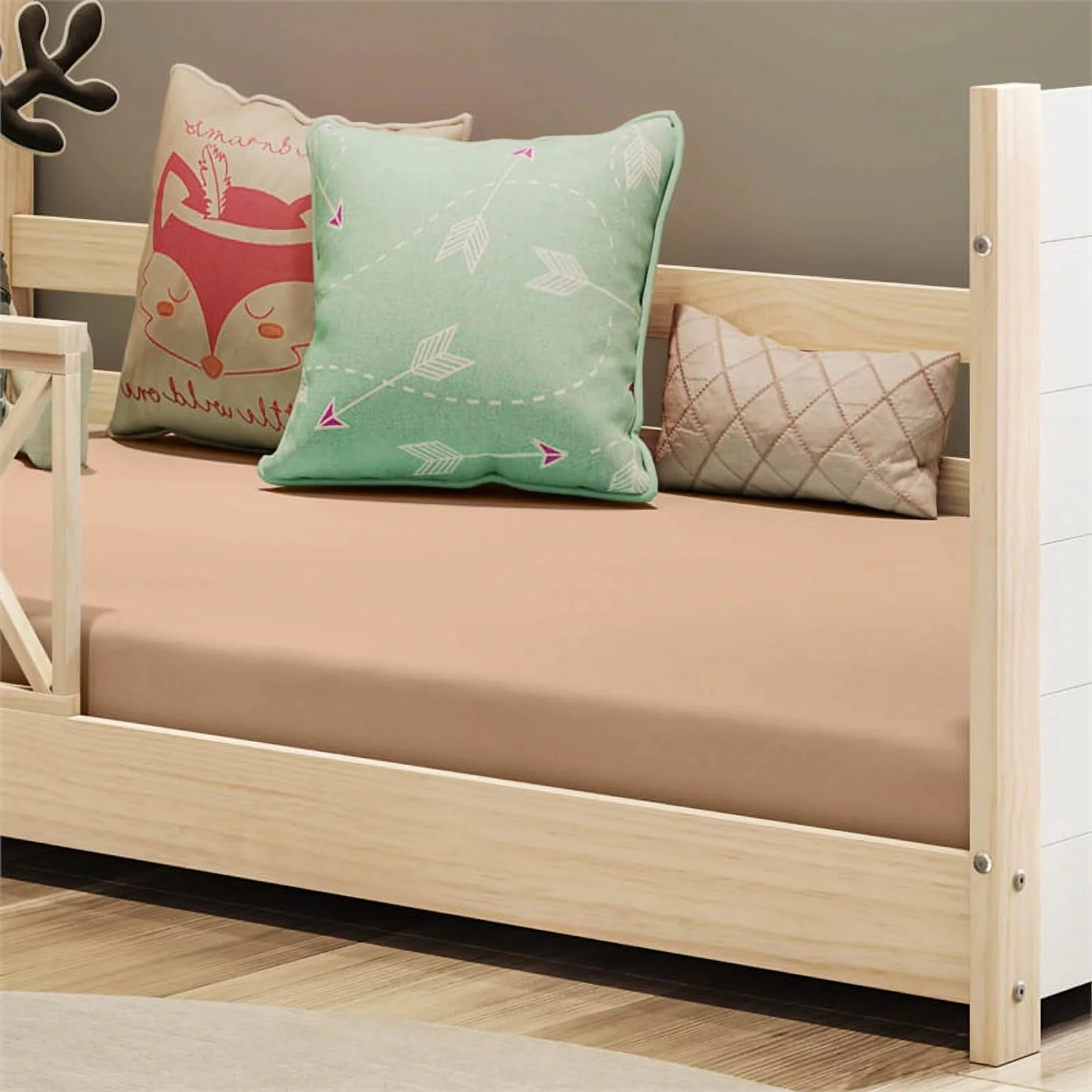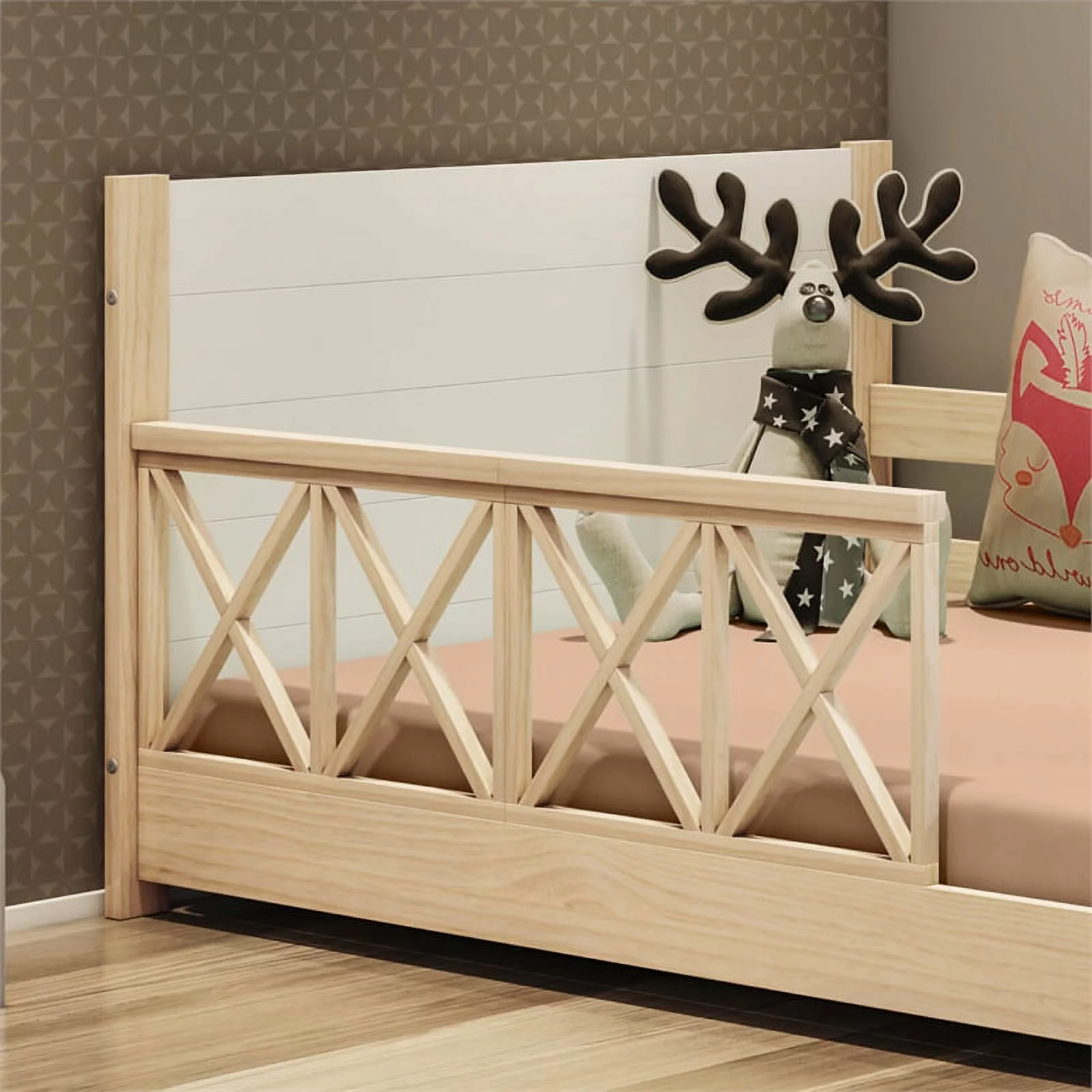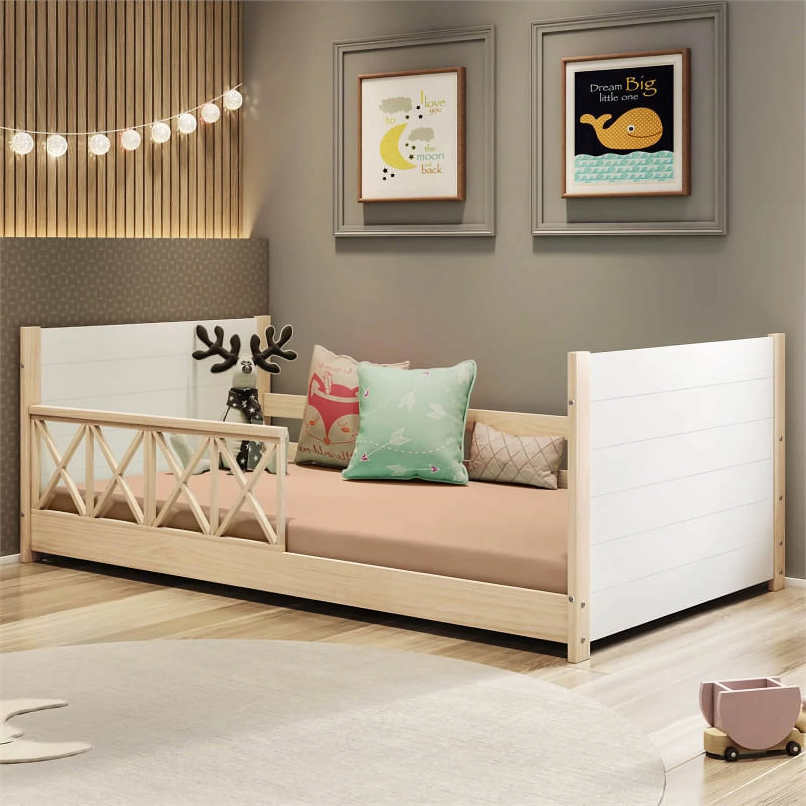 Pemberly Row Modern Solid Wood Twin Daybed with Double Guardrails in White/Oak