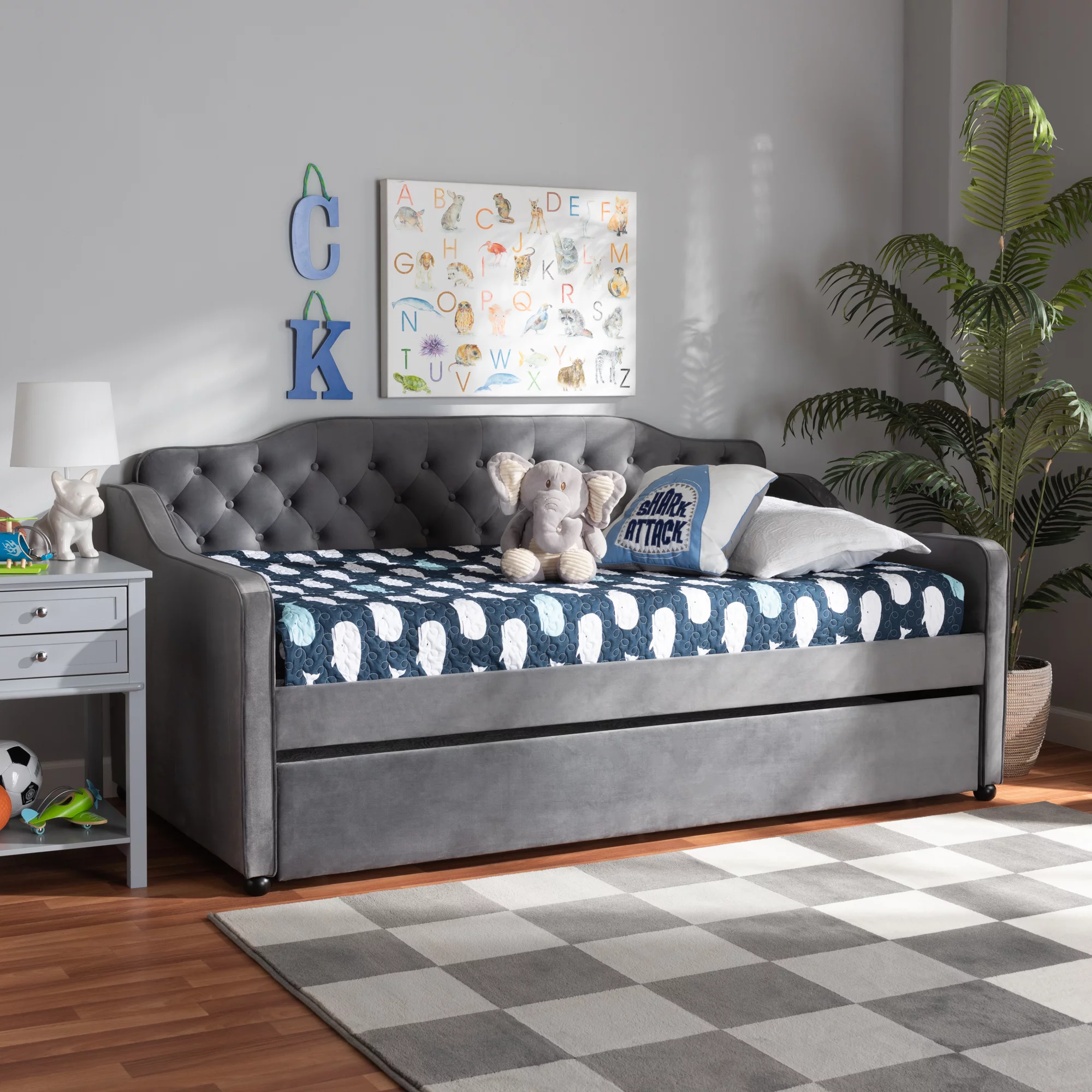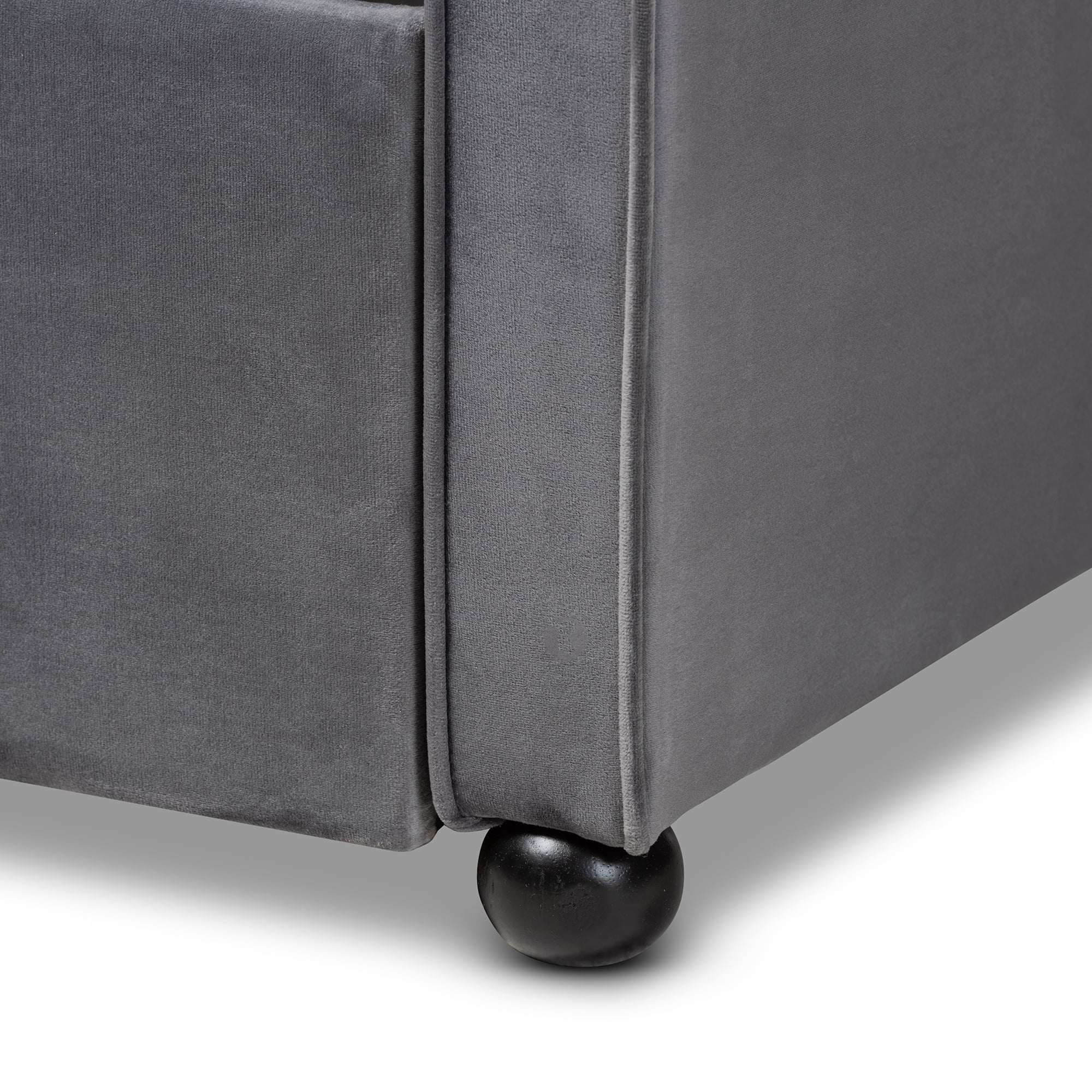 BBaxton Studio Freda Transitional and Contemporary Gray Velvet Upholstered and Button Tufted Twin Size Daybed with Trundle
