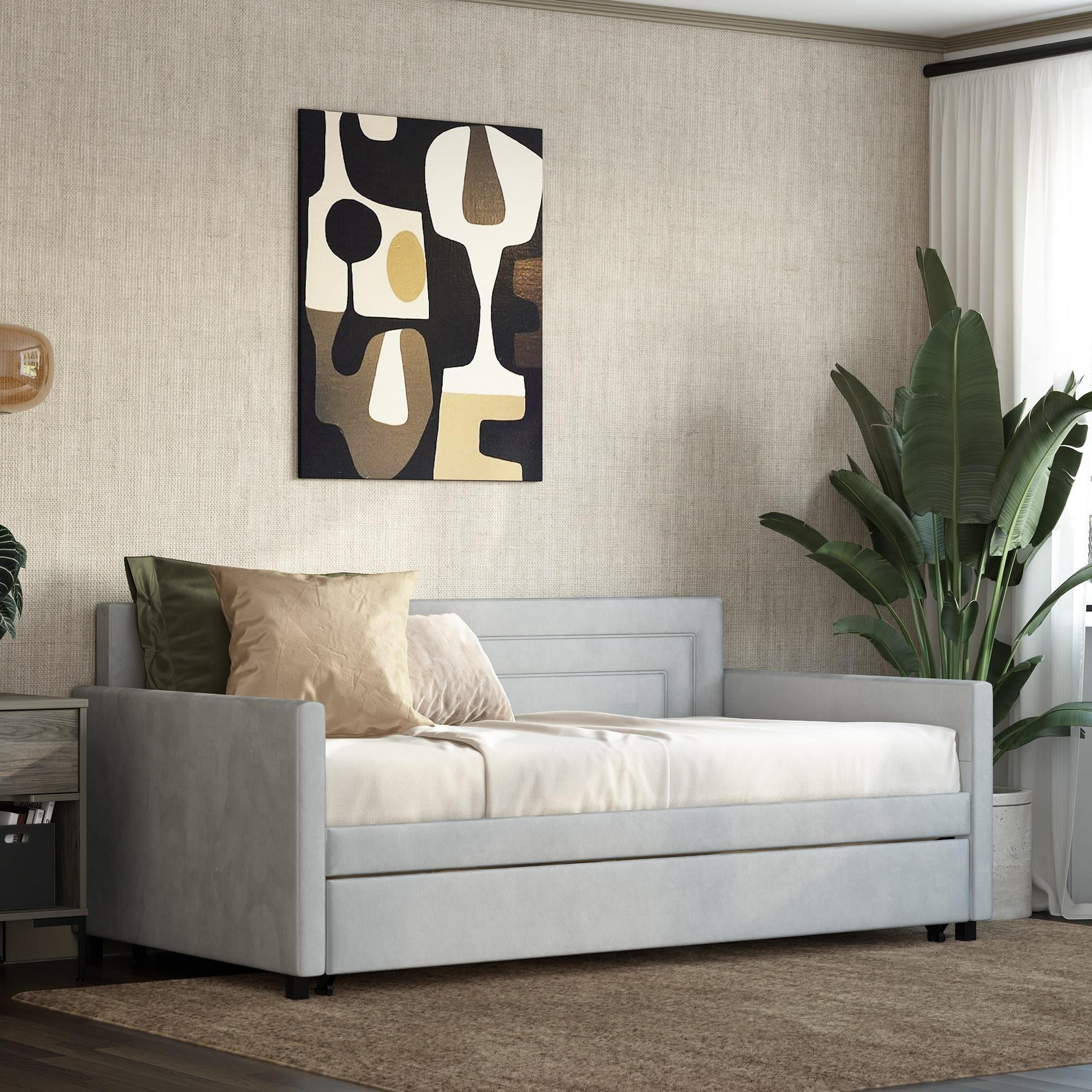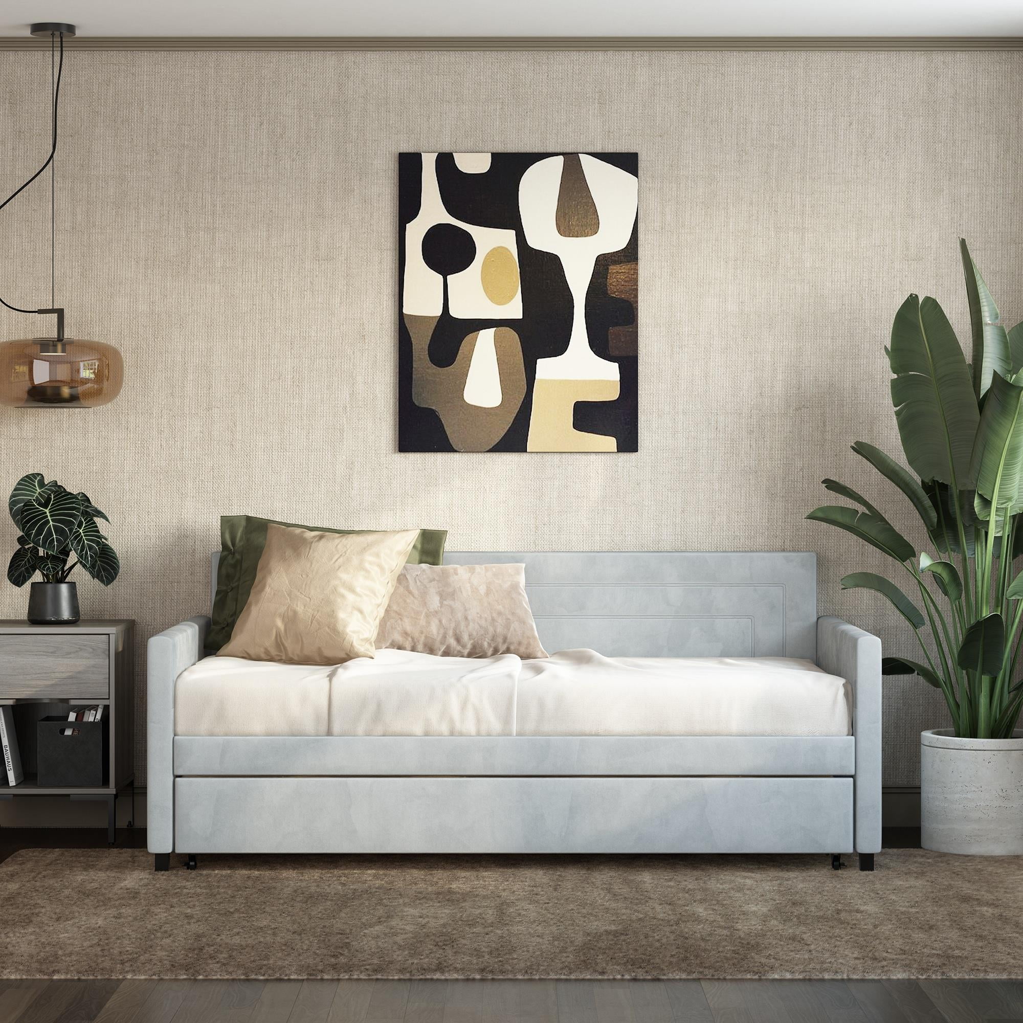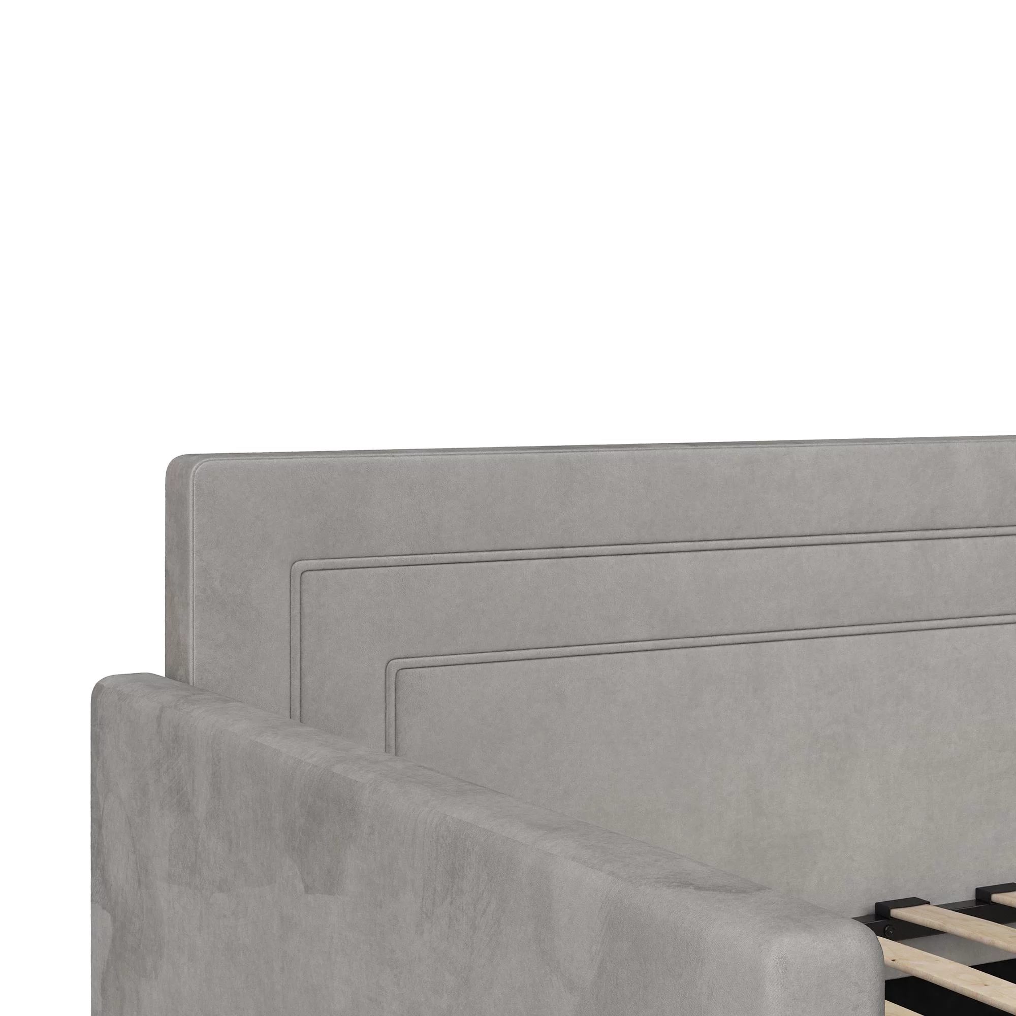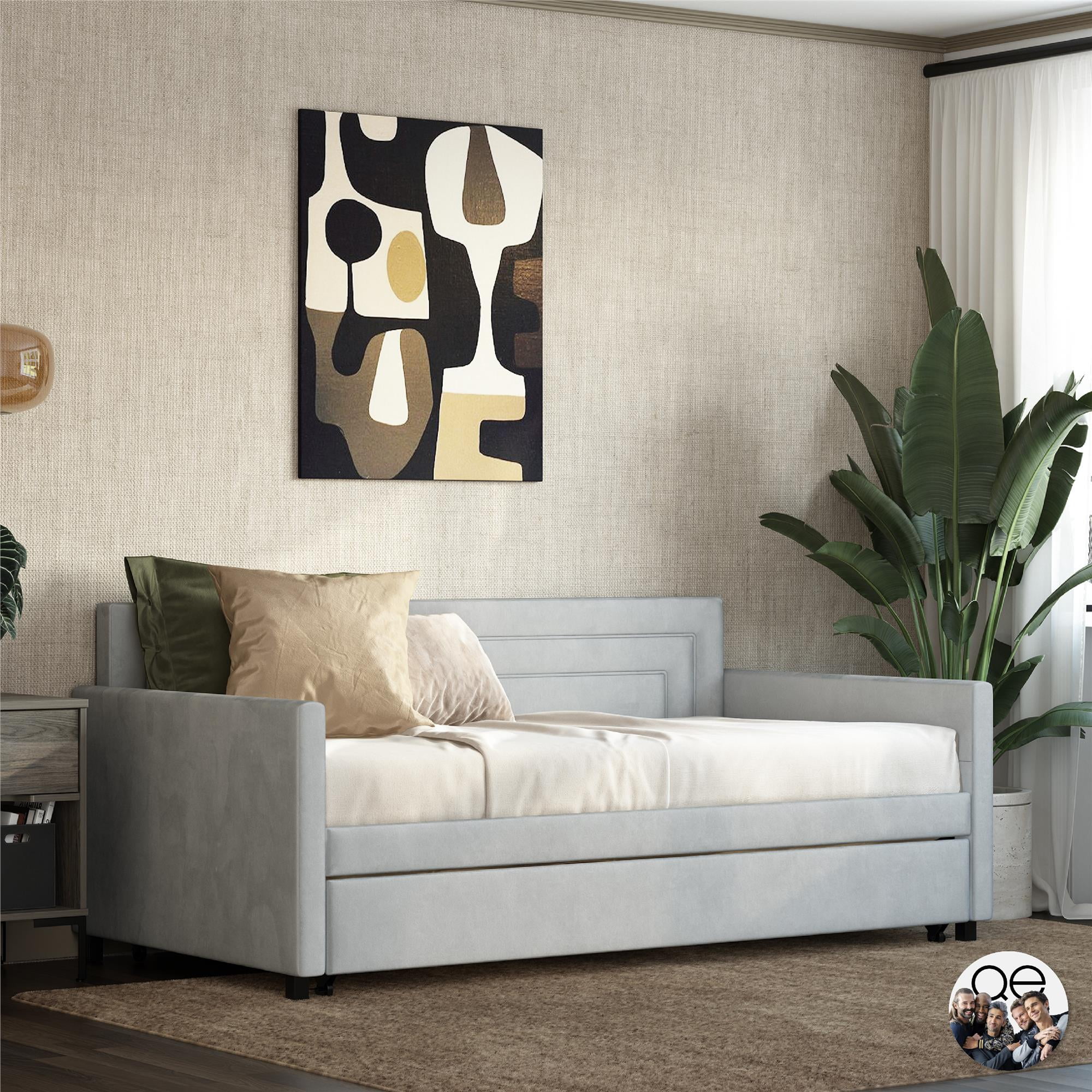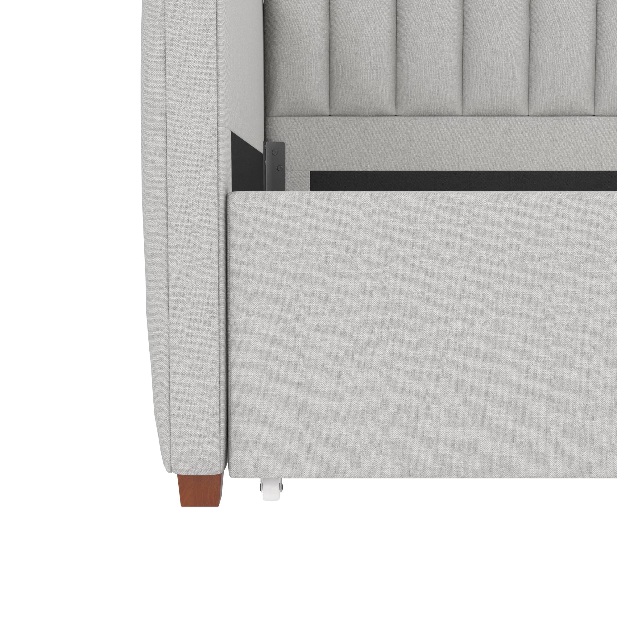 Queer Eye Oxford Upholstered Twin Daybed and Twin Trundle Set, Light Gray Velvet