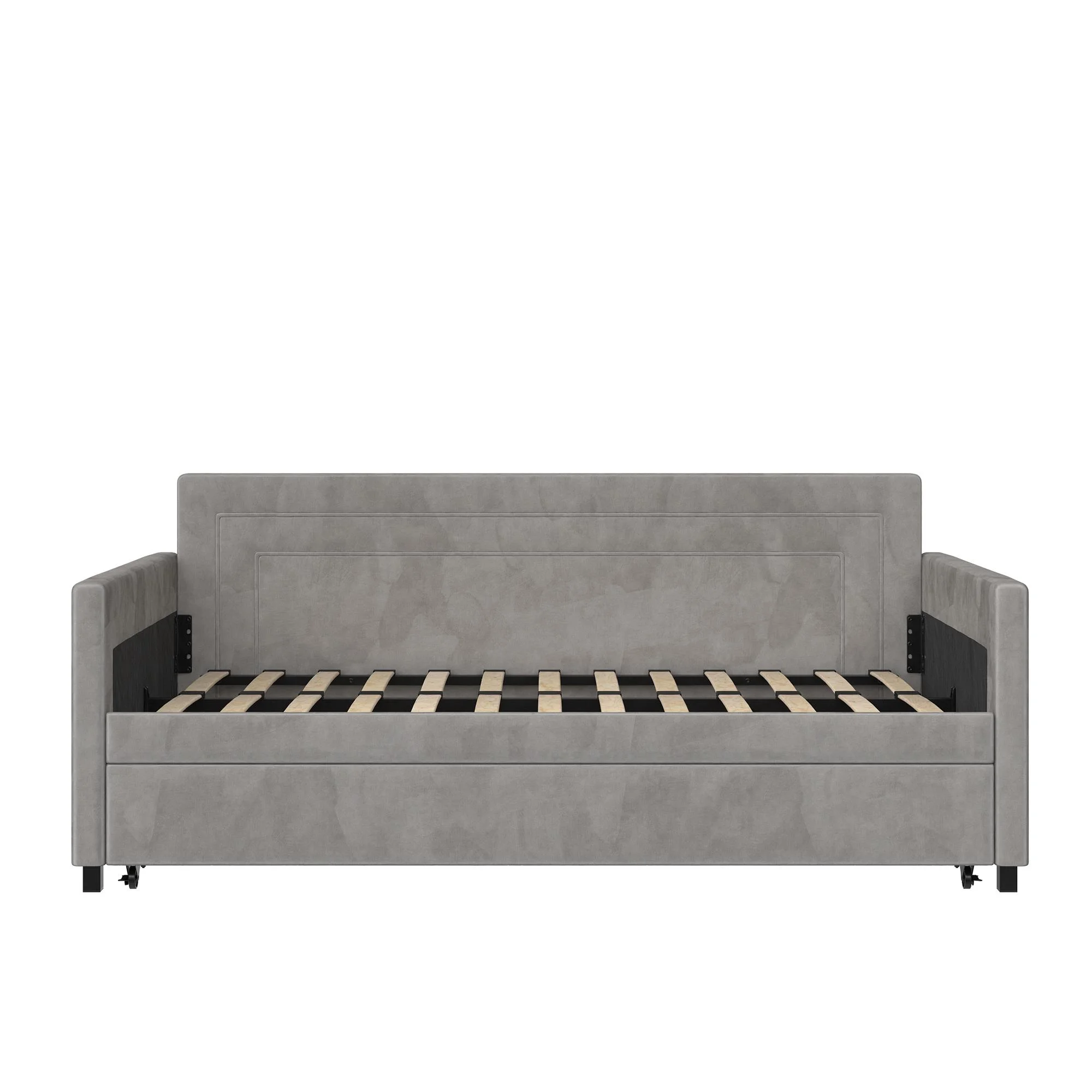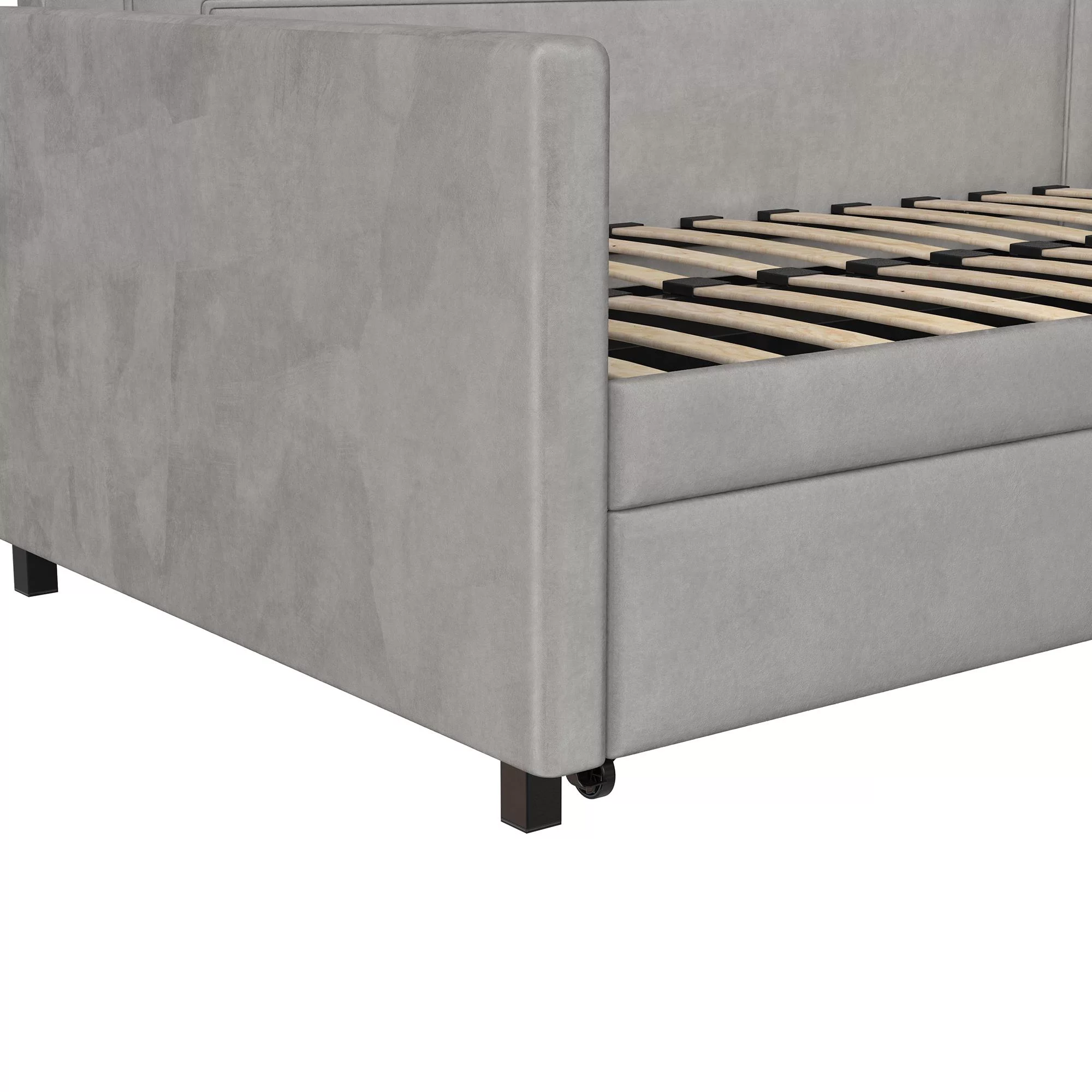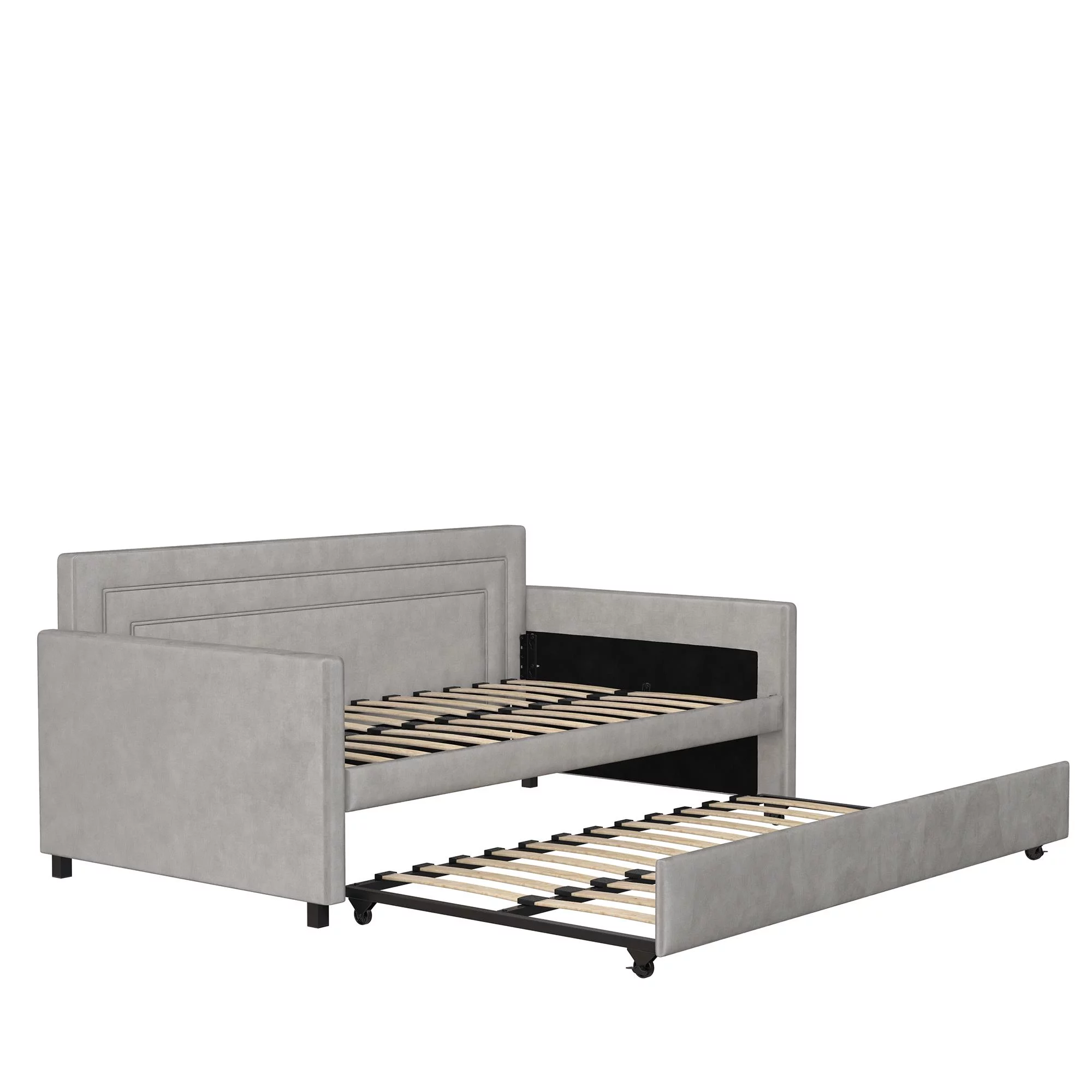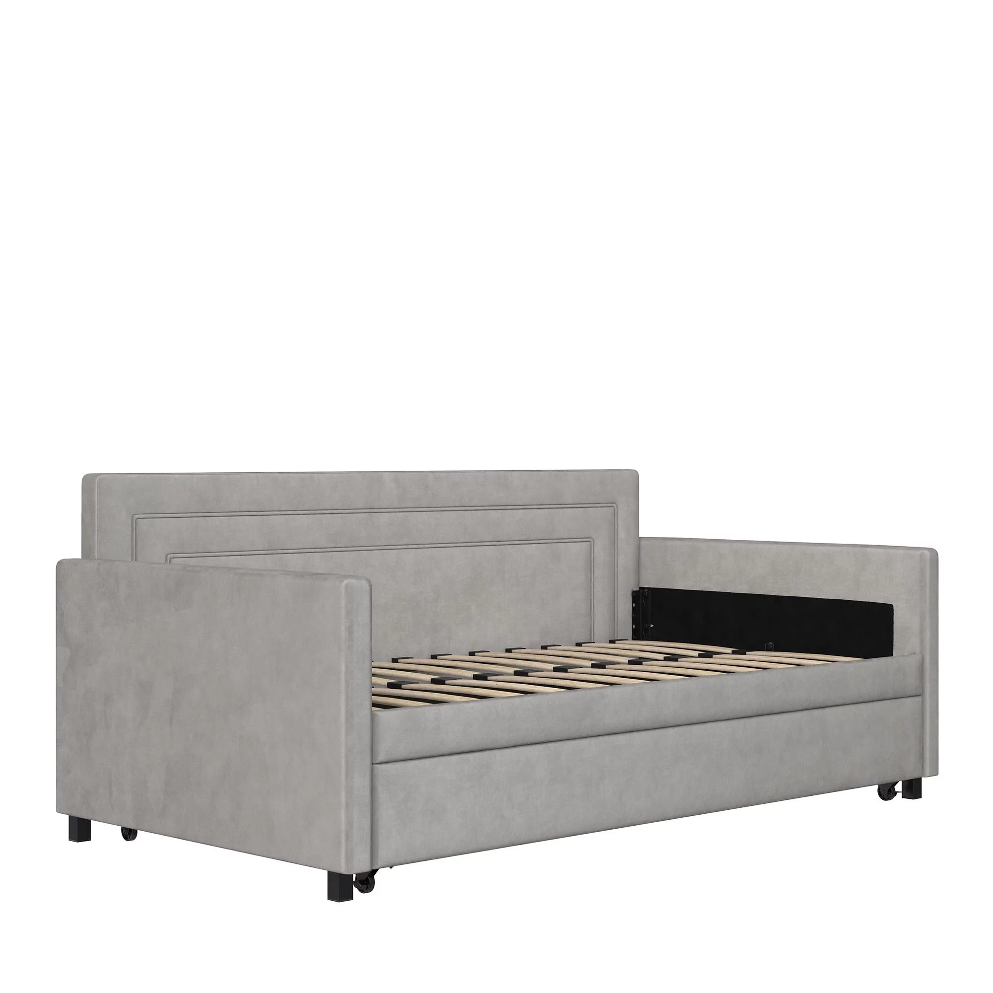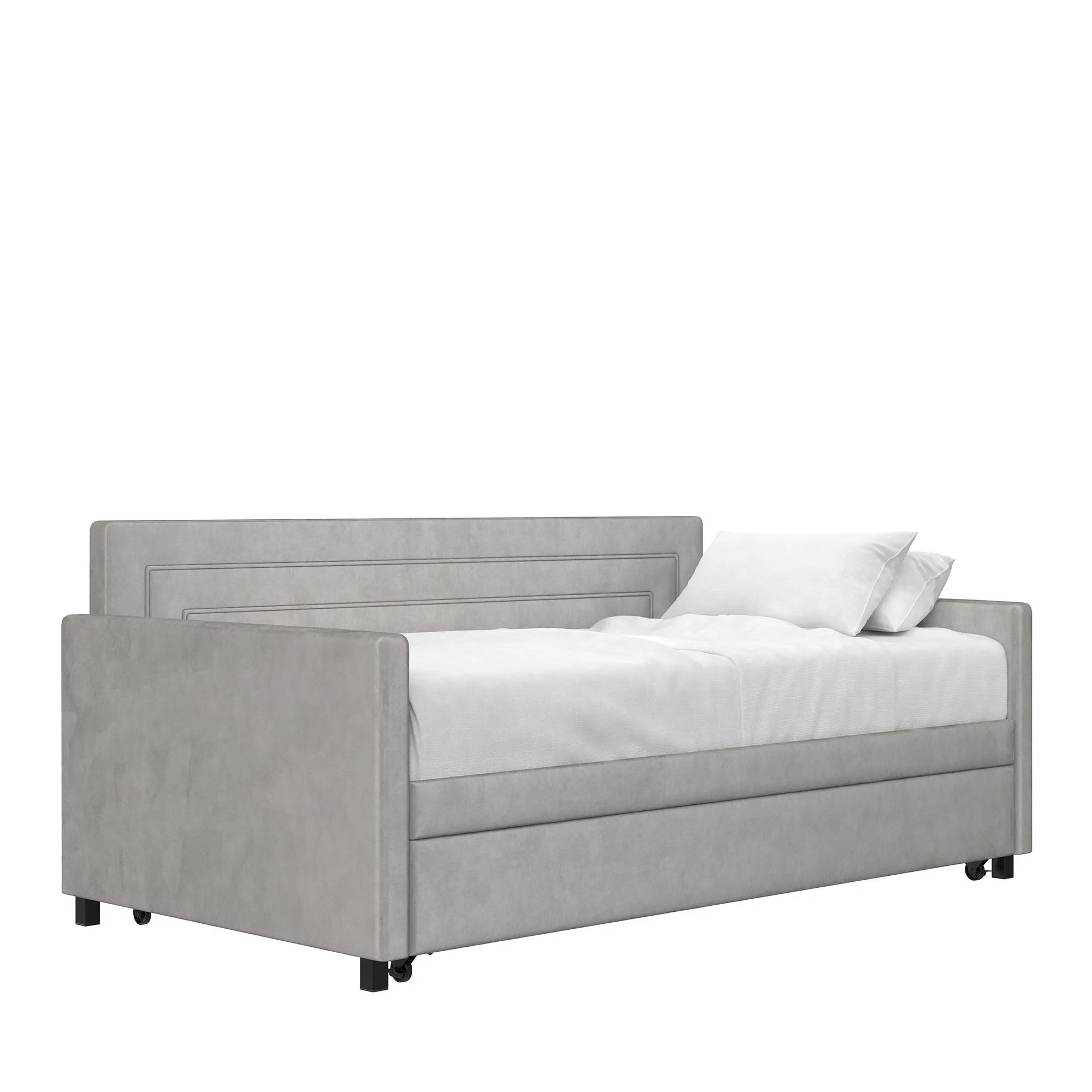 Queer Eye Oxford Upholstered Twin Daybed and Twin Trundle Set, Light Gray Velvet