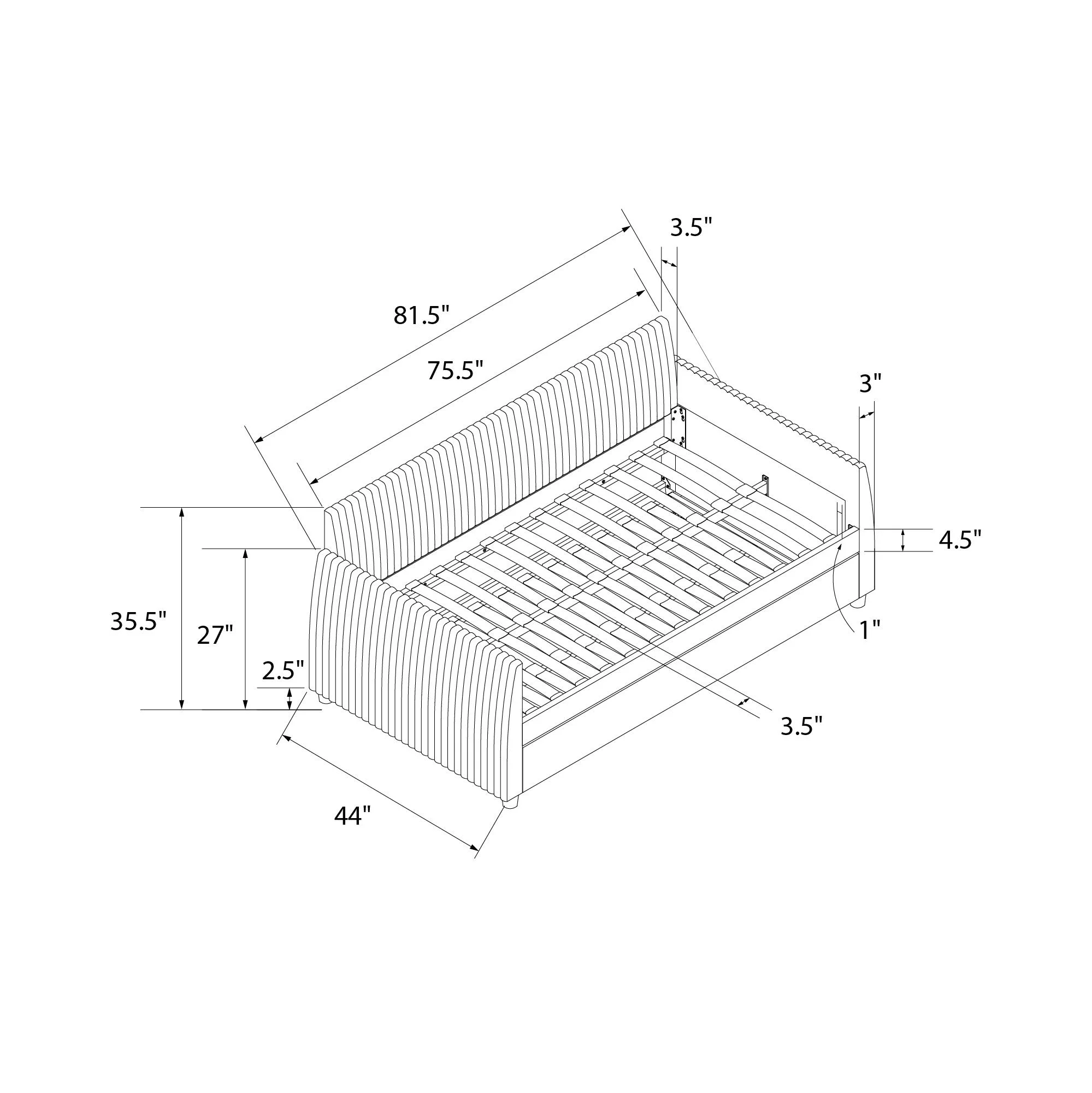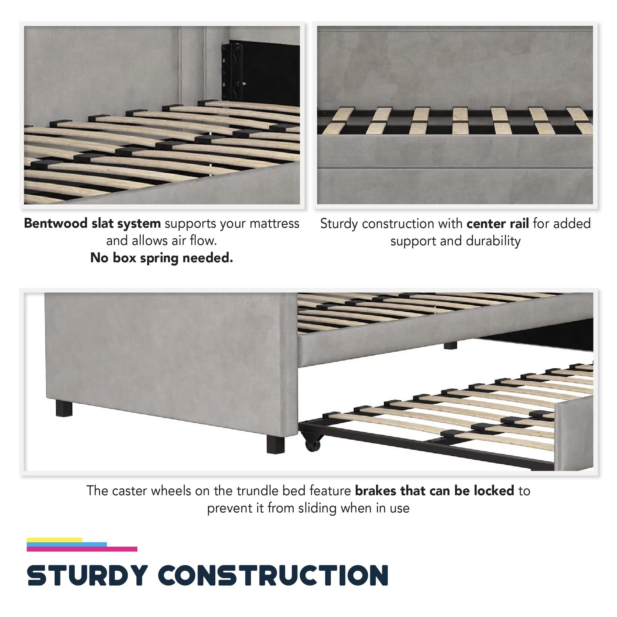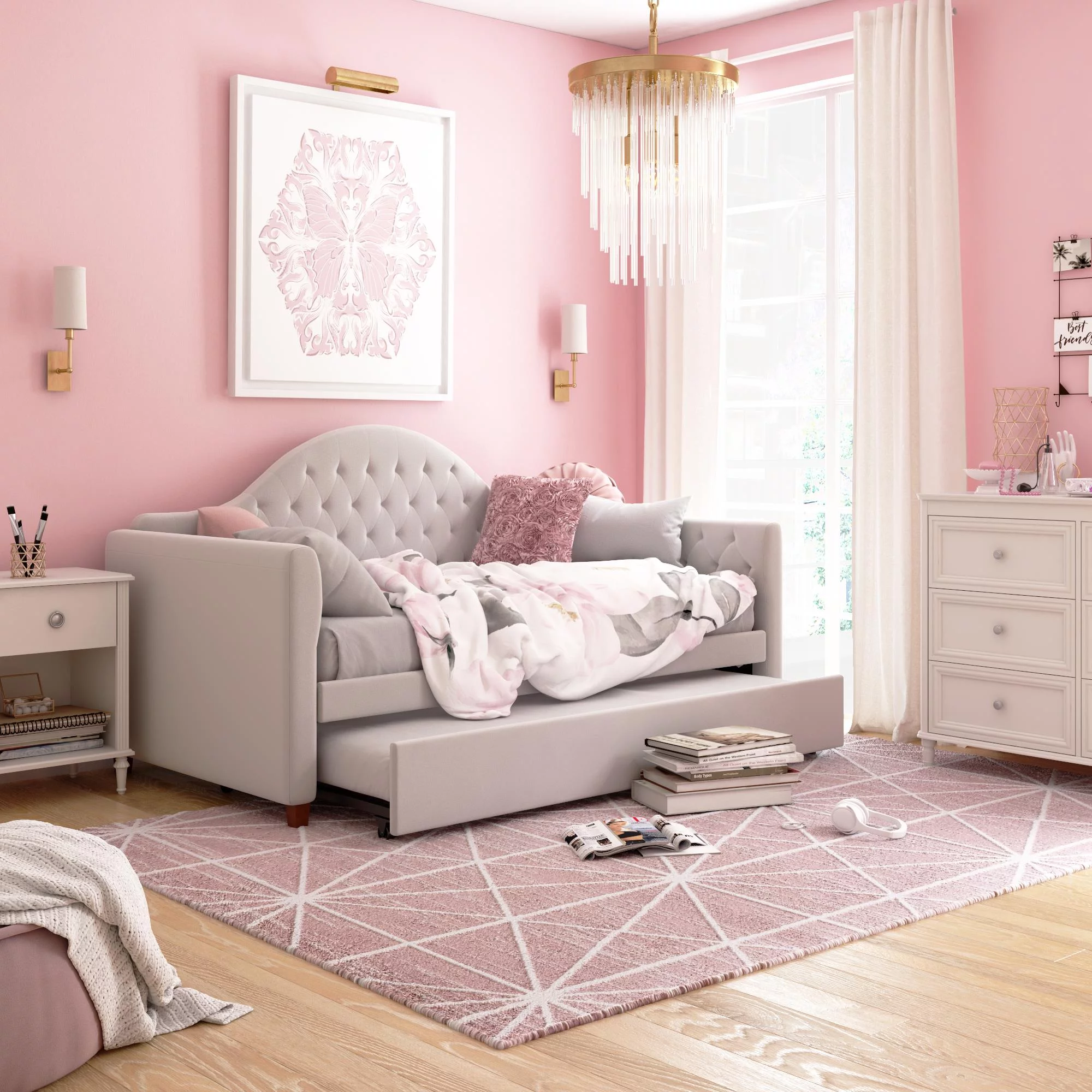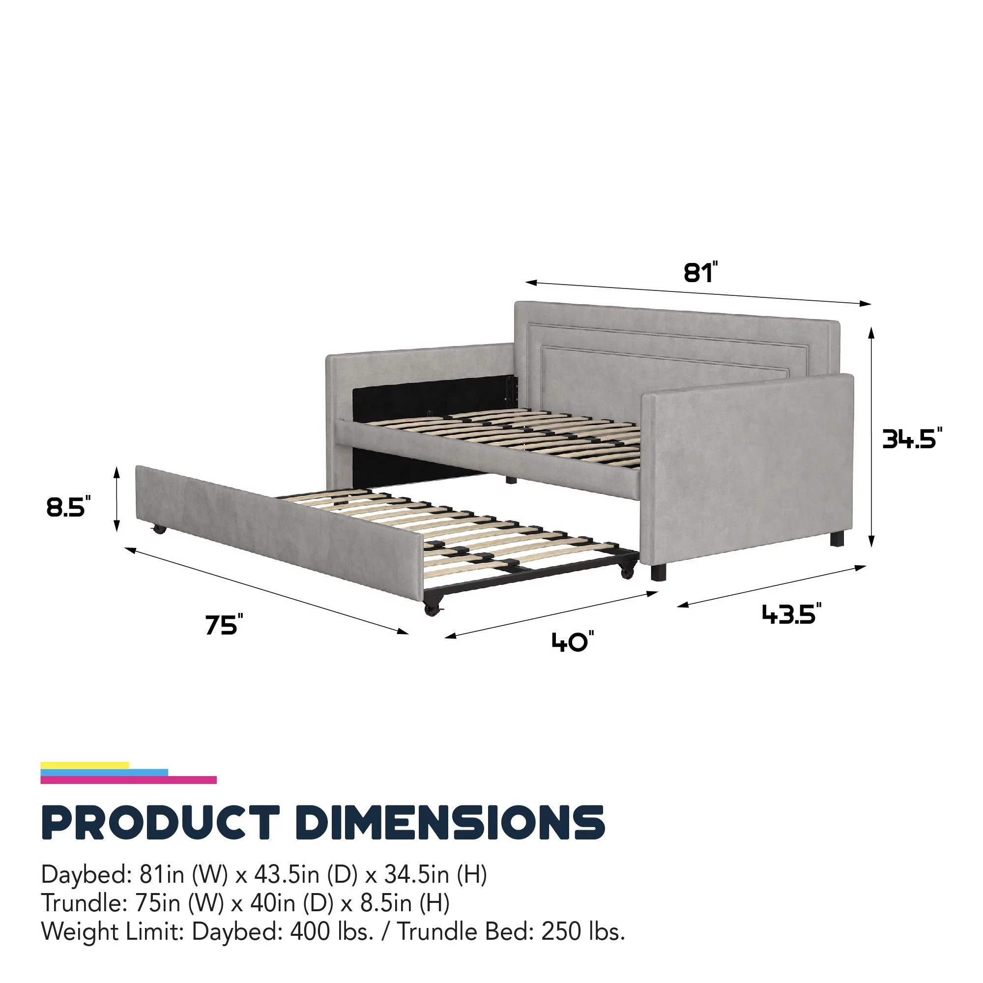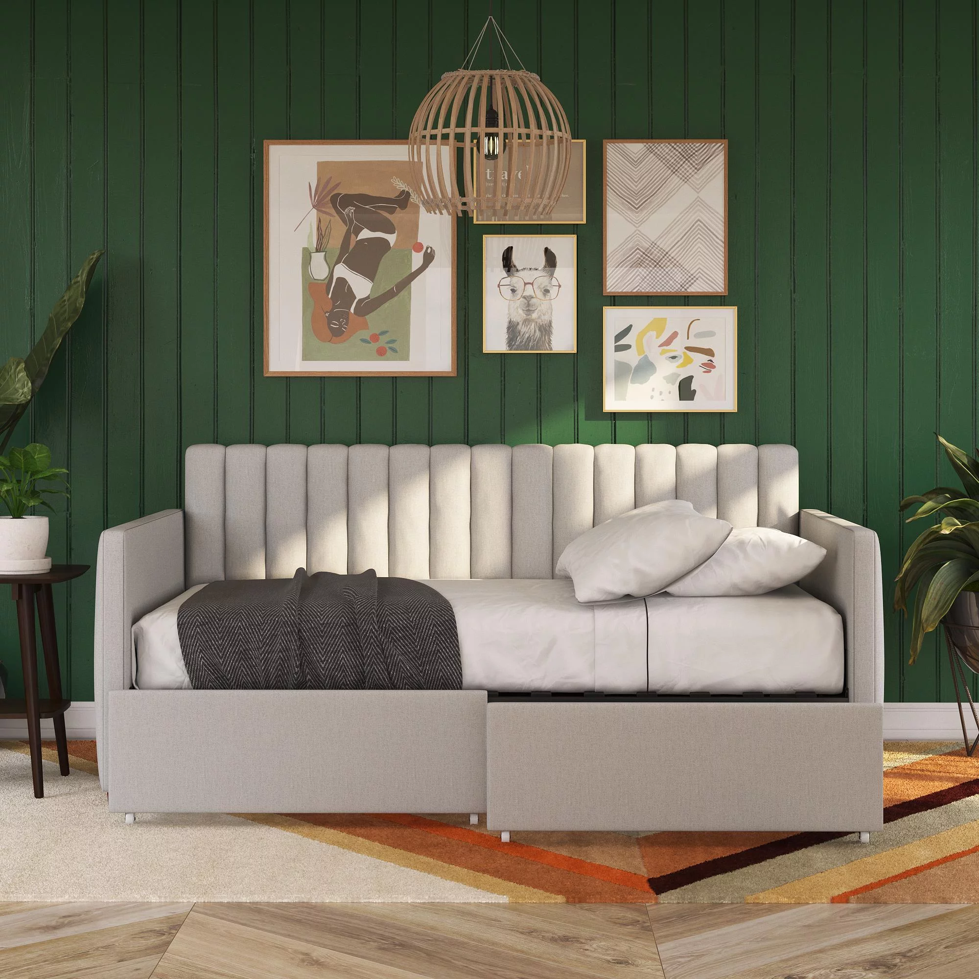 Queer Eye Oxford Upholstered Twin Daybed and Twin Trundle Set, Light Gray Velvet
