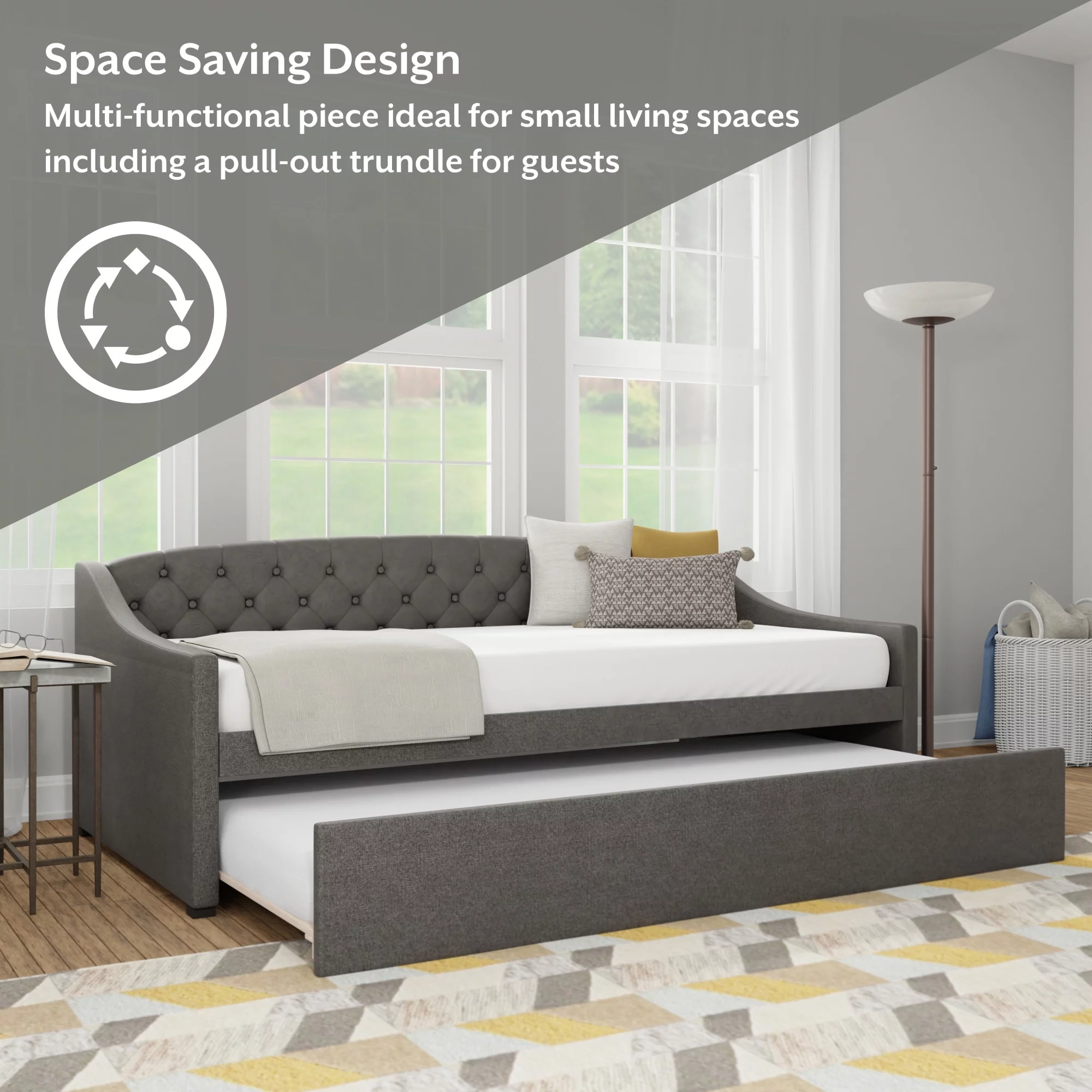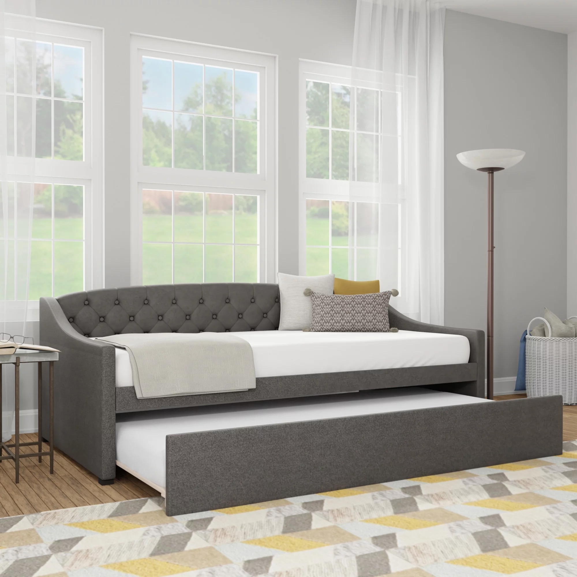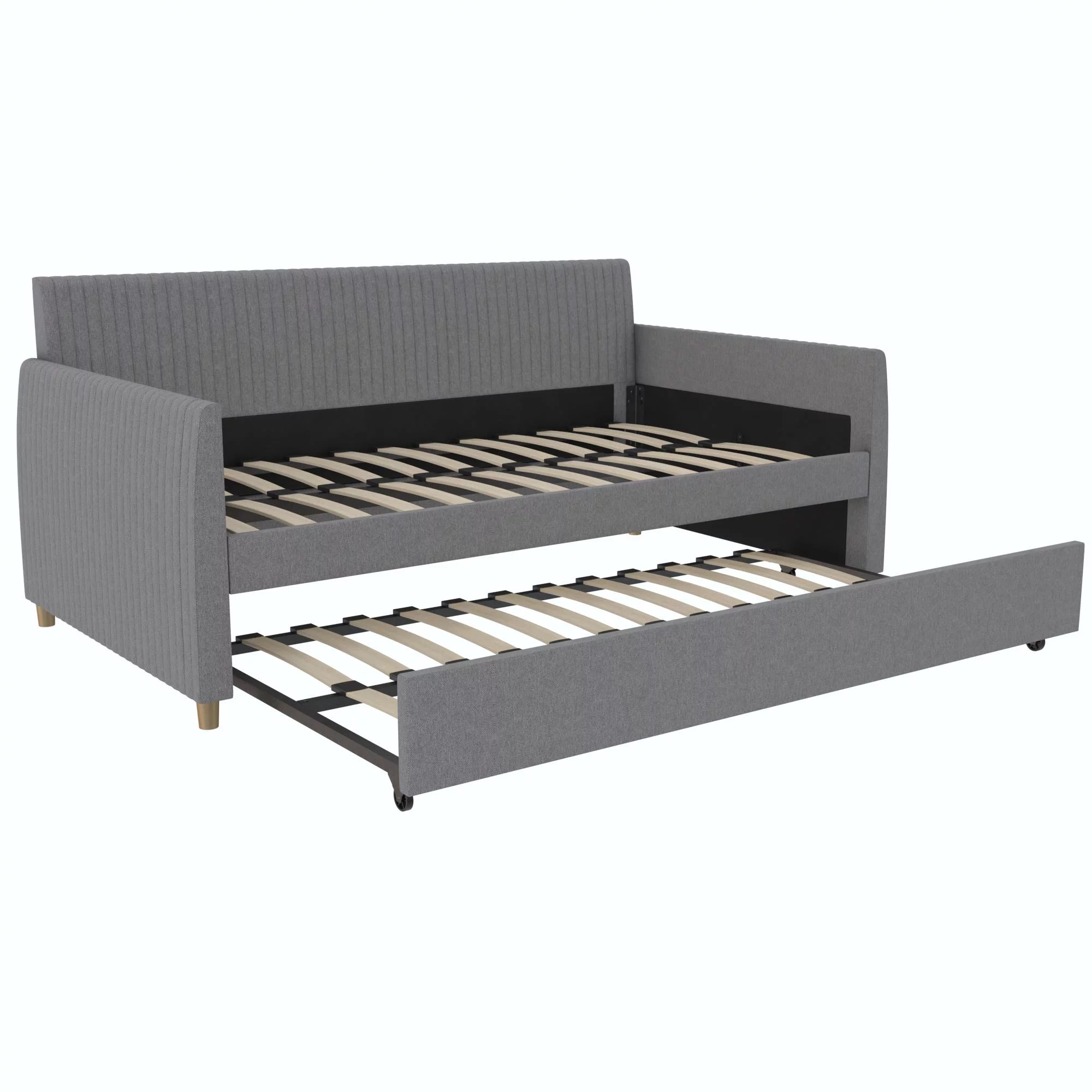 Mr. Kate Daphne Upholstered Daybed with Roll Out Trundle, No Box Spring Needed, Twin/Twin Size, Dark Gray Linen