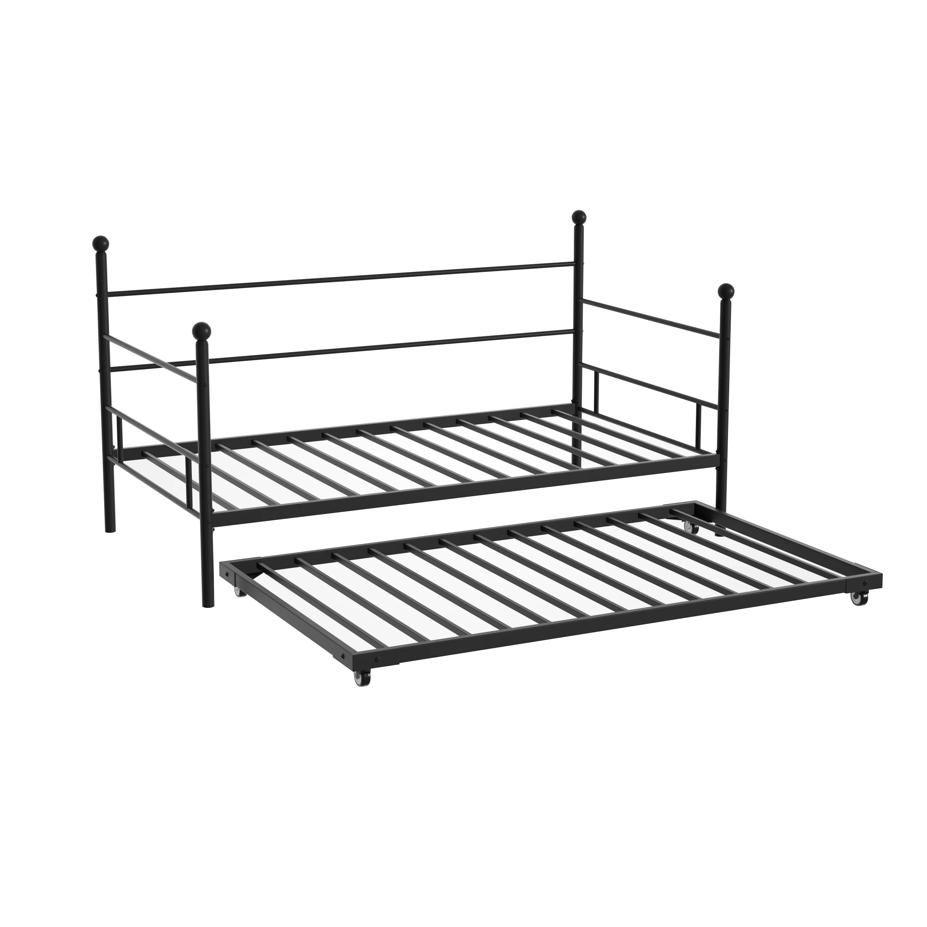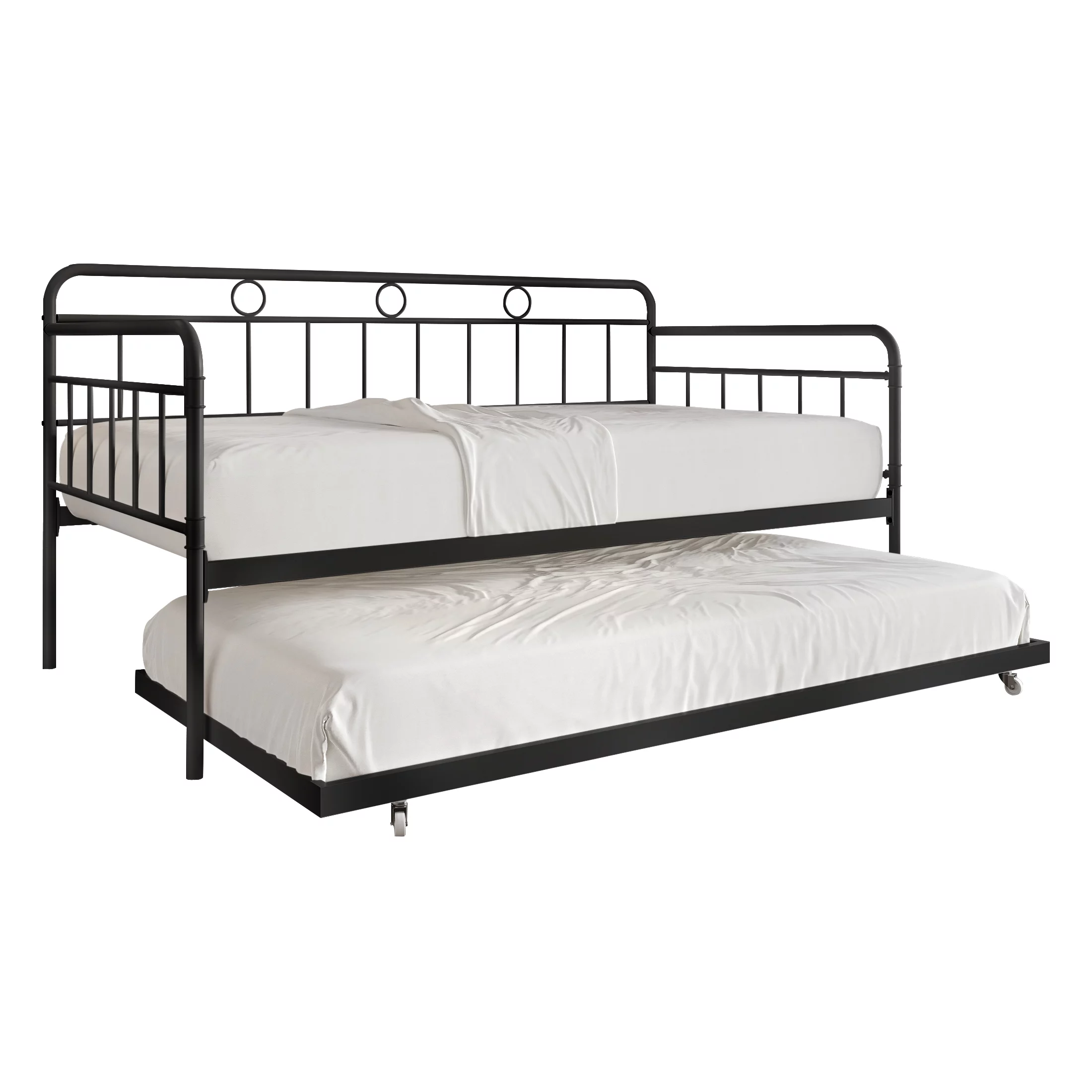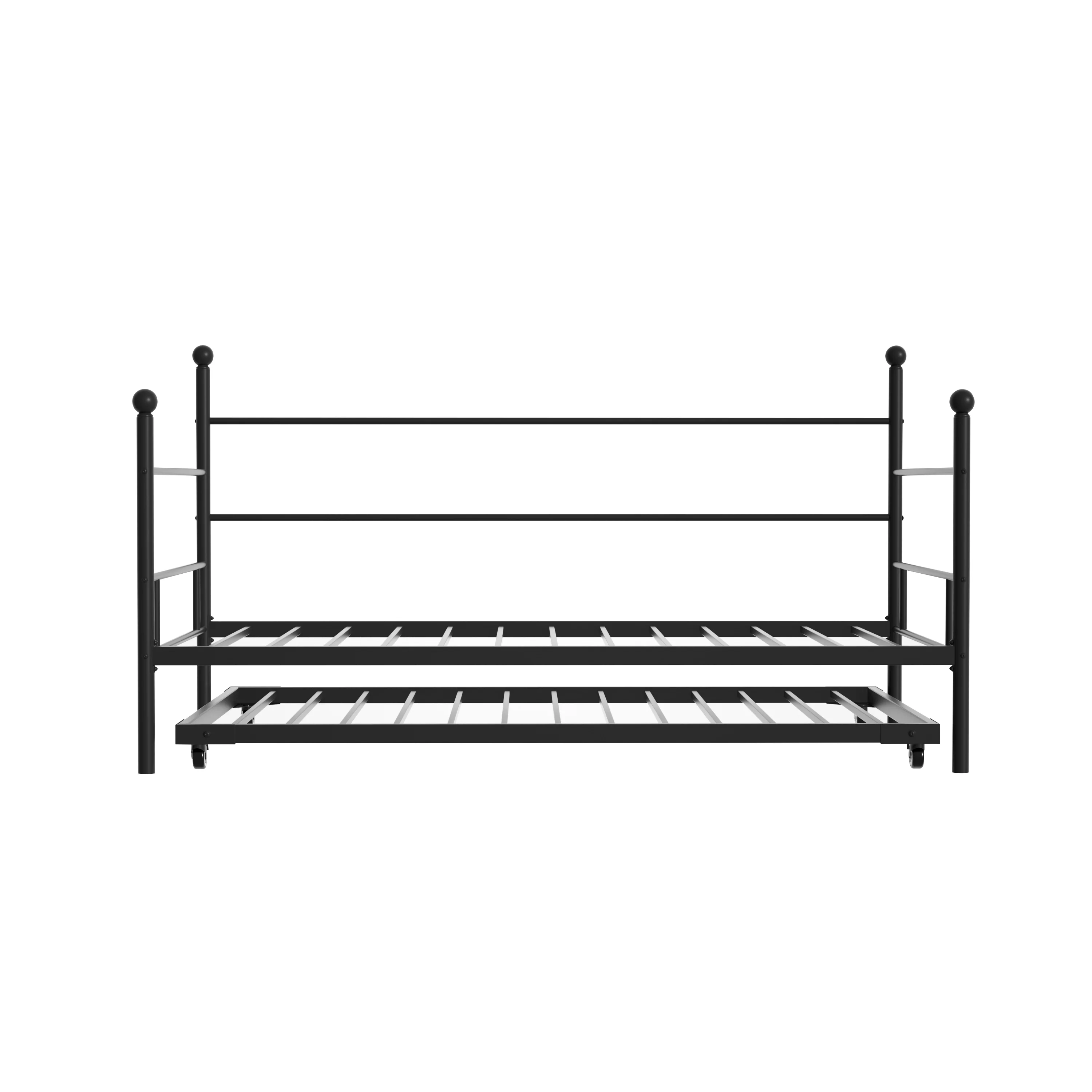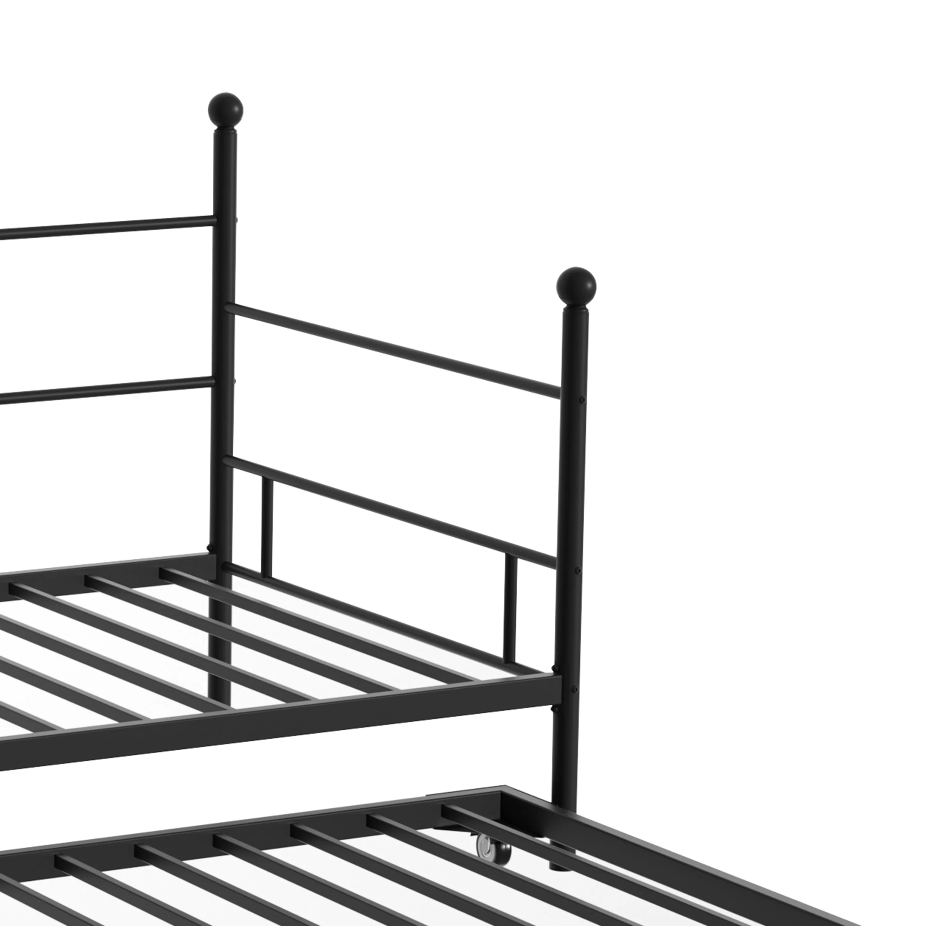 Castle Place Minimalist Vintage Twin Size Metal Daybed With Trundle, Black