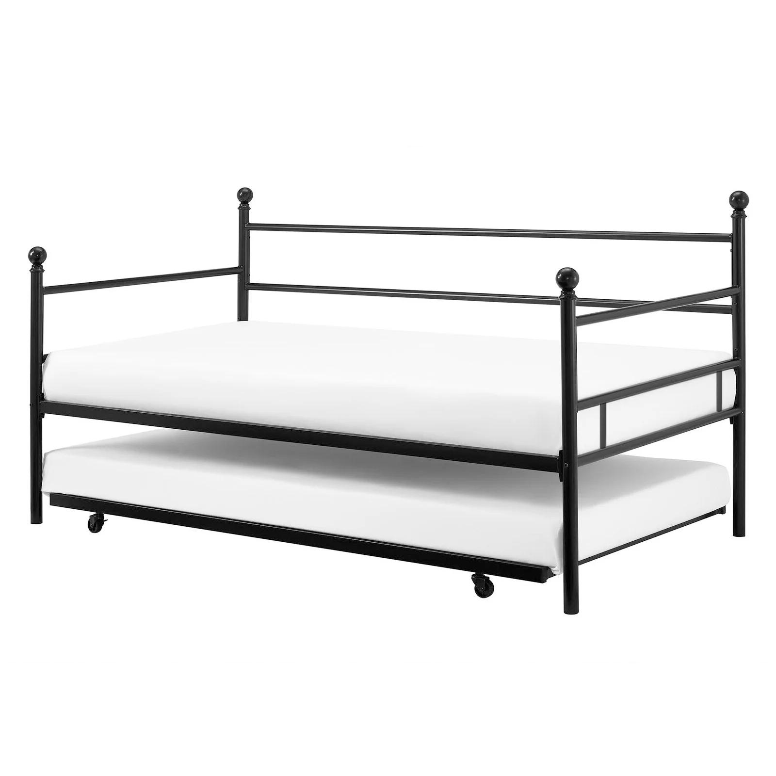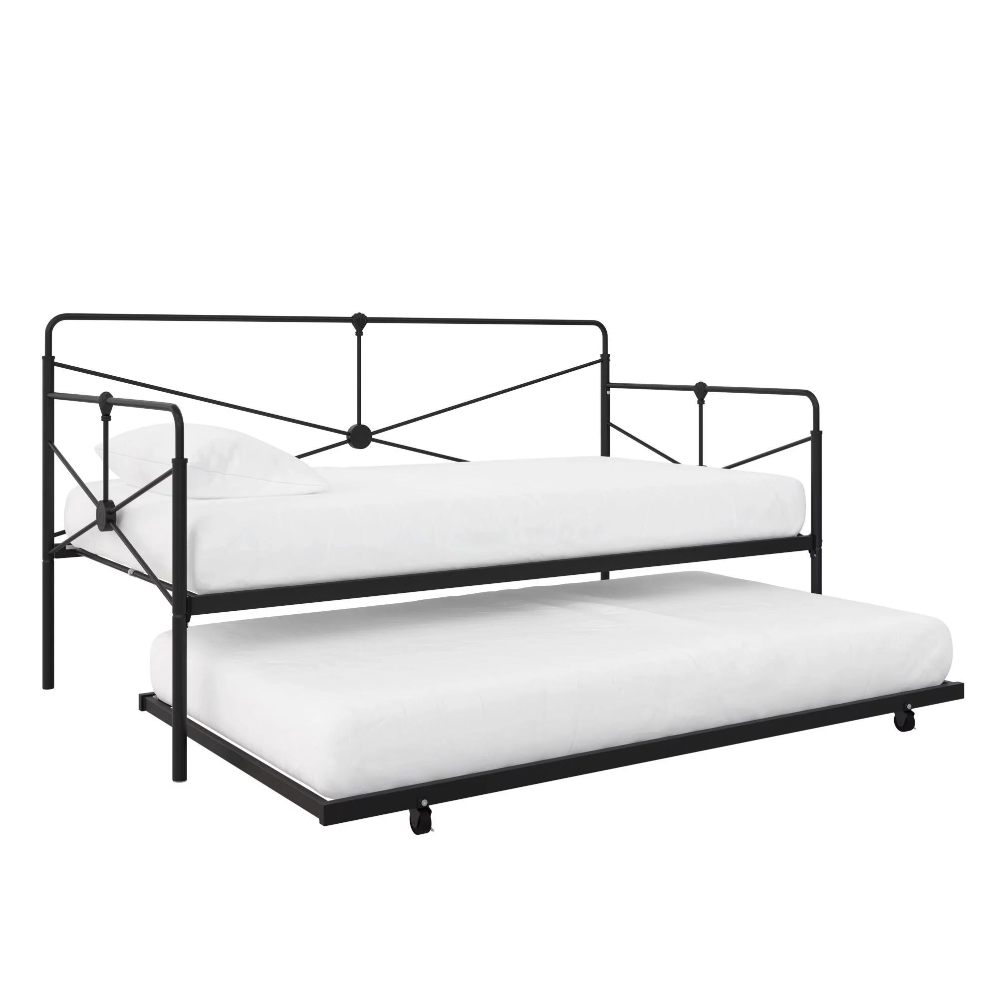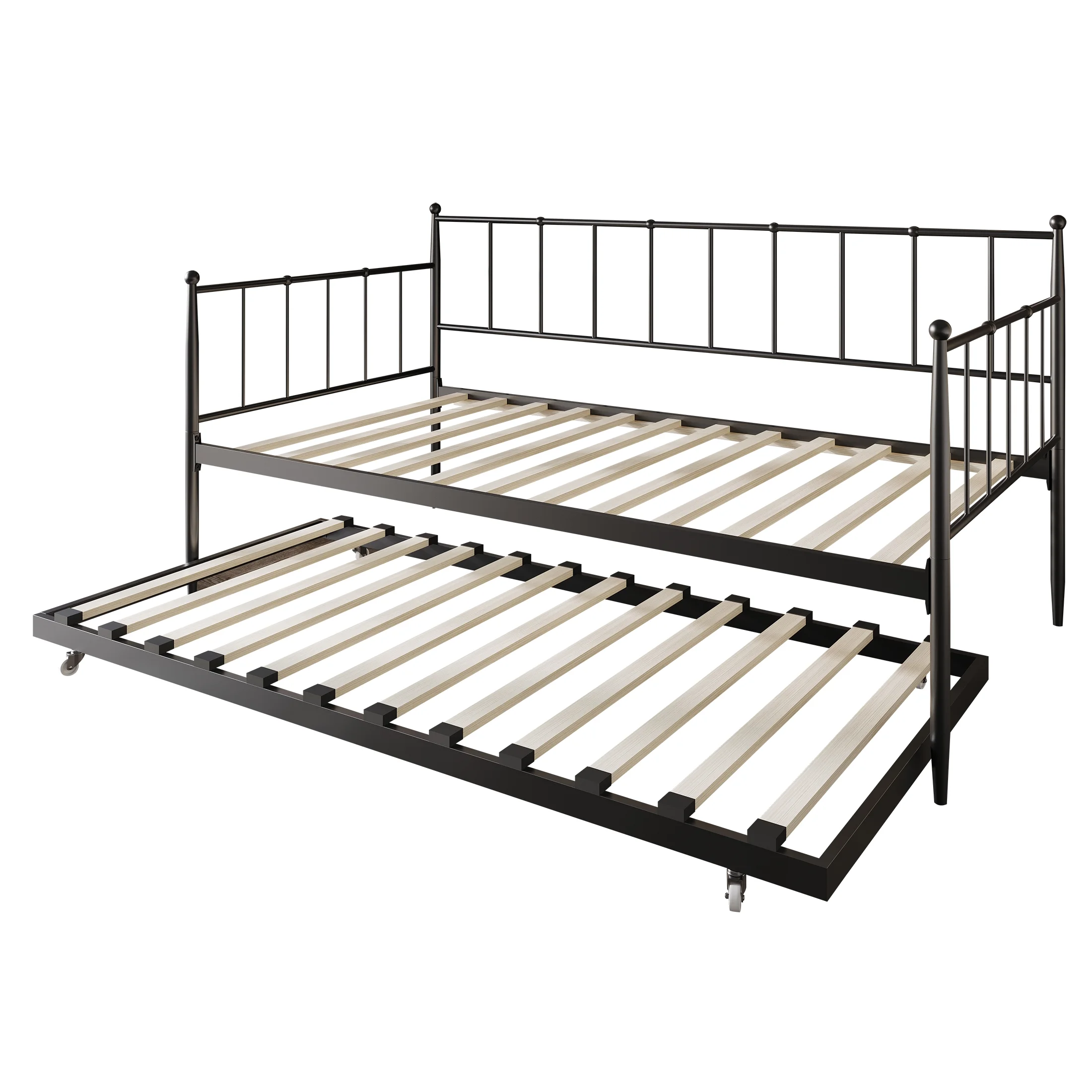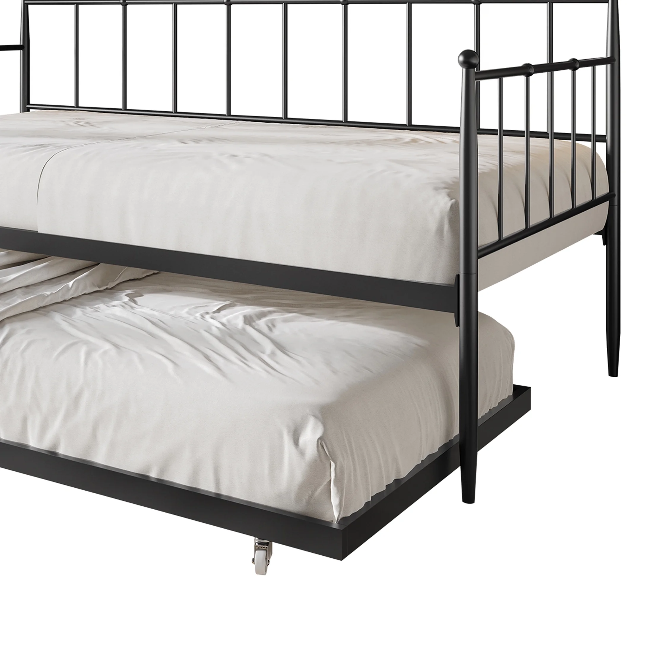 Castle Place Minimalist Vintage Twin Size Metal Daybed With Trundle, Black