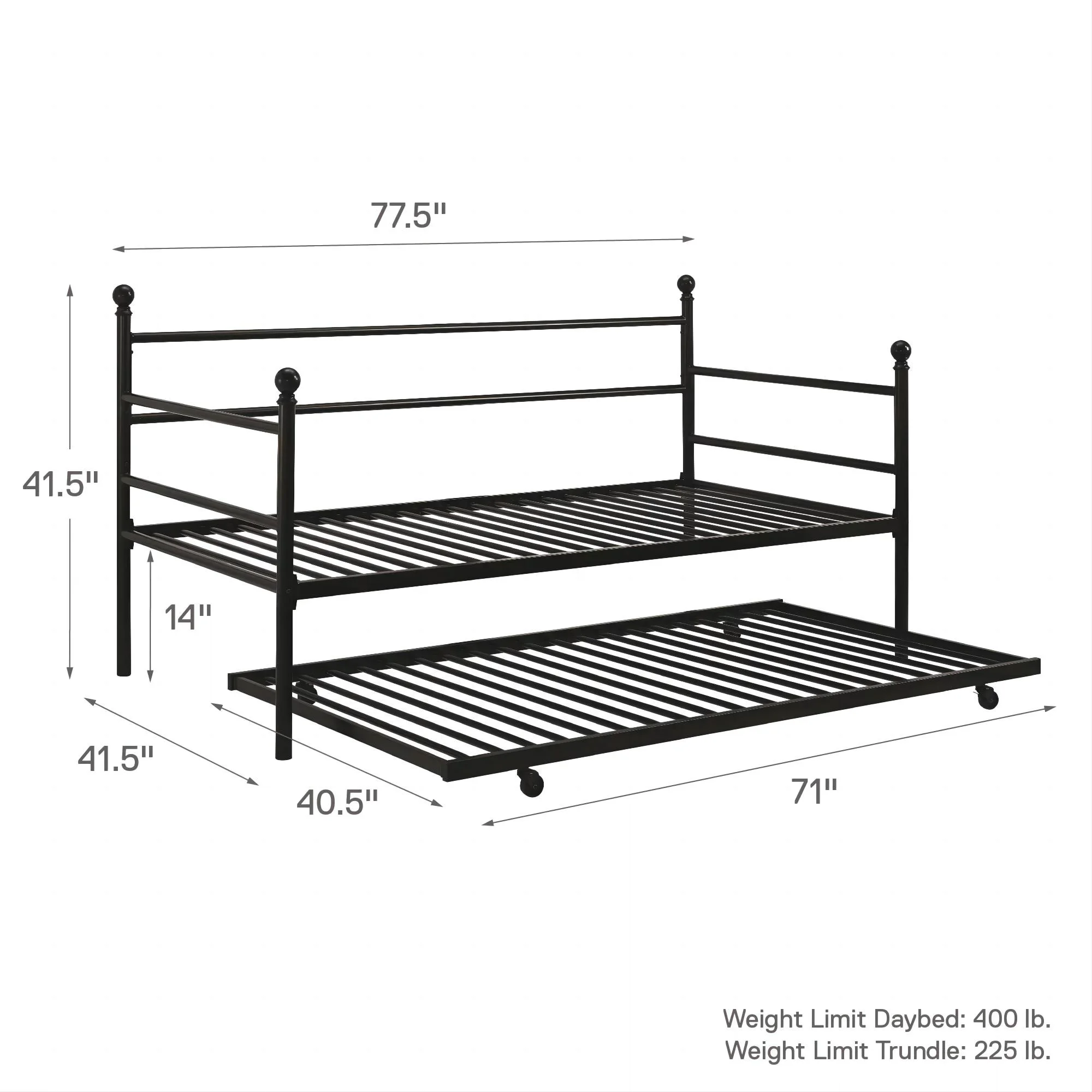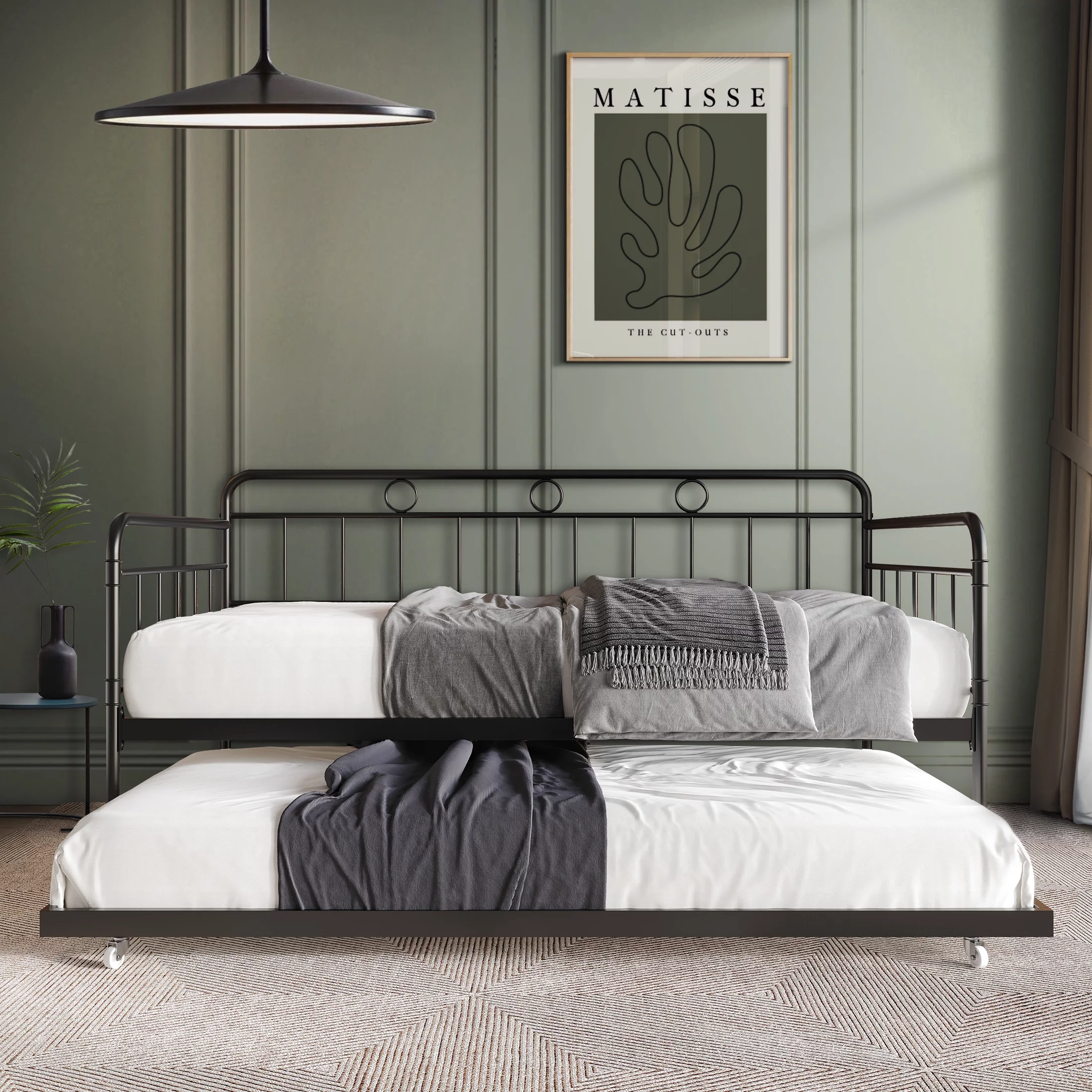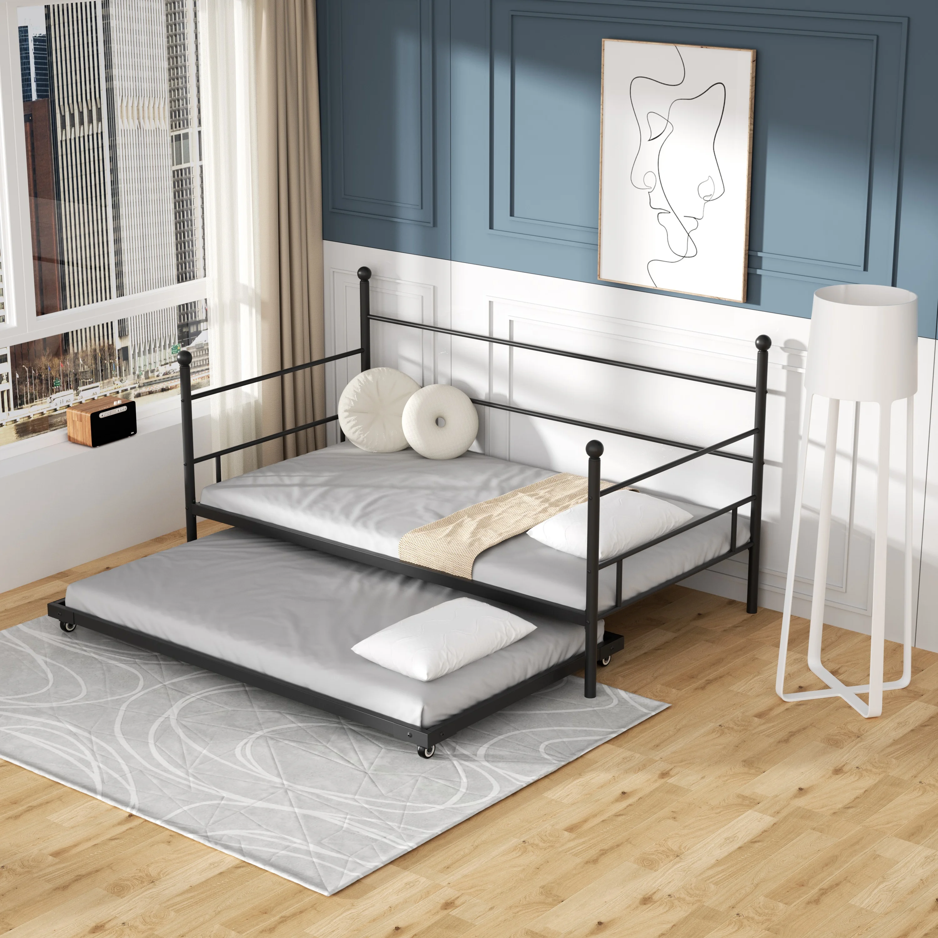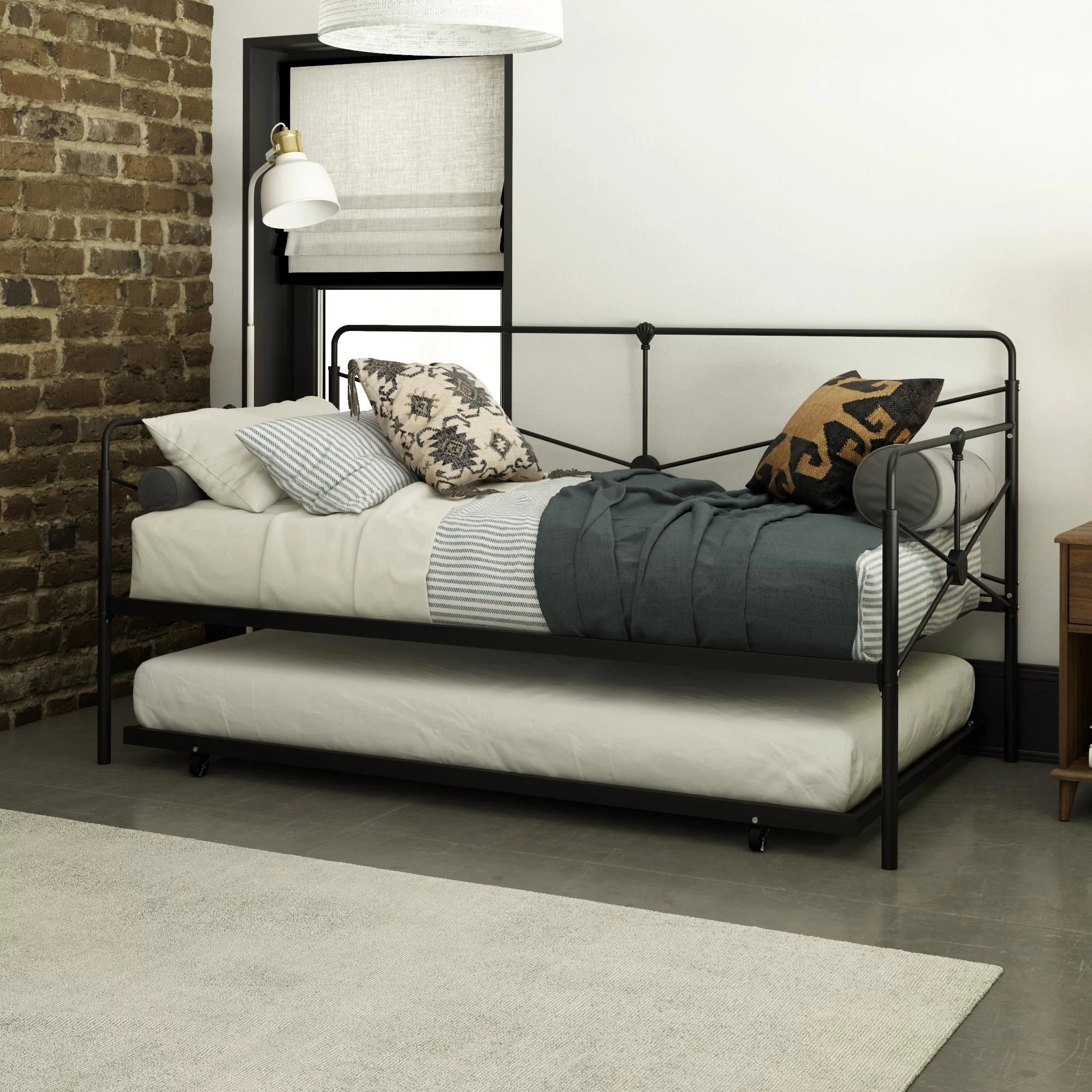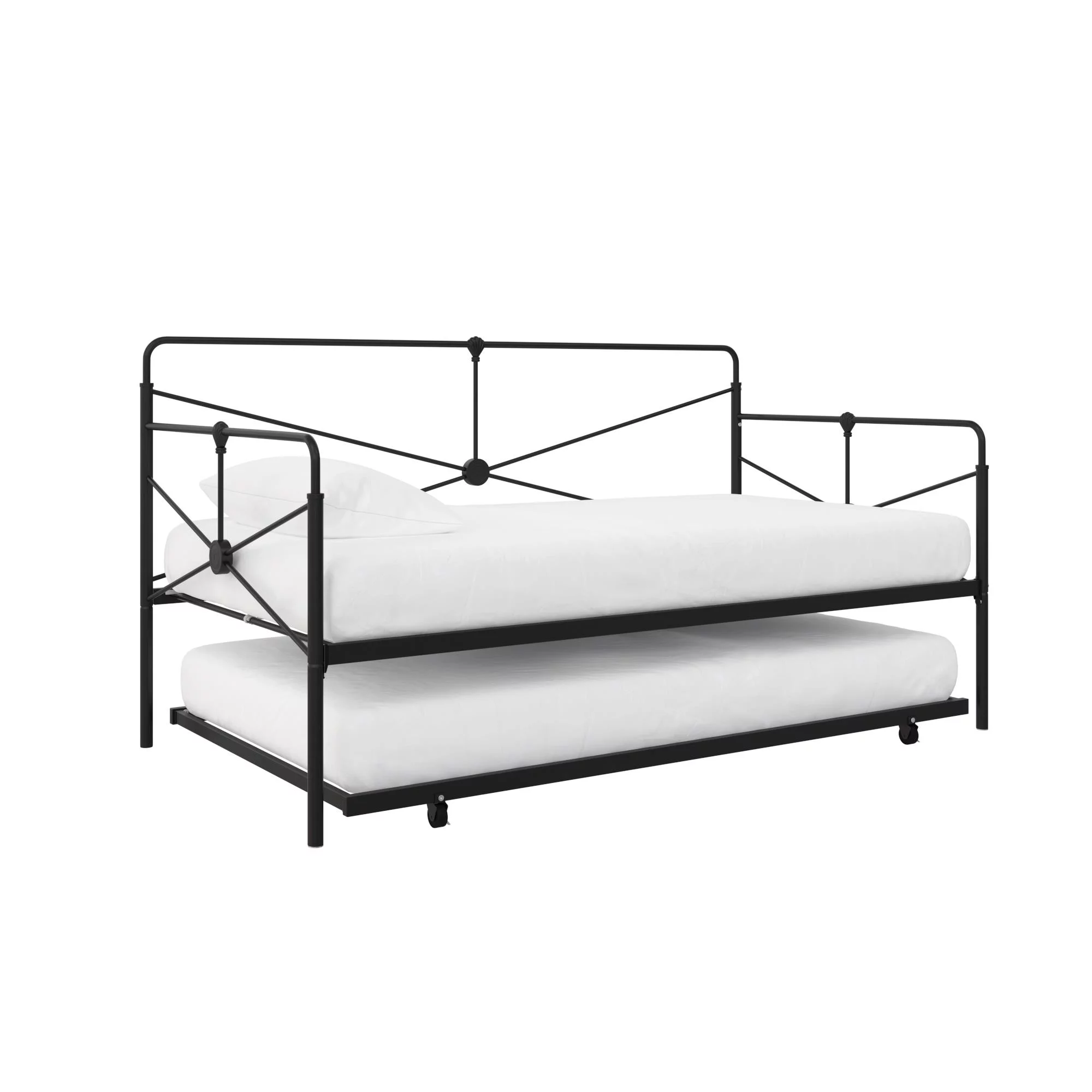 Castle Place Minimalist Vintage Twin Size Metal Daybed With Trundle, Black