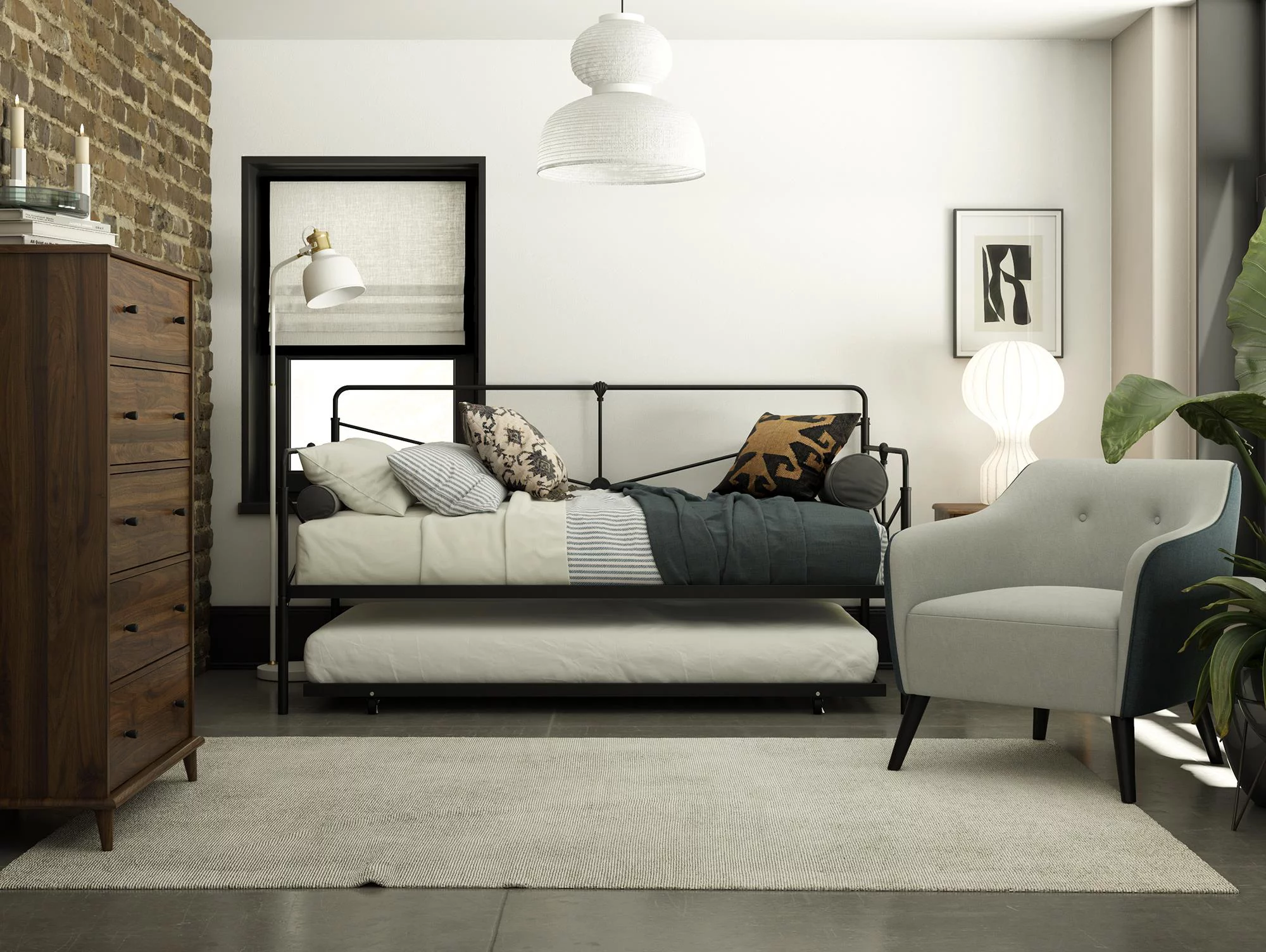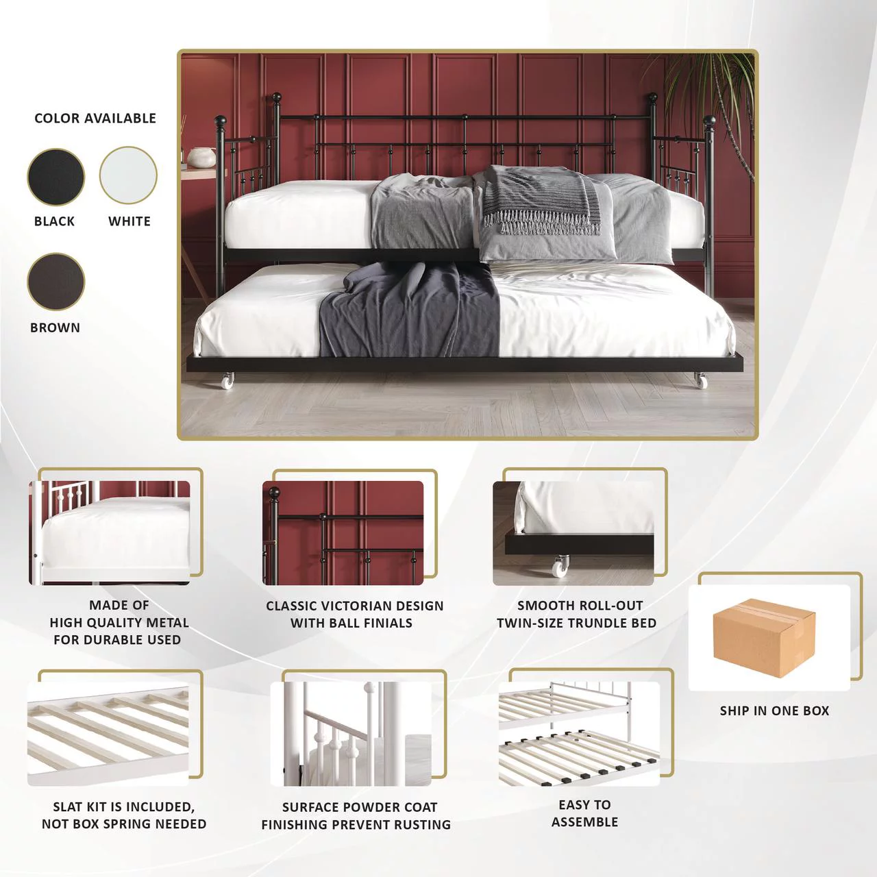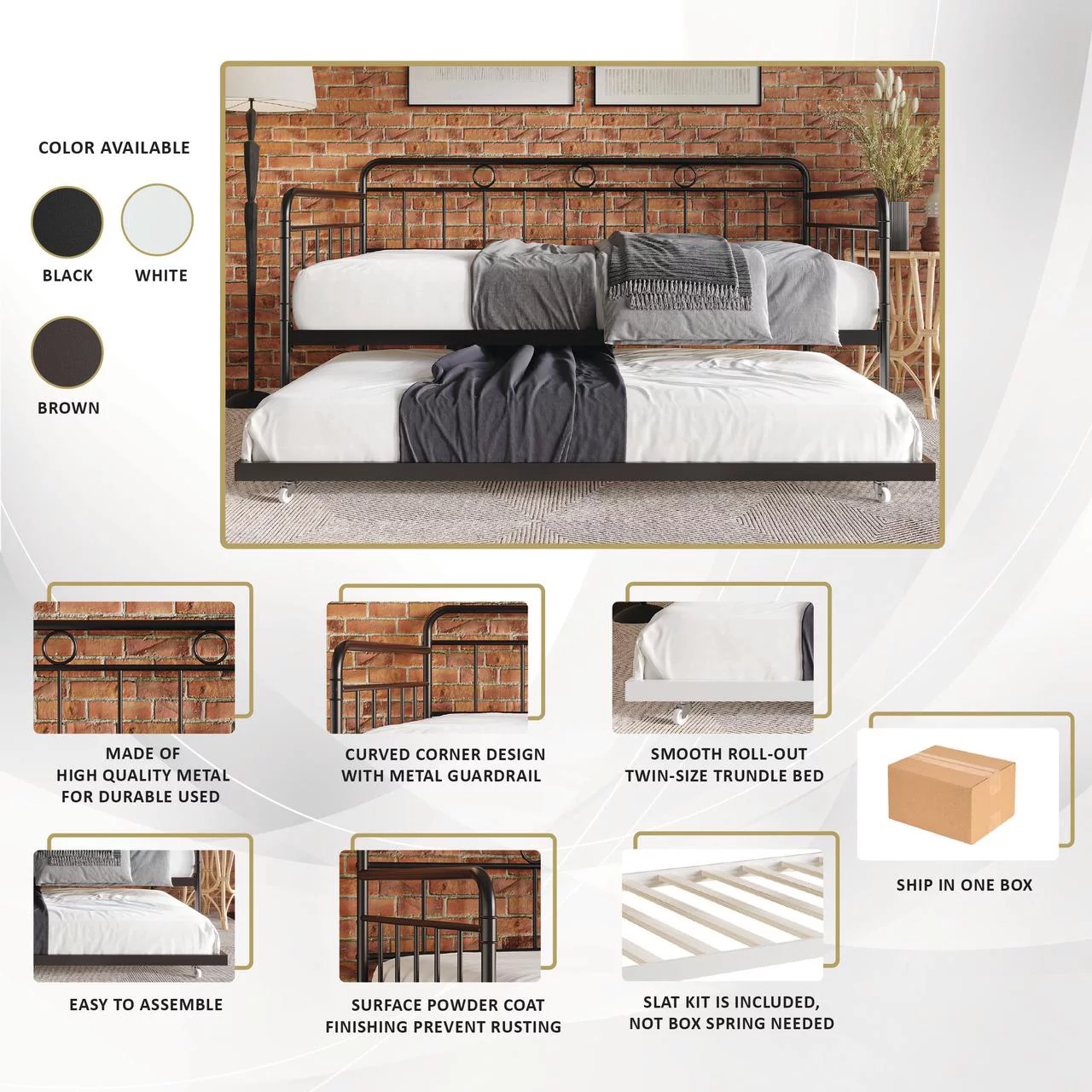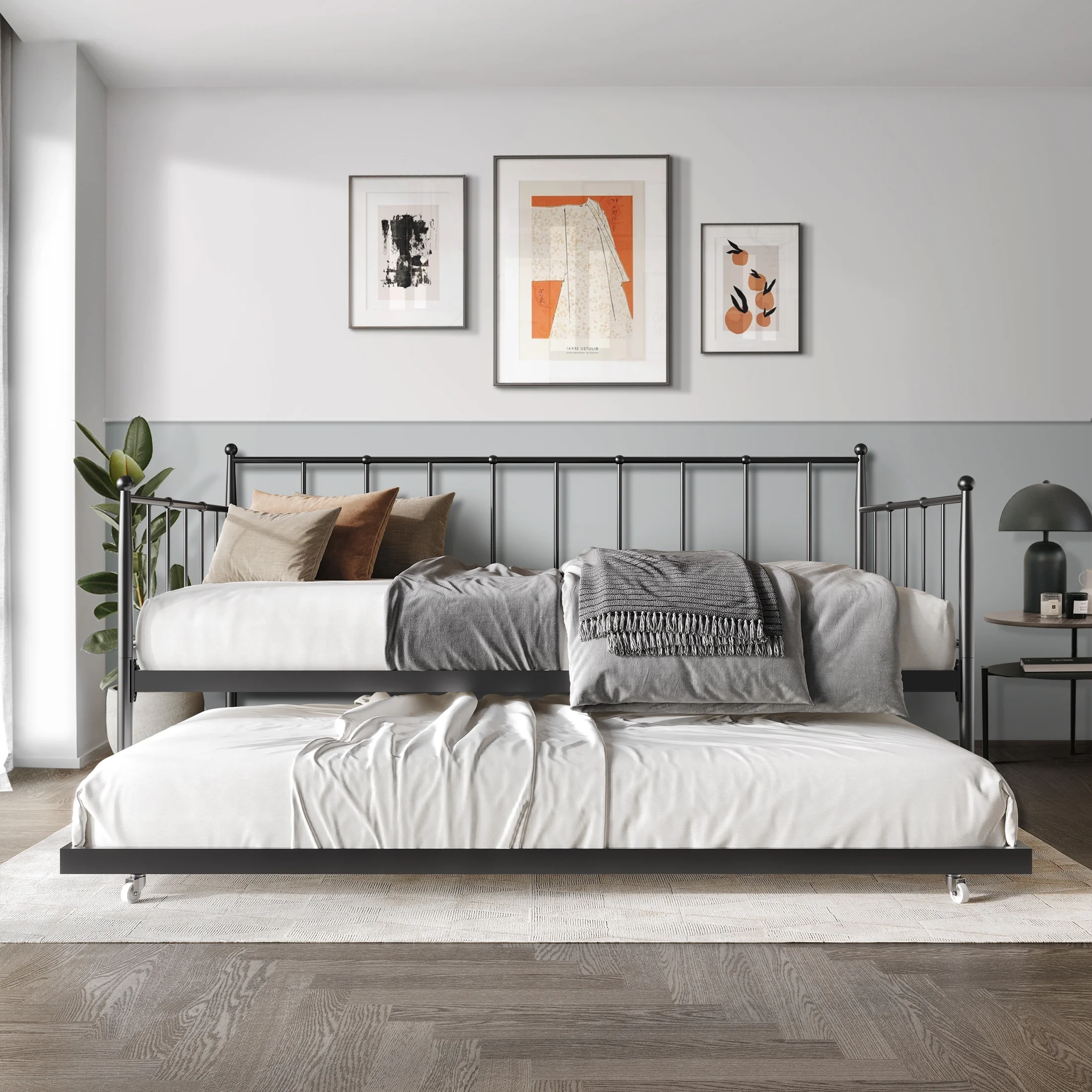 Castle Place Minimalist Vintage Twin Size Metal Daybed With Trundle, Black
