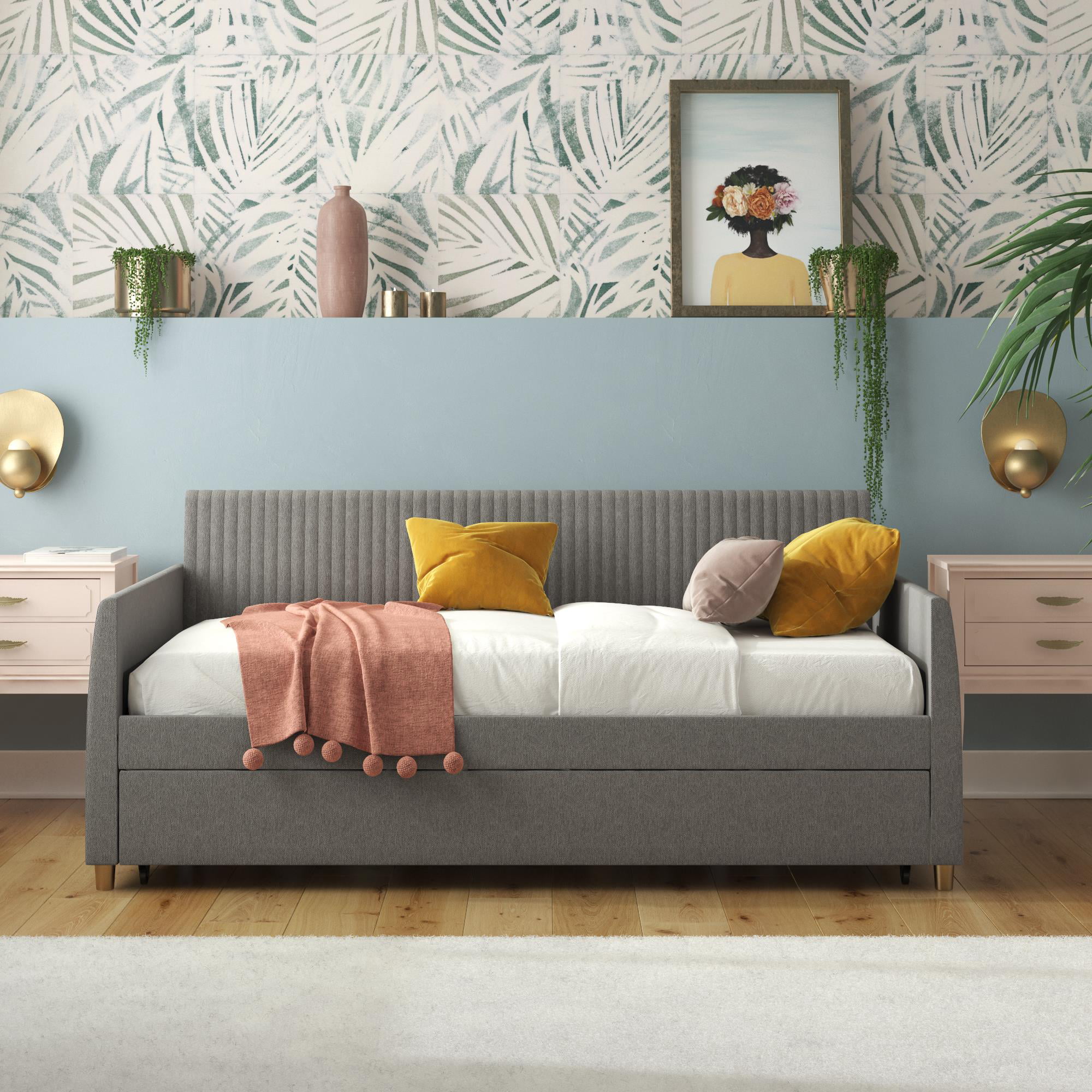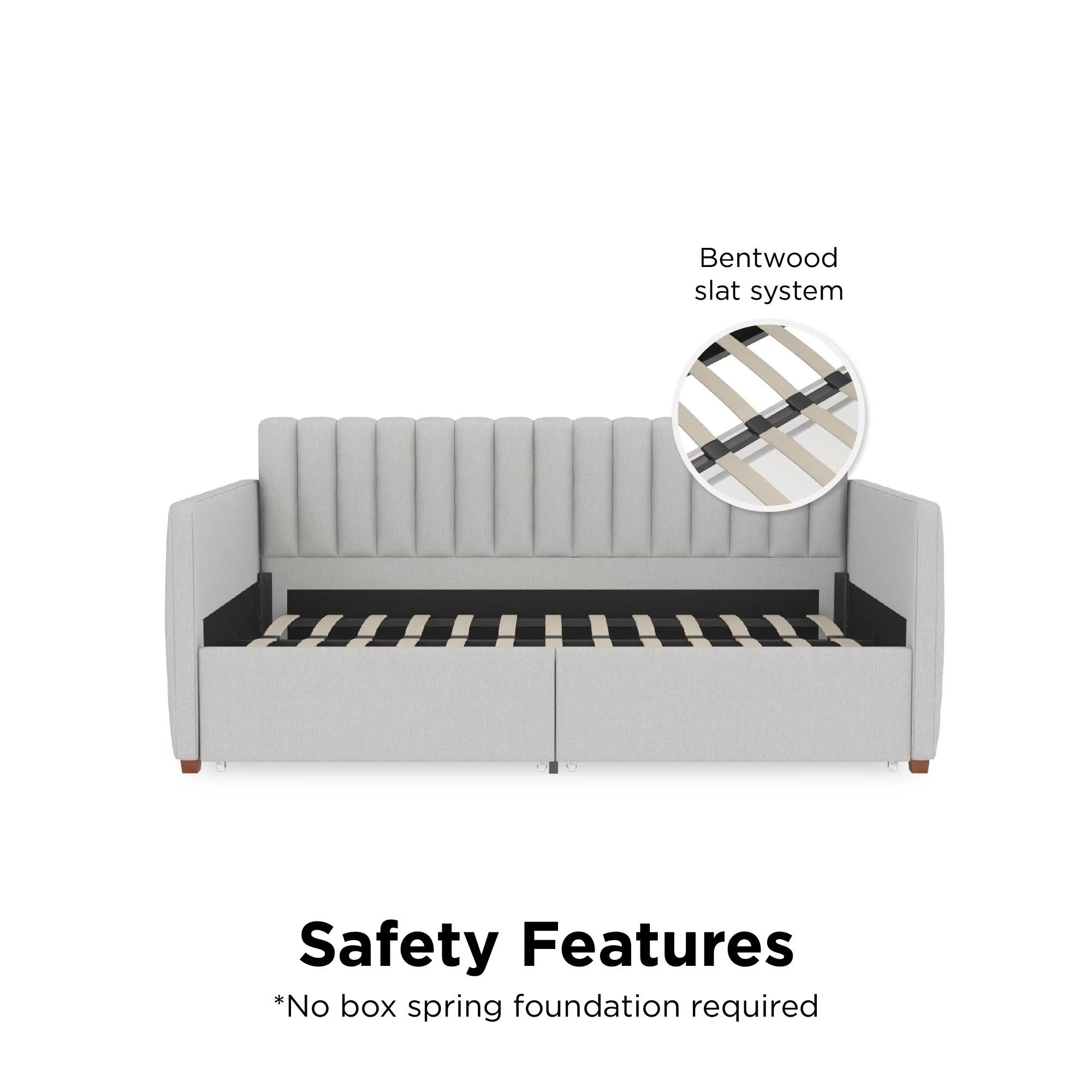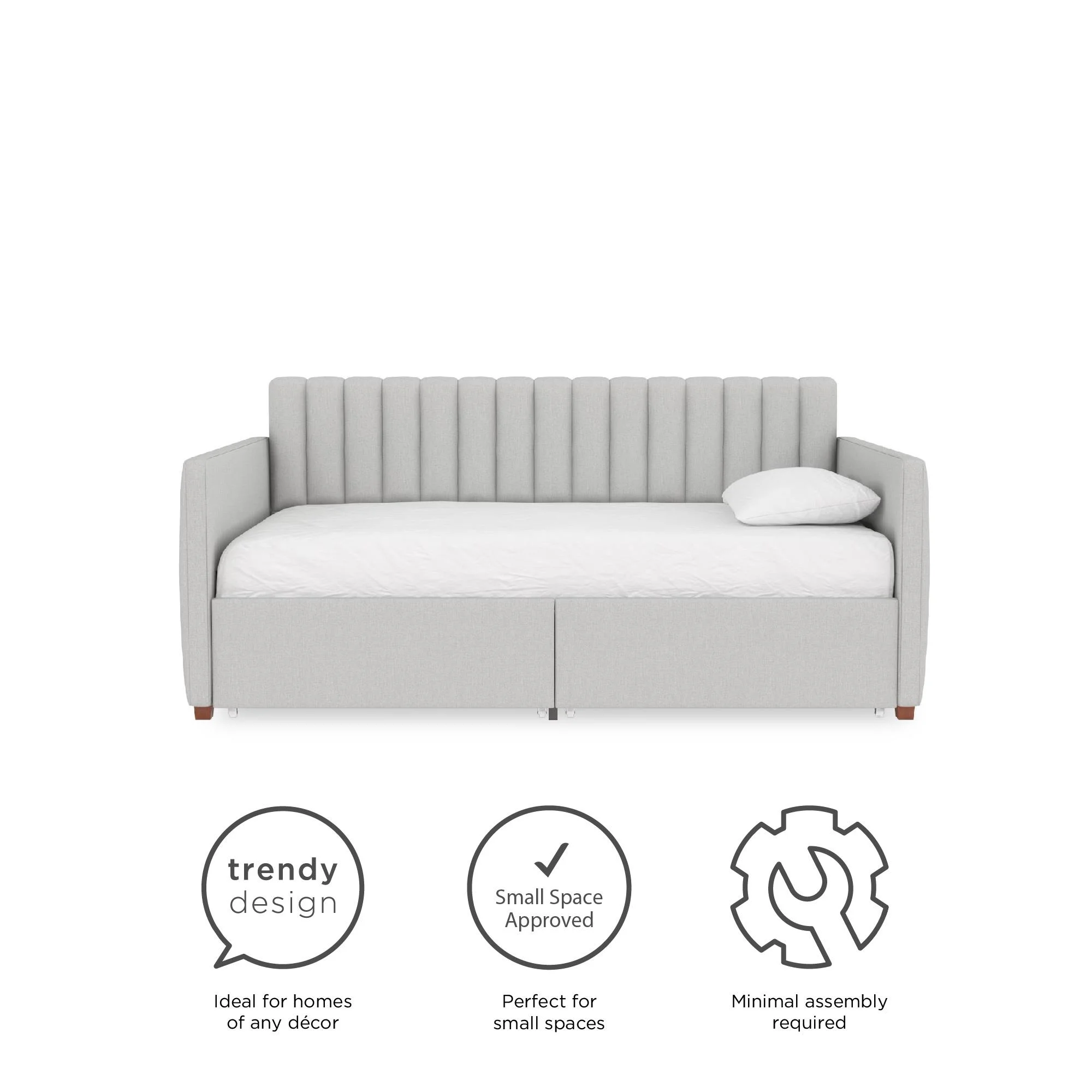 Novogratz Brittany Daybed with Storage Drawers, Twin Size, Gray Linen