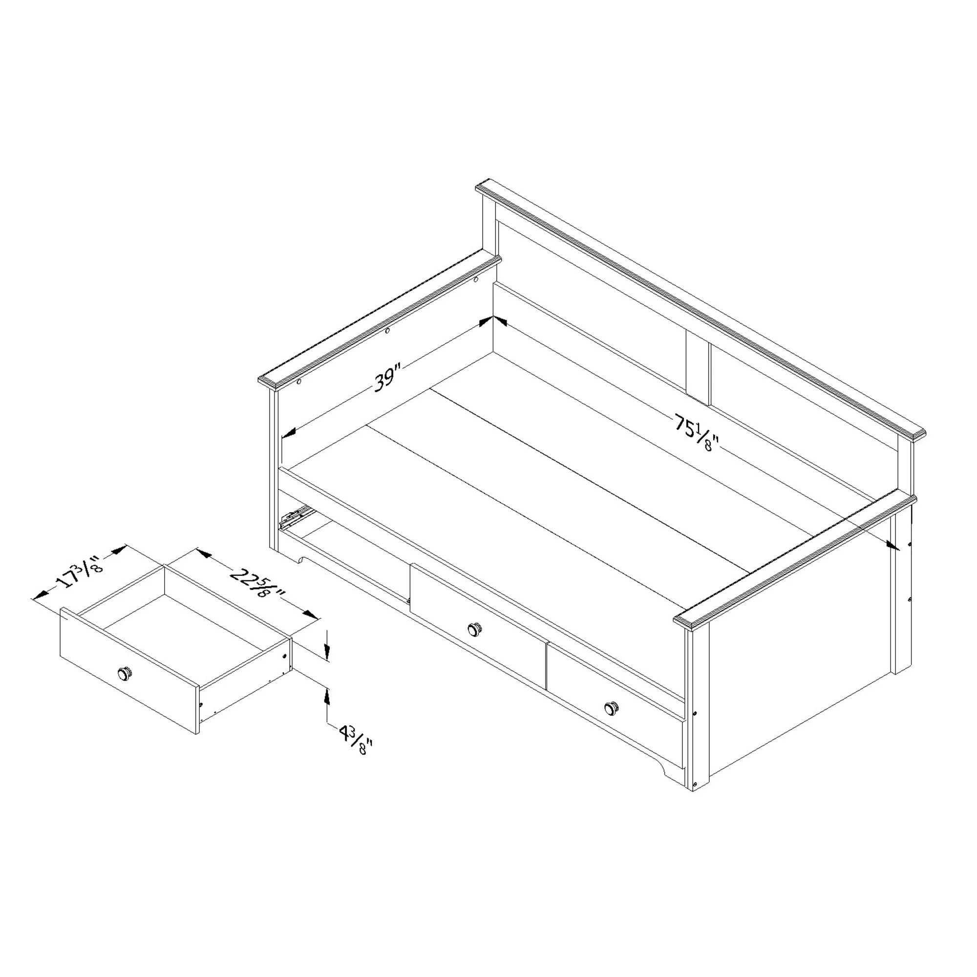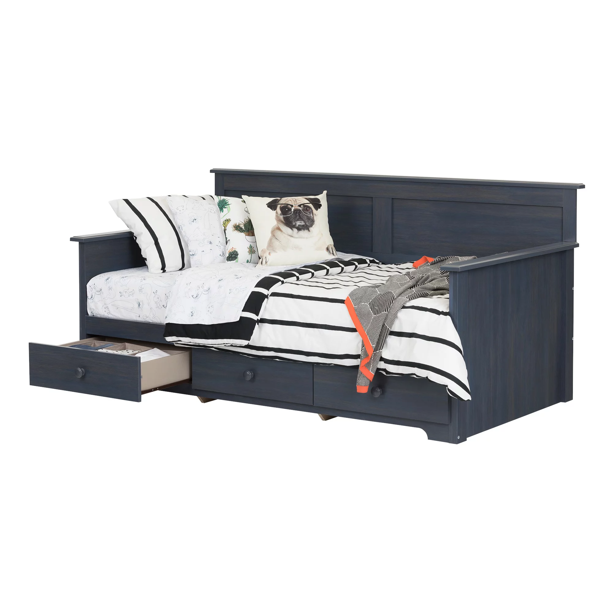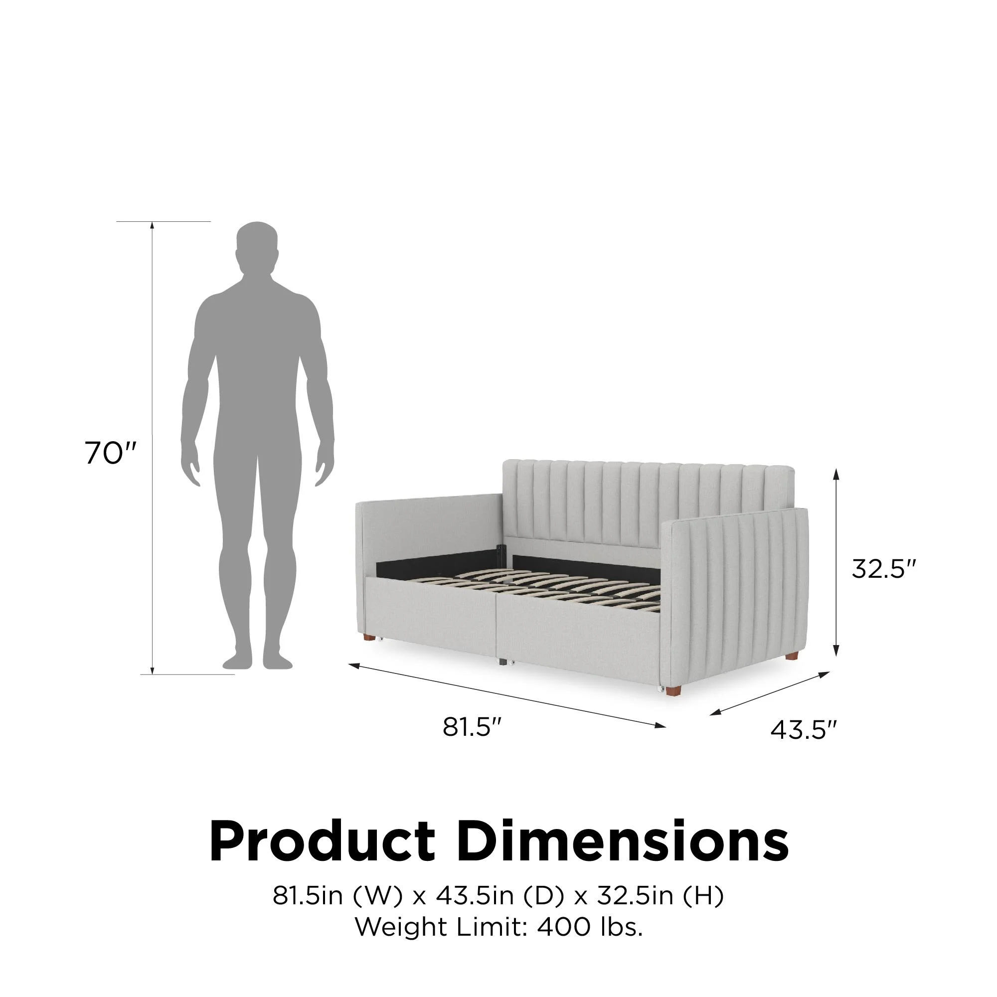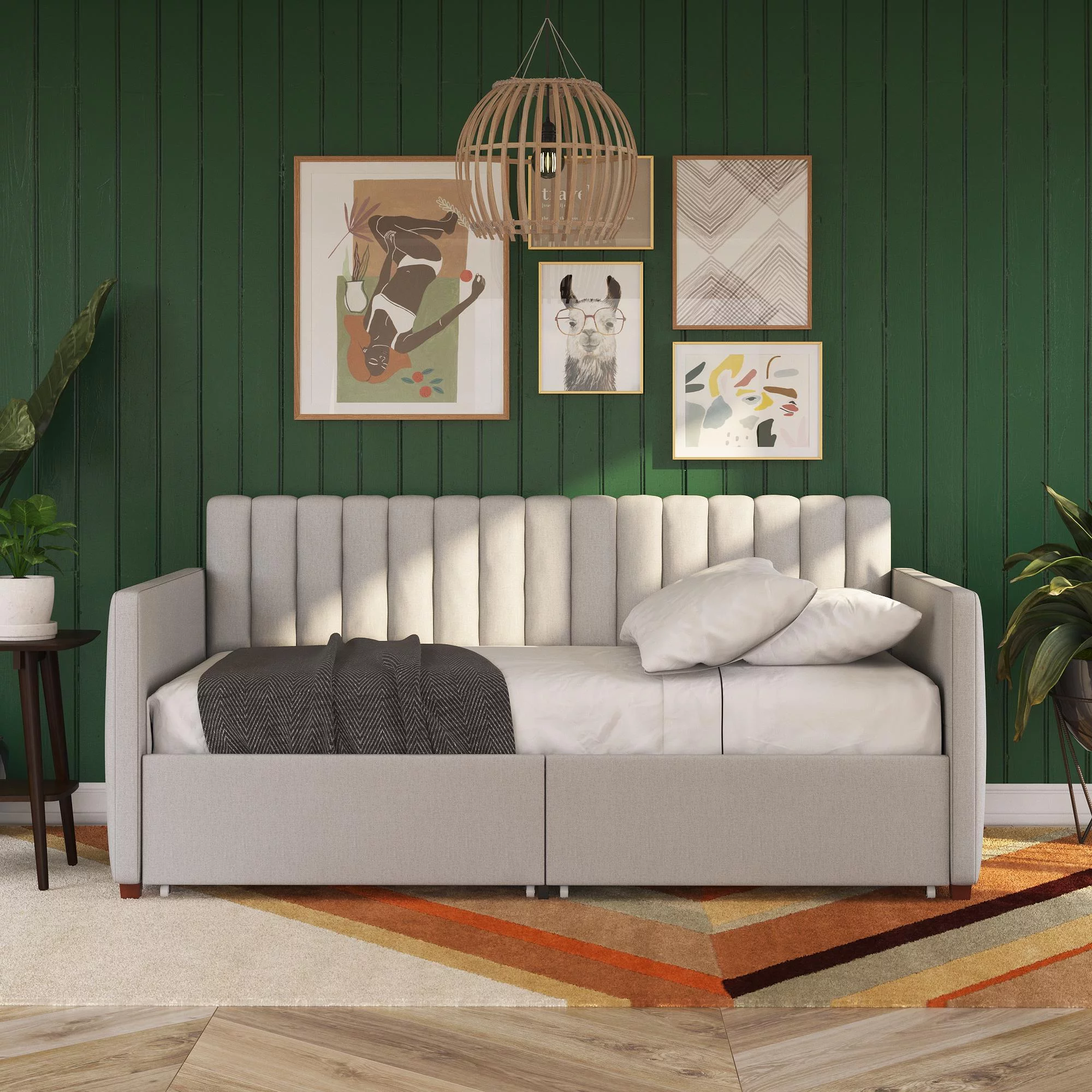 Novogratz Brittany Daybed with Storage Drawers, Twin Size, Gray Linen