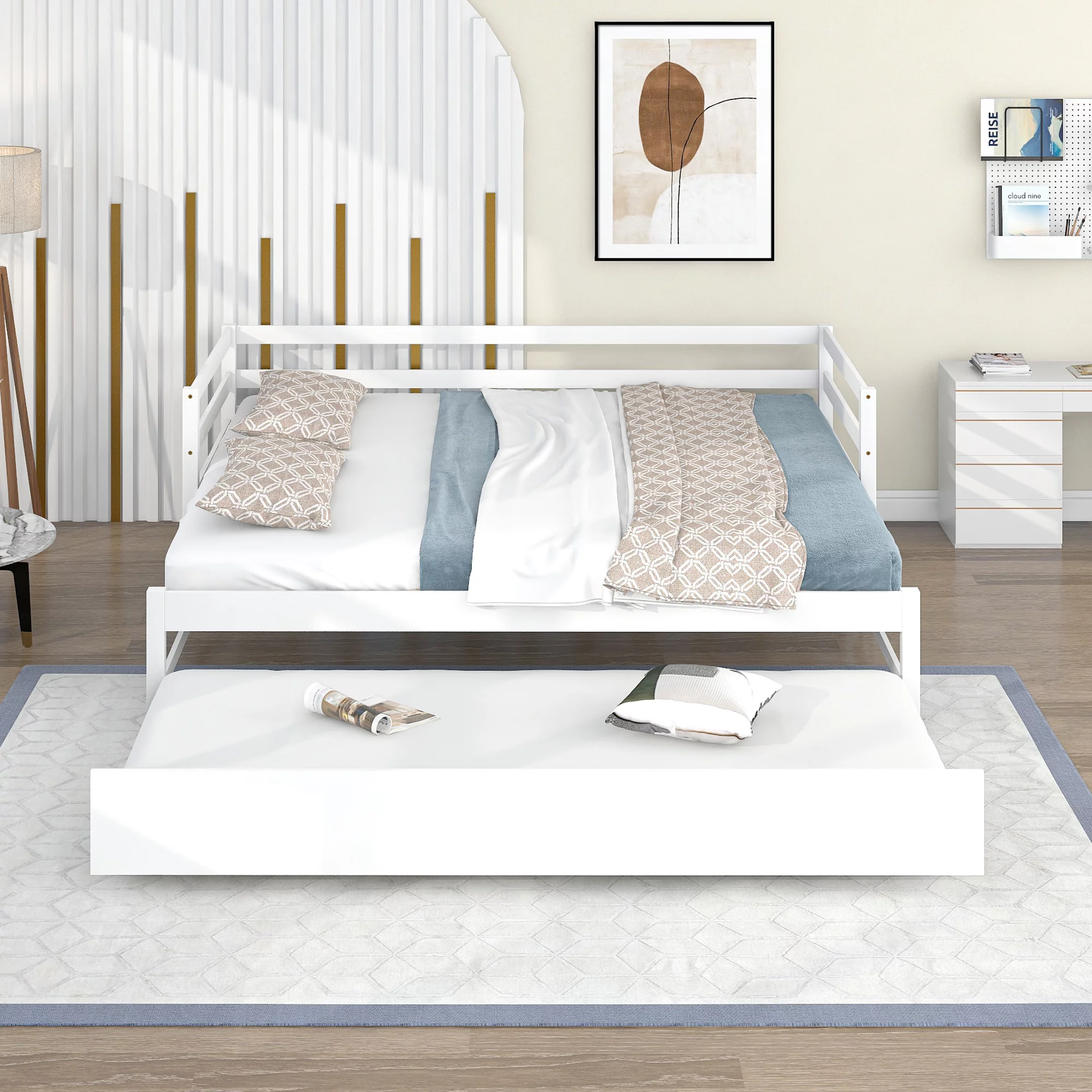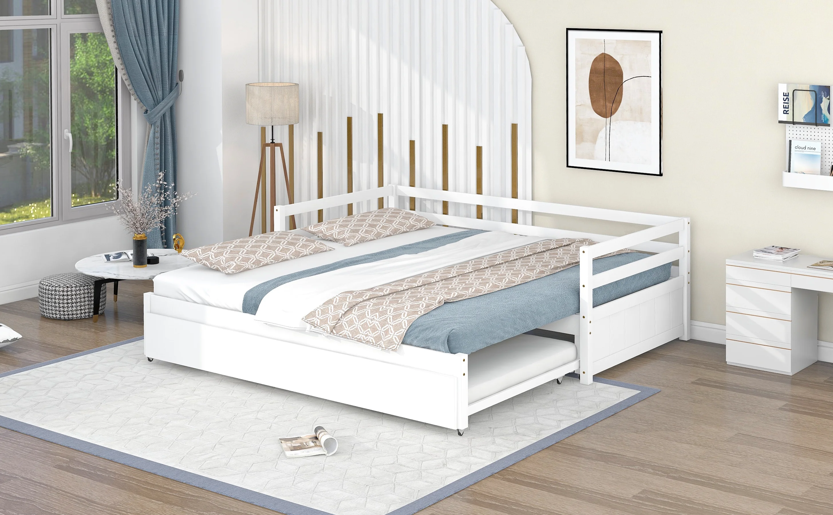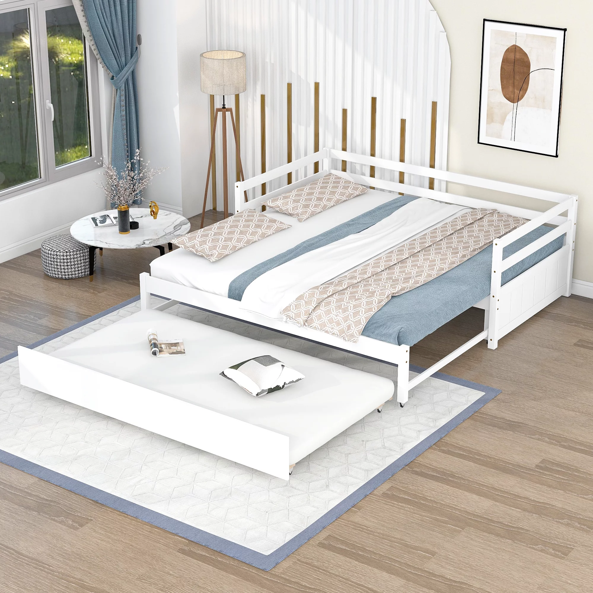 EUROCO Twin Size Daybed, Convertible Double Twin Size with Trundle, White