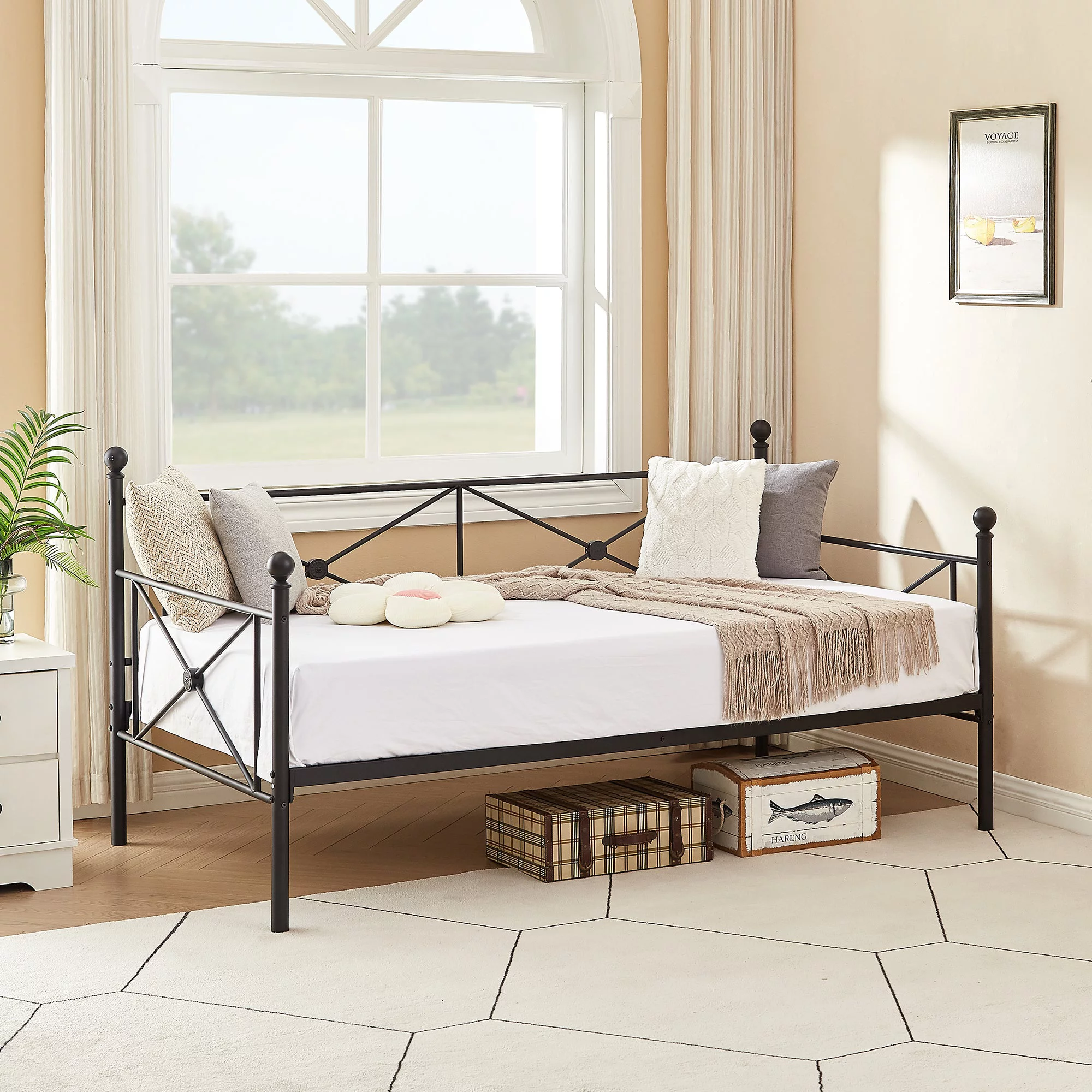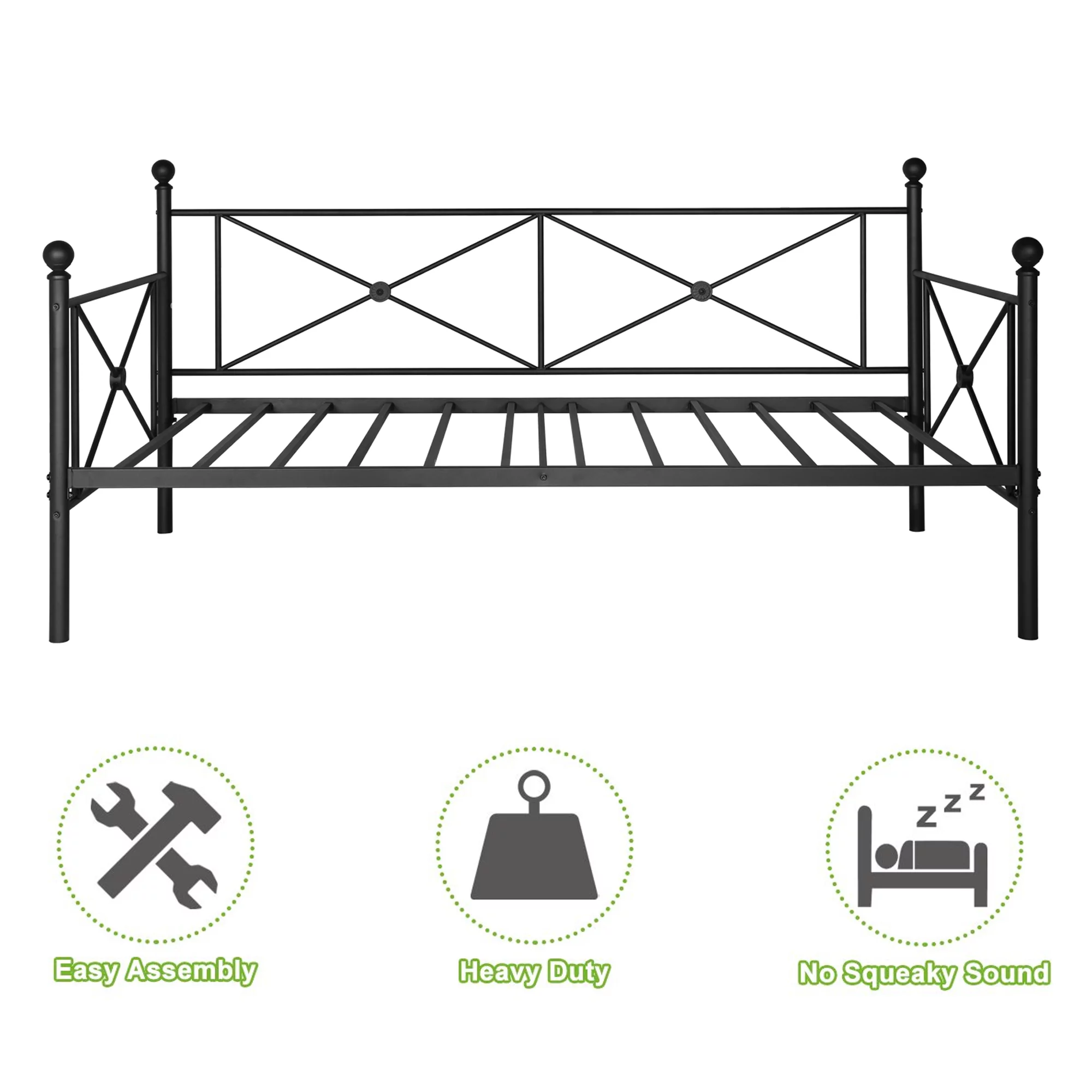VECELO Metal Platform Daybed Frame, Bed Sofa for Living Room, Twin Size, Black