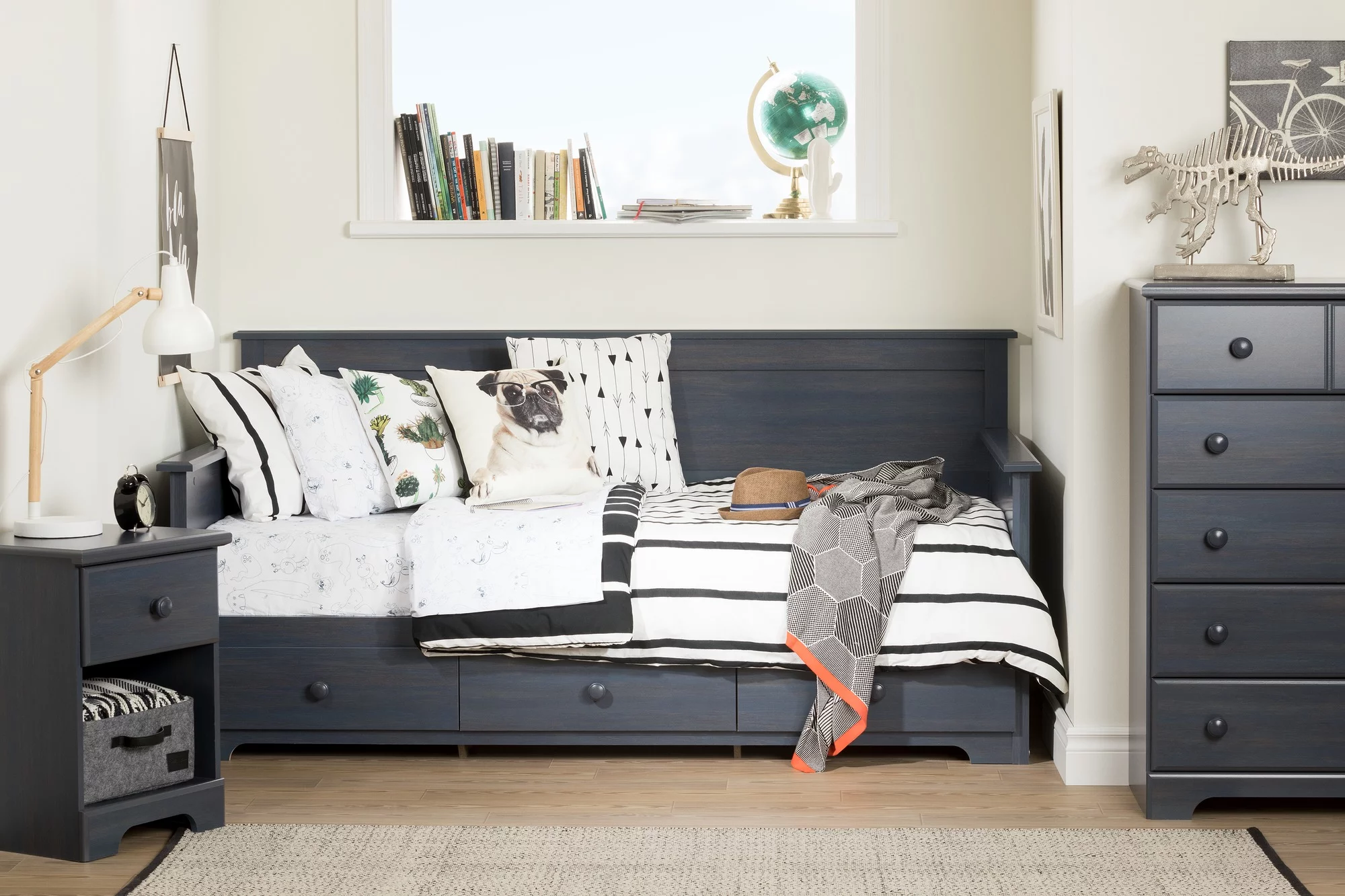 Zoey Upholstered Twin Daybed with Trundle, Charcoal, by Hillsdale Living Essentials