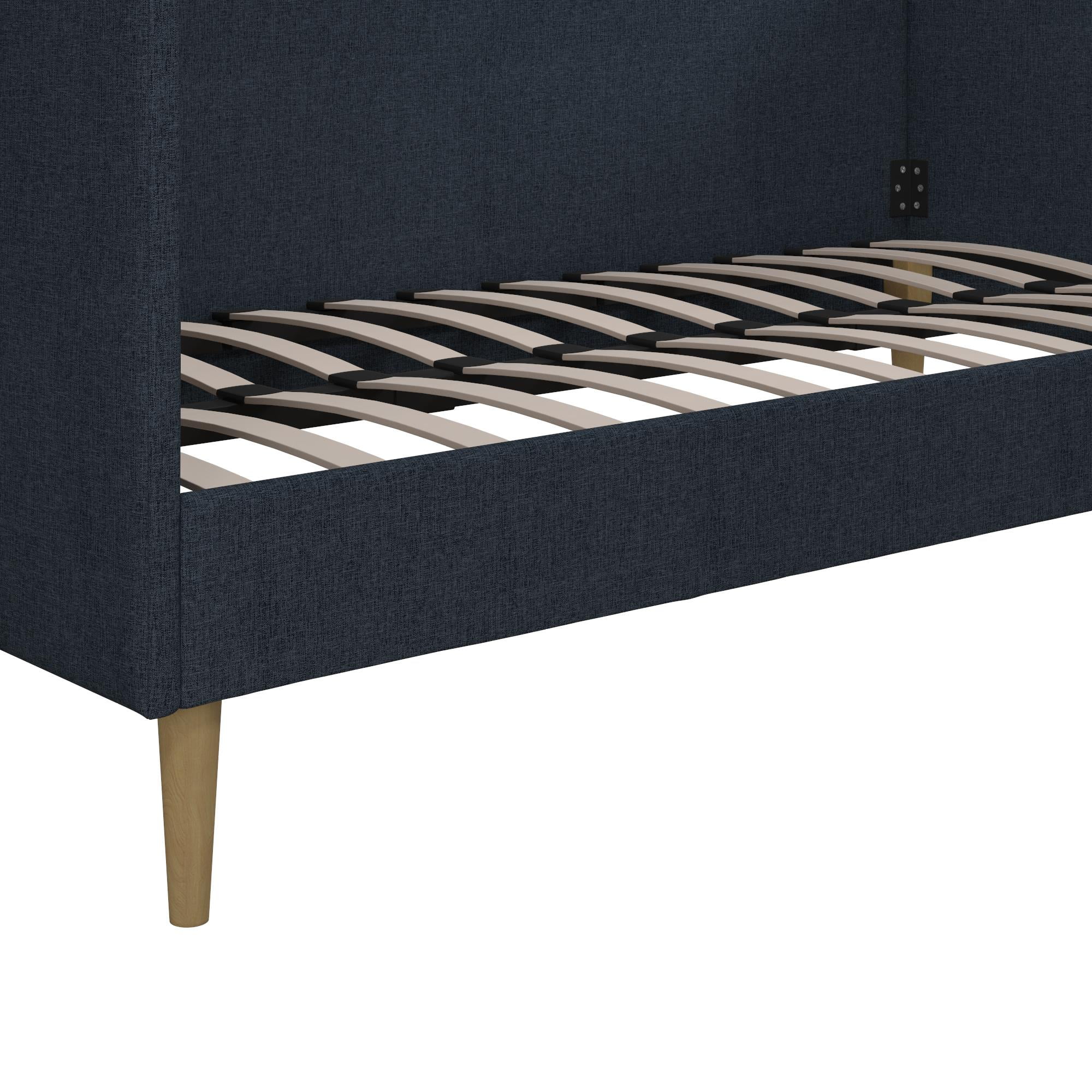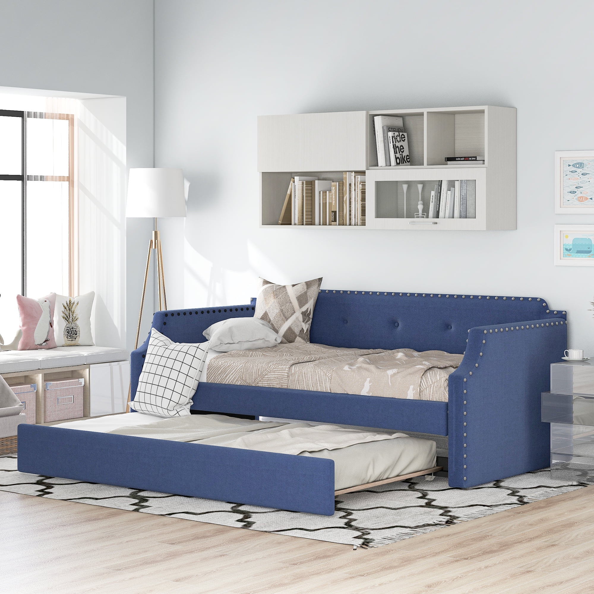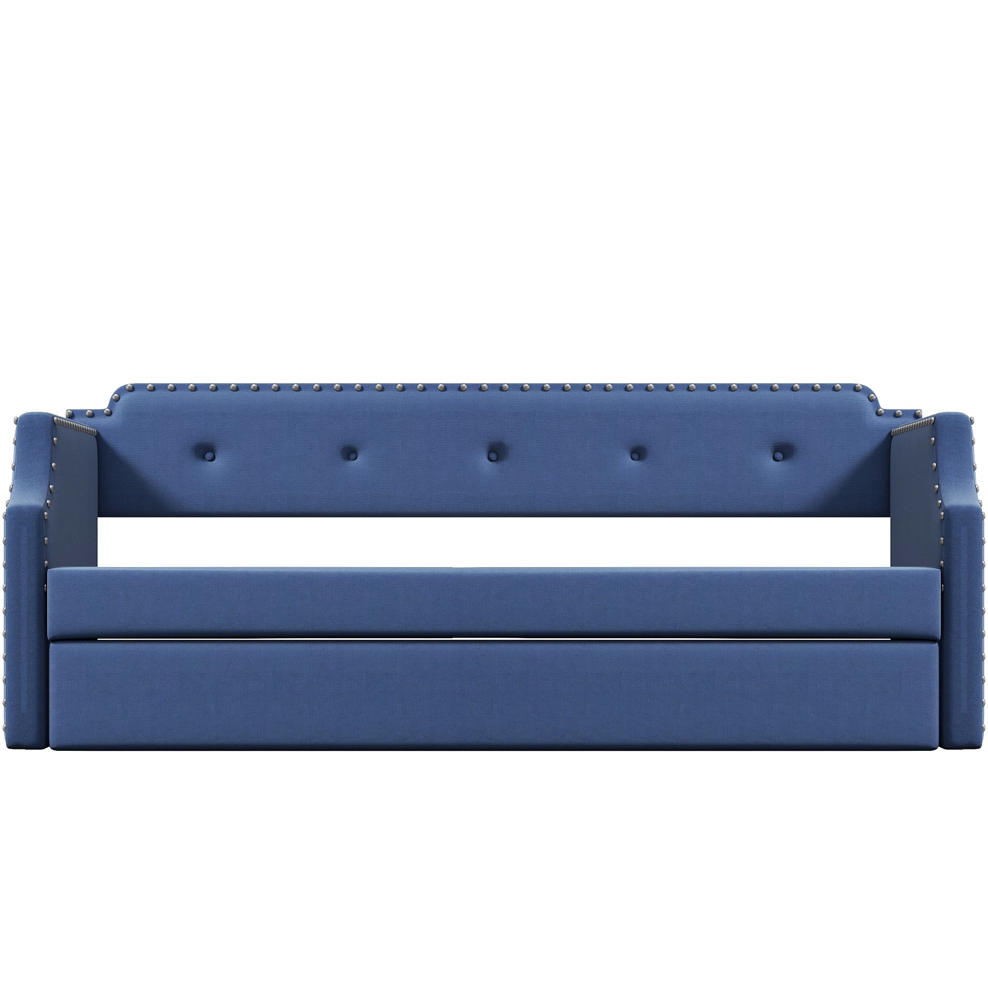 Euroco Twin Upholstered Daybed Linen Tufted Sofa Bed with Trundle, Blue