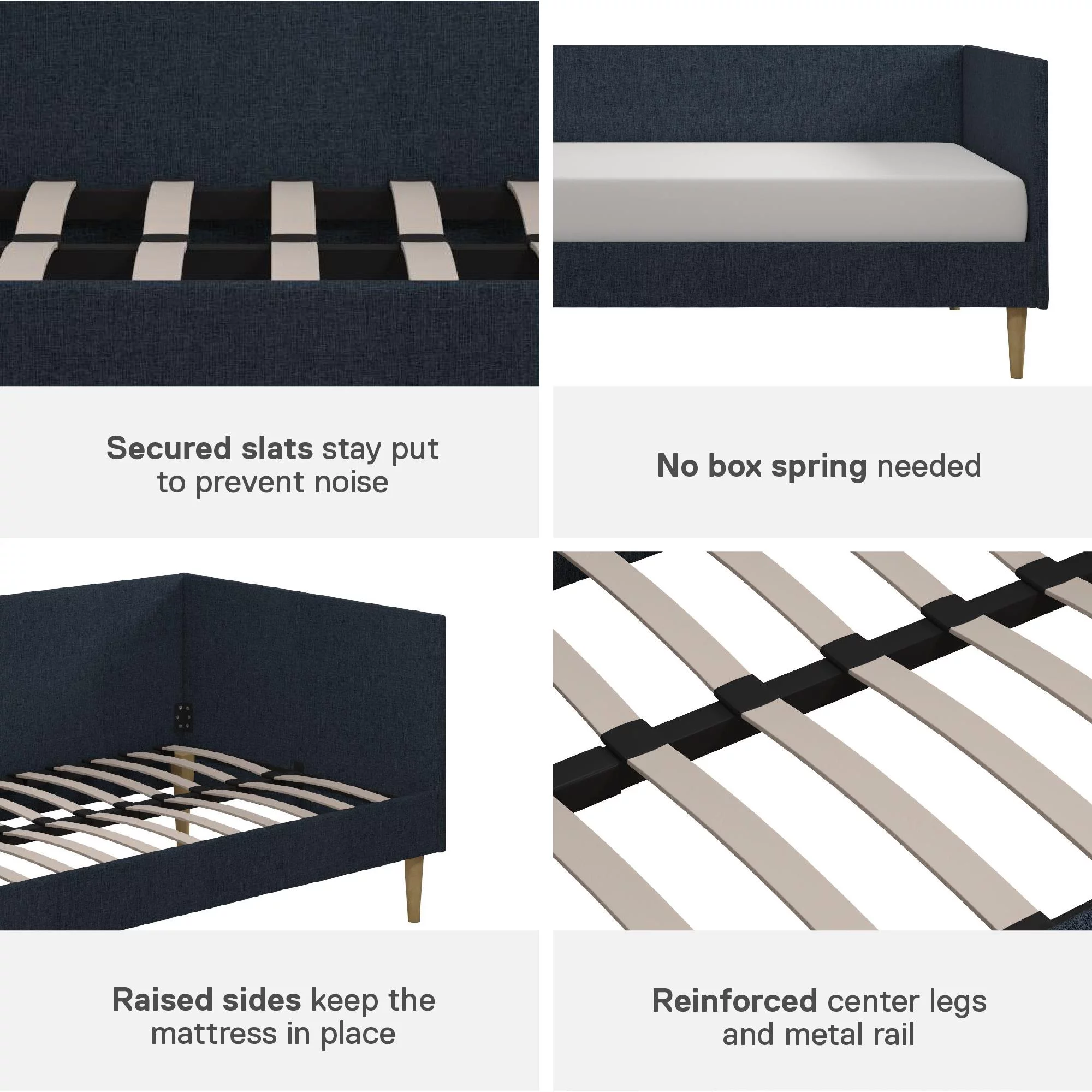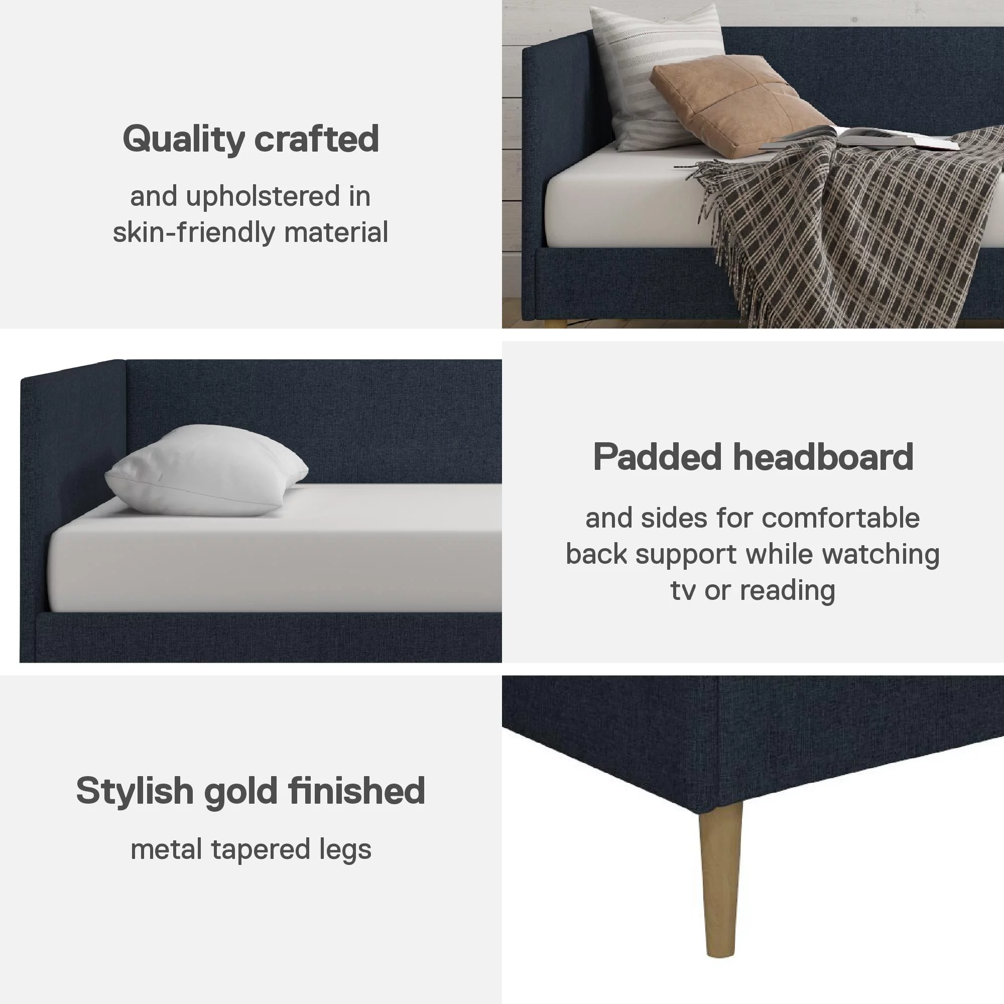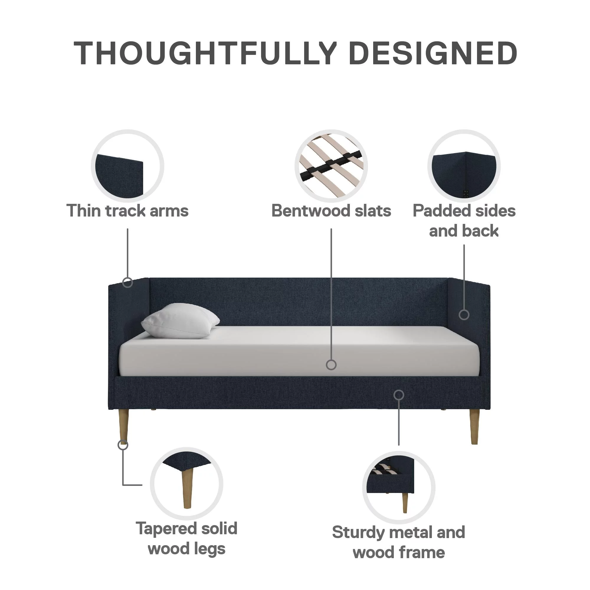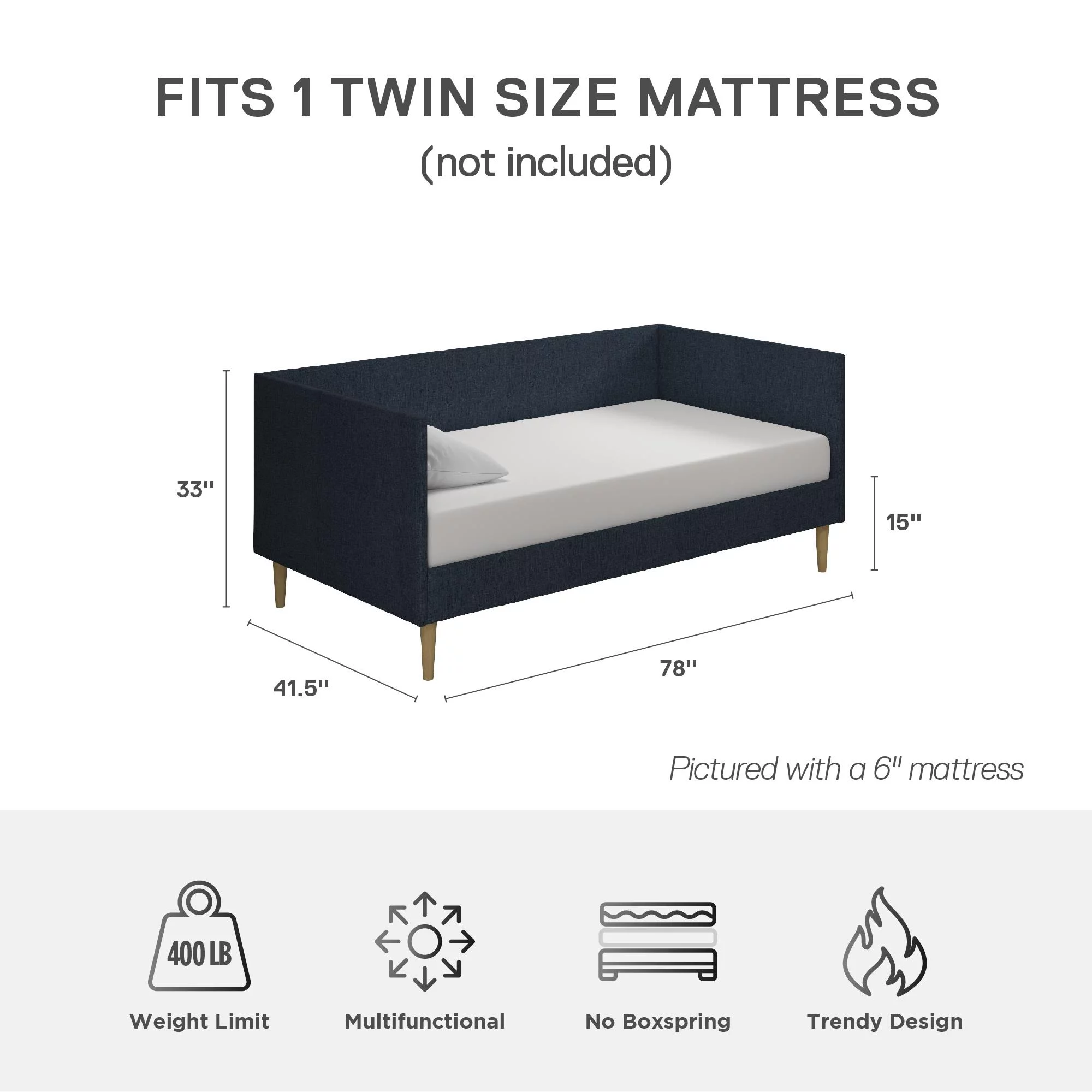 Euroco Twin Upholstered Daybed Linen Tufted Sofa Bed with Trundle, Blue