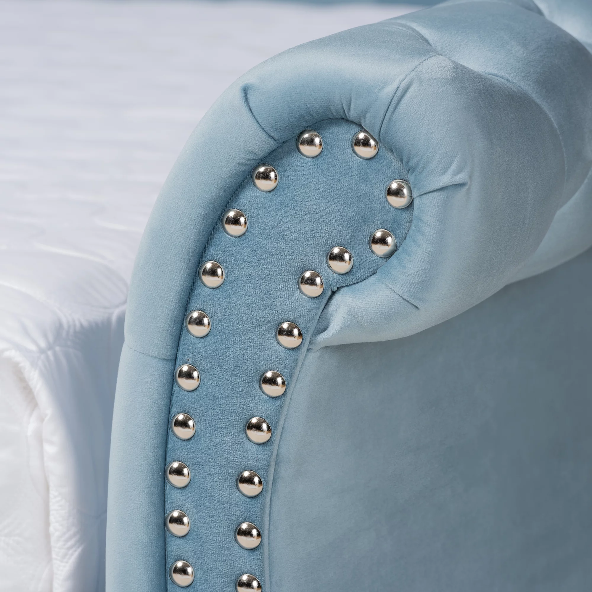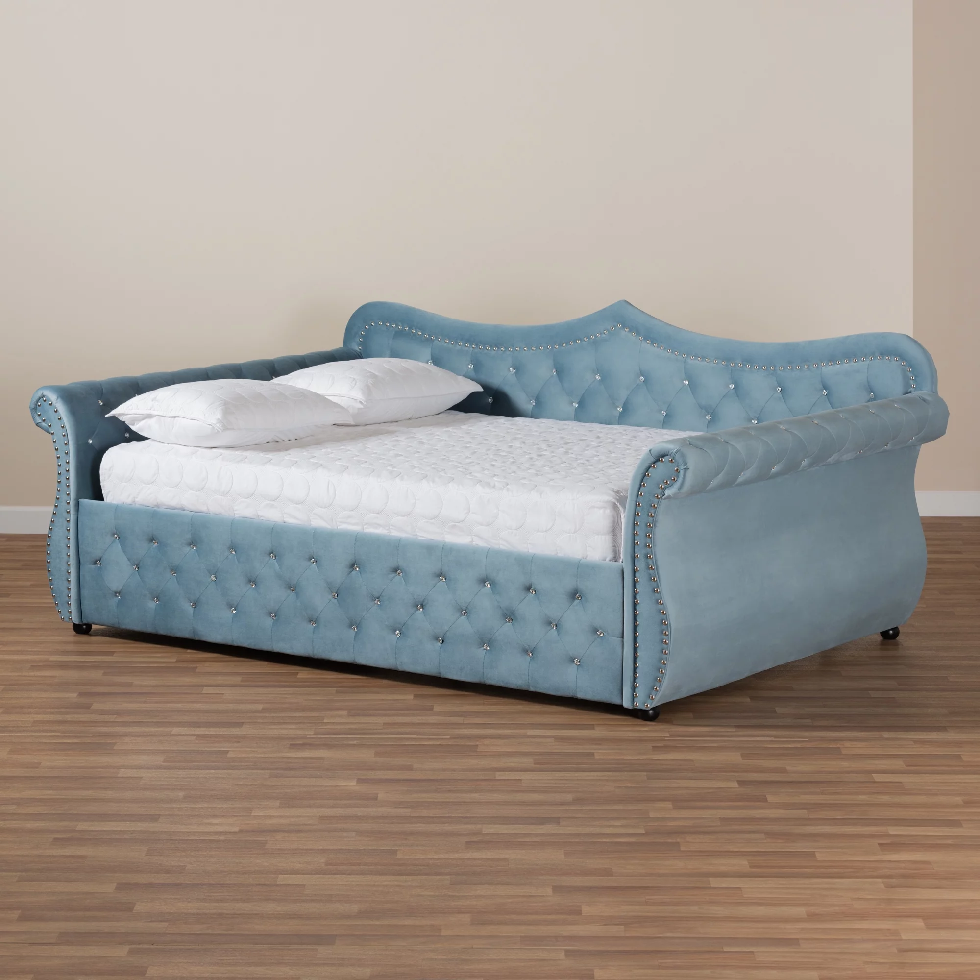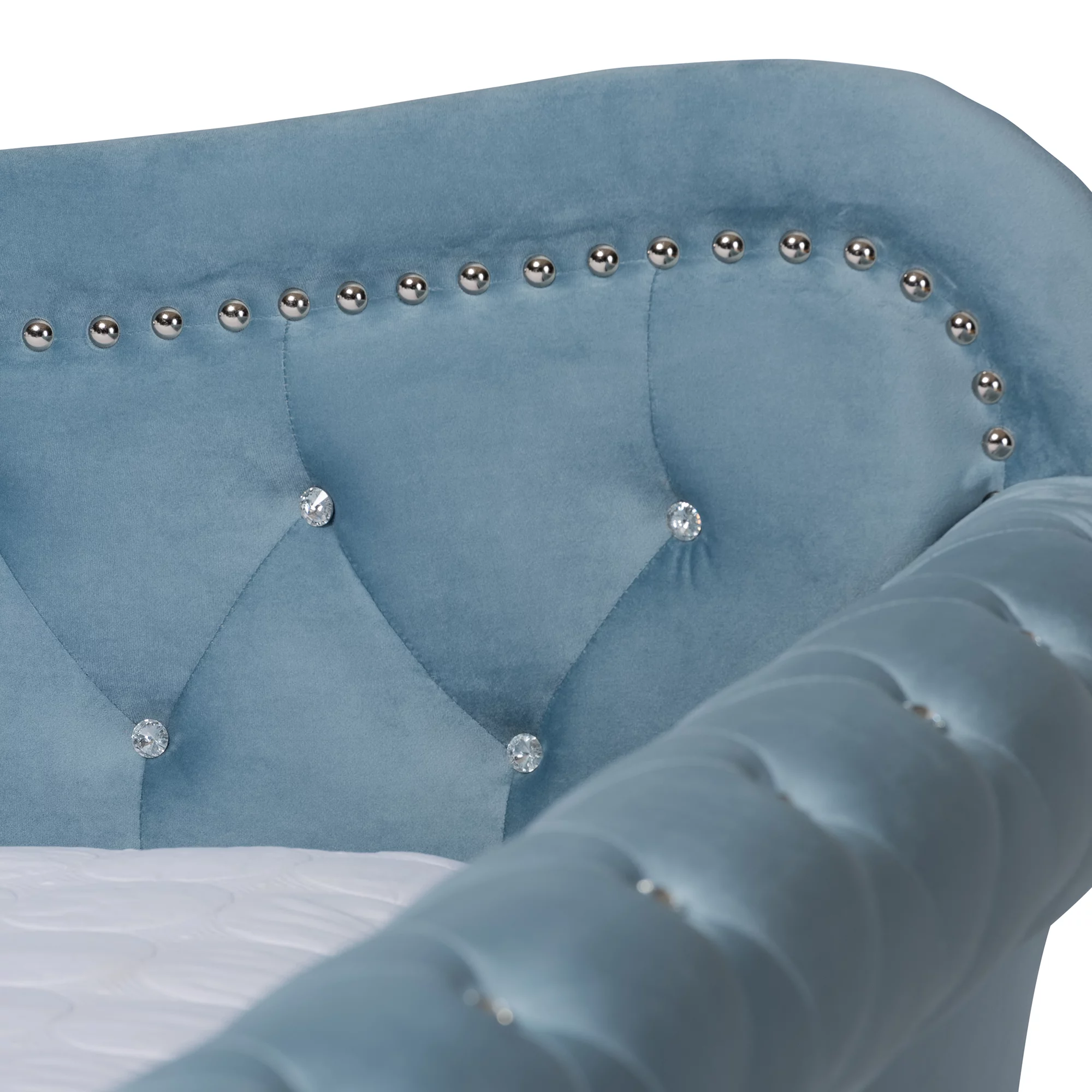 Baxton Studio Abbie Light Blue Velvet Upholstered and Crystal Tufted Queen Daybed