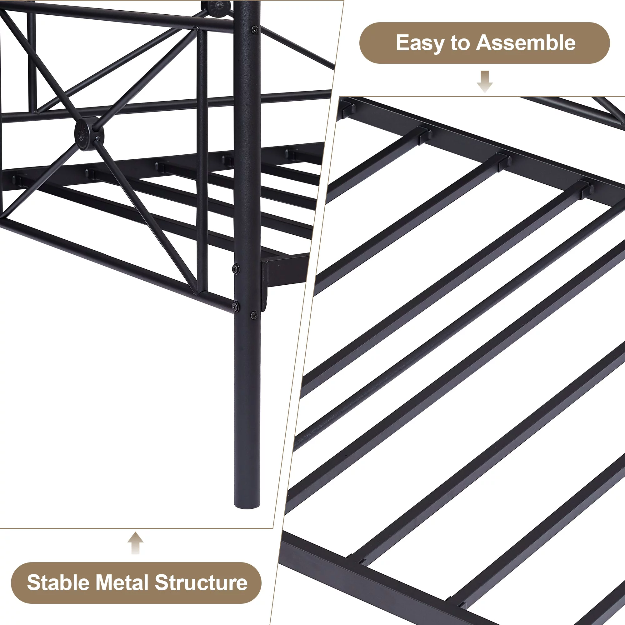 EUROCO Modern Metal Triple Bunk Bed, Twin over Full over Queen for Bedroom, 3-in-1 Beds for More People, Black