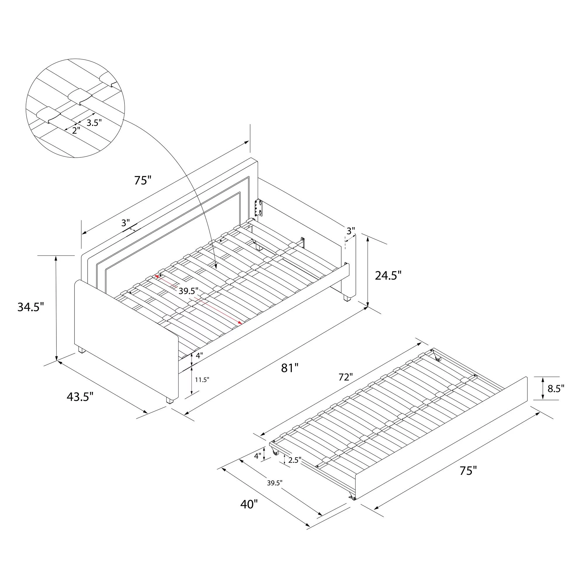Euroco Classic Pine Wood with Trundle Daybed, Twin for Kids Bedroom, Espresso
