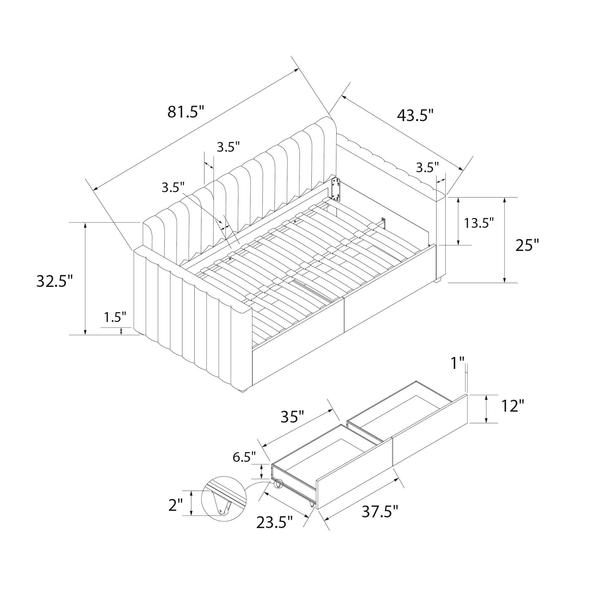 Euroco Twin Size PU Upholstery Daybed, Tufted Sofa Bed with Trundle for Kids Room, White