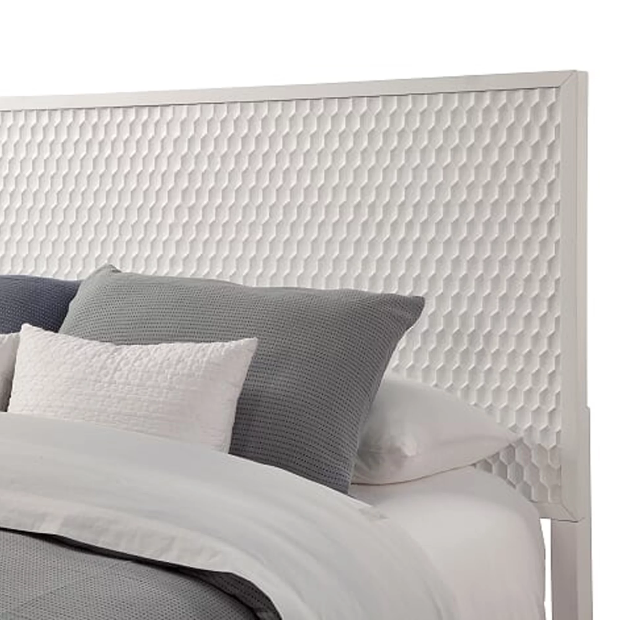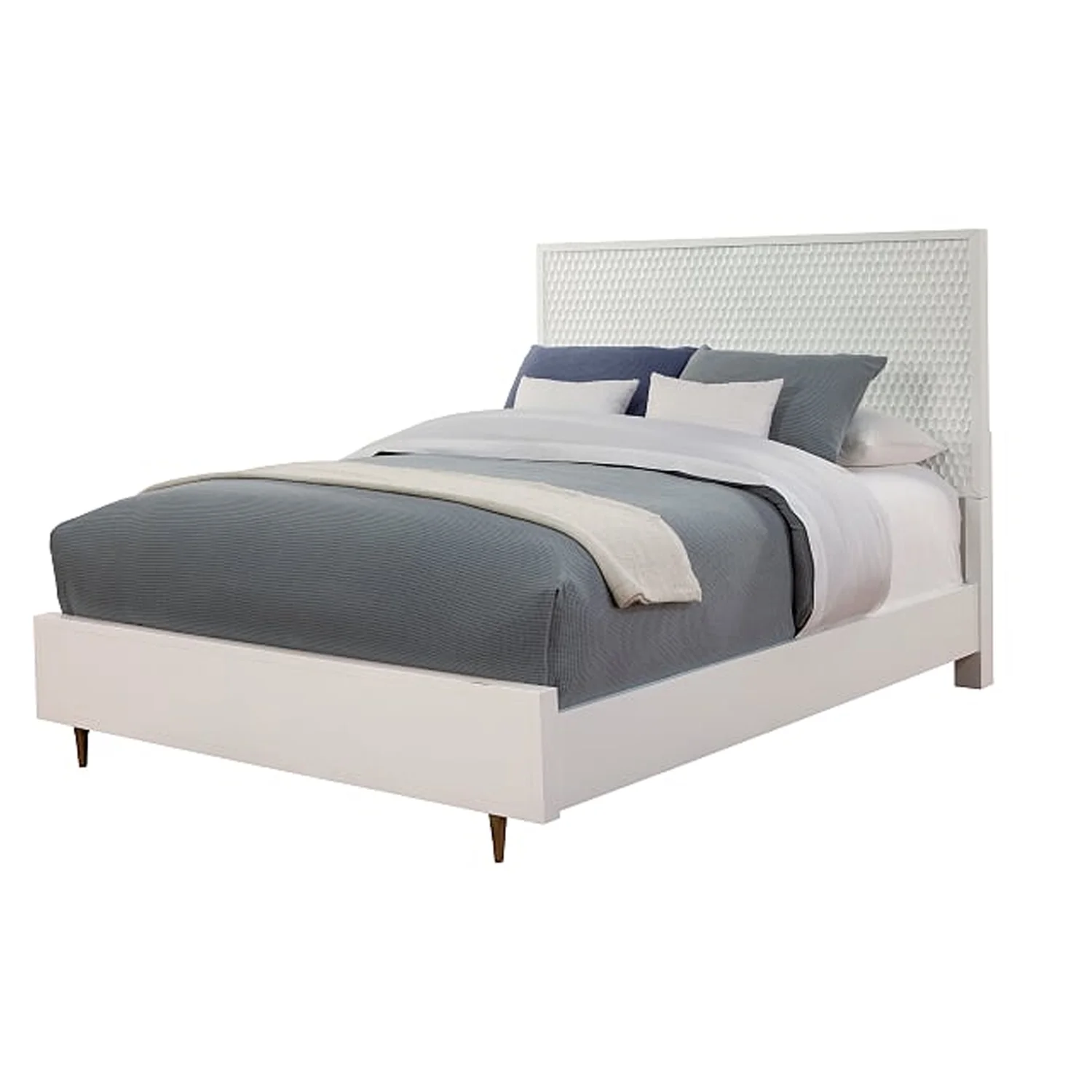 Benjara Wooden Full Size Bed with Honeycomb Design High Headboard, White