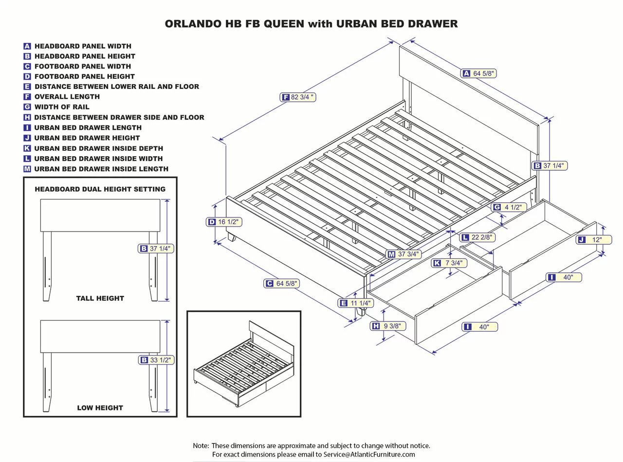 Orlando Platform Bed with Matching Foot Board with 2 Urban Bed Drawers in Multiple Colors and Sizes