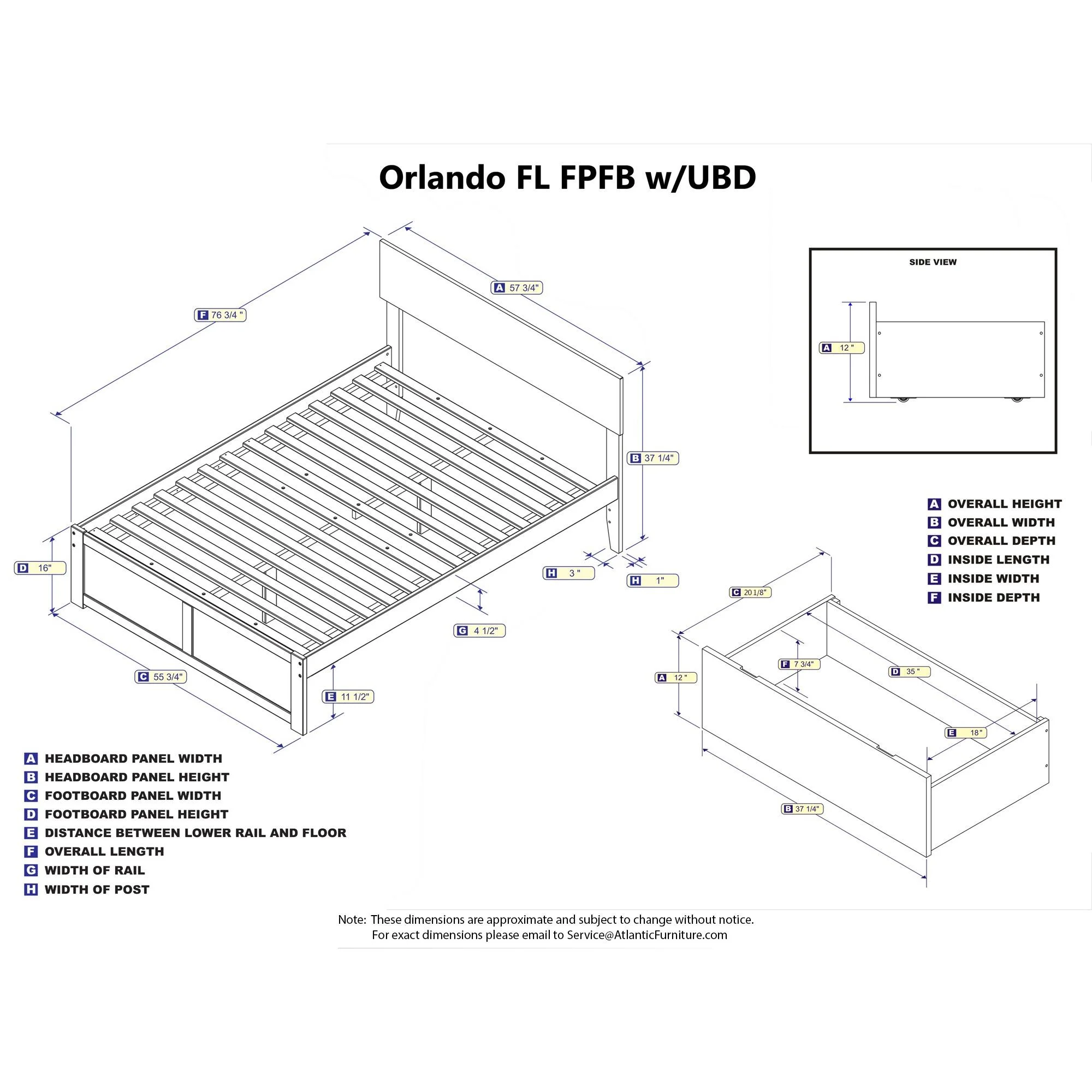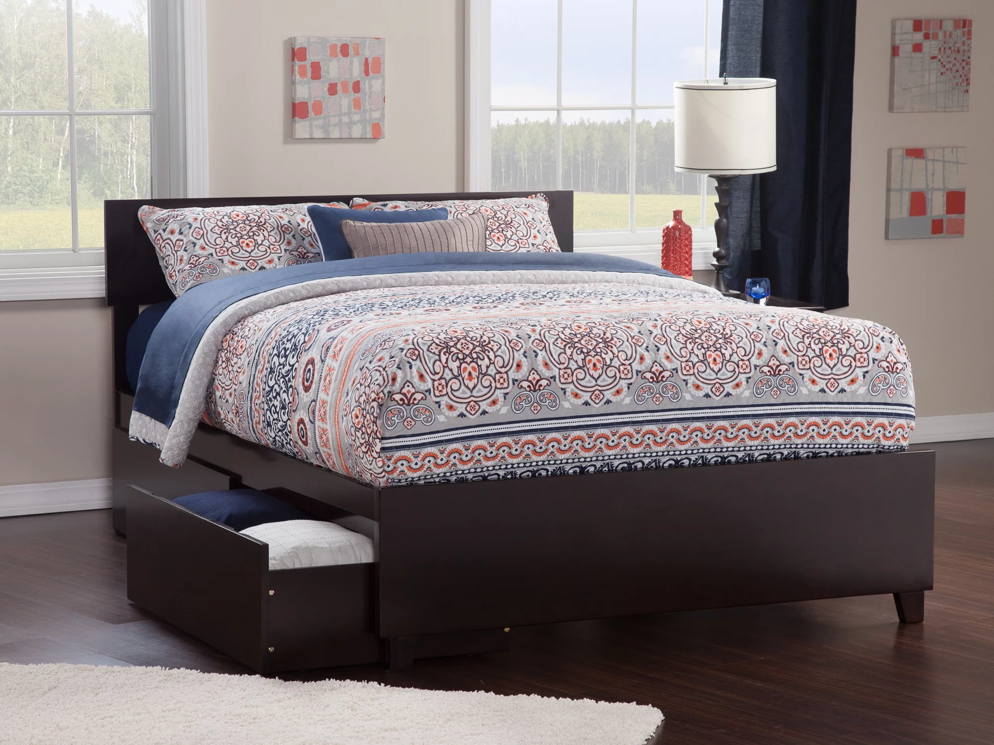 Orlando Platform Bed with Flat Panel Foot Board and 2 Urban Bed Drawers, Multiple Colors, Multiple Sizes