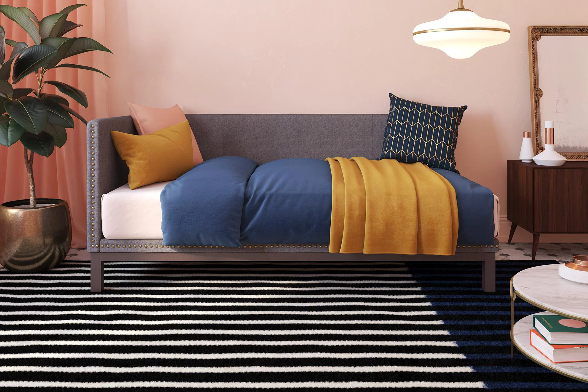 Queer Eye Liam Upholstered Daybed and Trundle, Full/Twin, Navy Blue Velvet