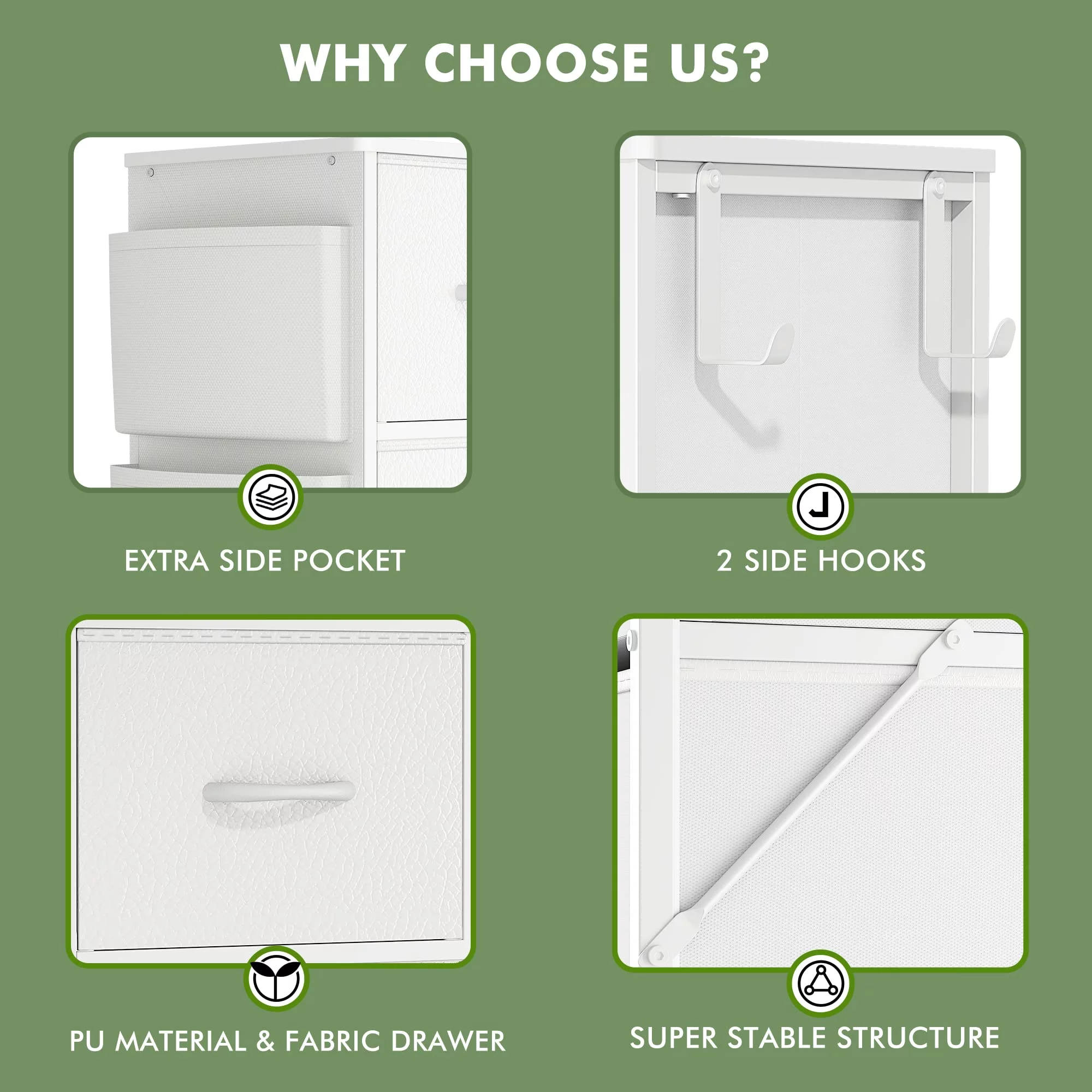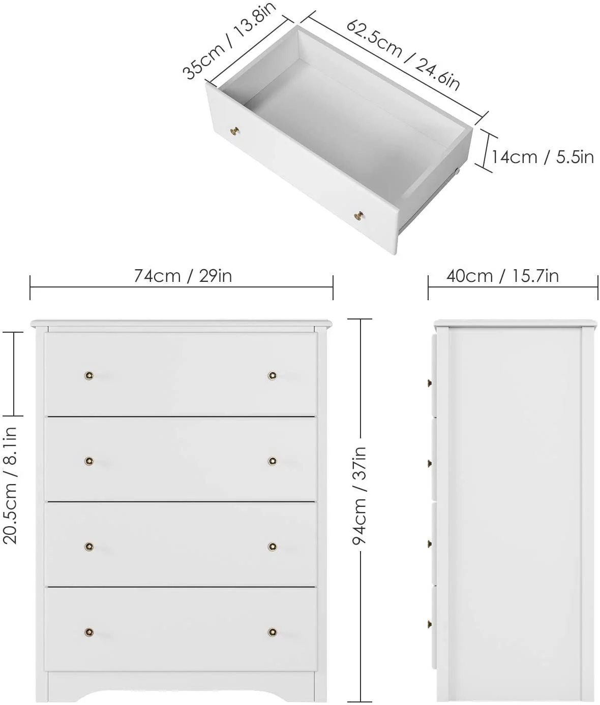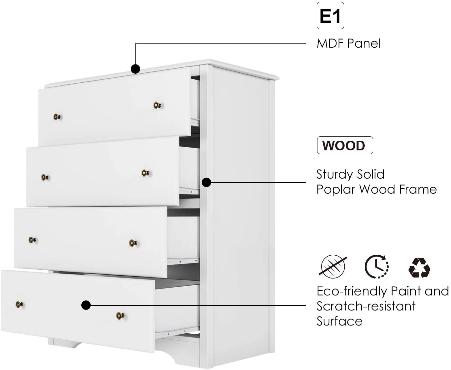 Homfa Dresser Chest, Modern Chest Organizer with 4 Drawers for Bedroom, White Finish